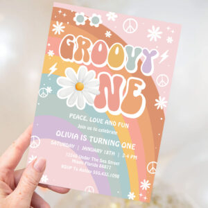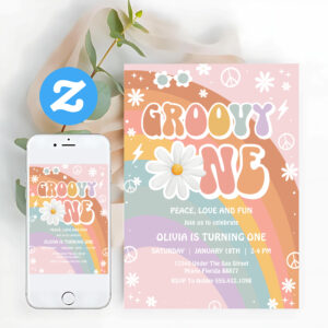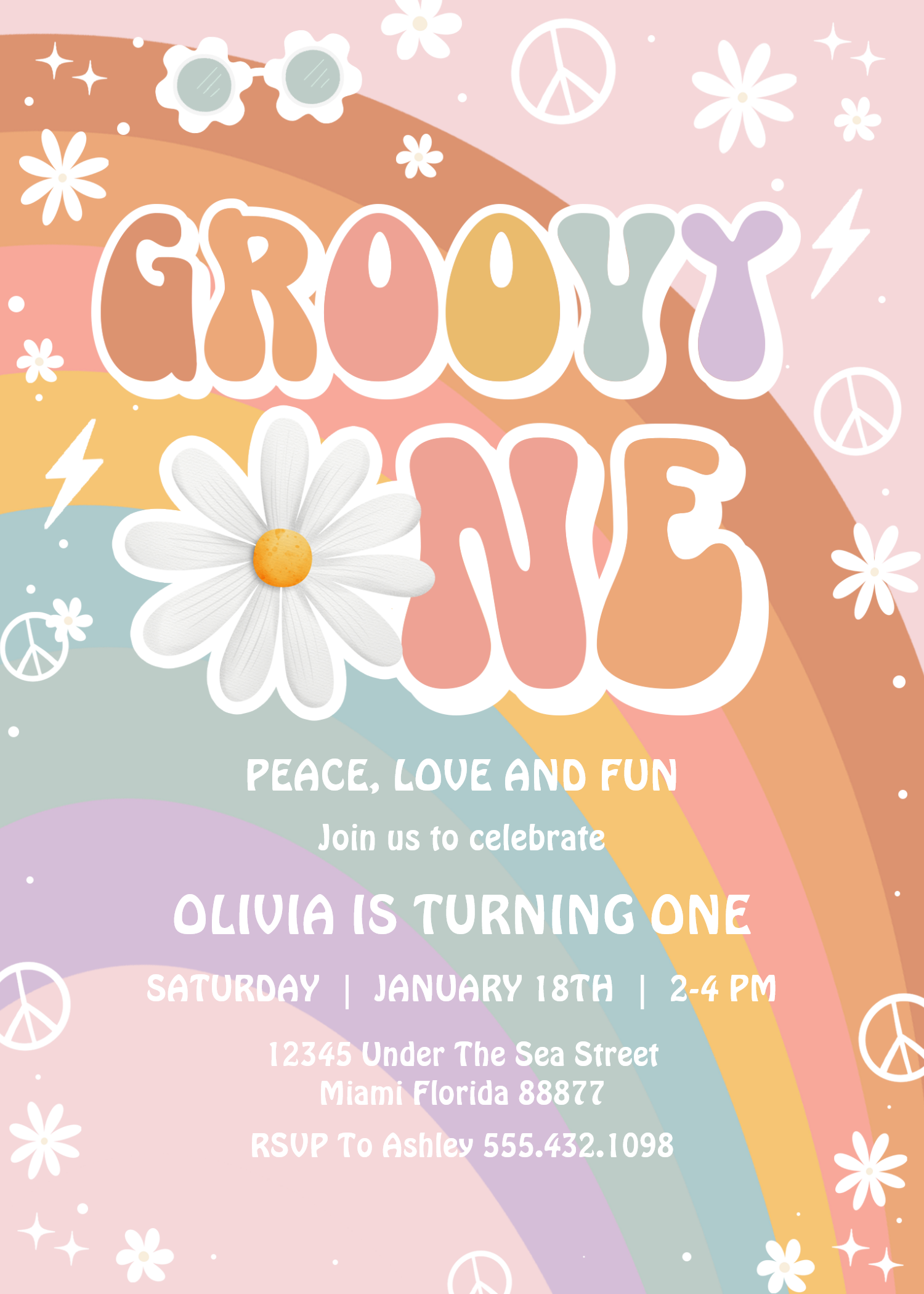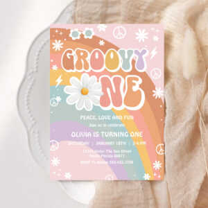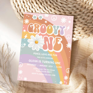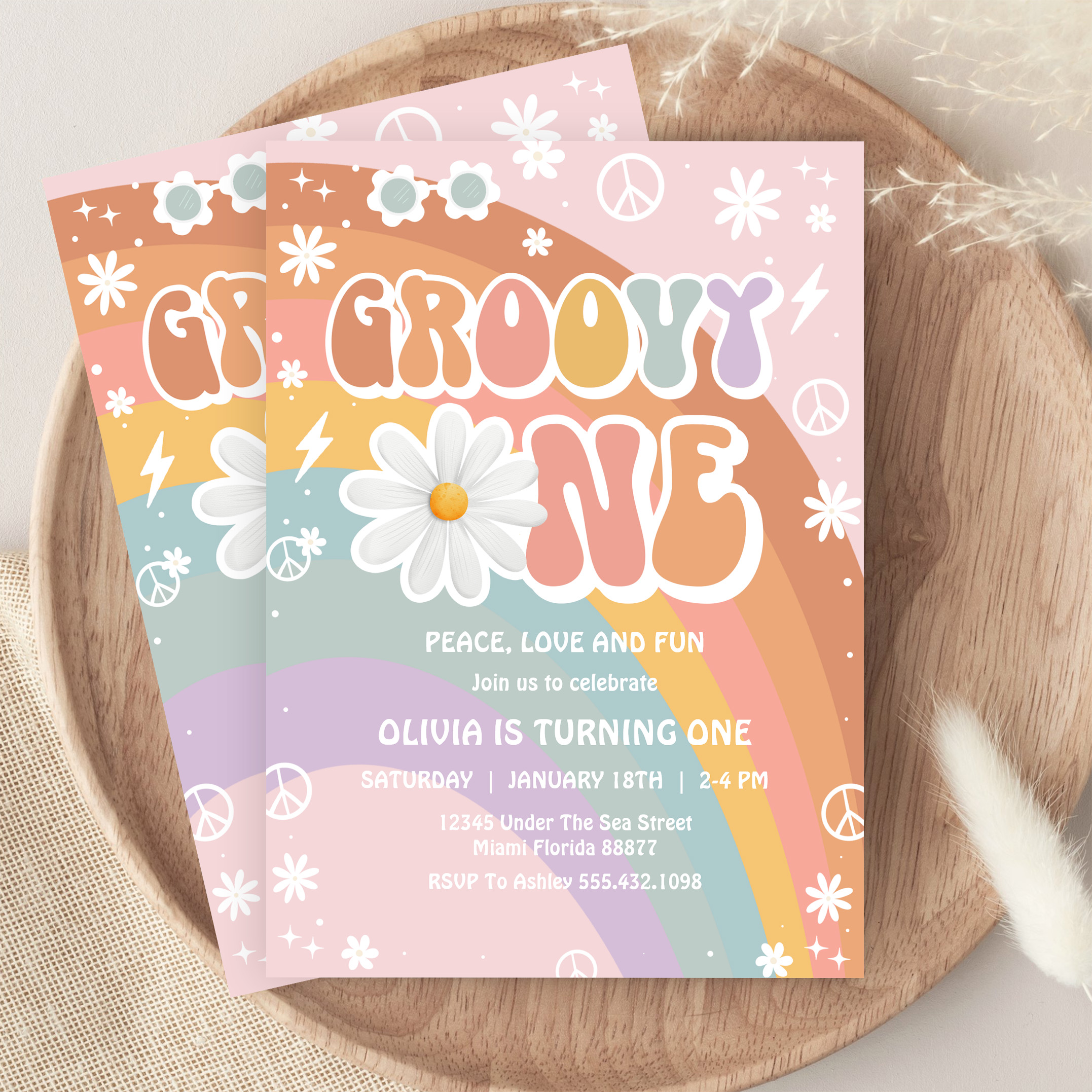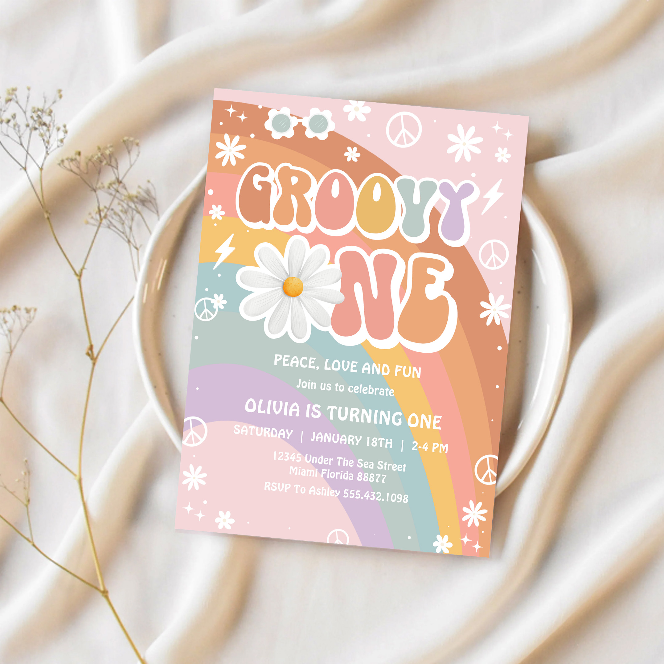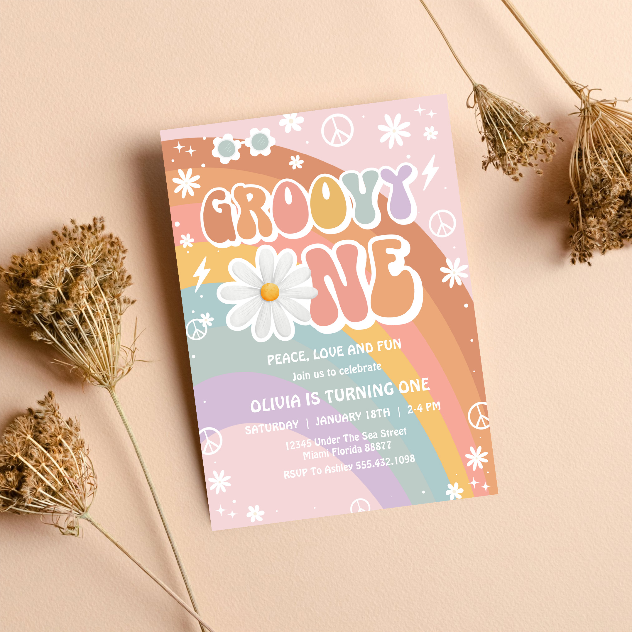 Groovy One Retro Hippie Rainbow 1st Birthday Invitation - Related products