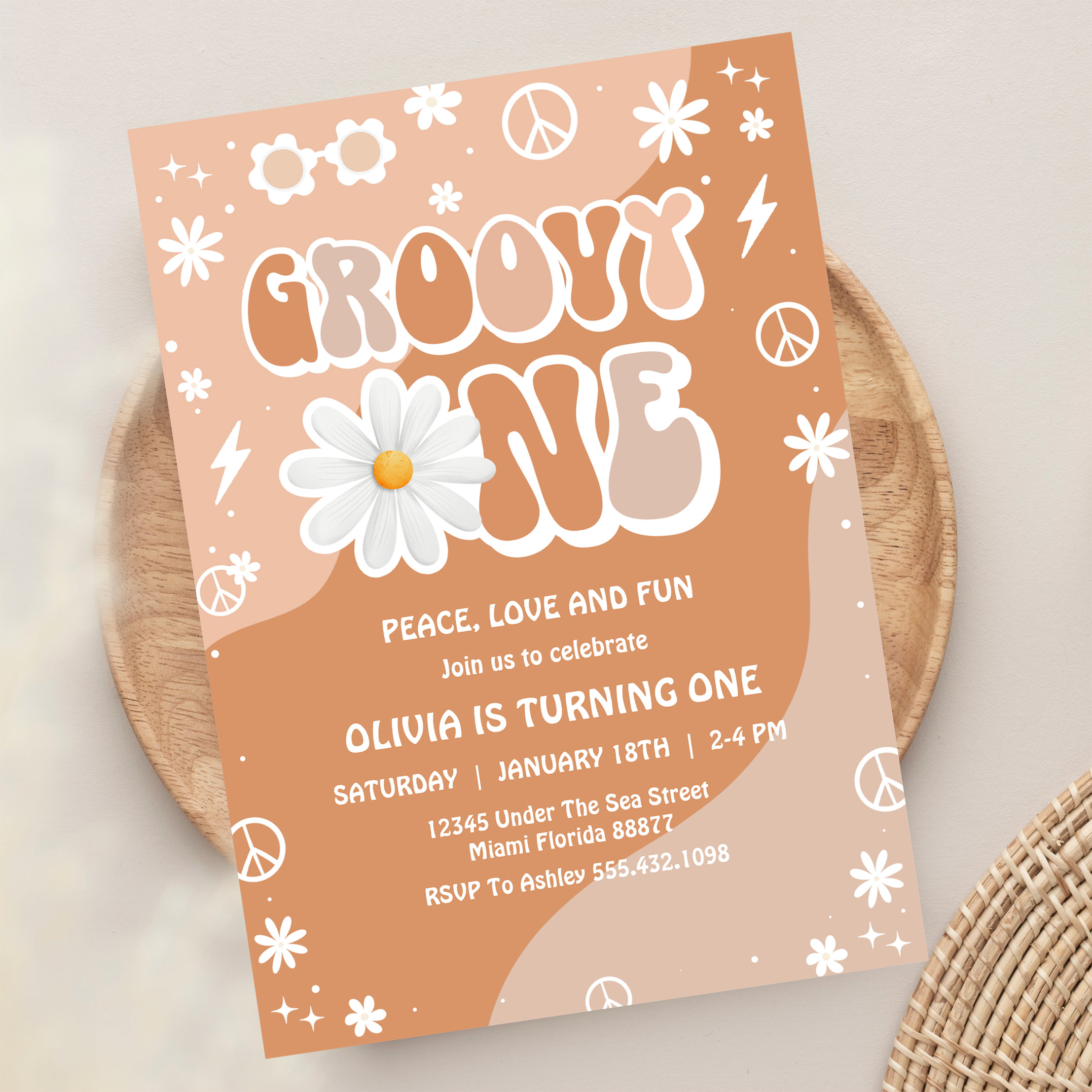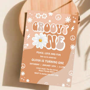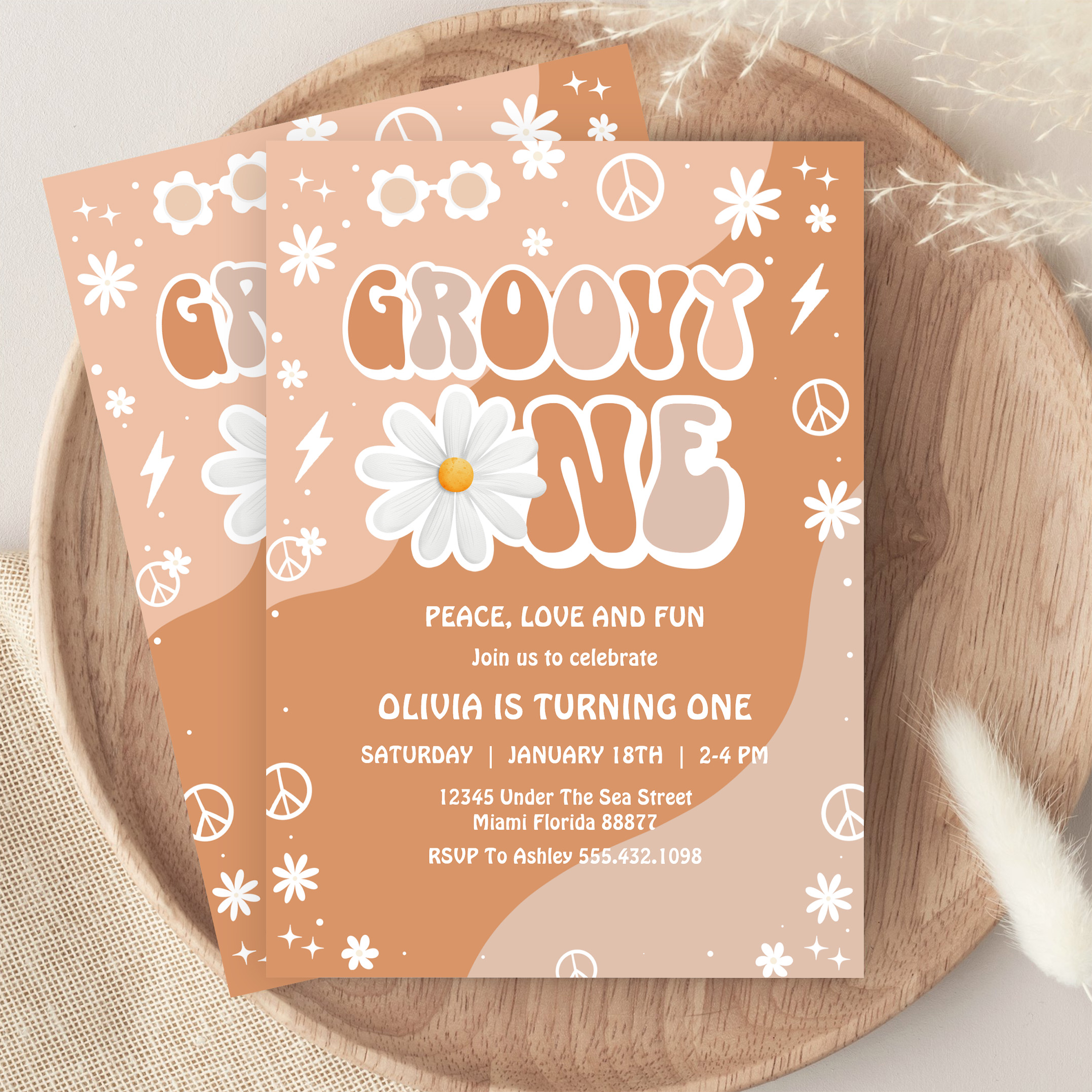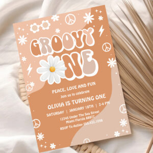 Groovy One Retro Hippie Rainbow Van 1st Birthday I Invitation - Related products