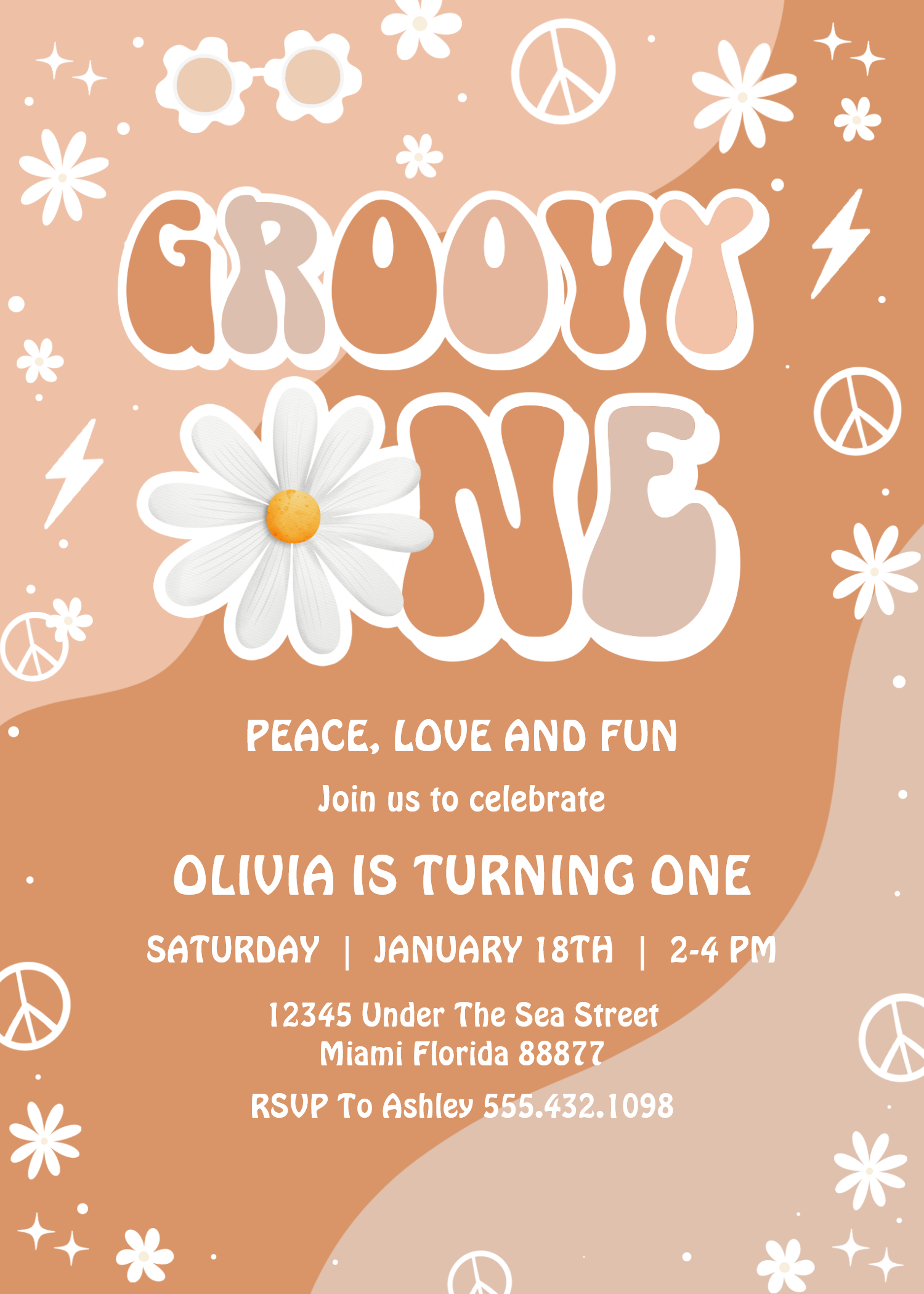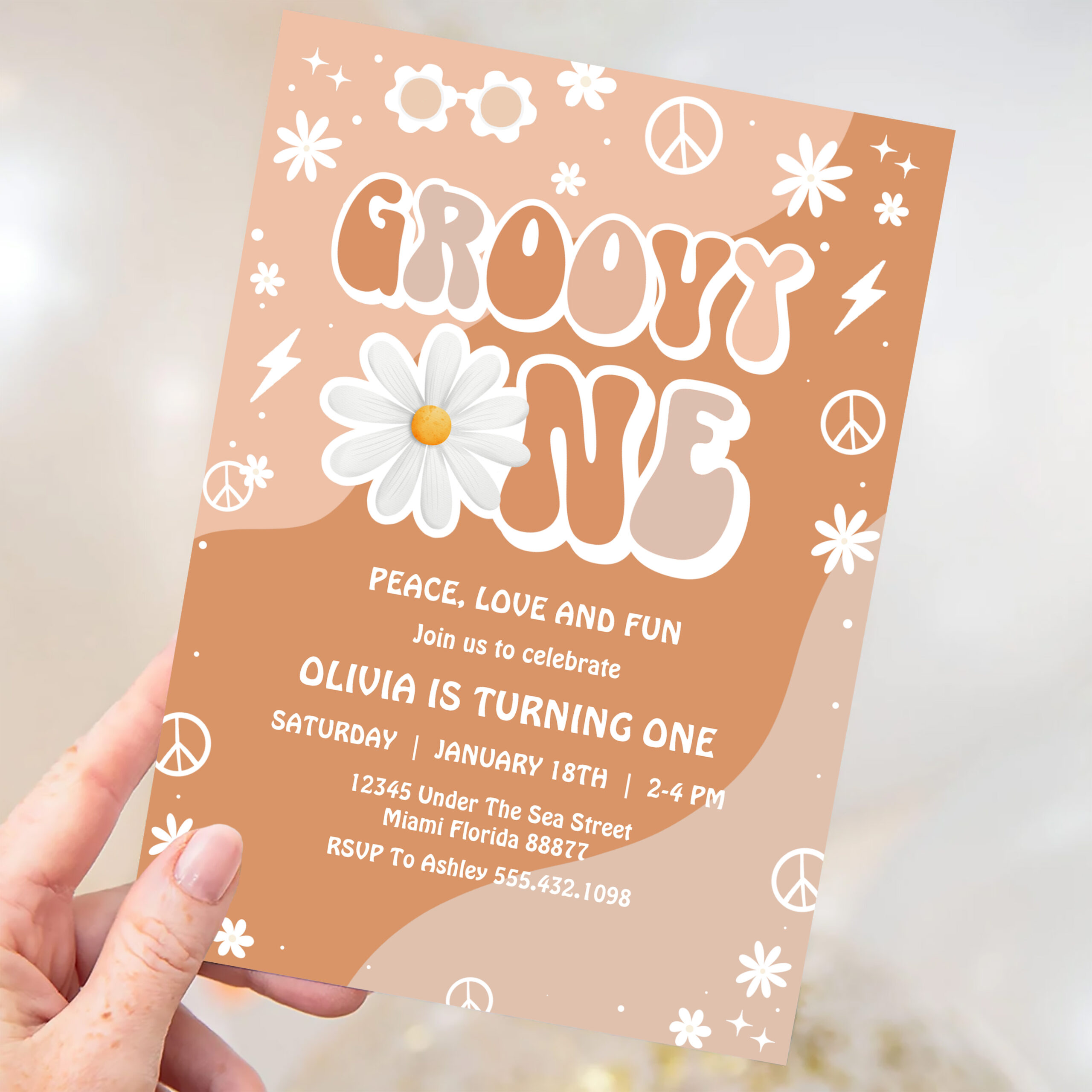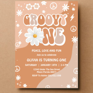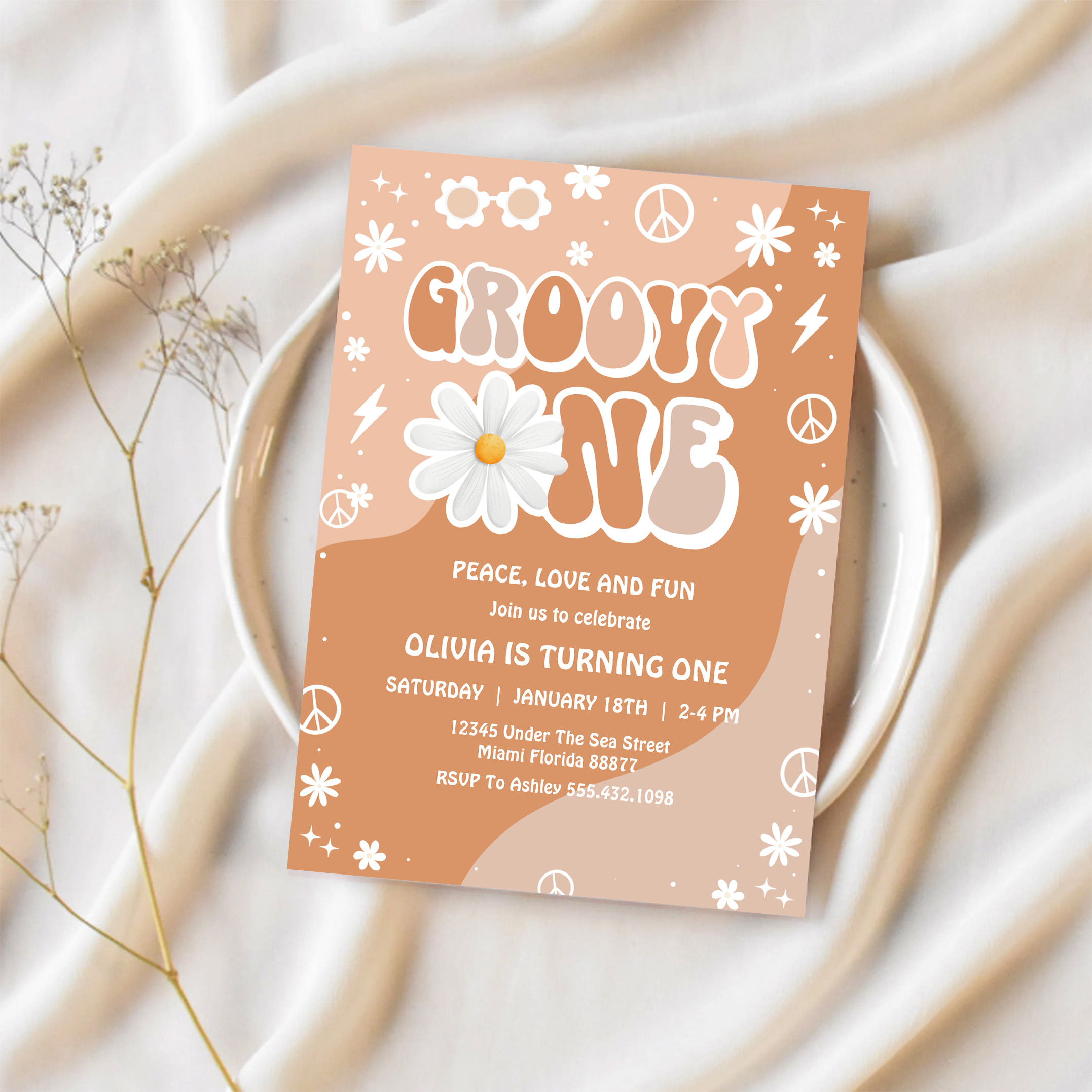 Groovy One Retro Hippie Rainbow Van 1st Birthday I Invitation - Related products