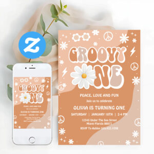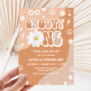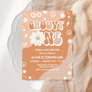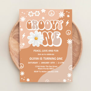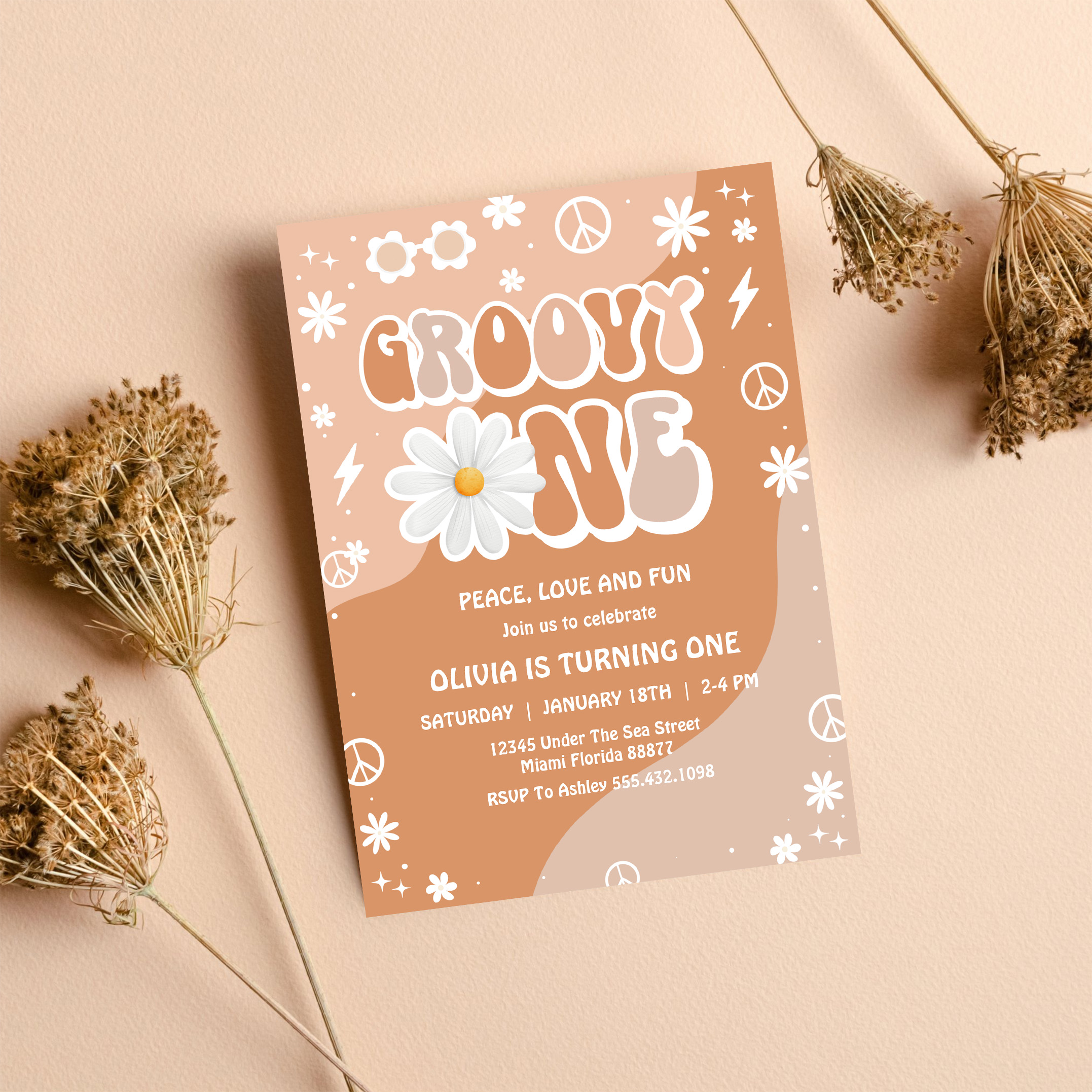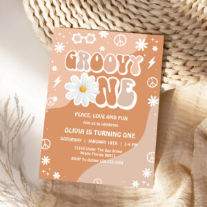 Groovy One Retro Hippie Rainbow Van 1st Birthday I Invitation - Related products