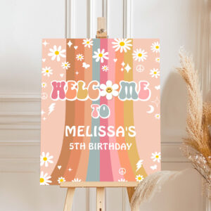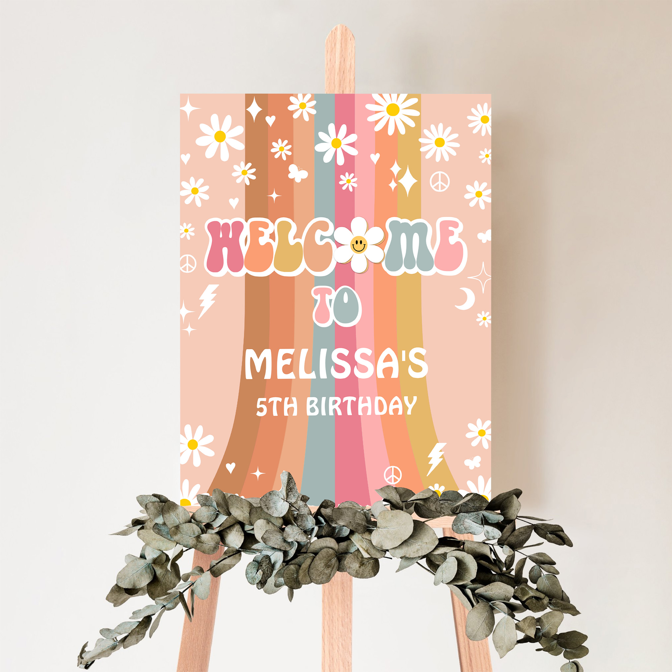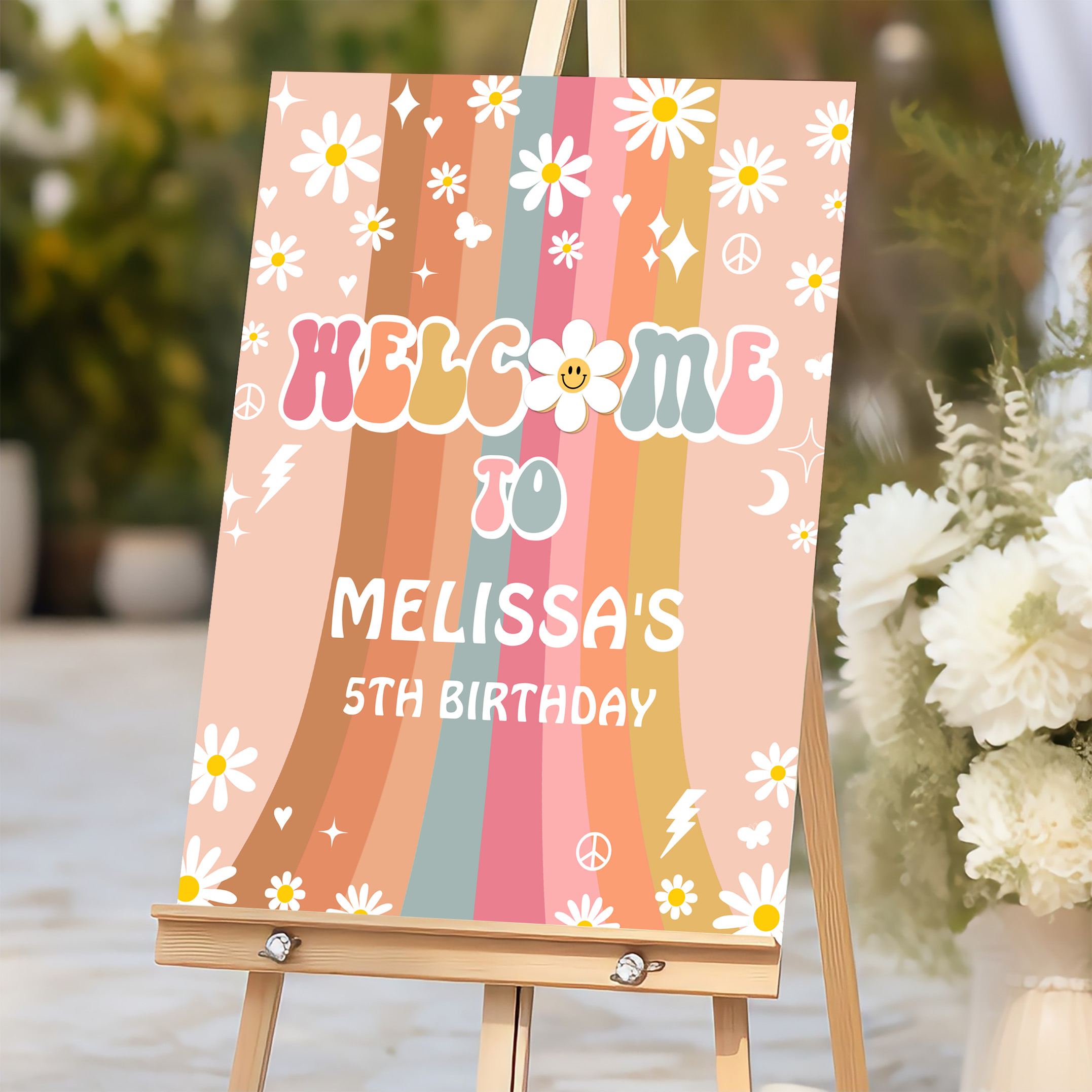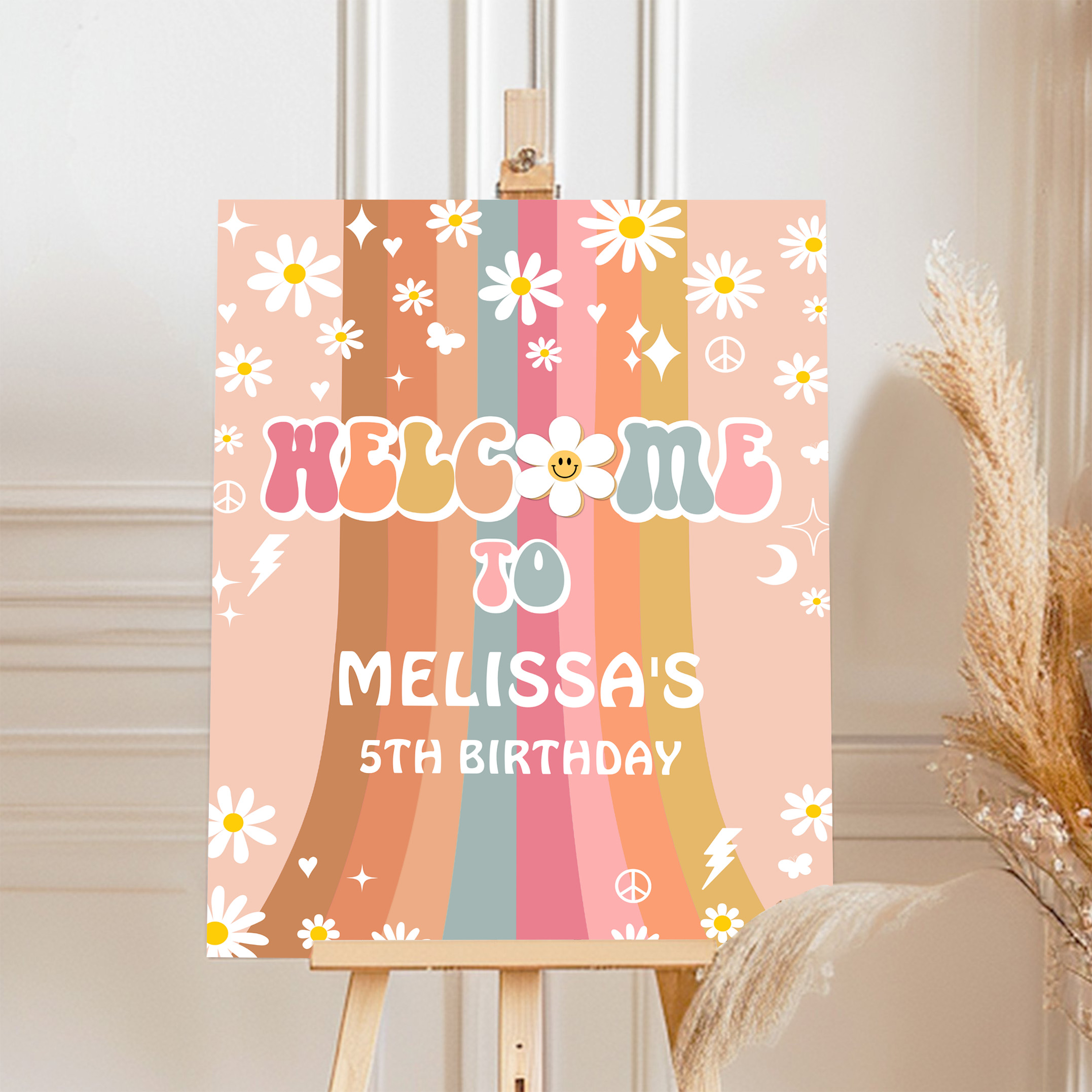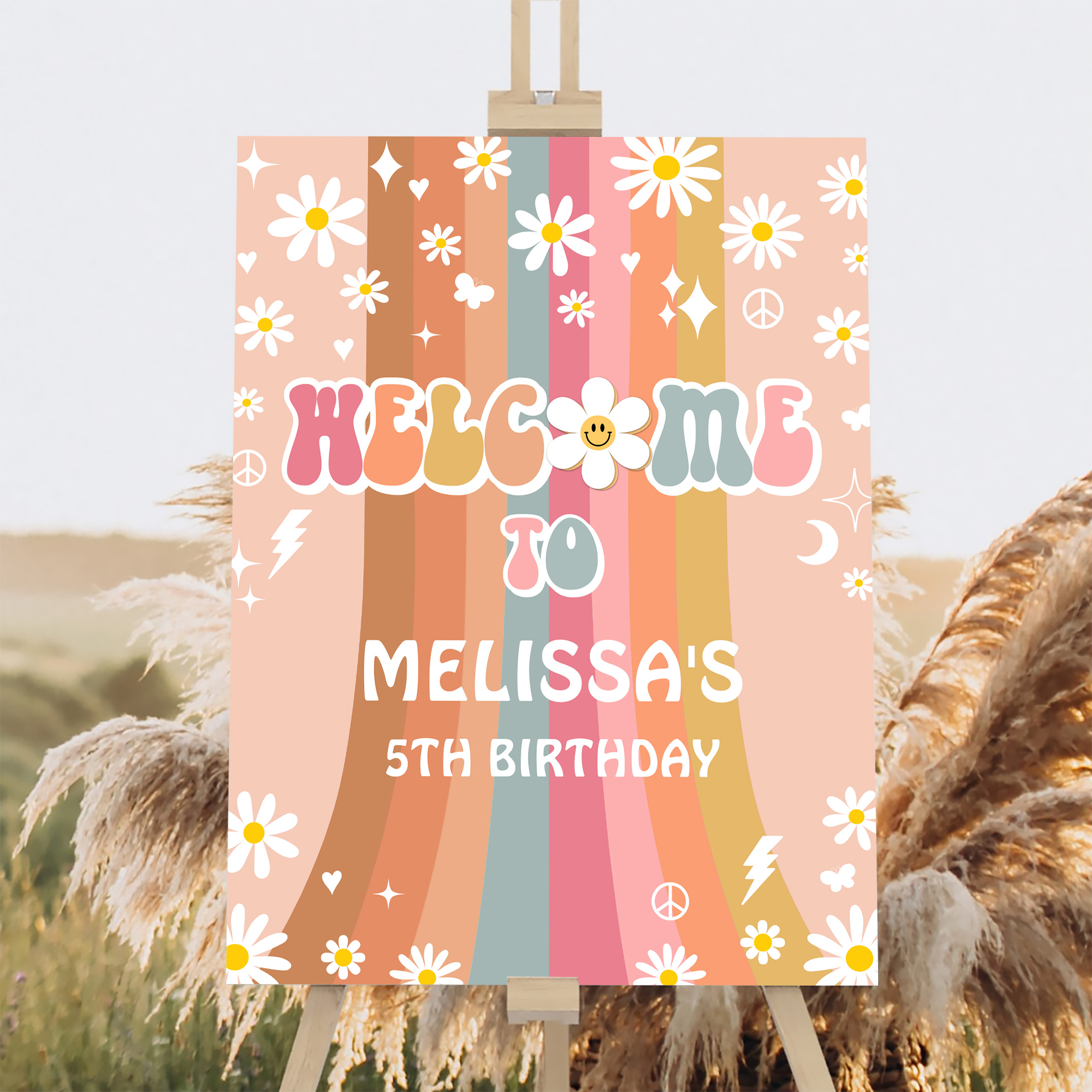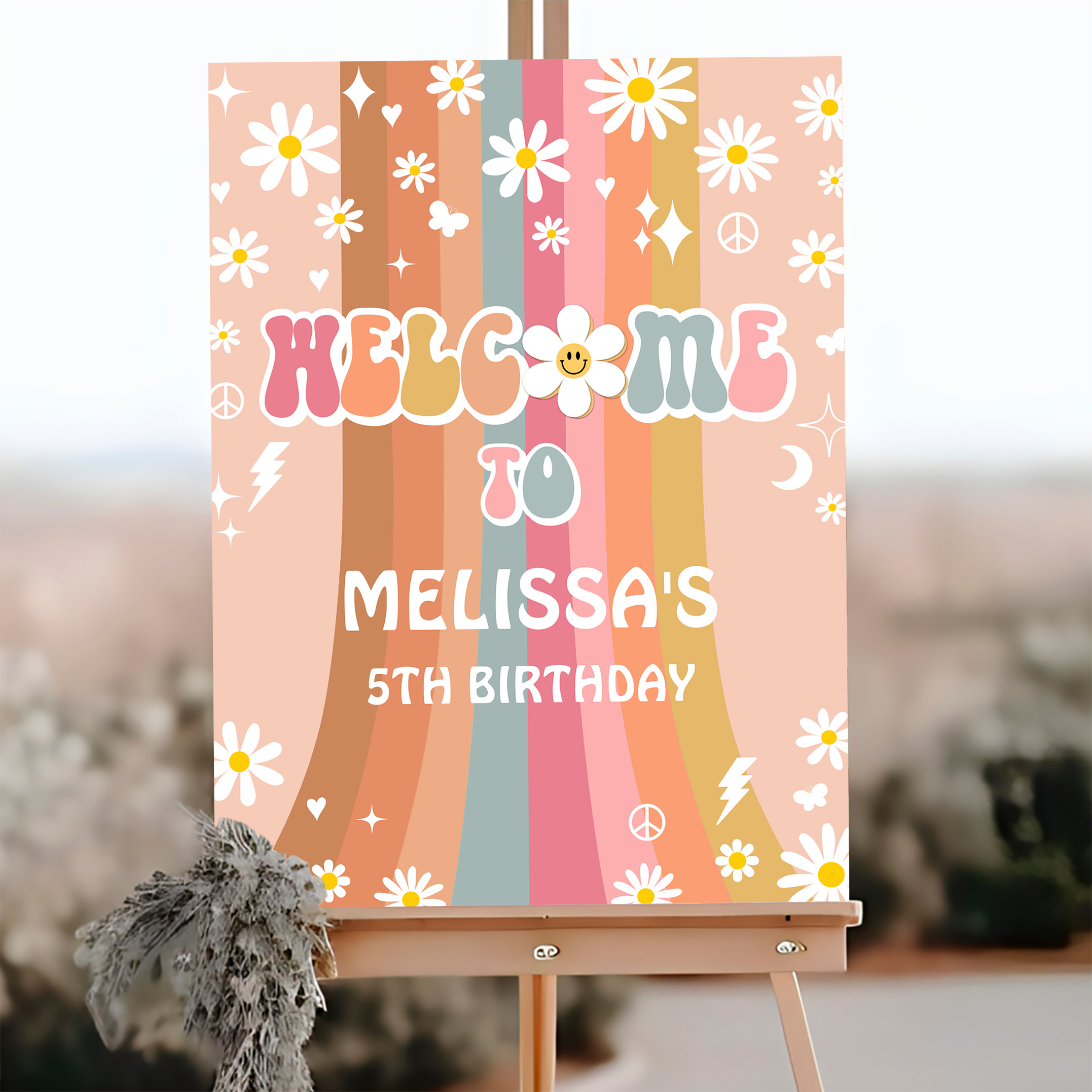 Groovy Rainbow Daisy Retro 70S Welcome Sign