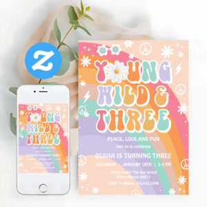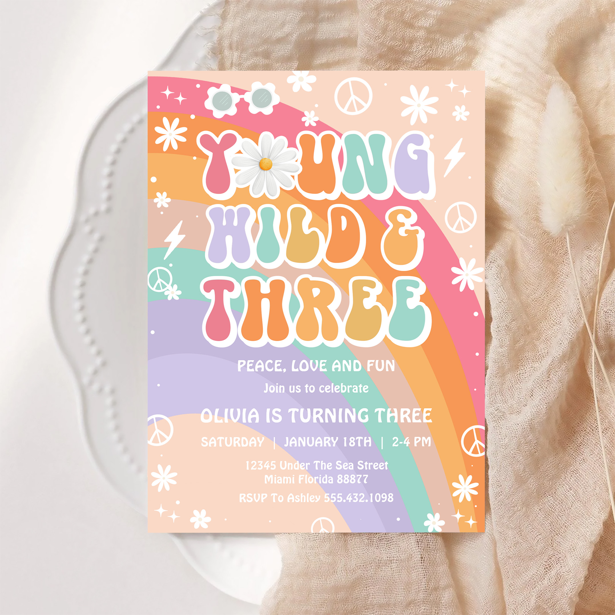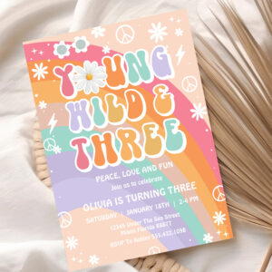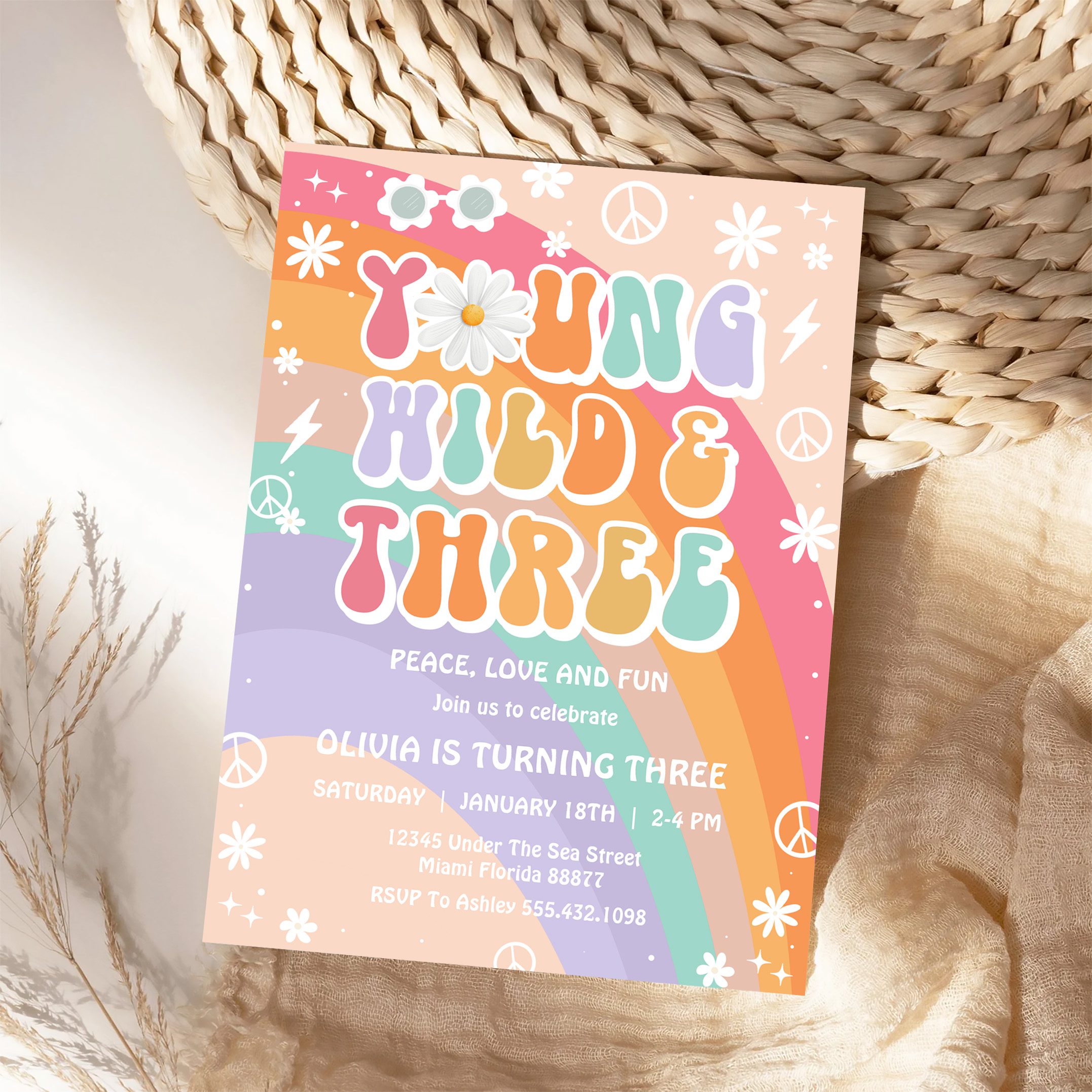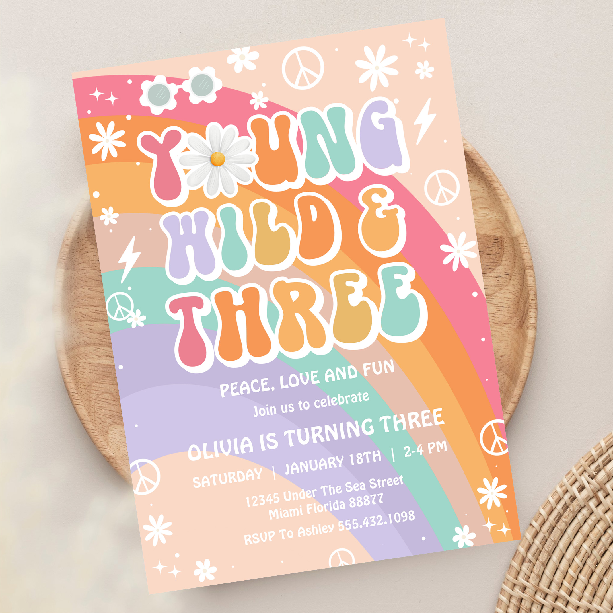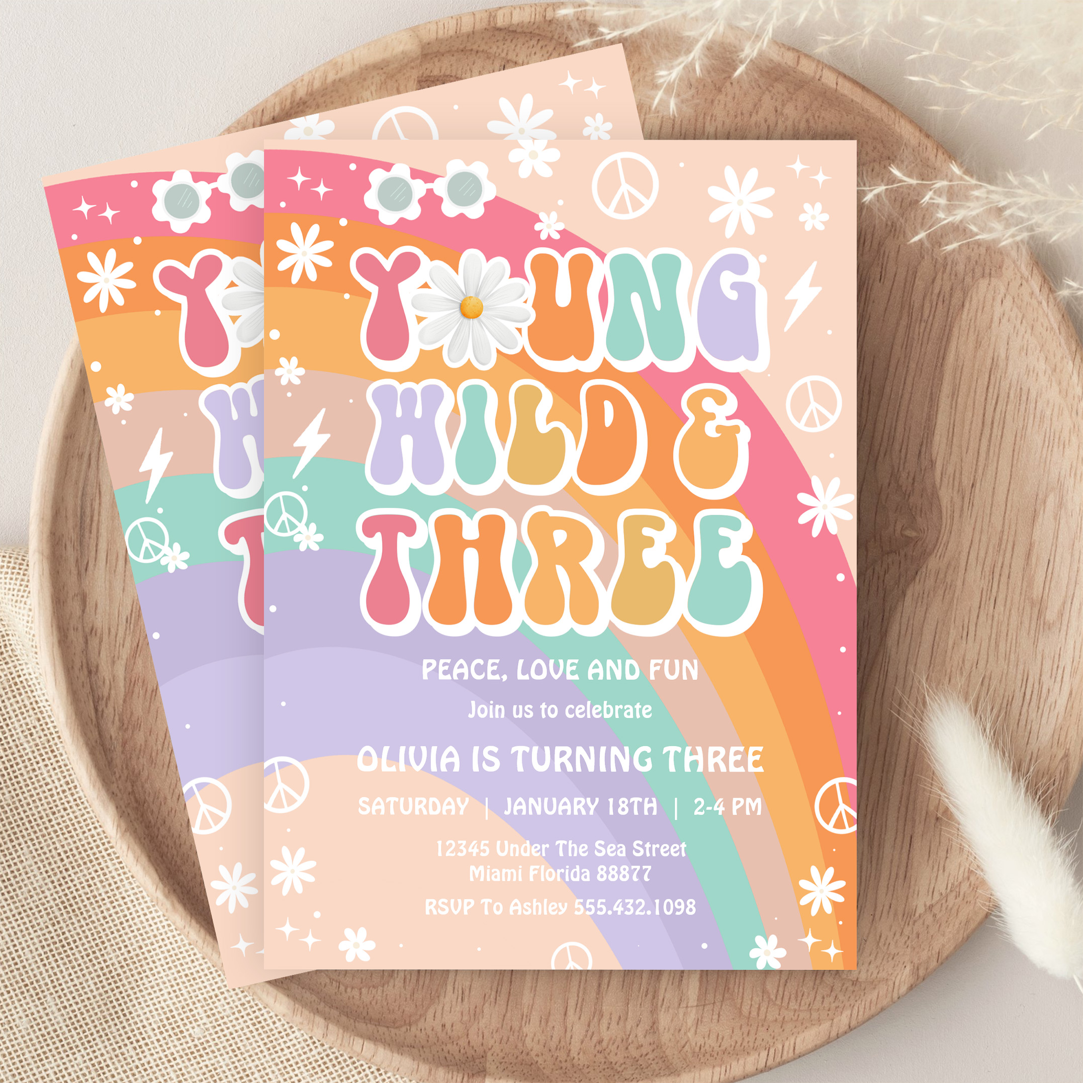 Groovy Young Wild And Three Daisy 3rd Birthday Invitation - Related products