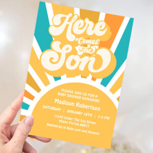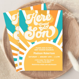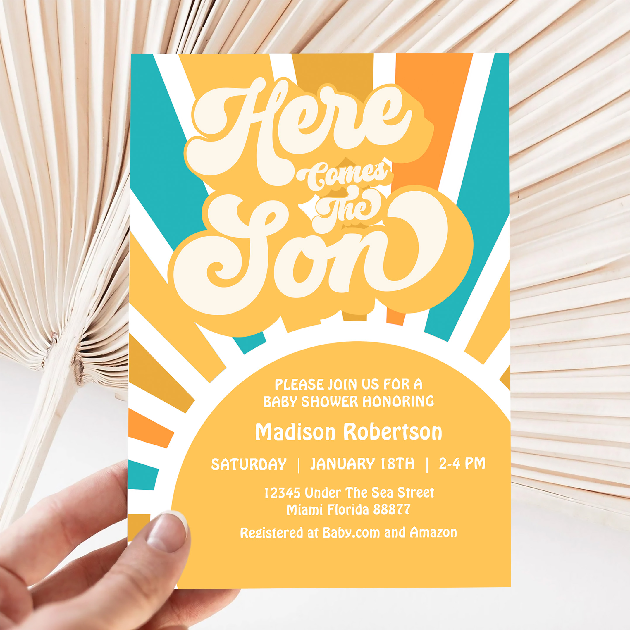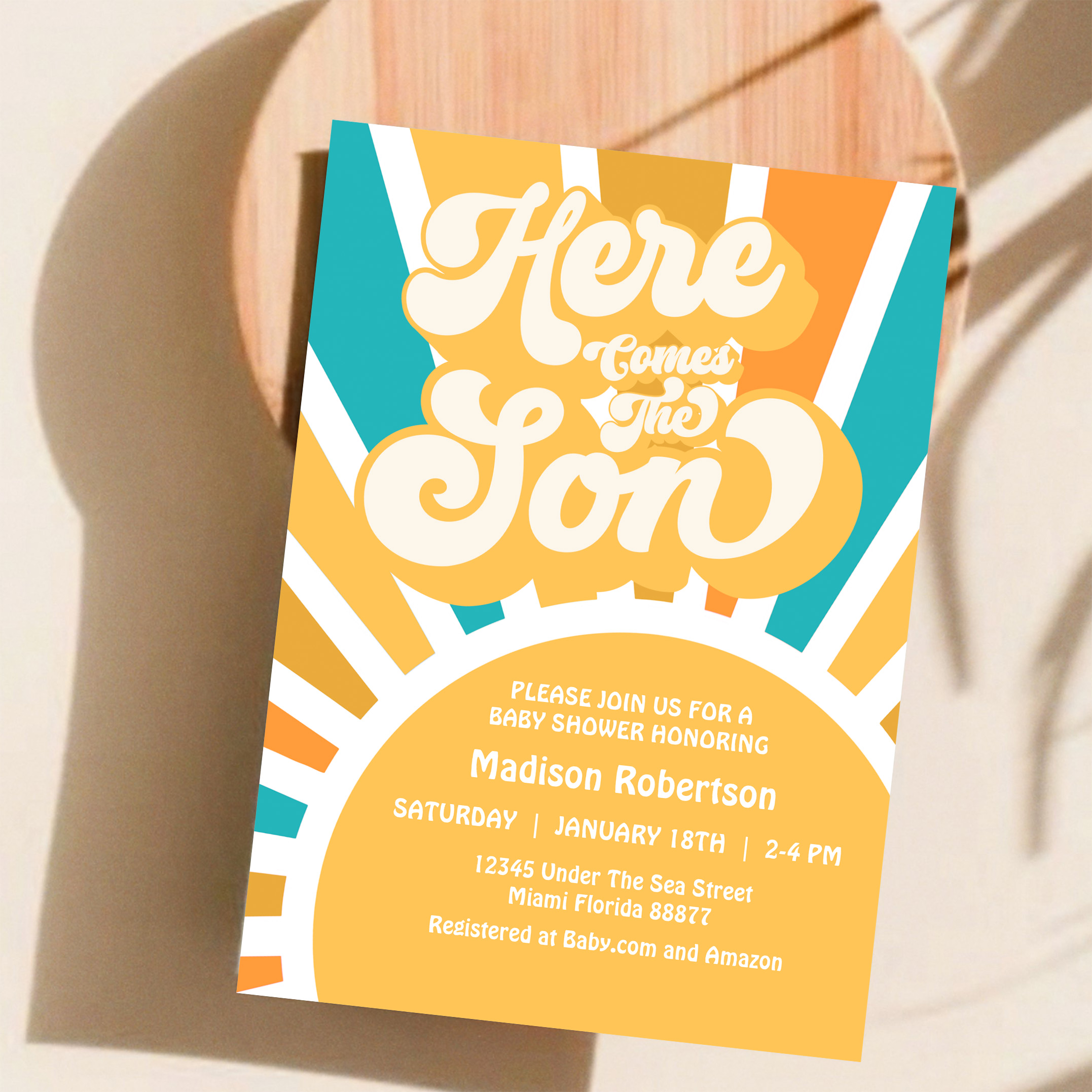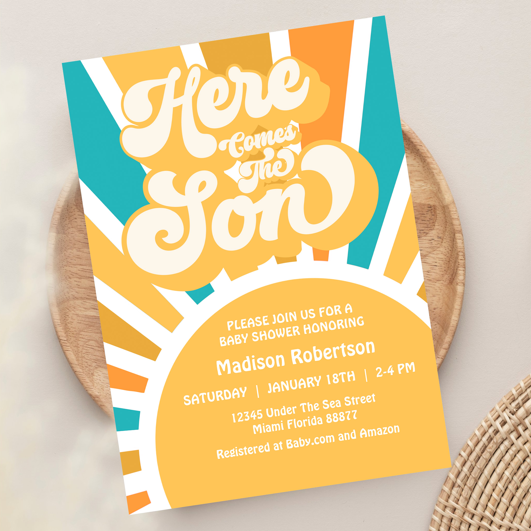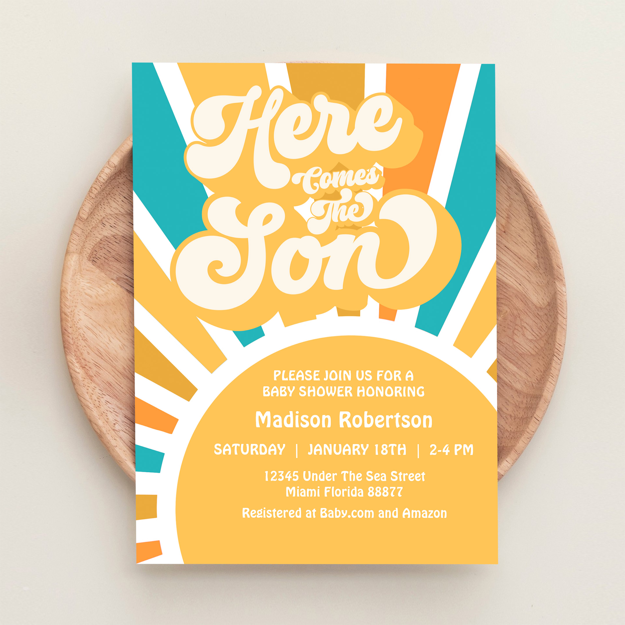Here Come The Son Retro Sunshine Baby Shower Invitation - Related products