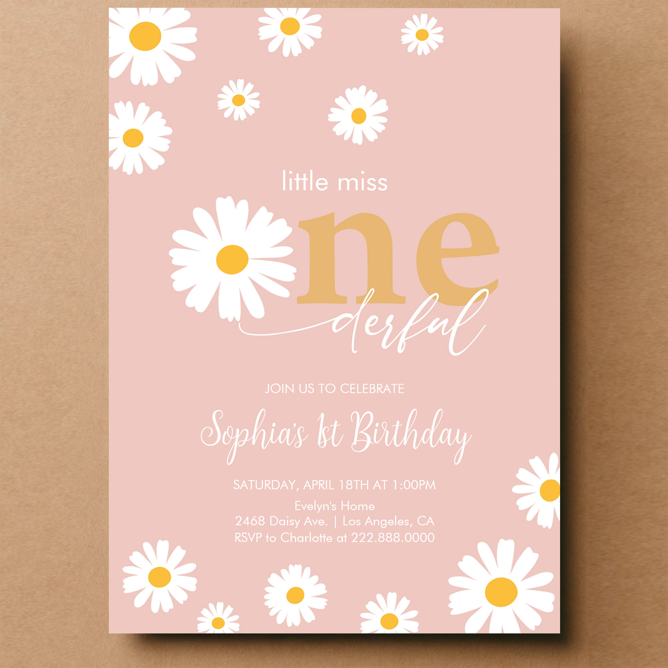 Hippie 70S Little Miss Onederful Birthday Daisy Invitation