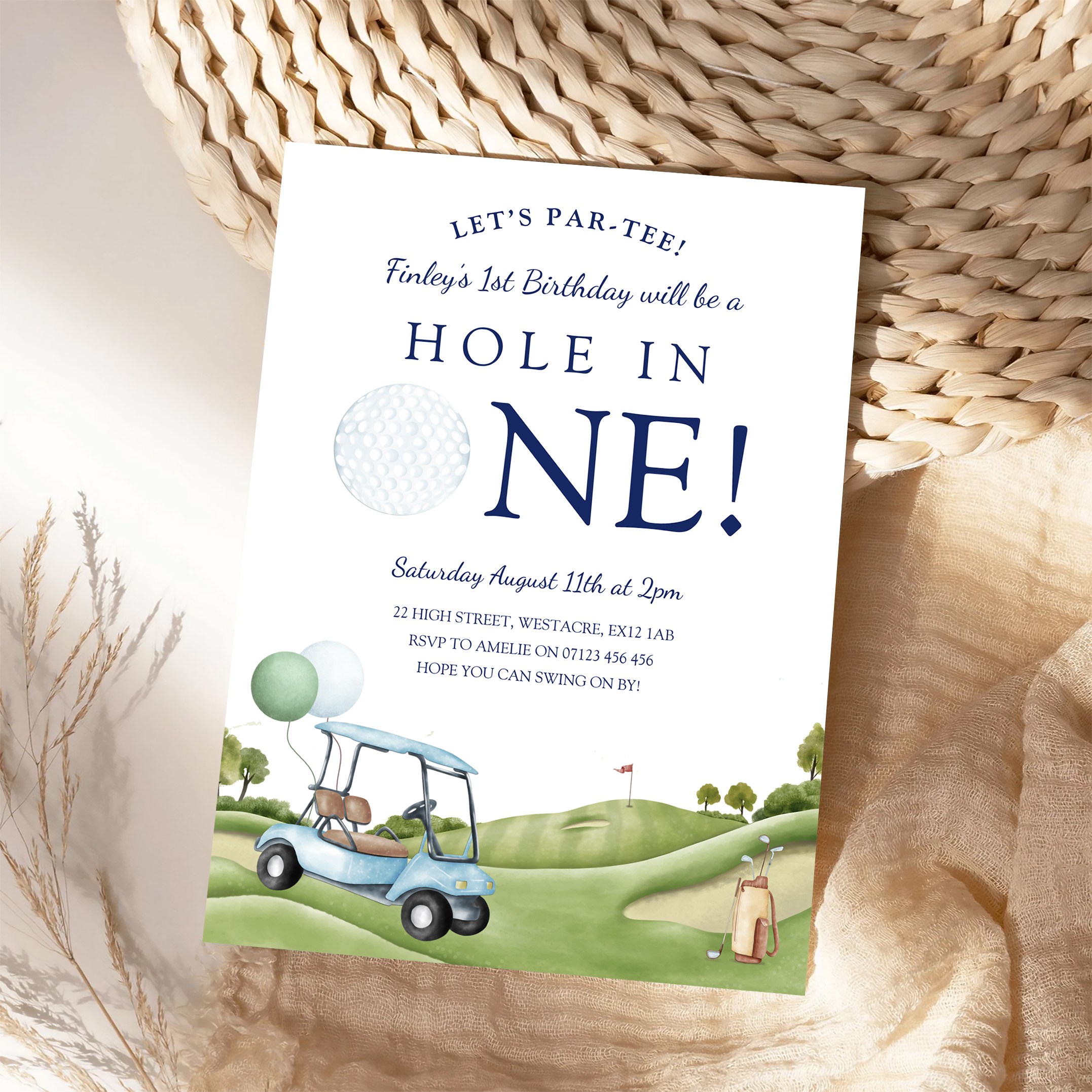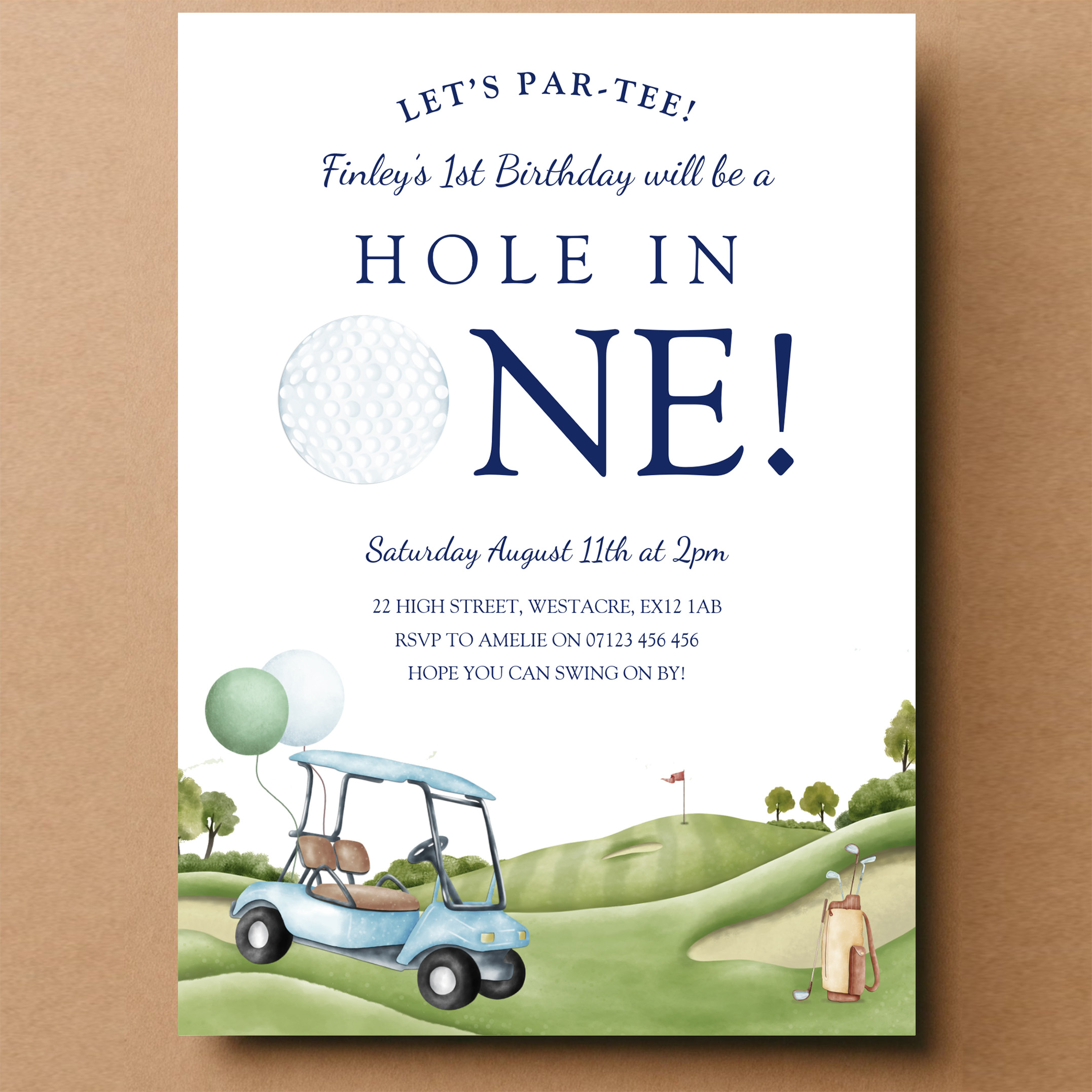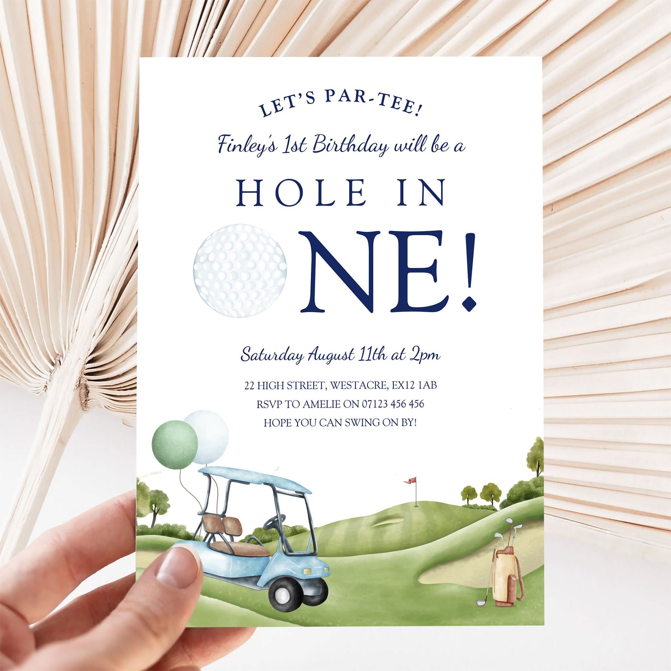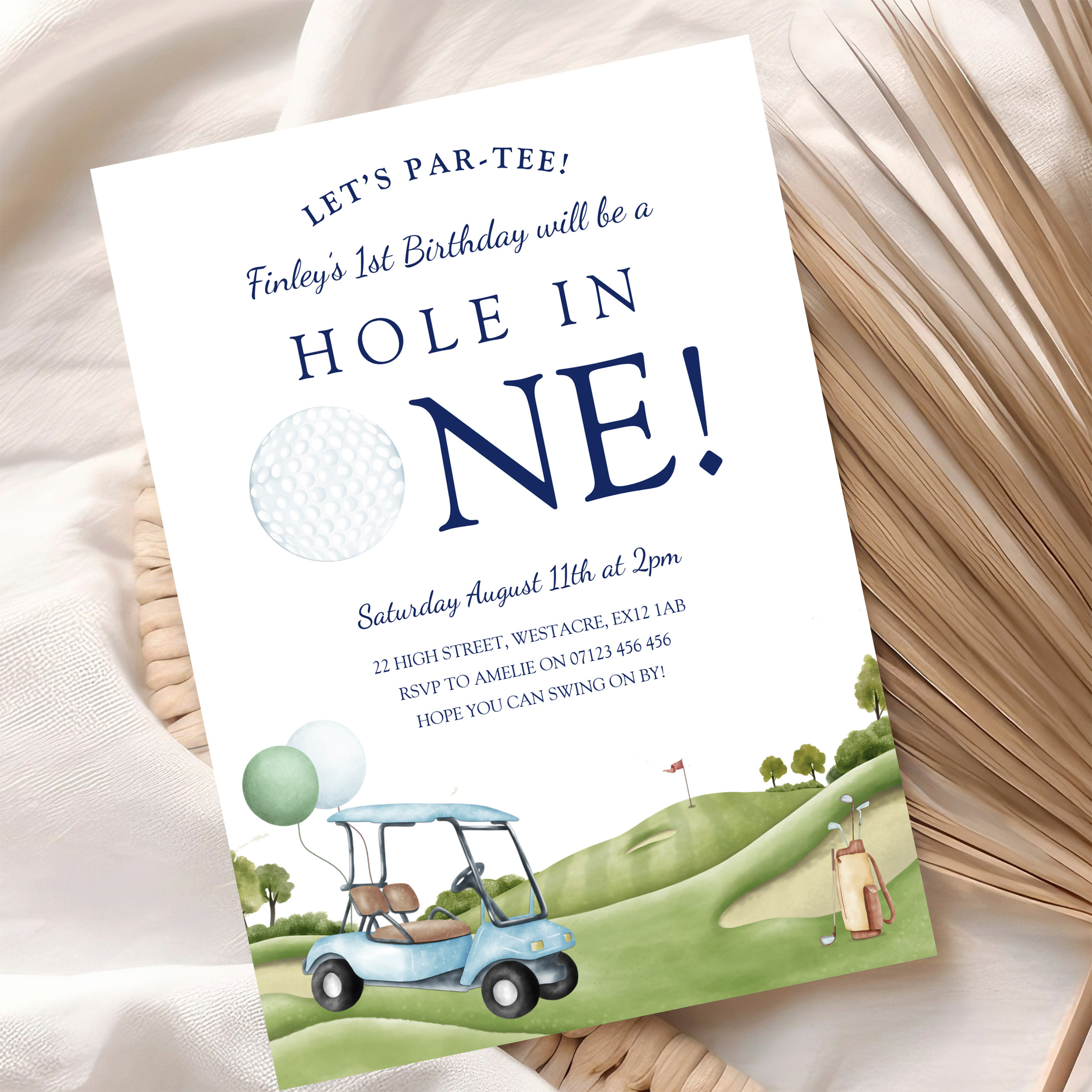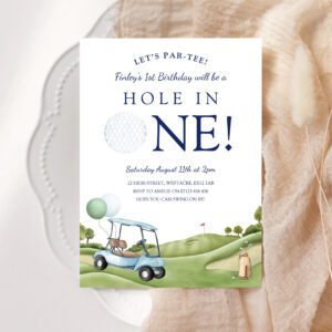 Hole In One Golf Par Tee 1st First Birthday Invitation