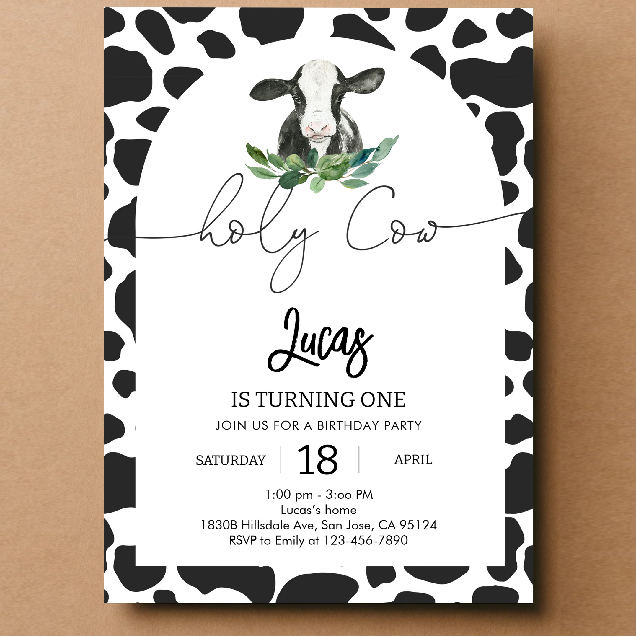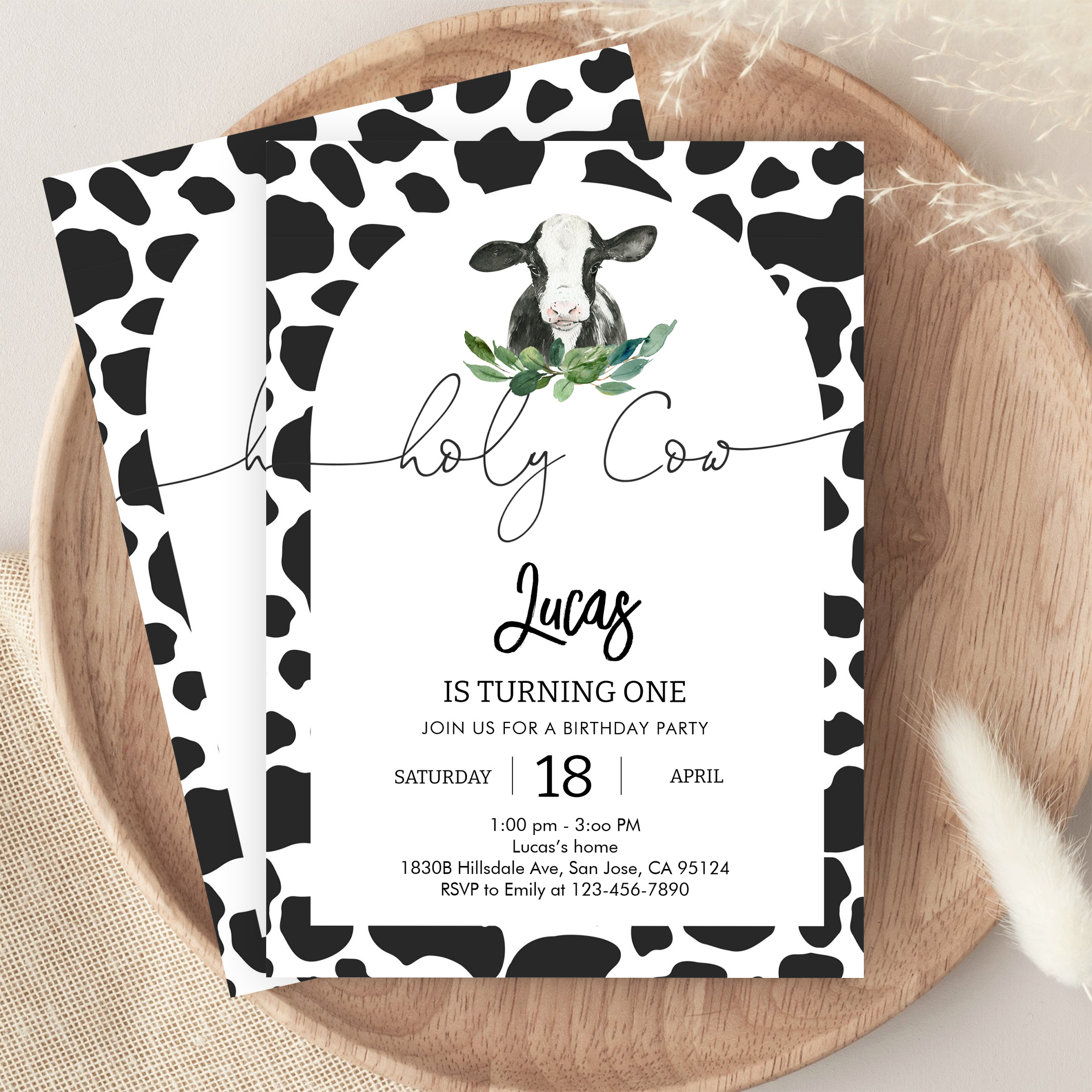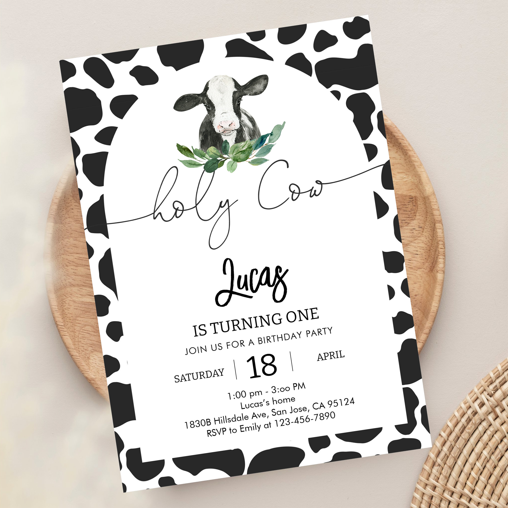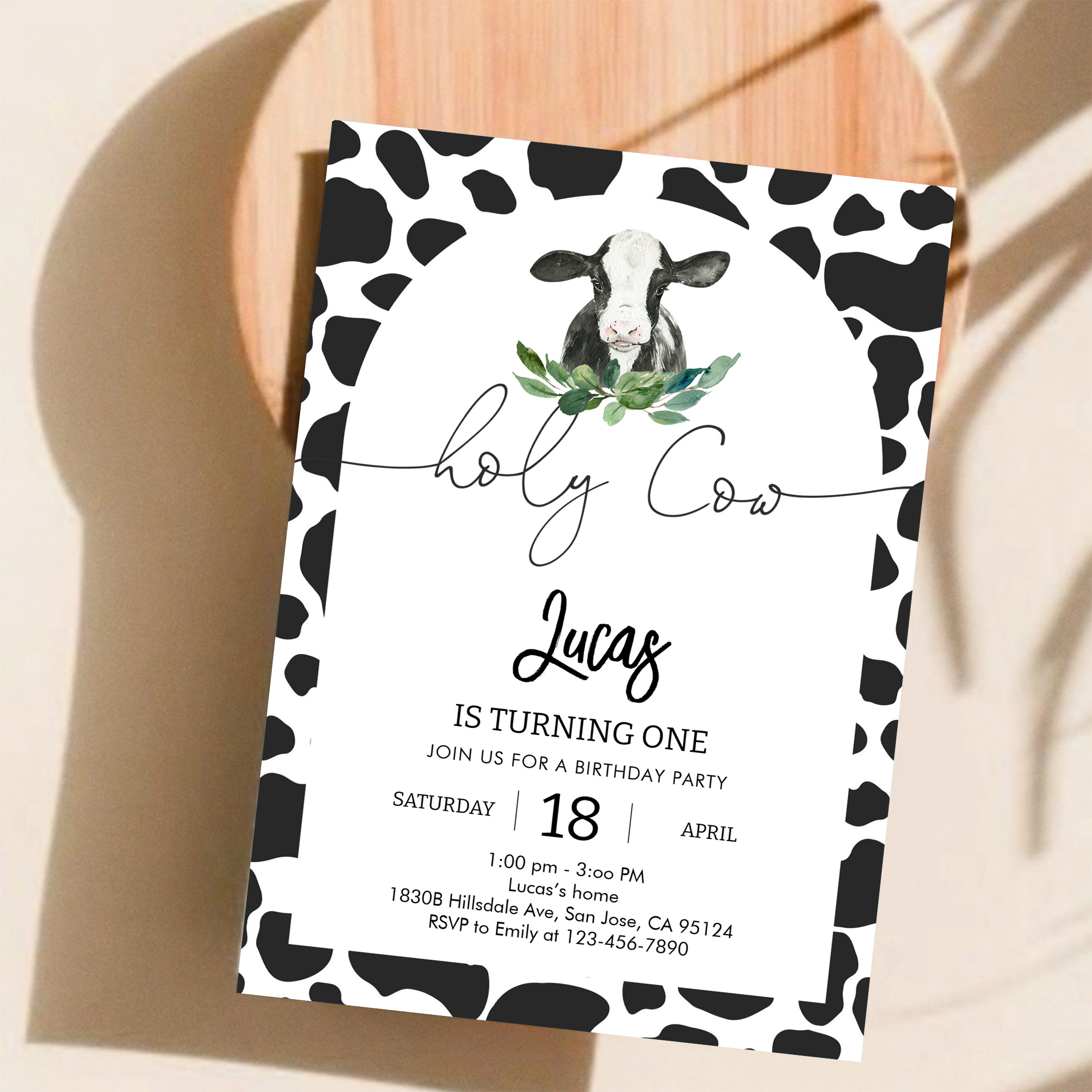 Holy Cow Im One Cow 1st Boy Farm Birthday Invitation