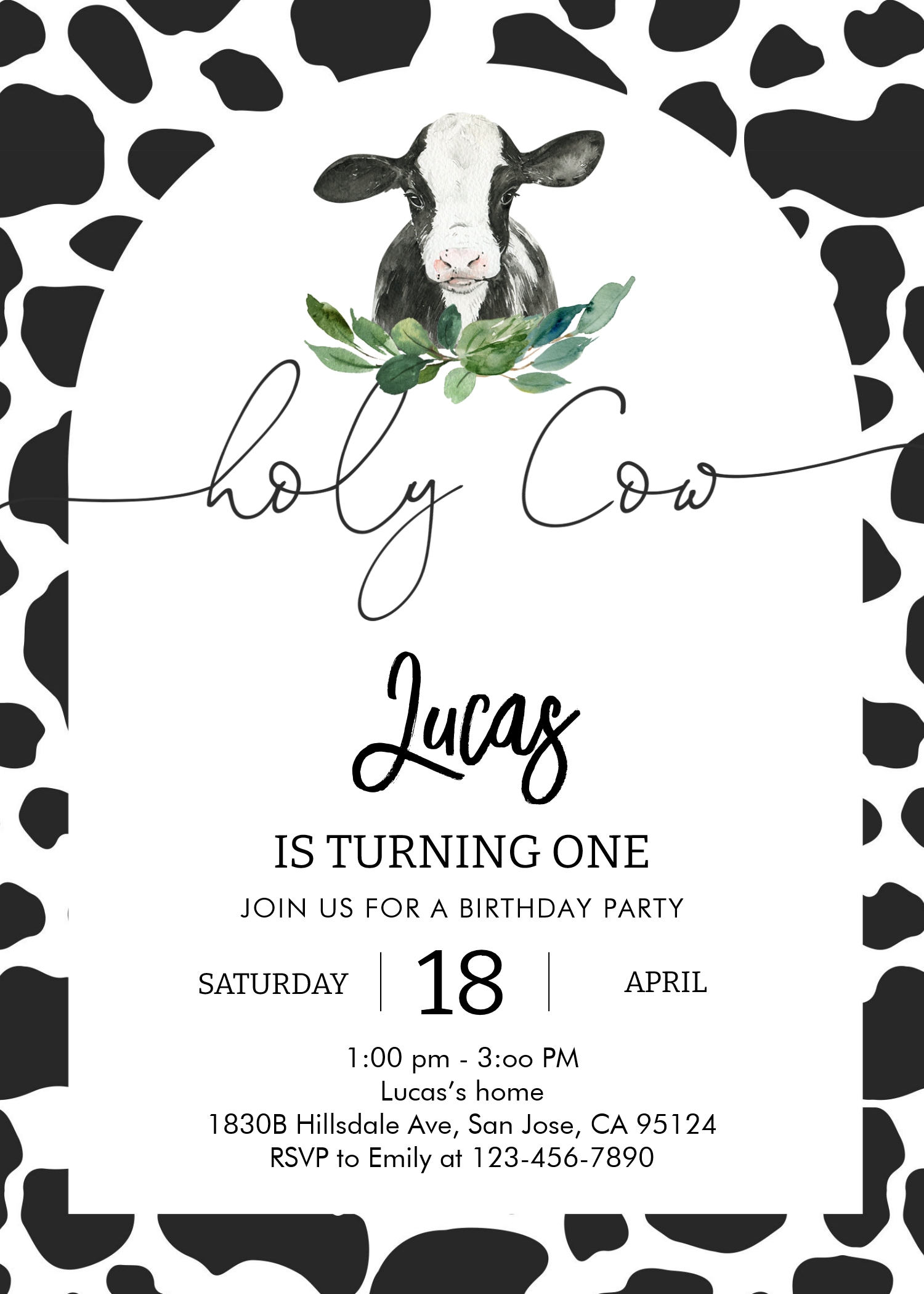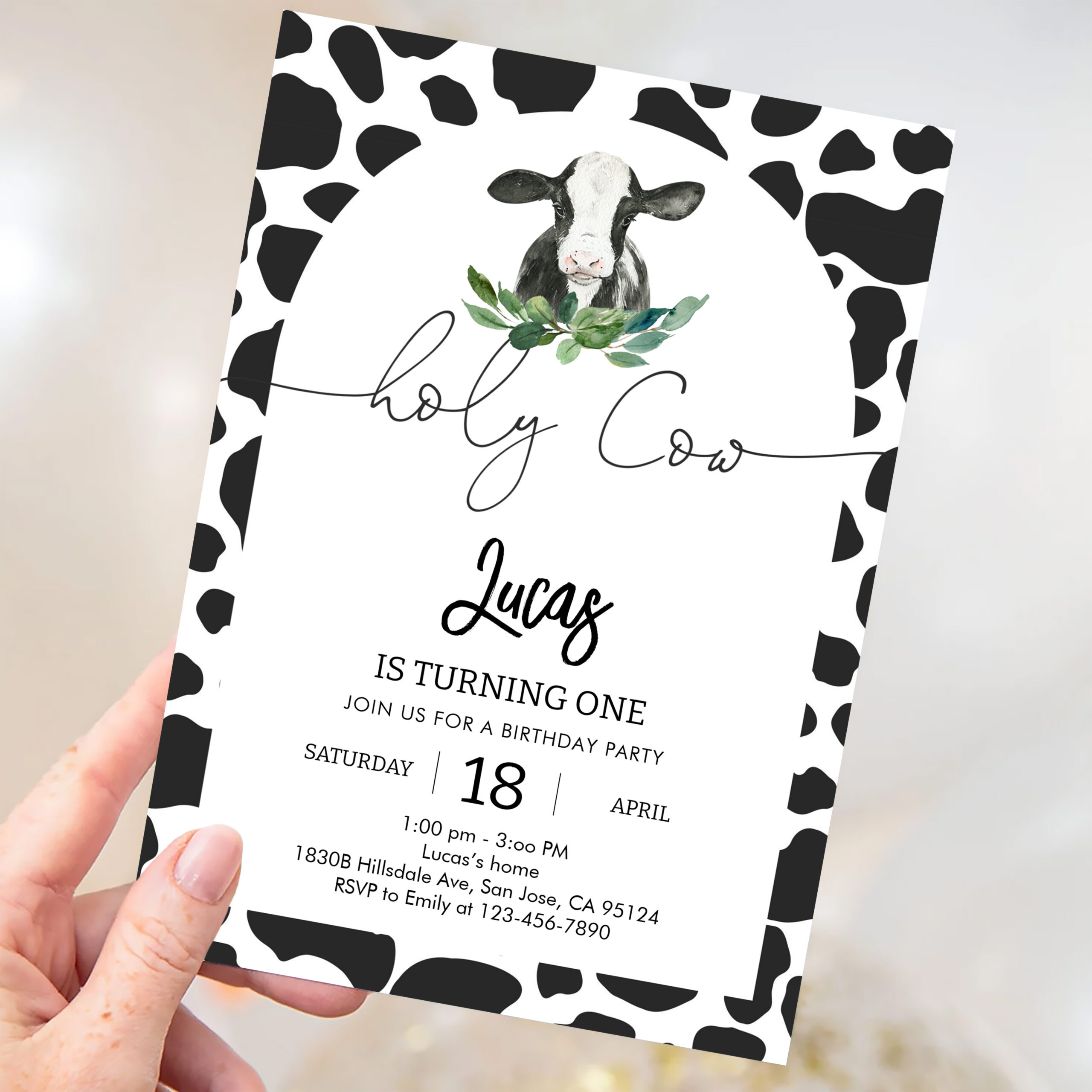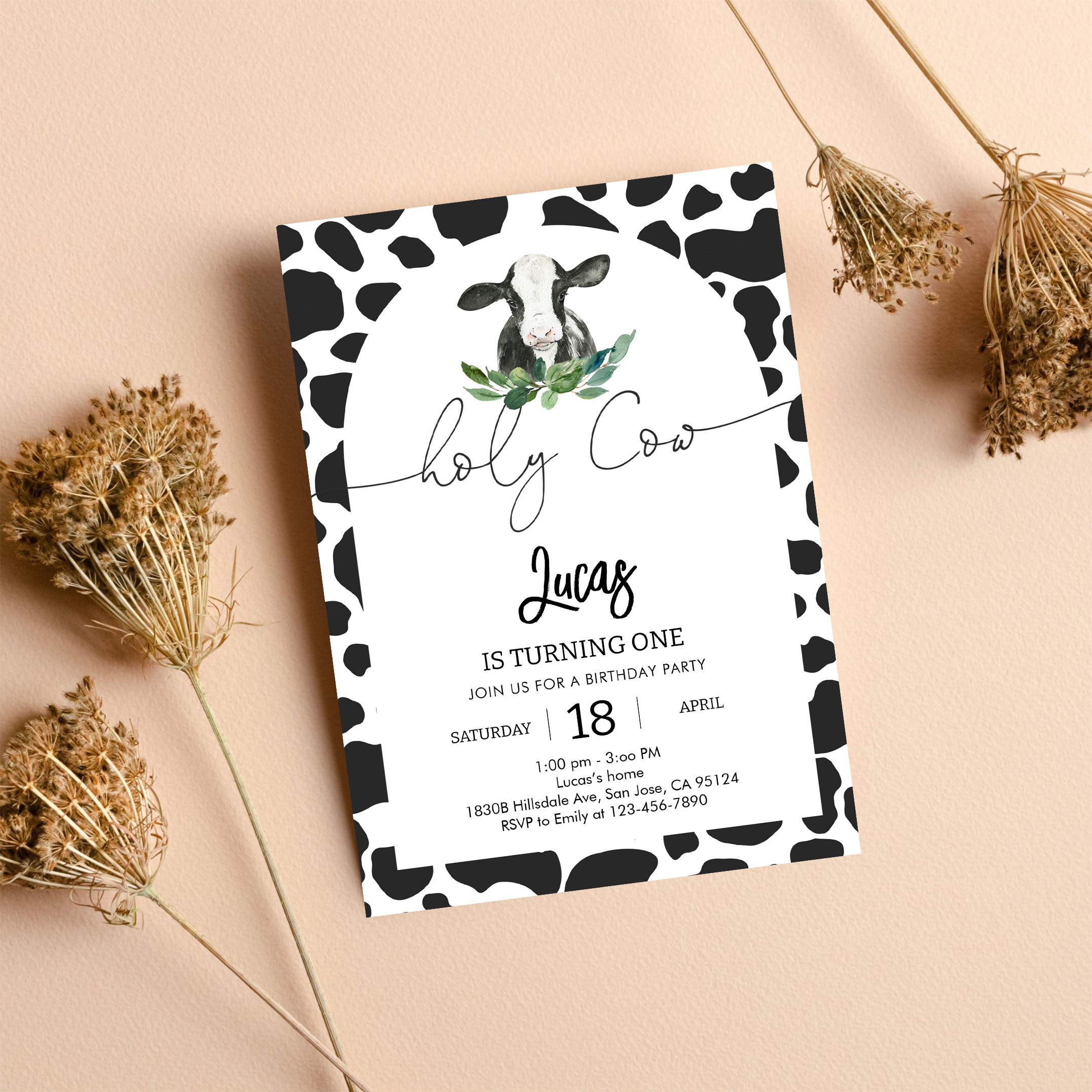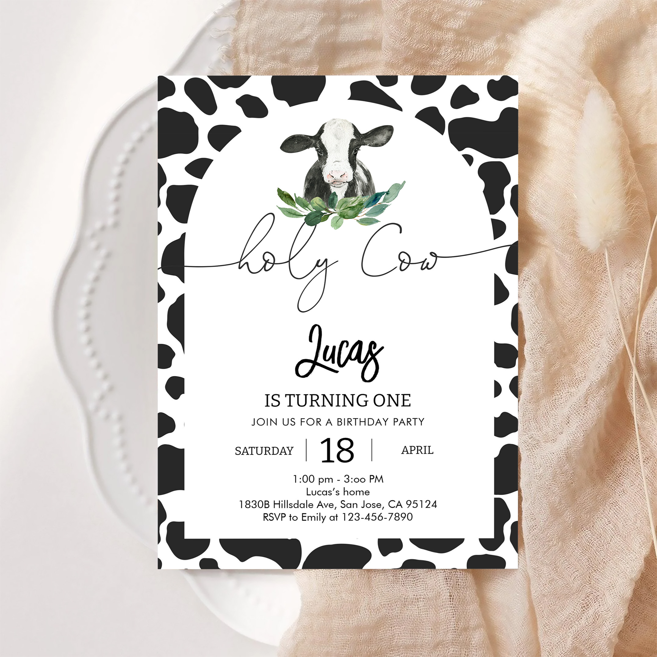 Holy Cow Im One Cow 1st Boy Farm Birthday Invitation