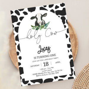 Holy Cow Im One Cow 1st Boy Farm Birthday Invitation - Related products