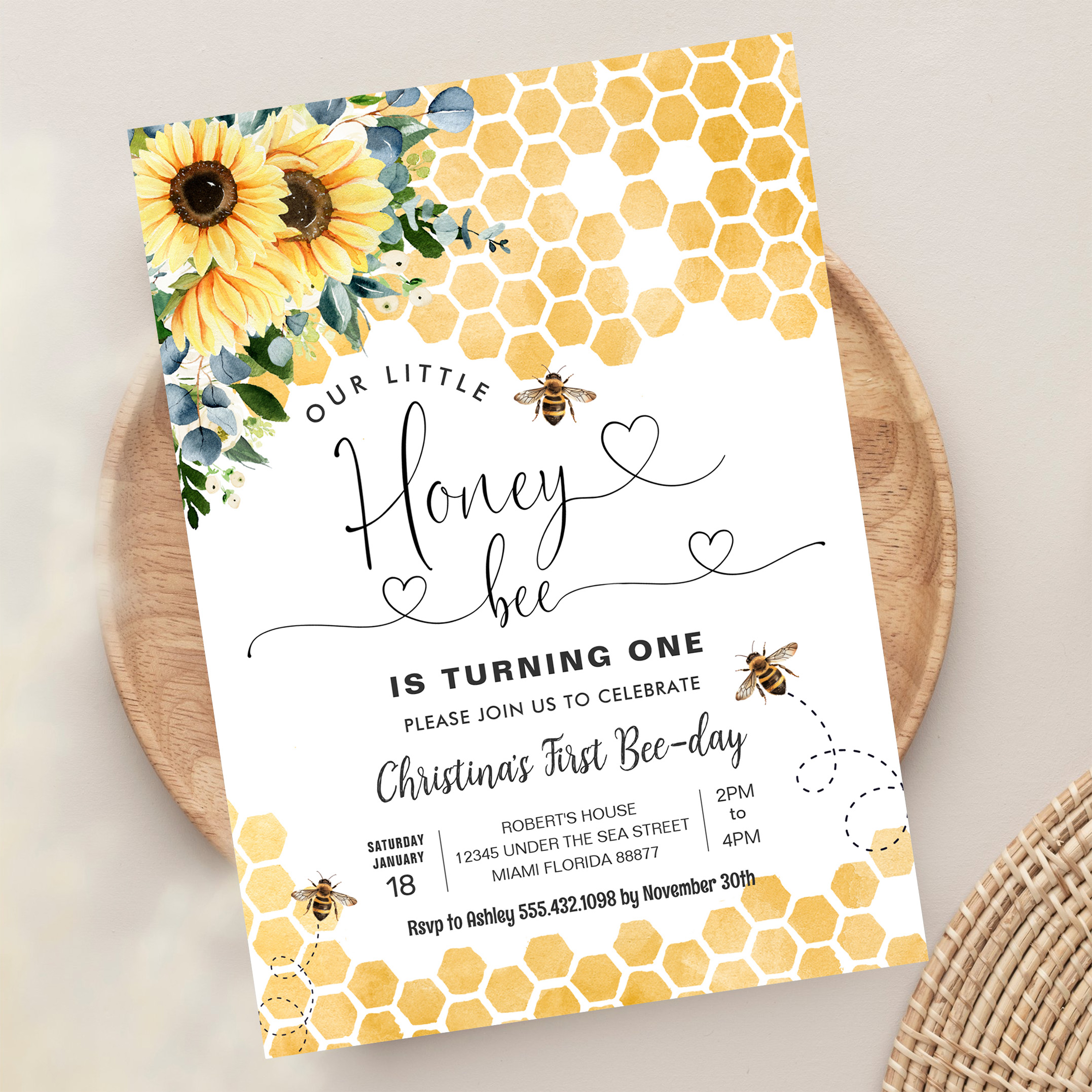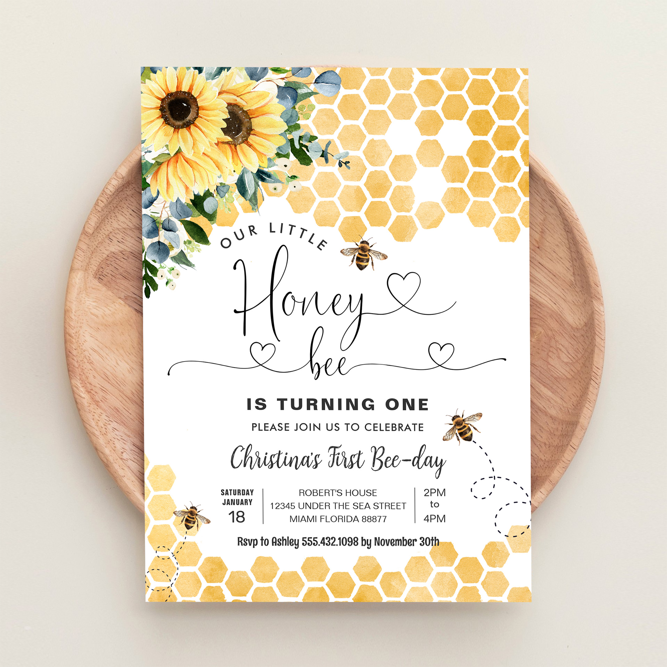 Honey Bee 1st Bee Party Birthday Invitation - Related products