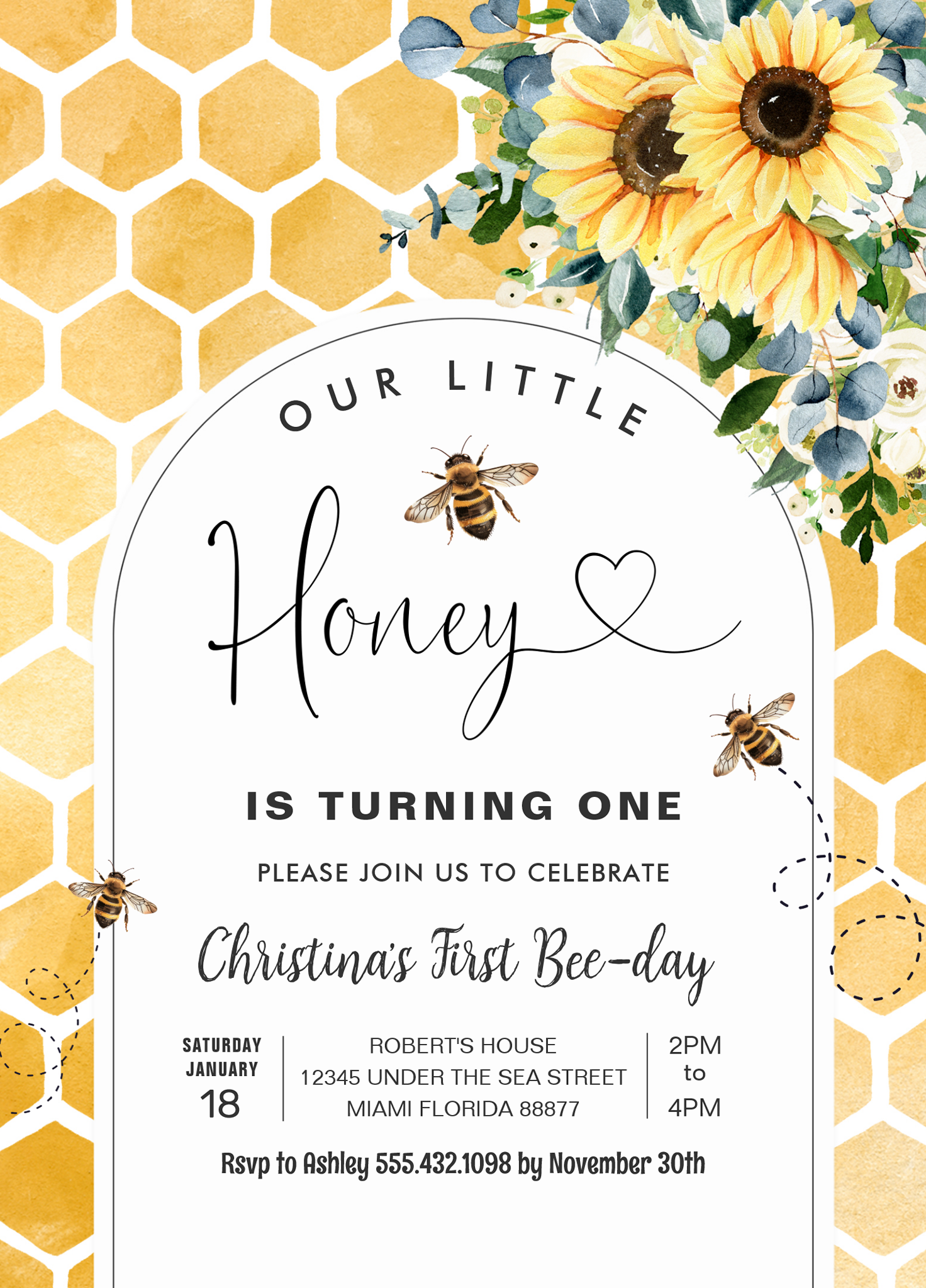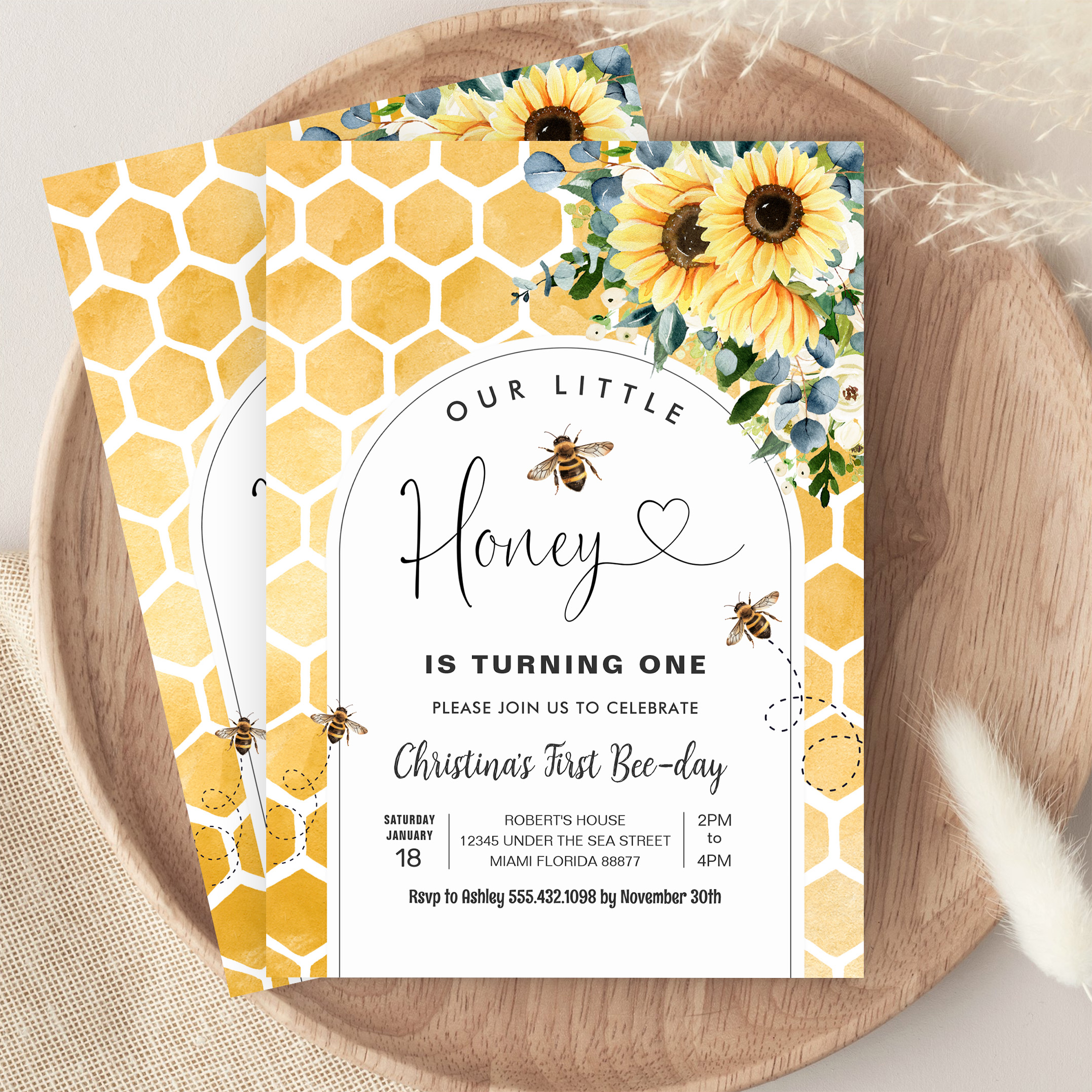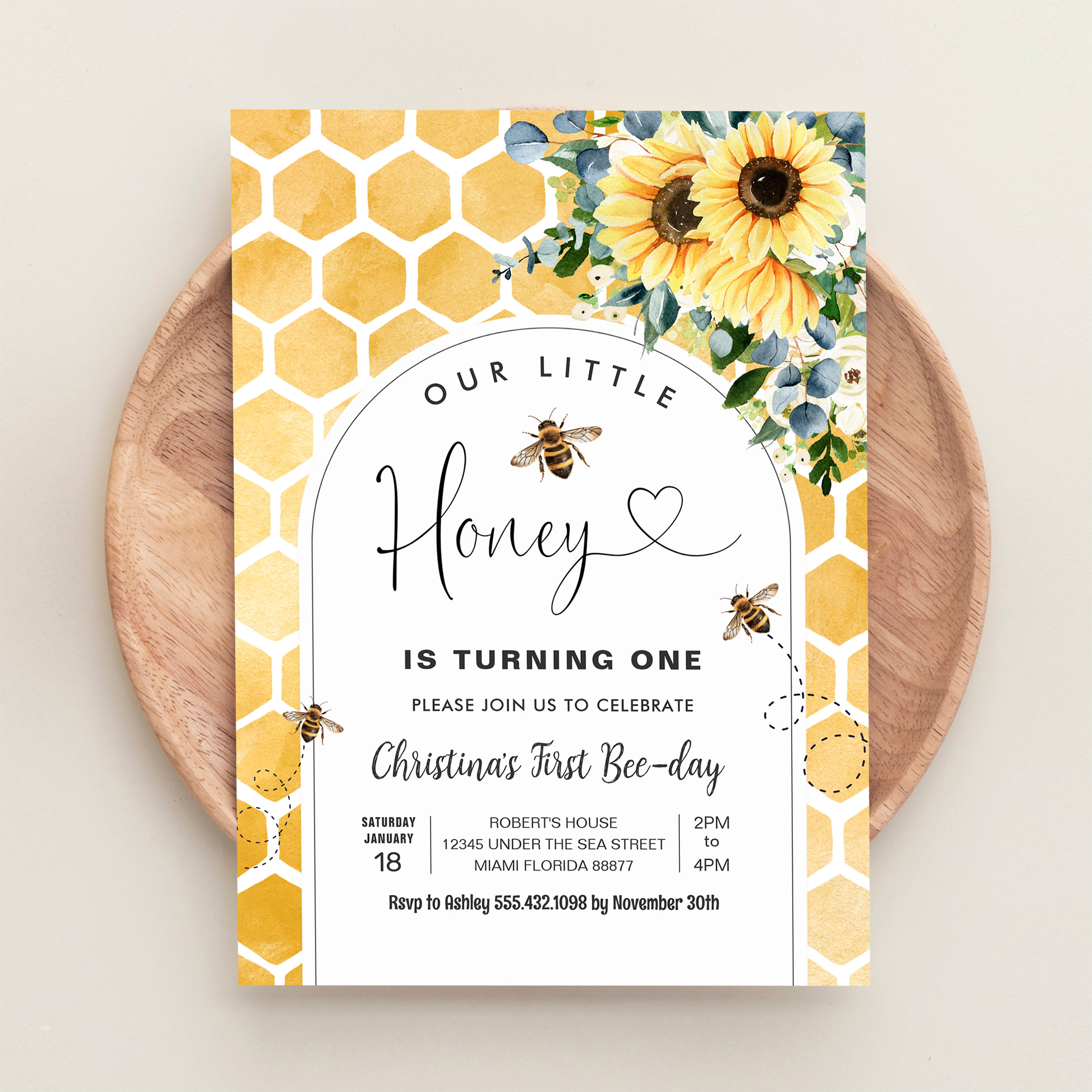Honey Bee First Birthday Invitation
