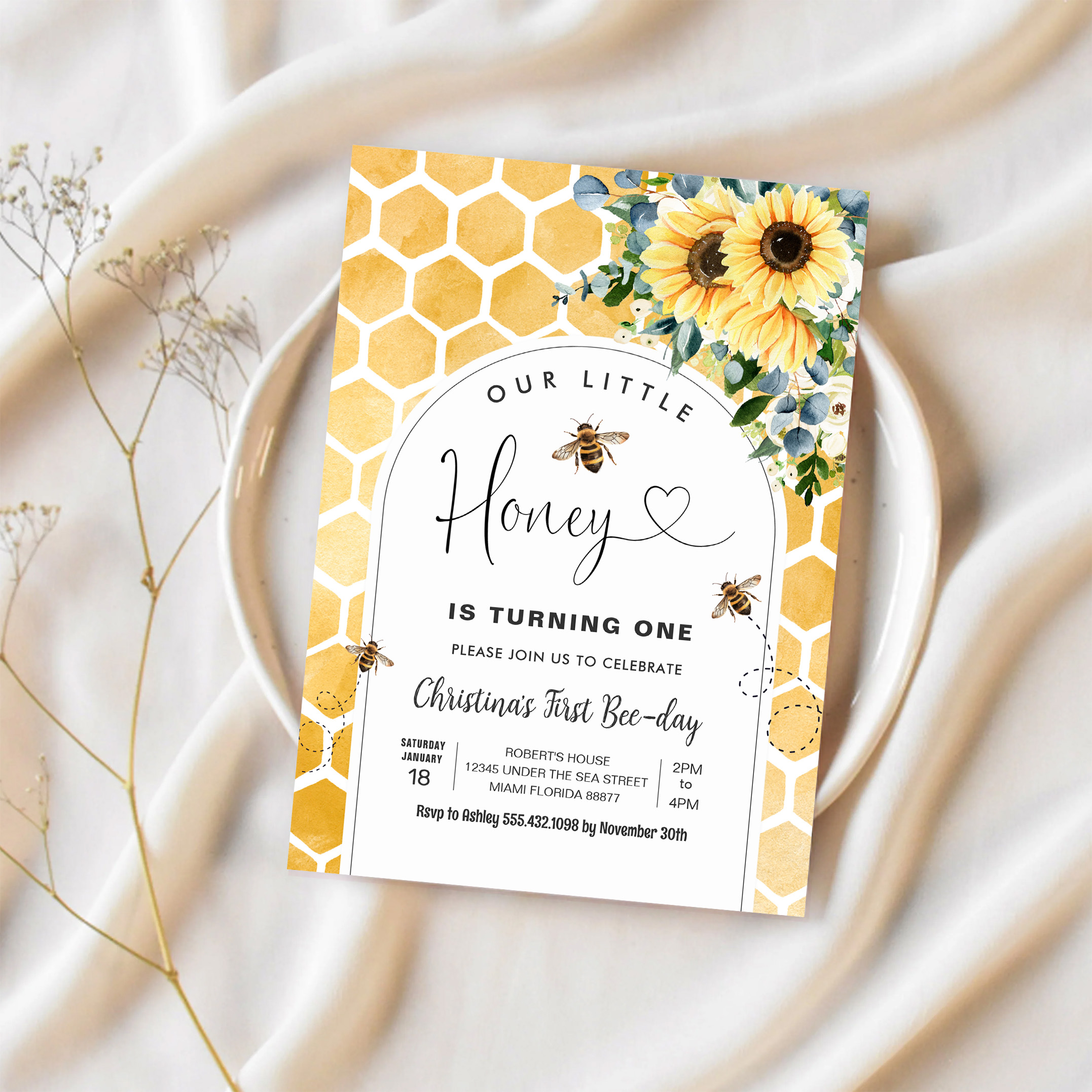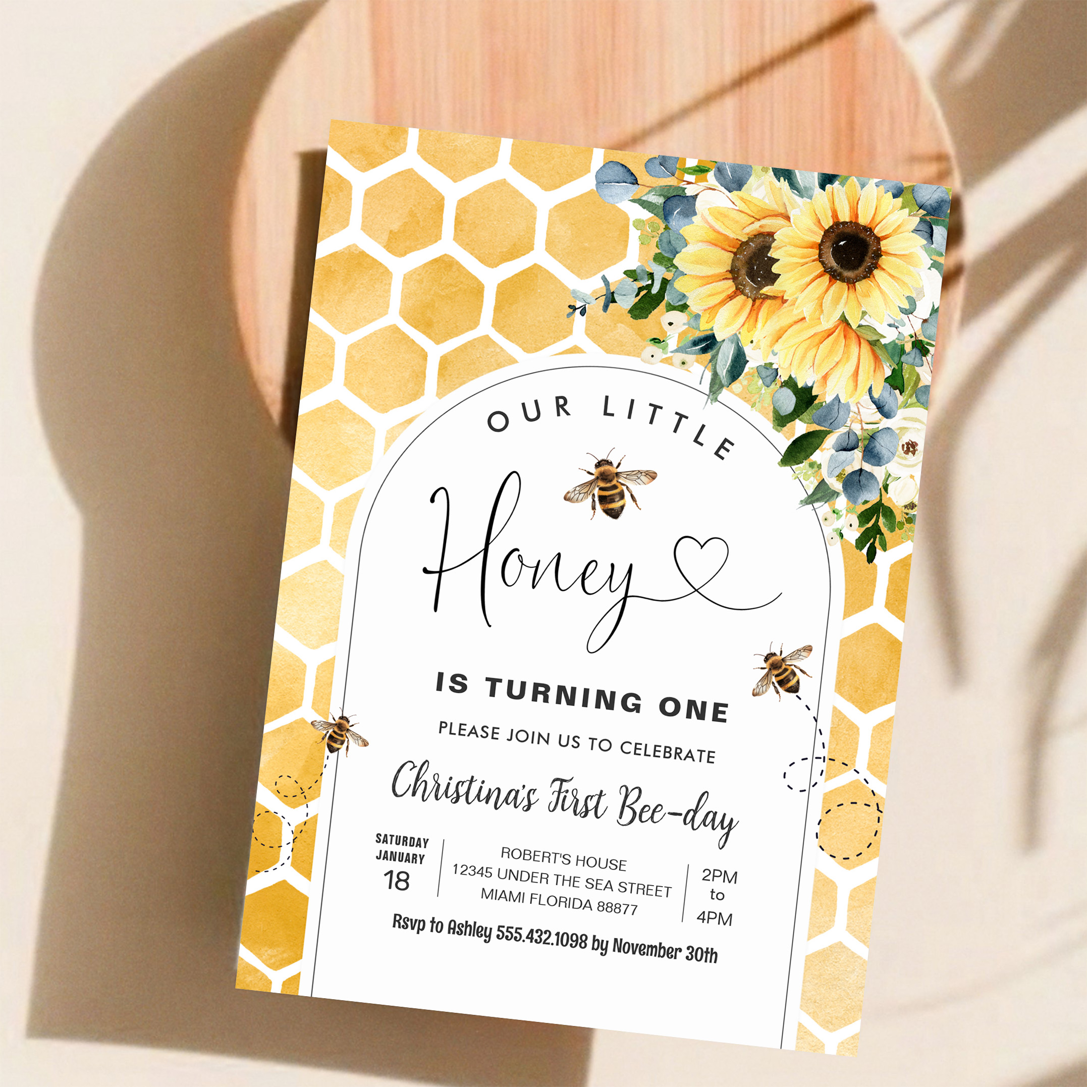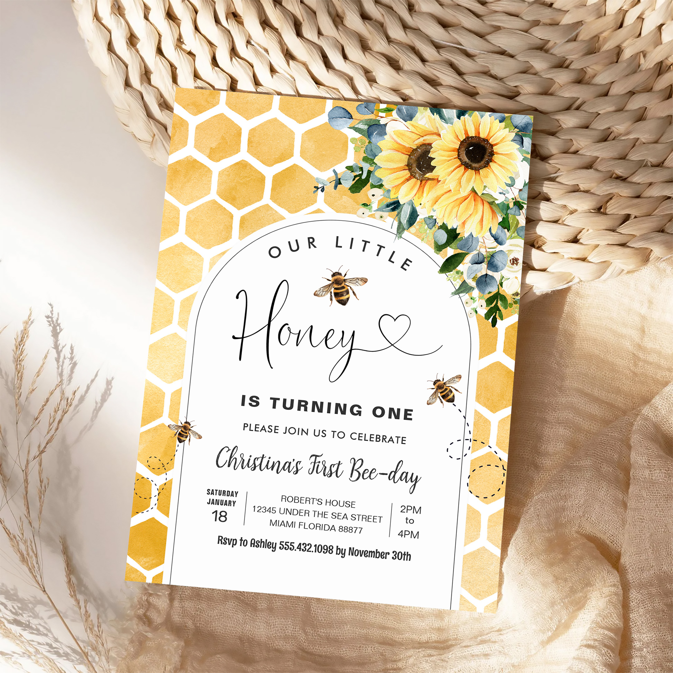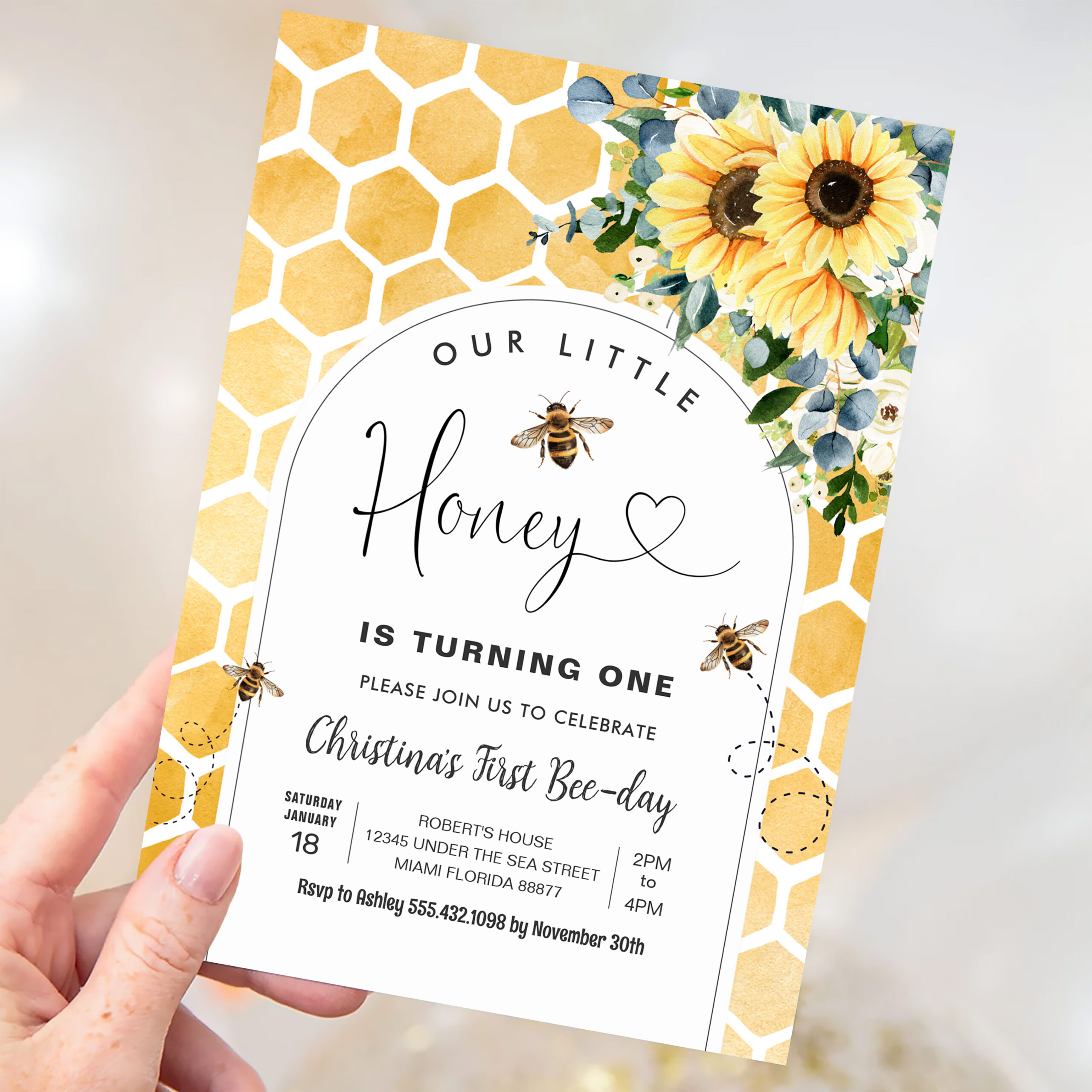 Honey Bee First Birthday Invitation
