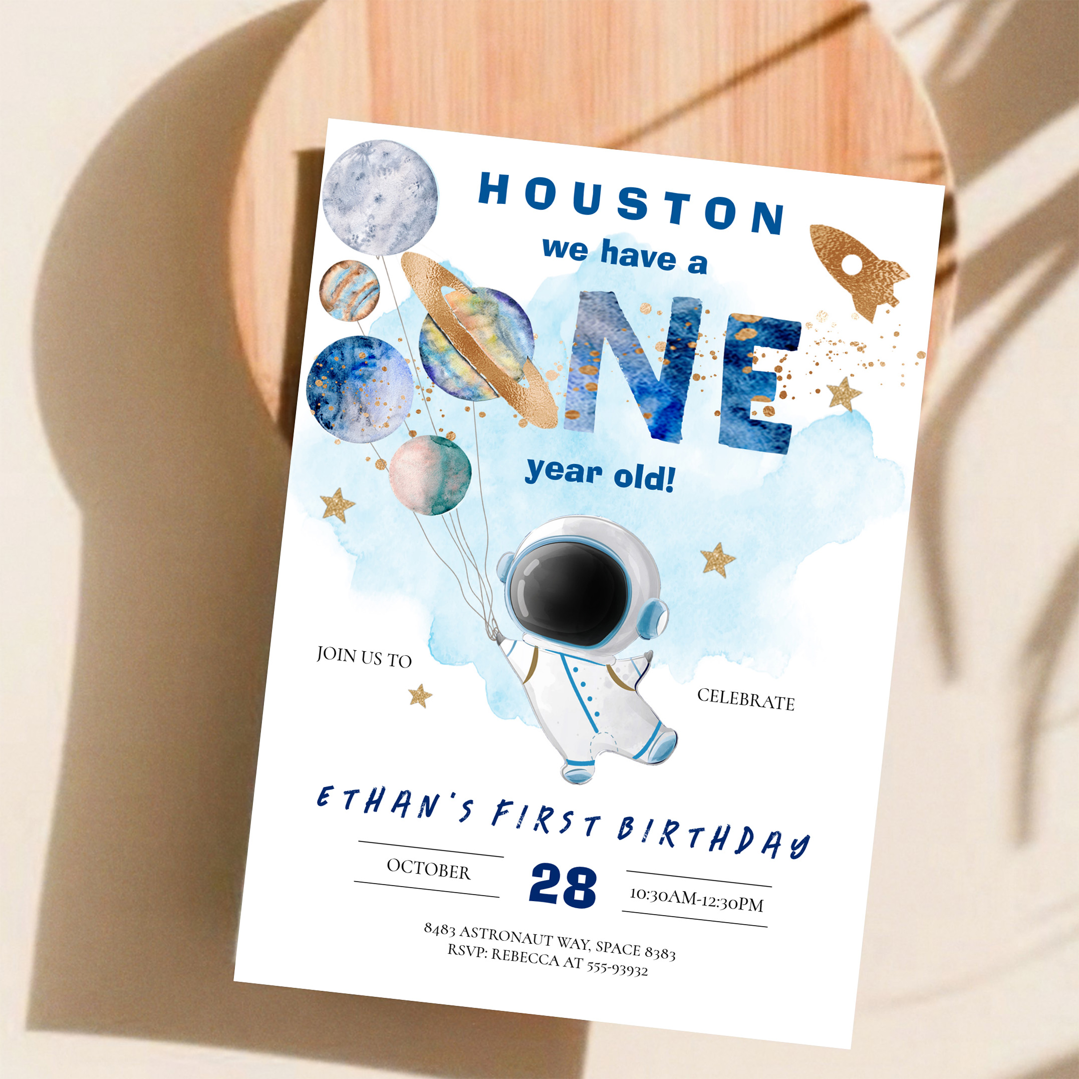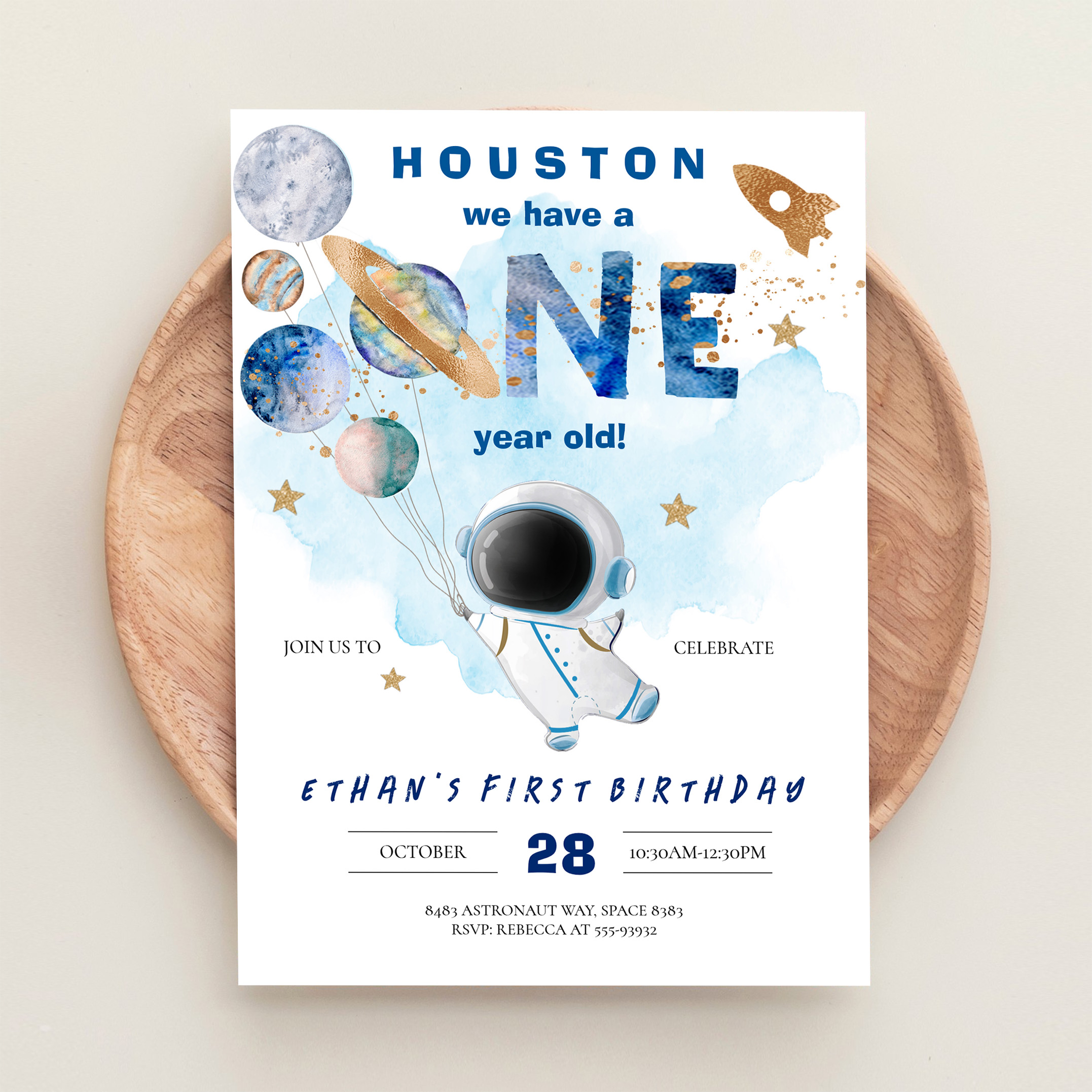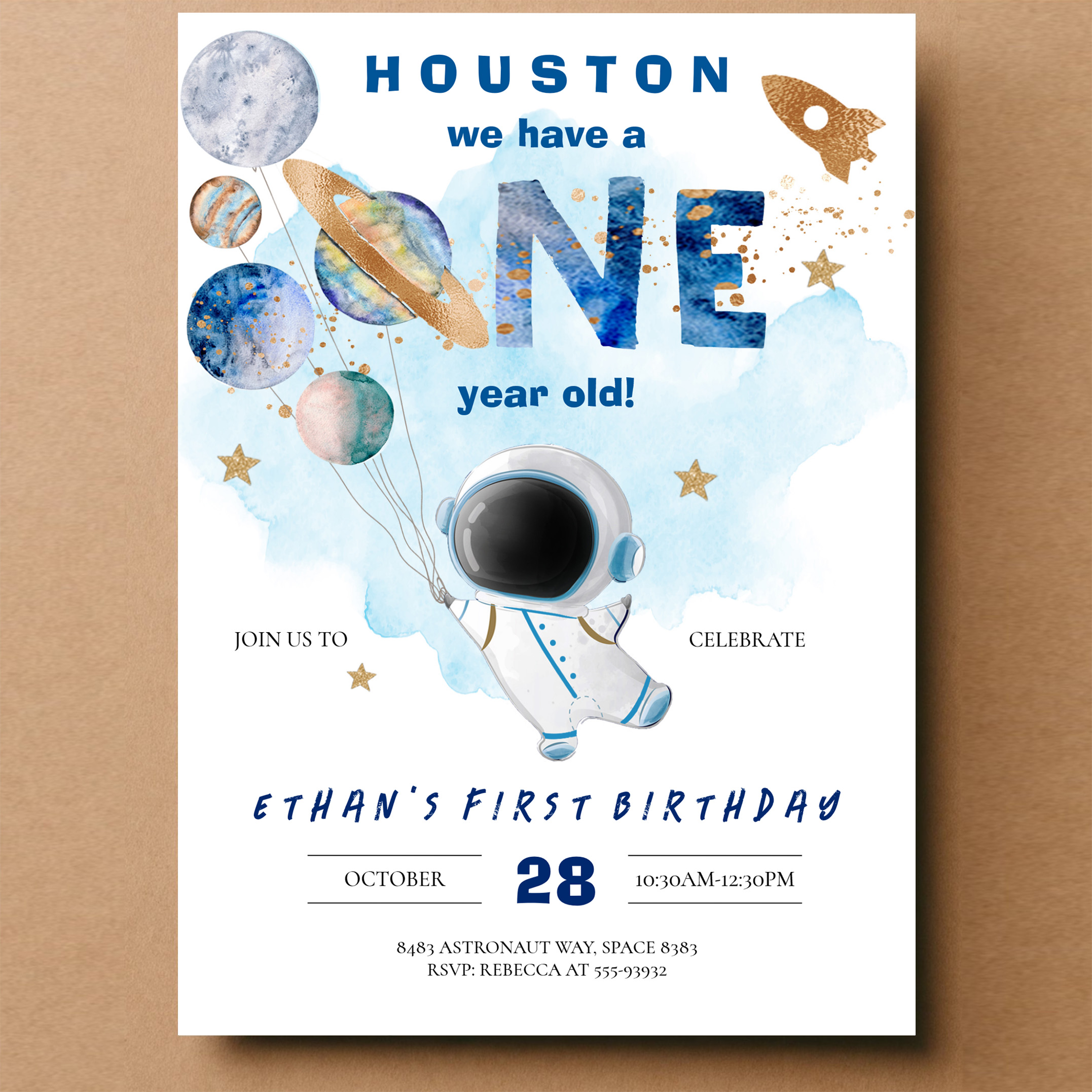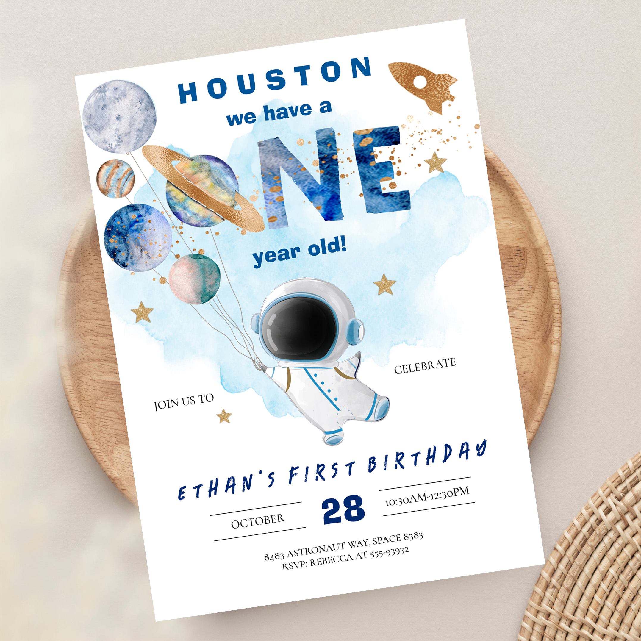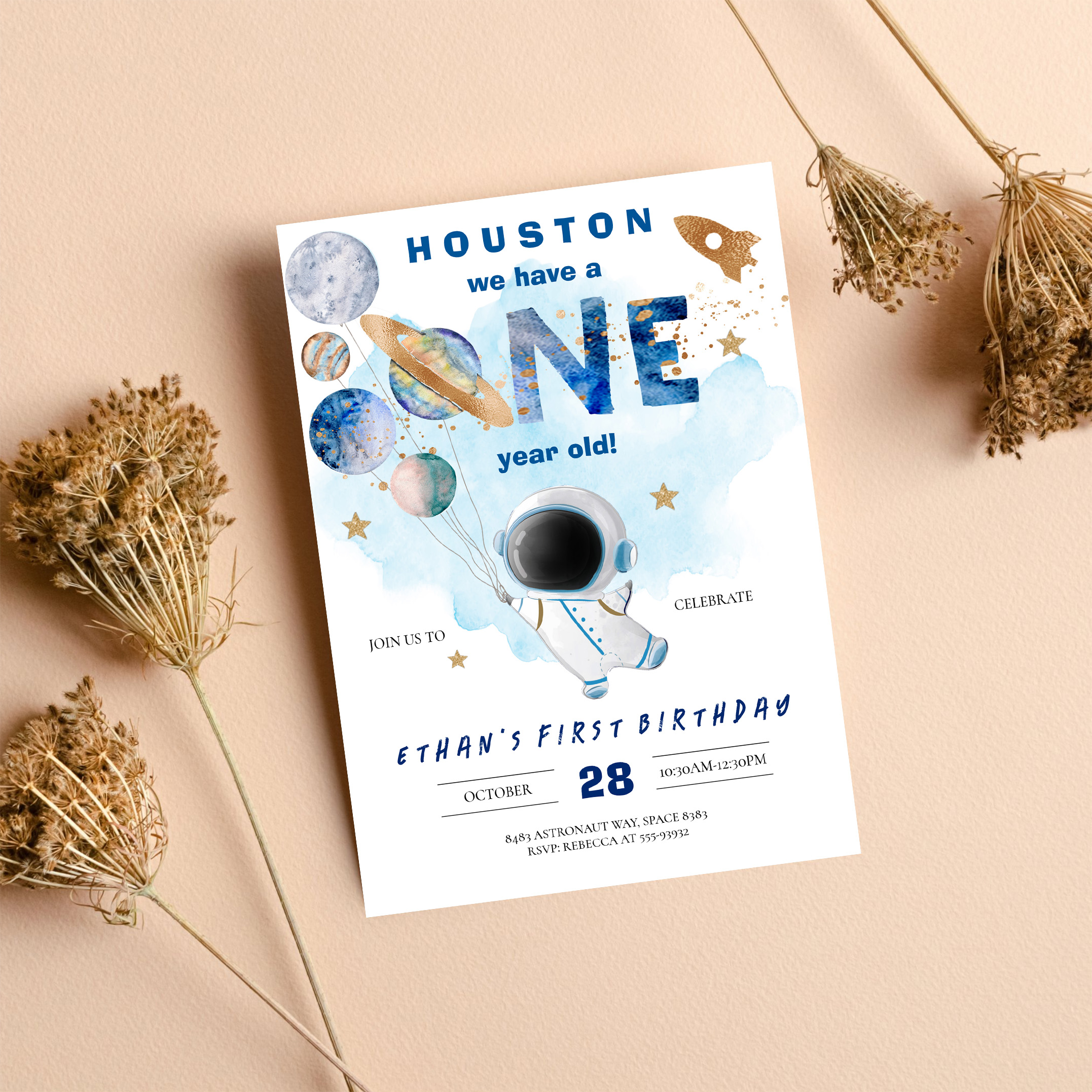 Houston We Have A One Year Old Astronaut Birthday Invitation