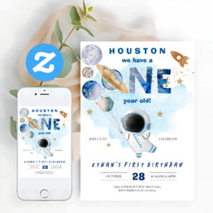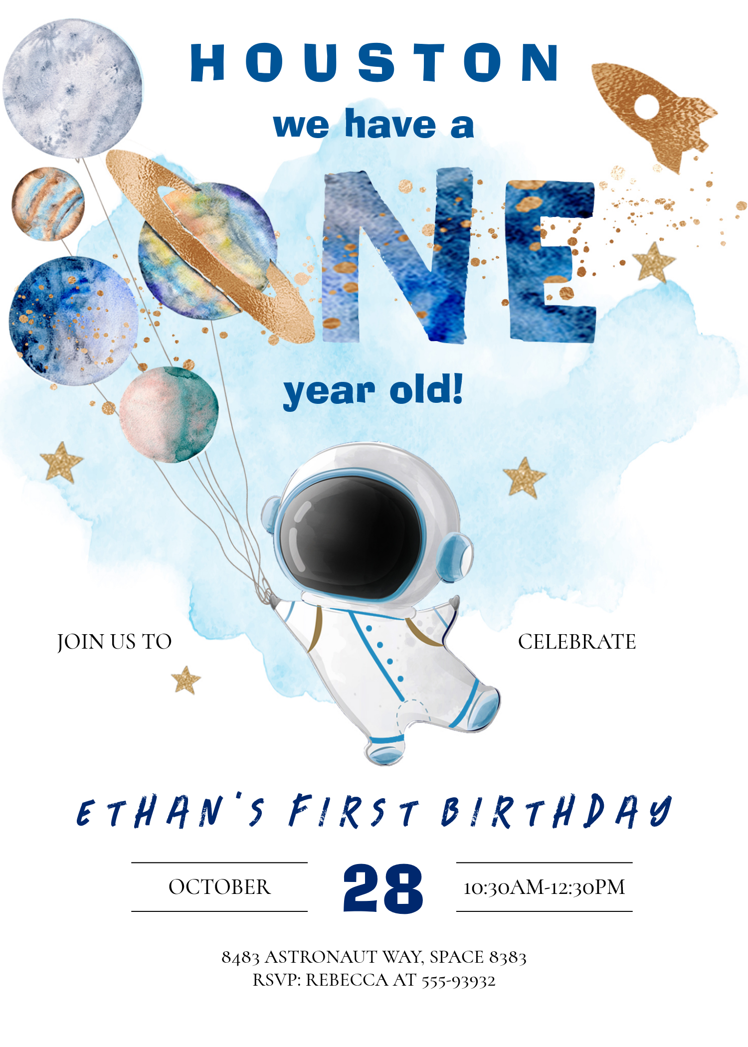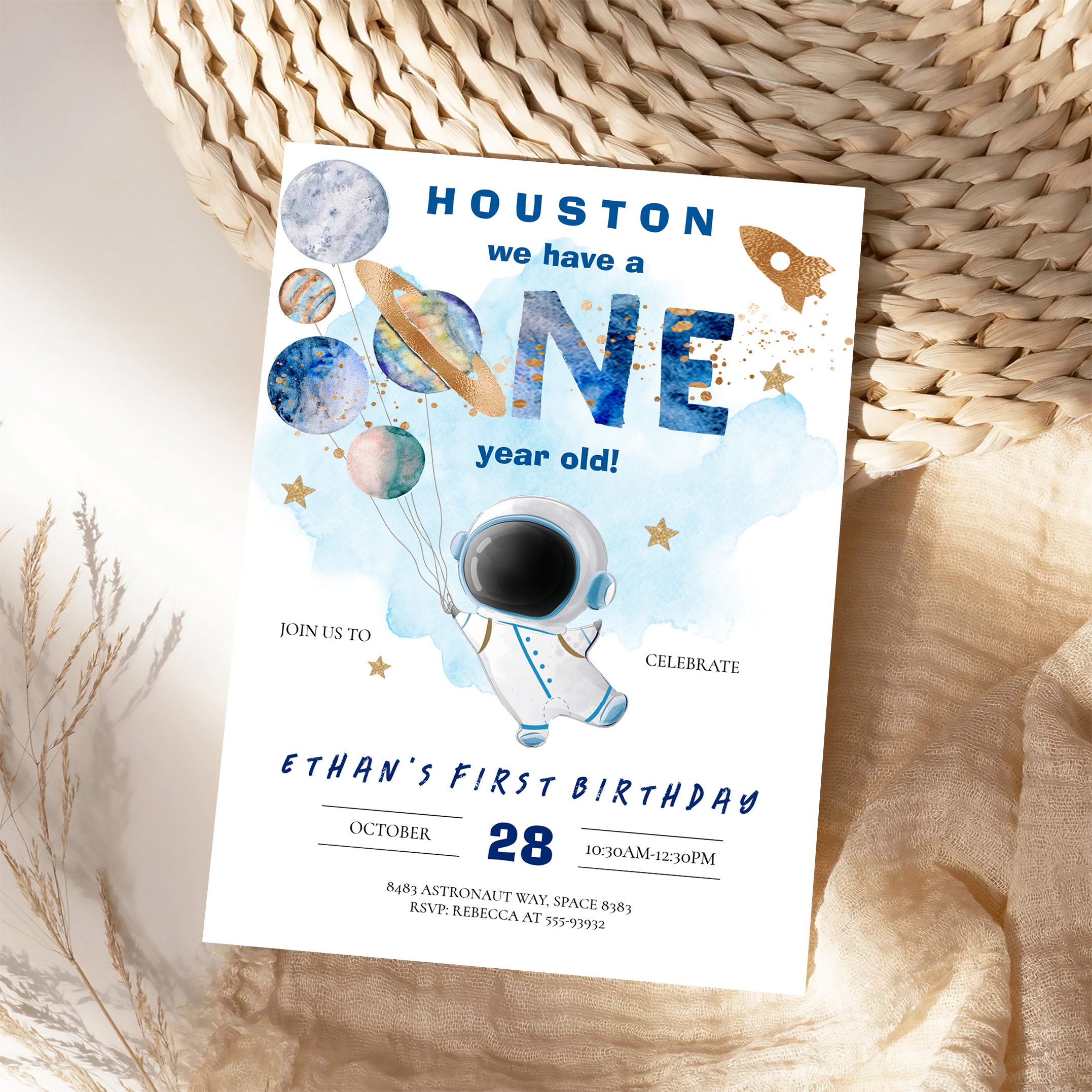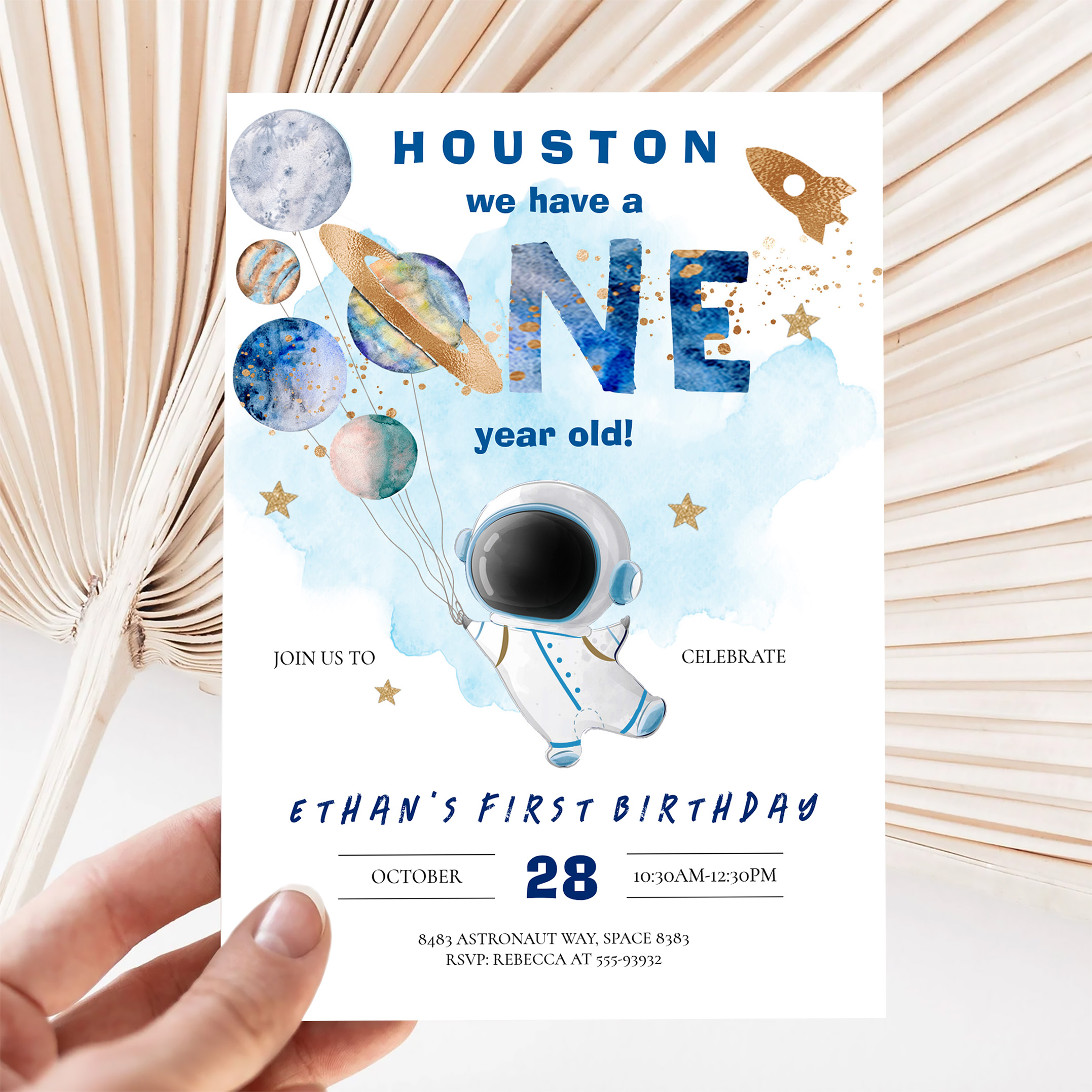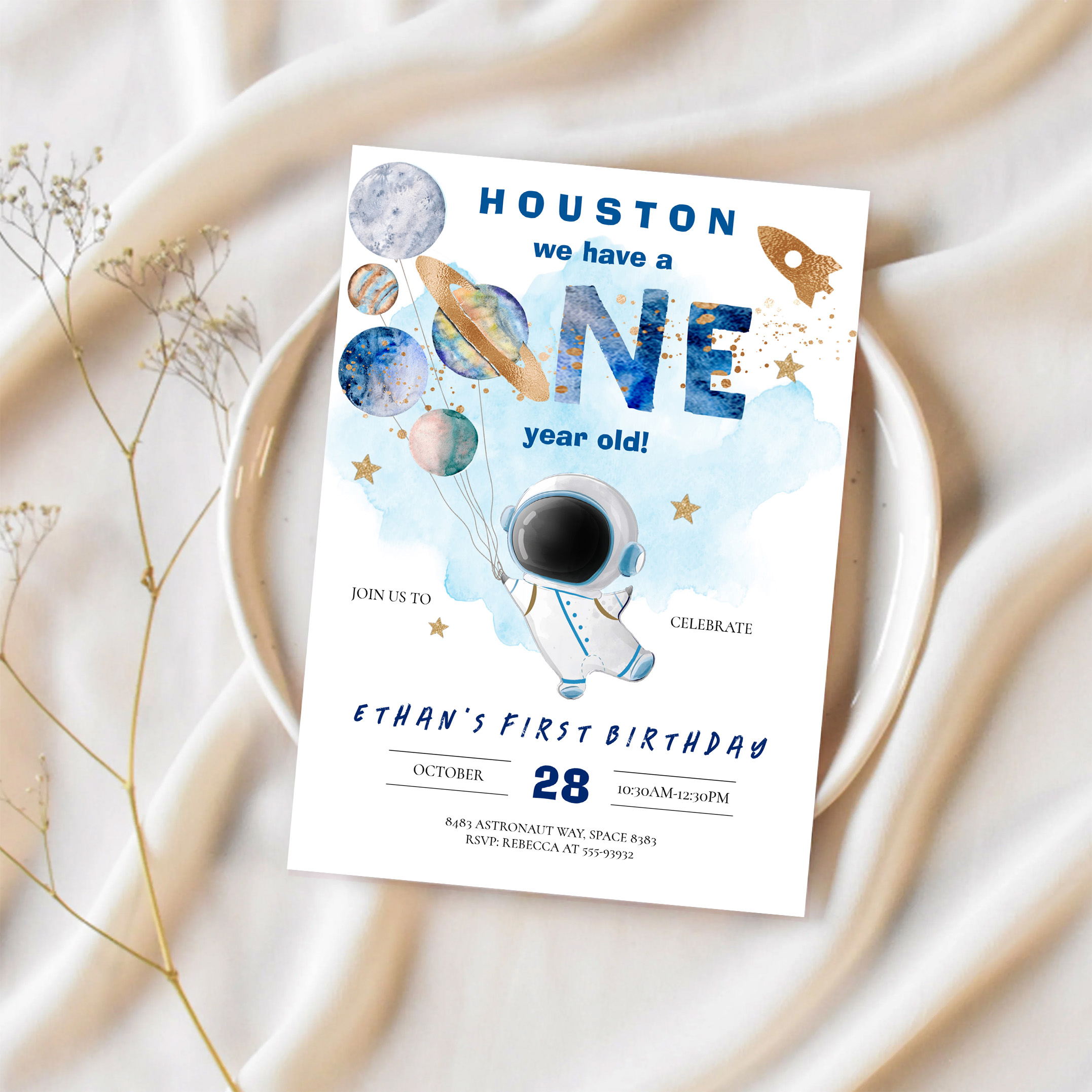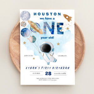 Houston We Have A One Year Old Astronaut Birthday Invitation