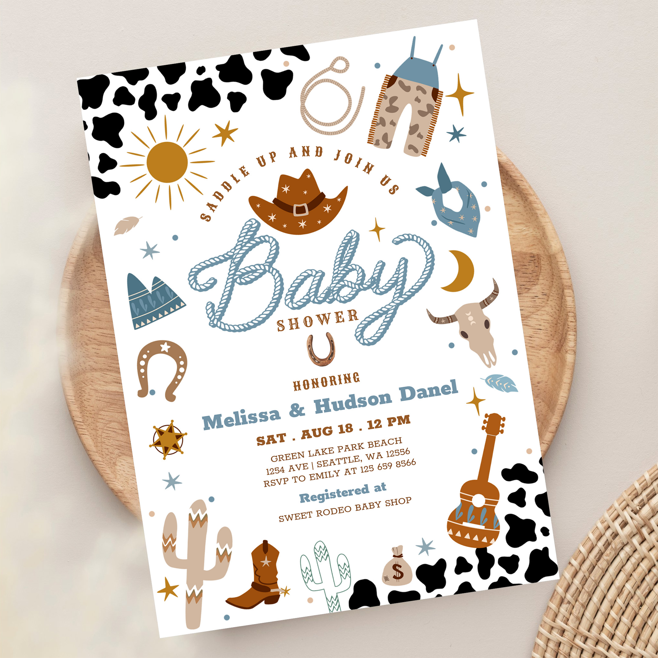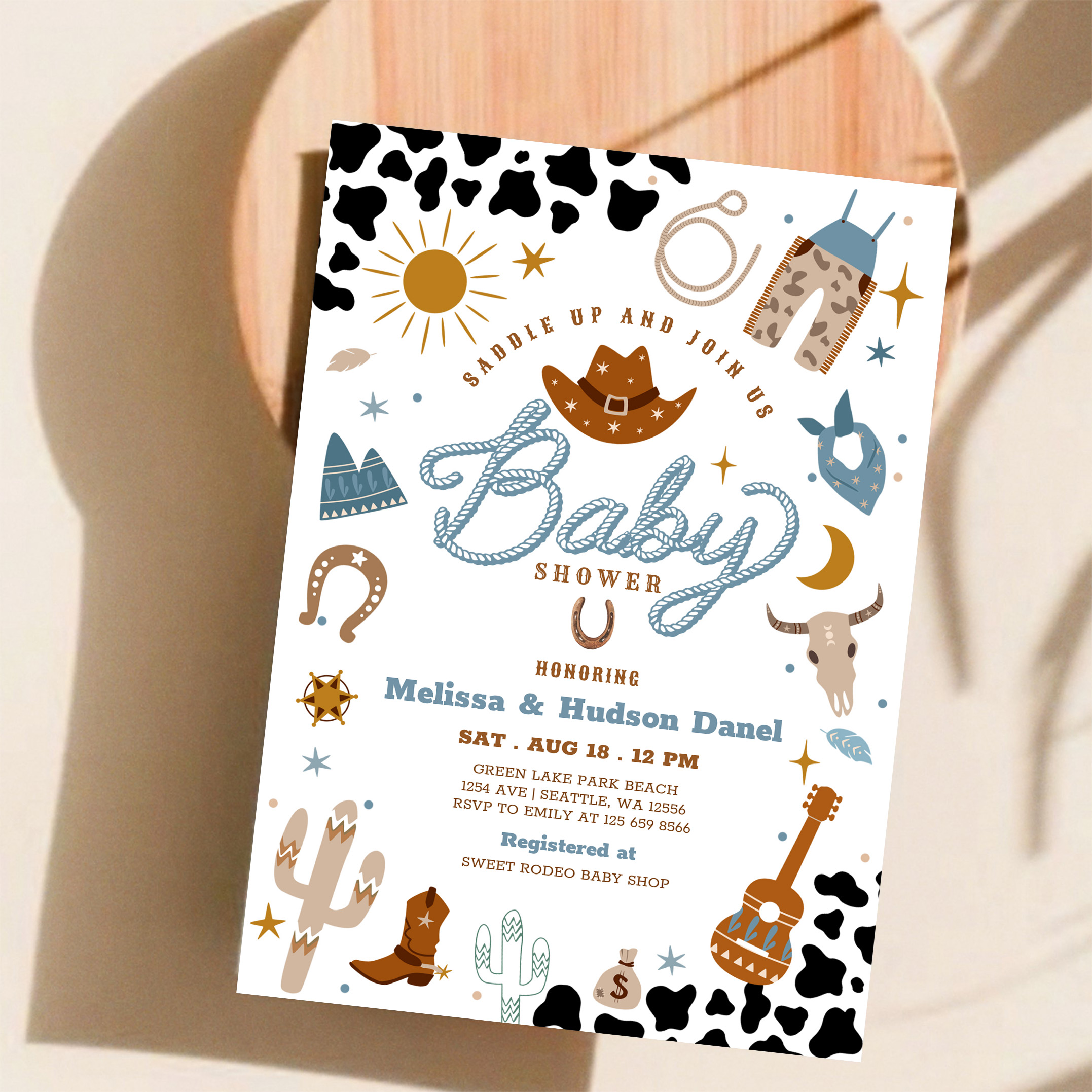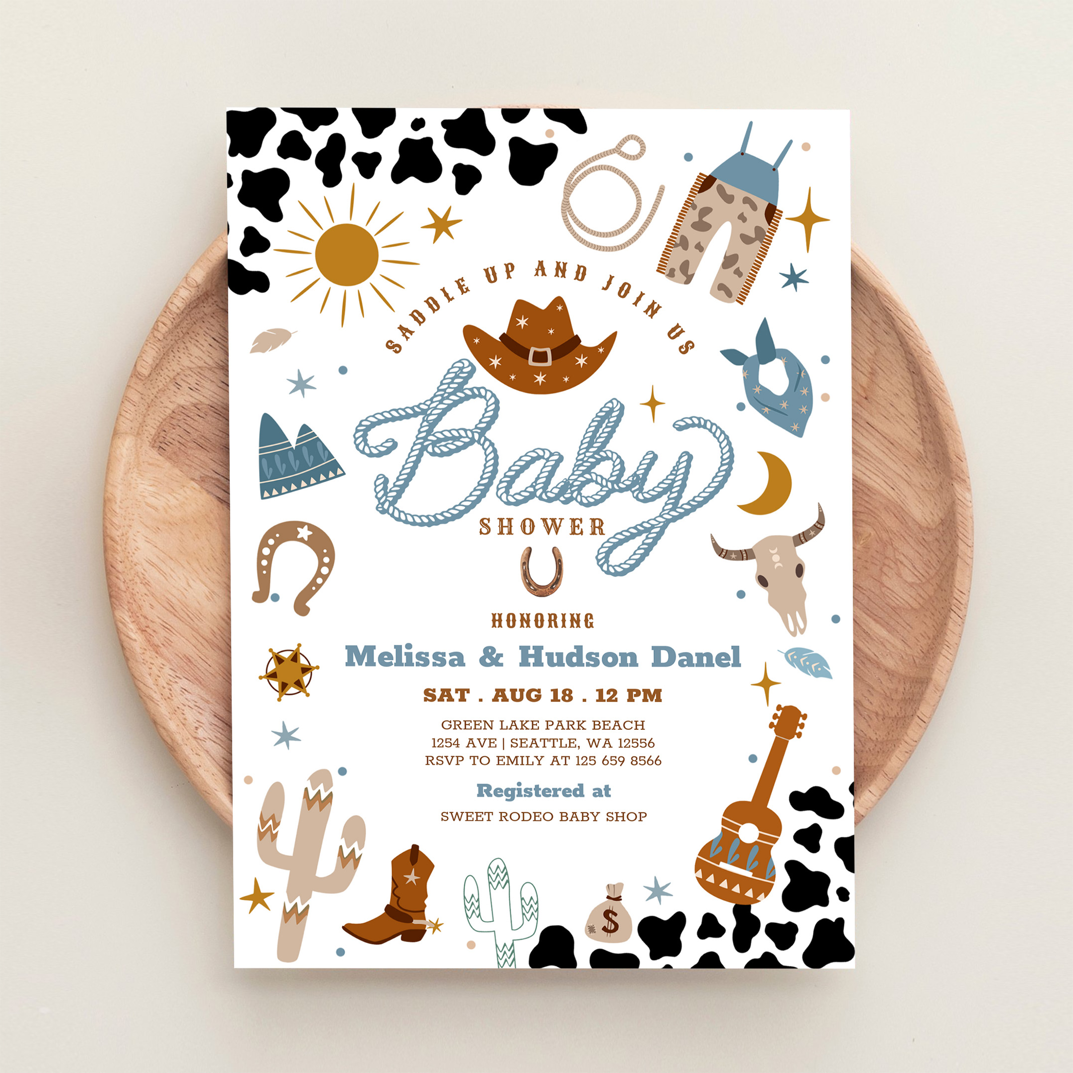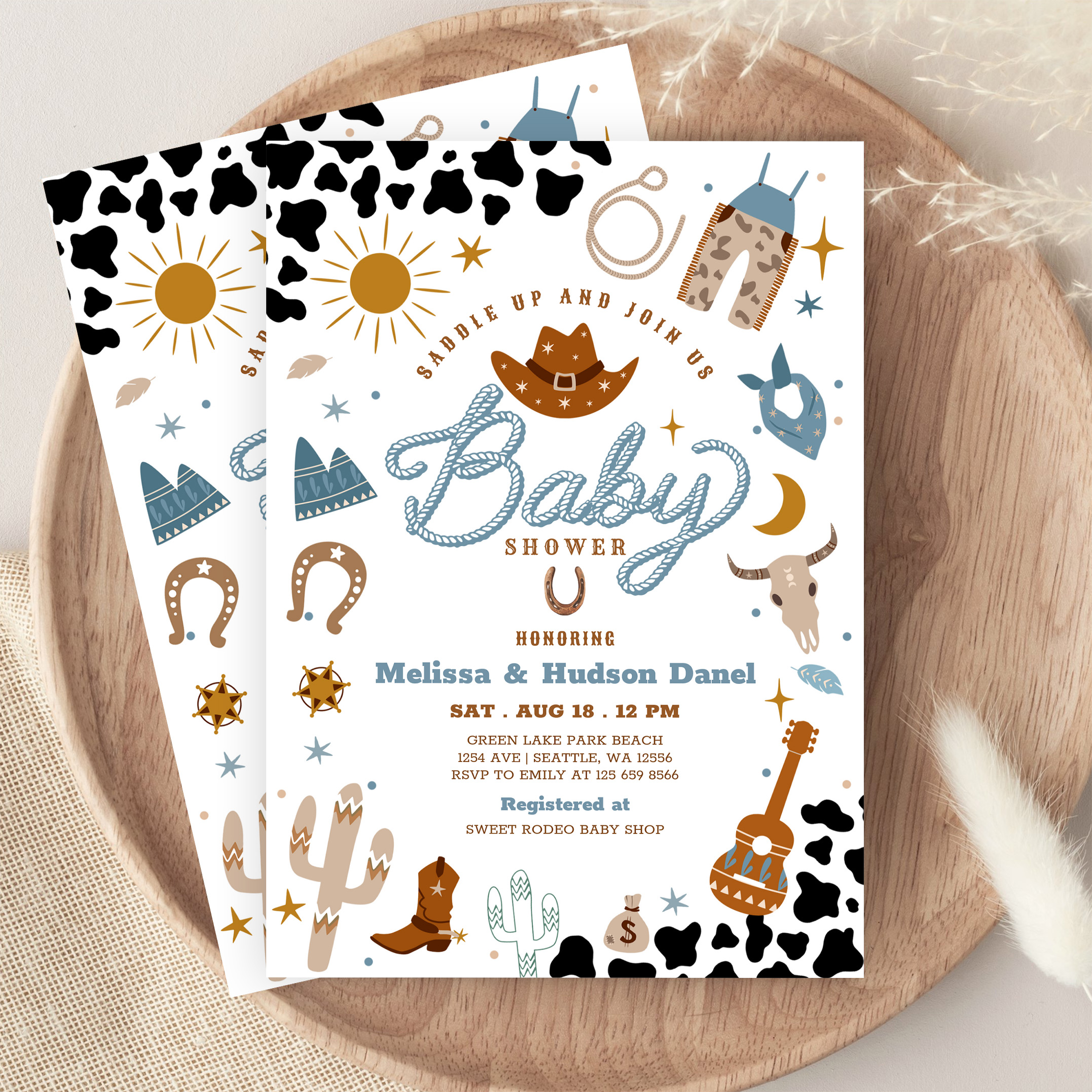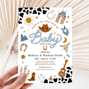 Little Cowboy Rodeo Ranch Wild West Baby Shower Invitation