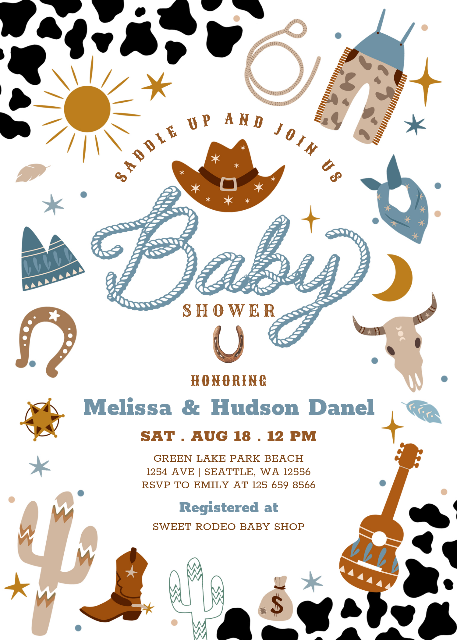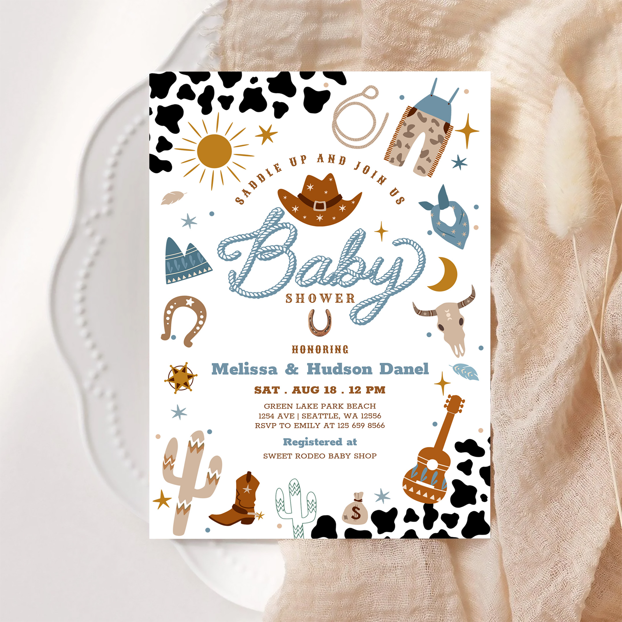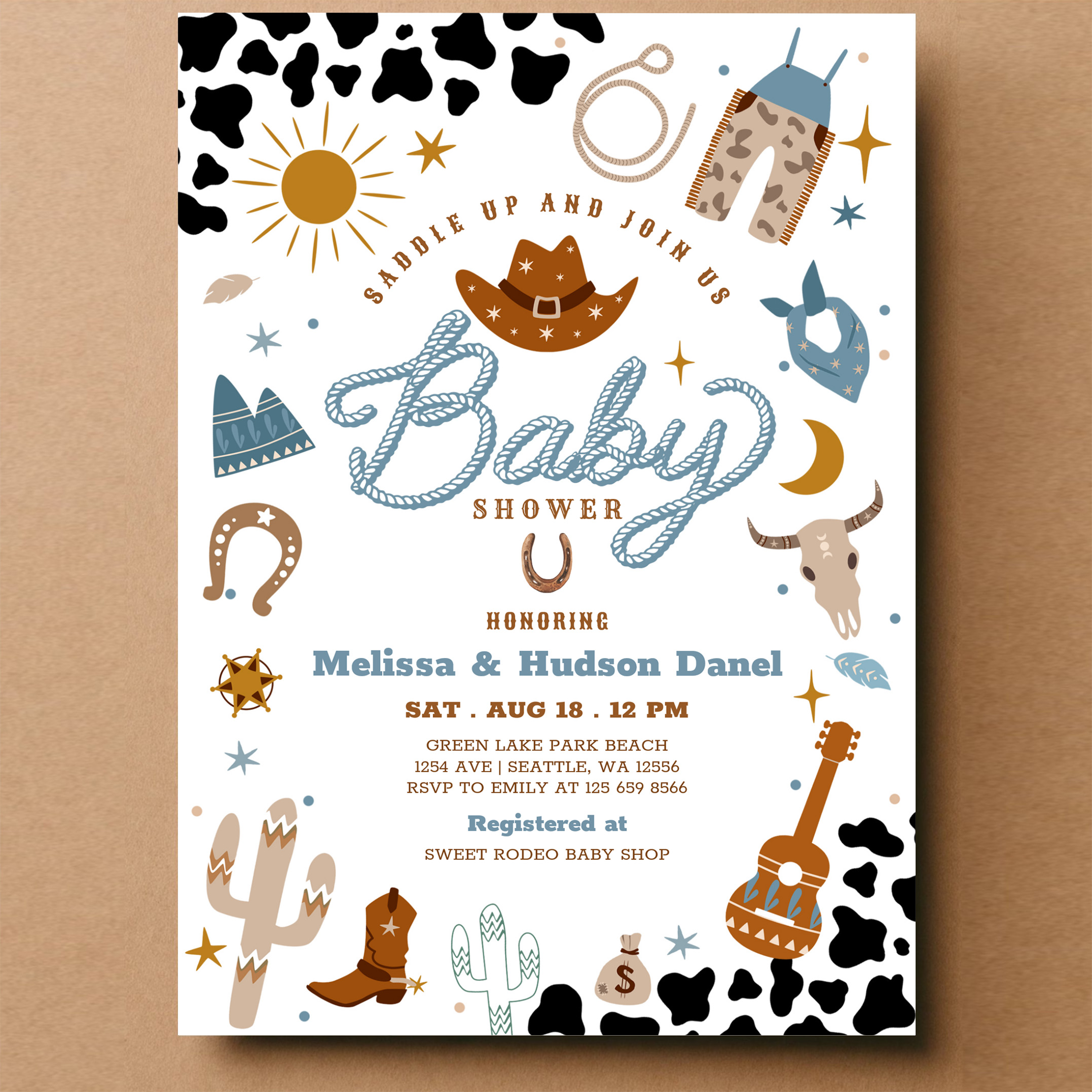 Little Cowboy Rodeo Ranch Wild West Baby Shower Invitation
