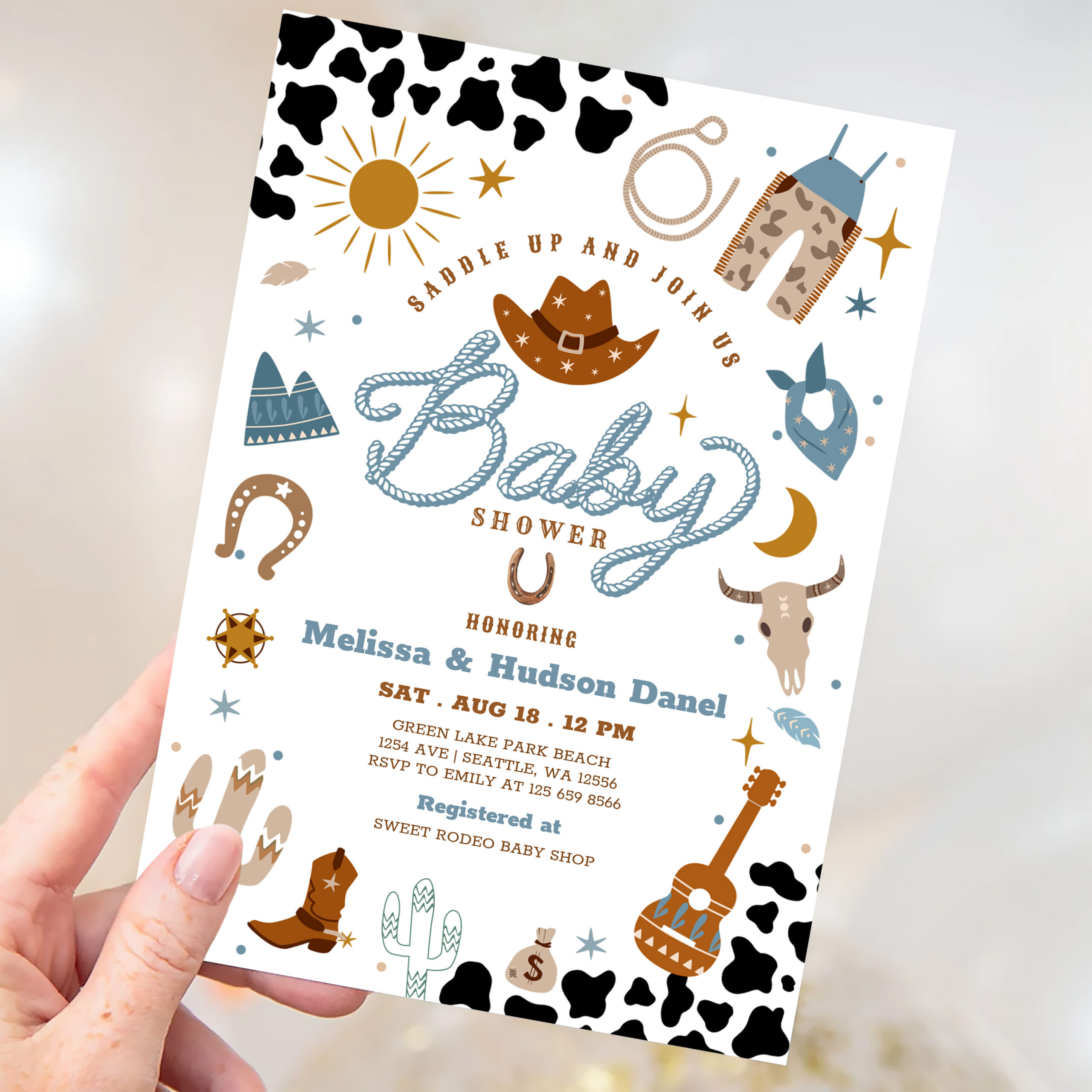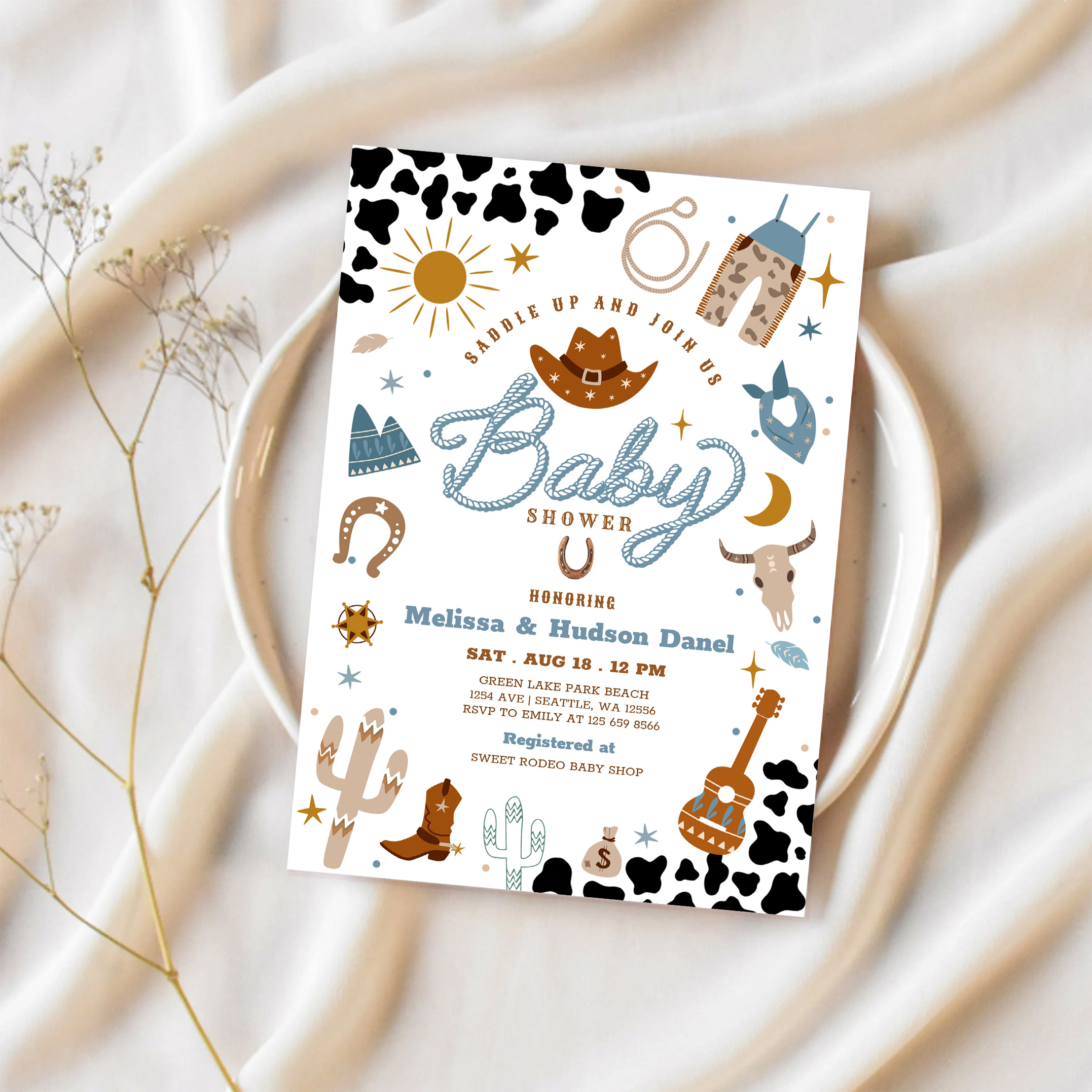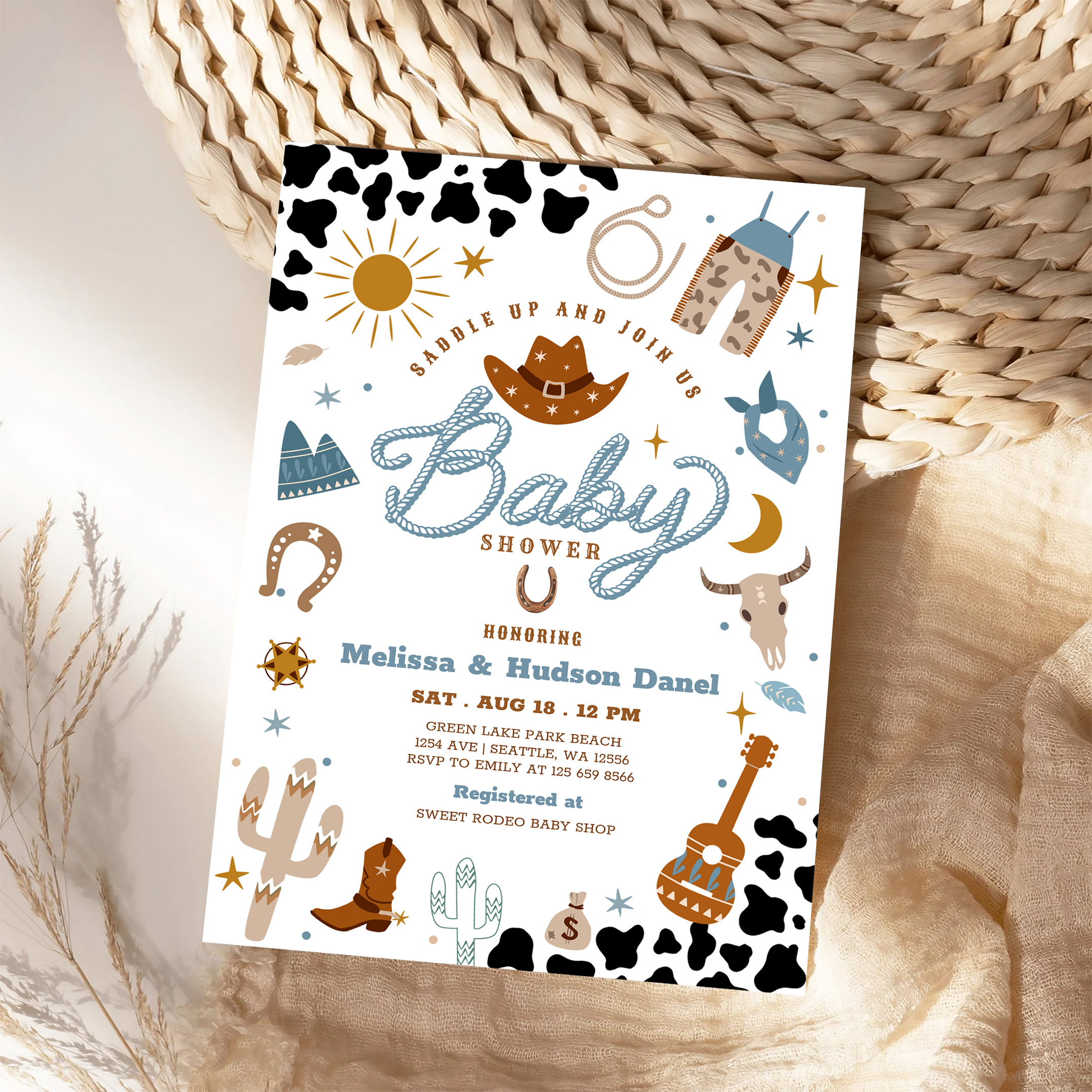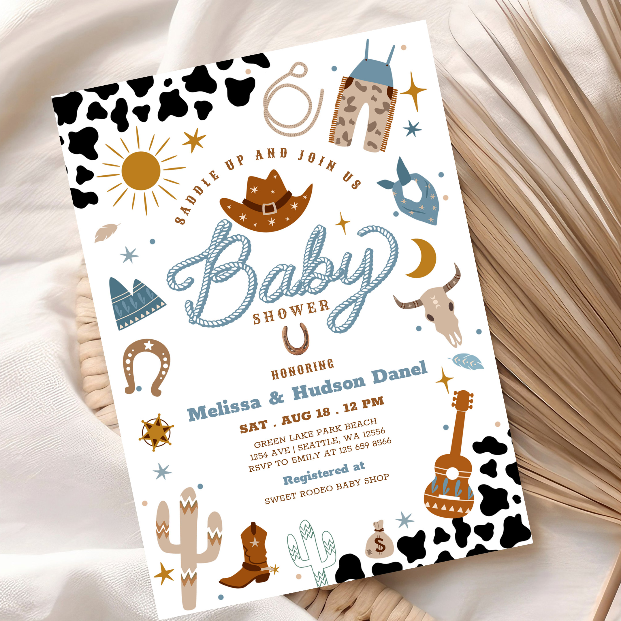 Little Cowboy Rodeo Ranch Wild West Baby Shower Invitation