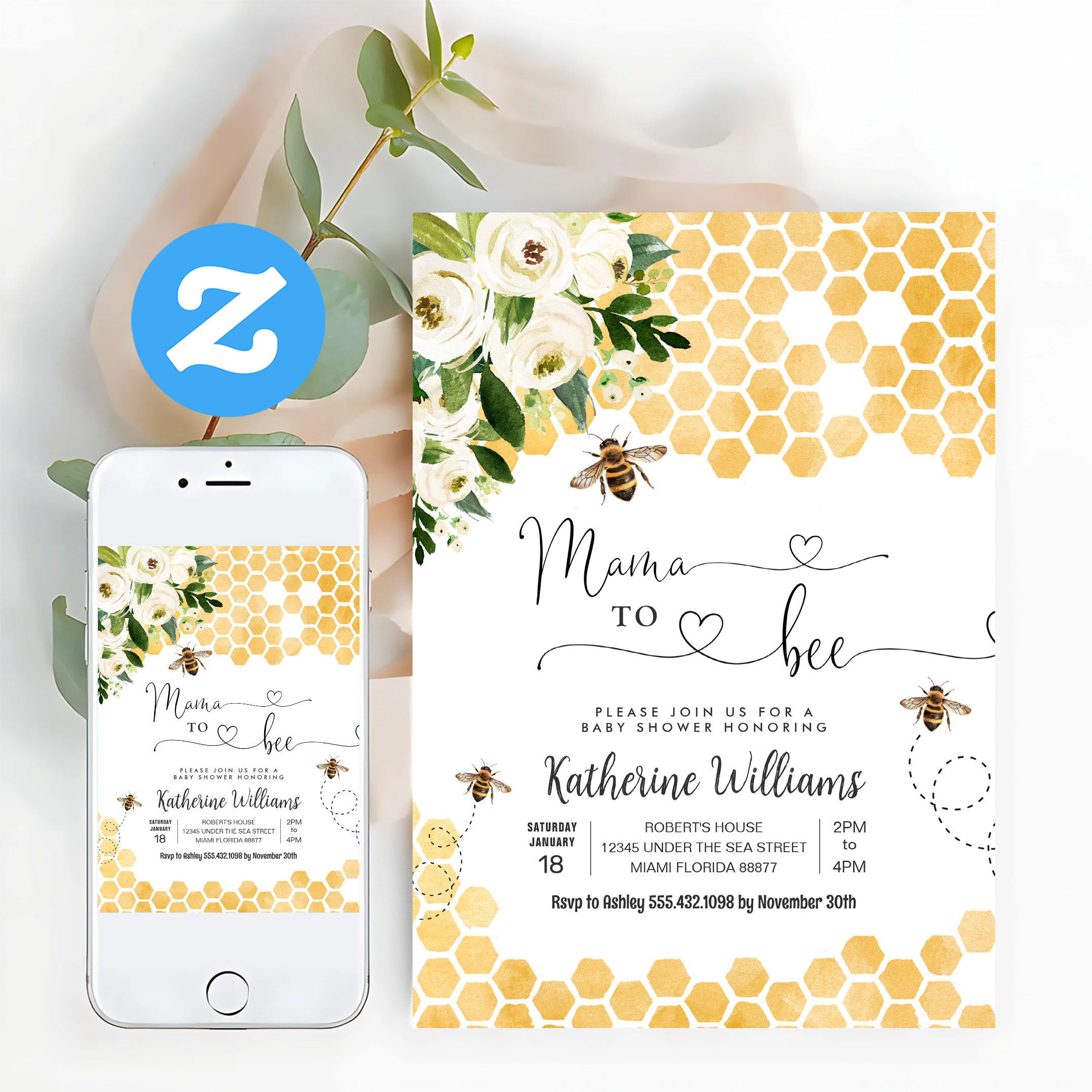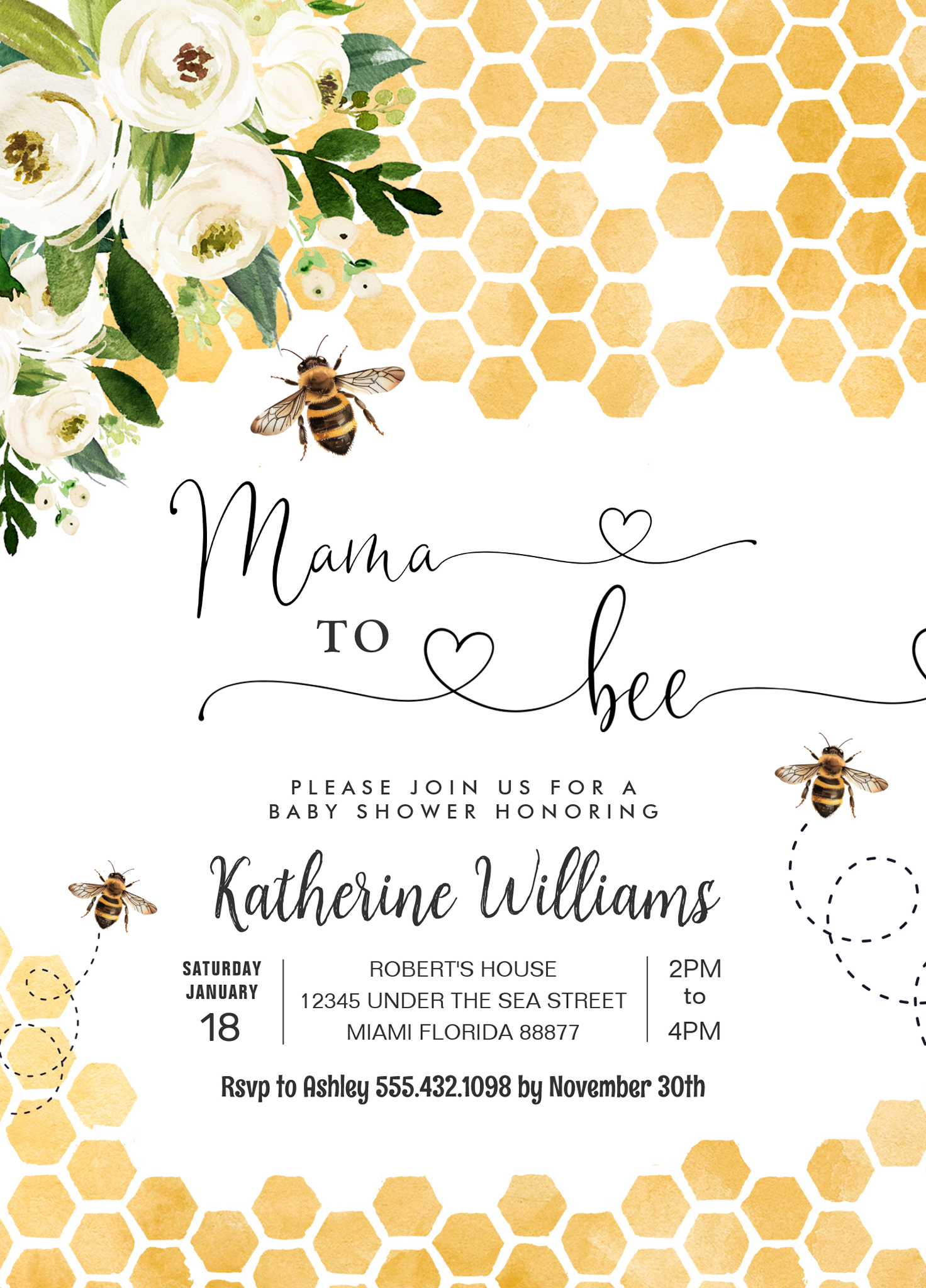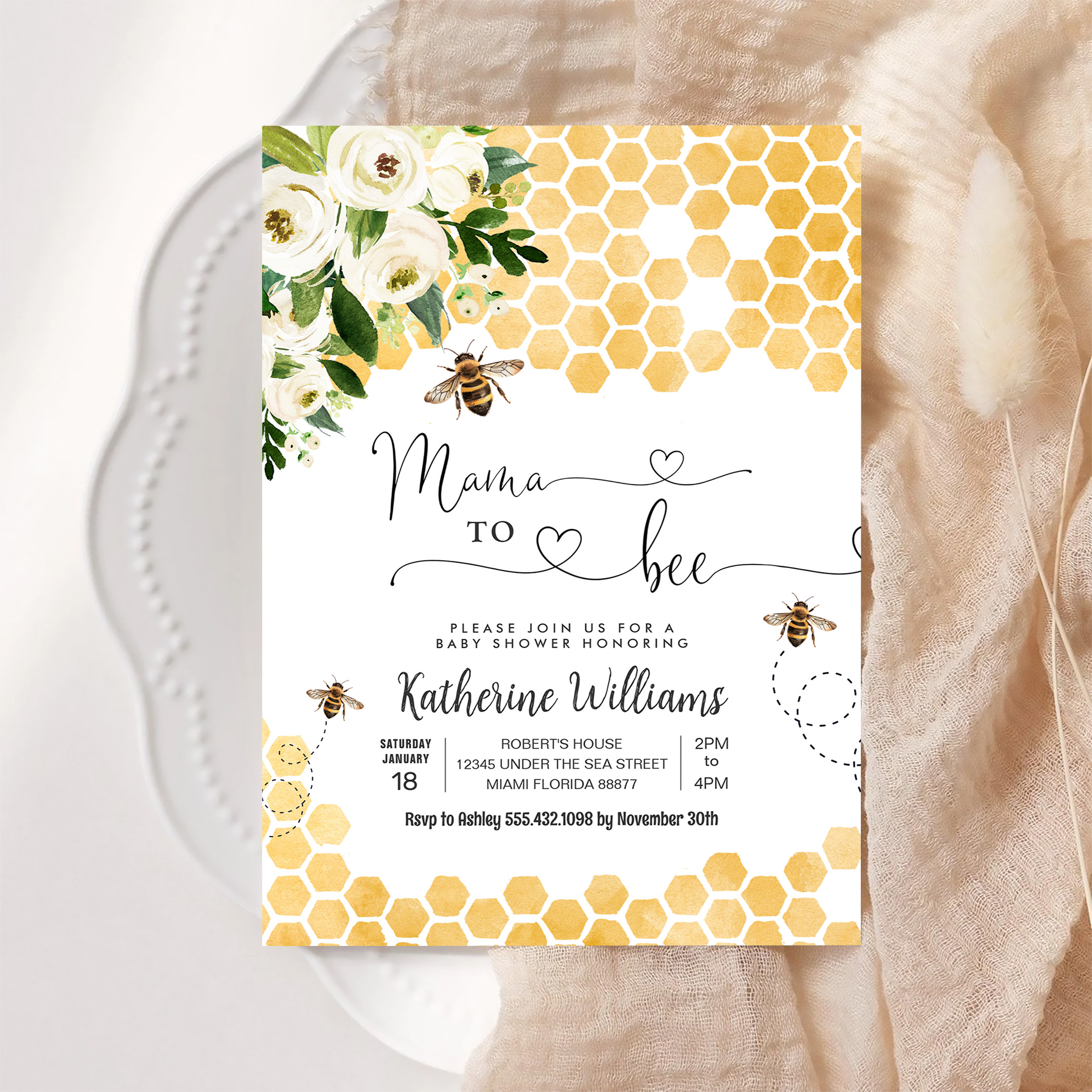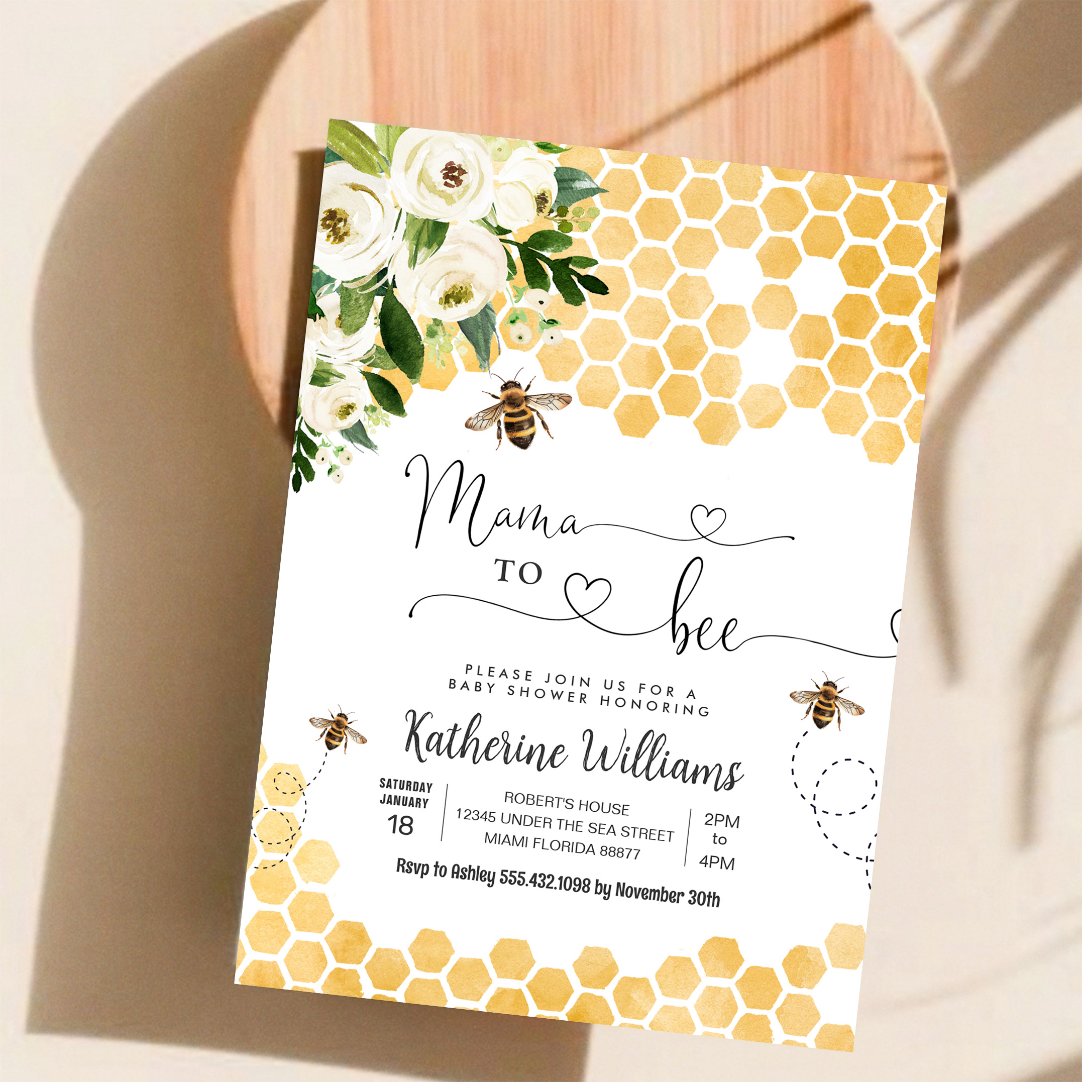 Mama To Bee Honey Bee Baby Shower Invitation