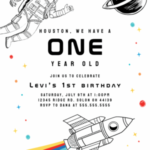 Modern Retro Astronaut Rocket Space First Birthday Invitation - Related products