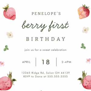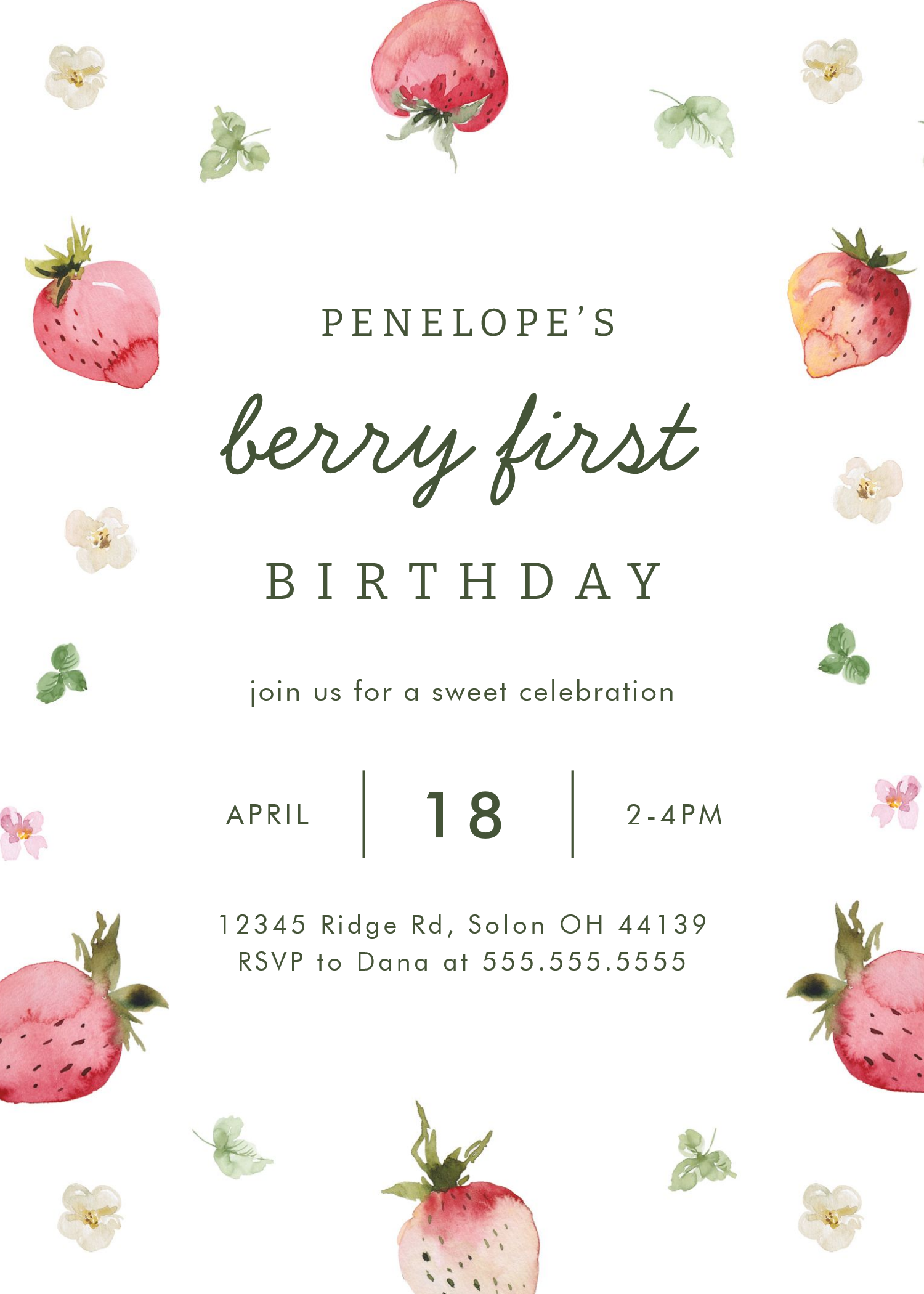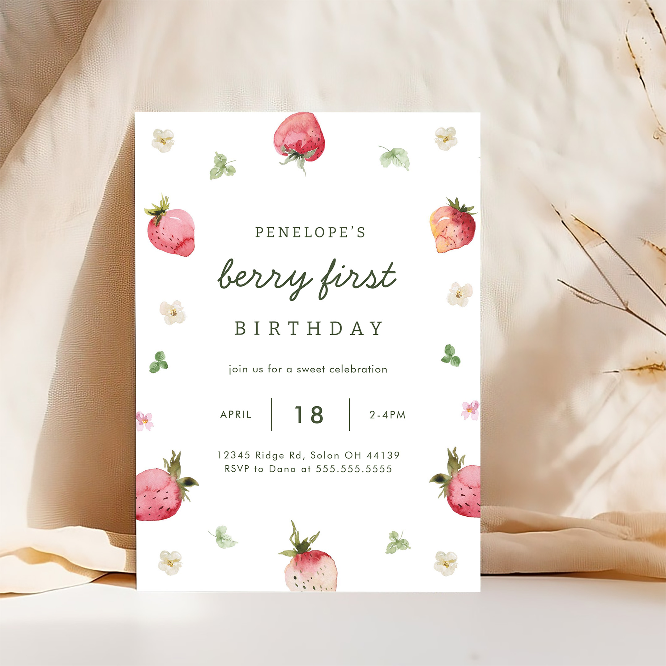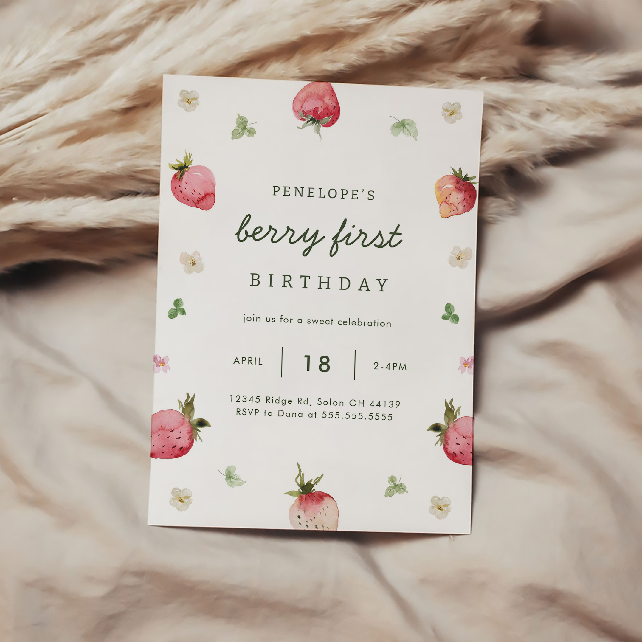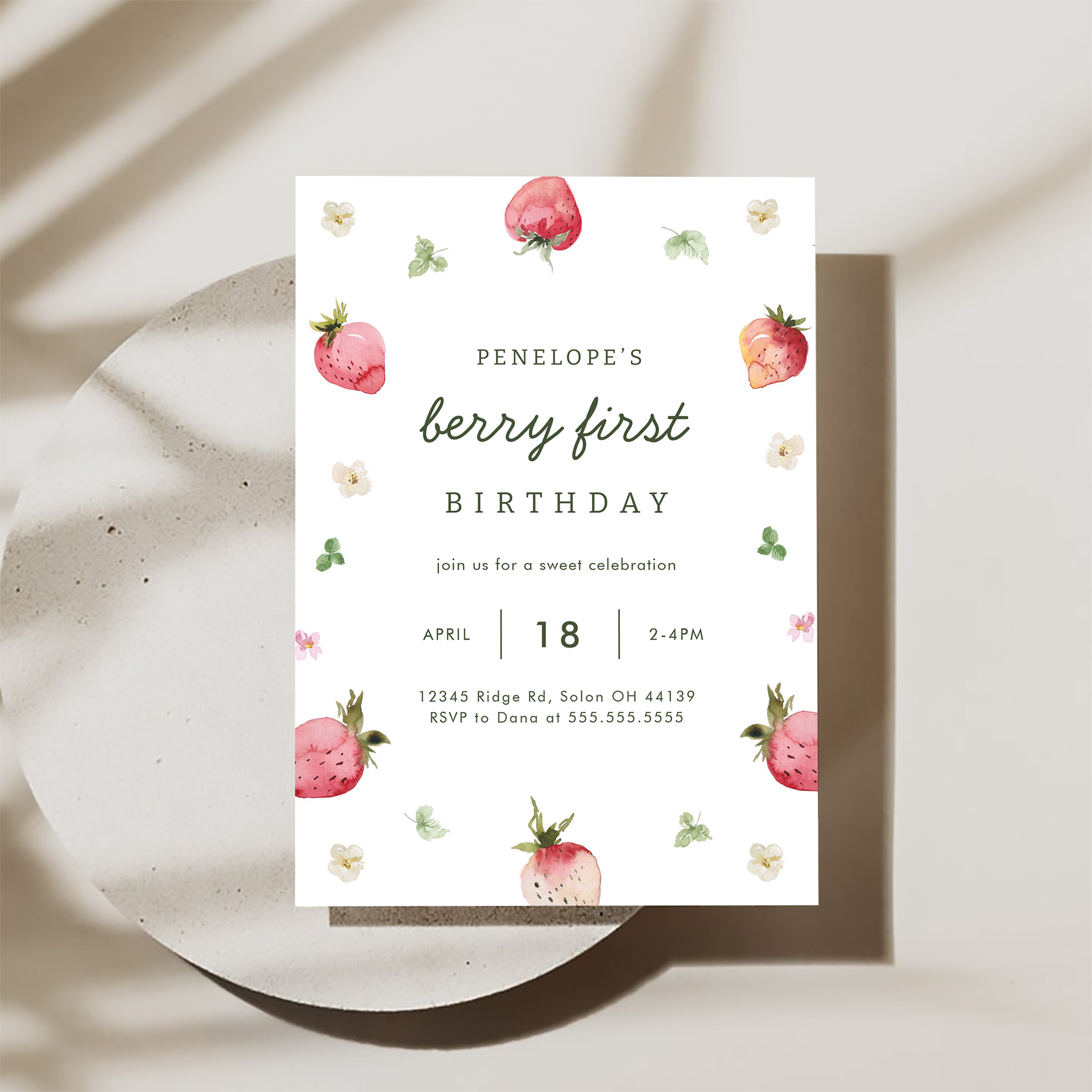 Modern Strawberry Berry First Birthday Invitation - Related products