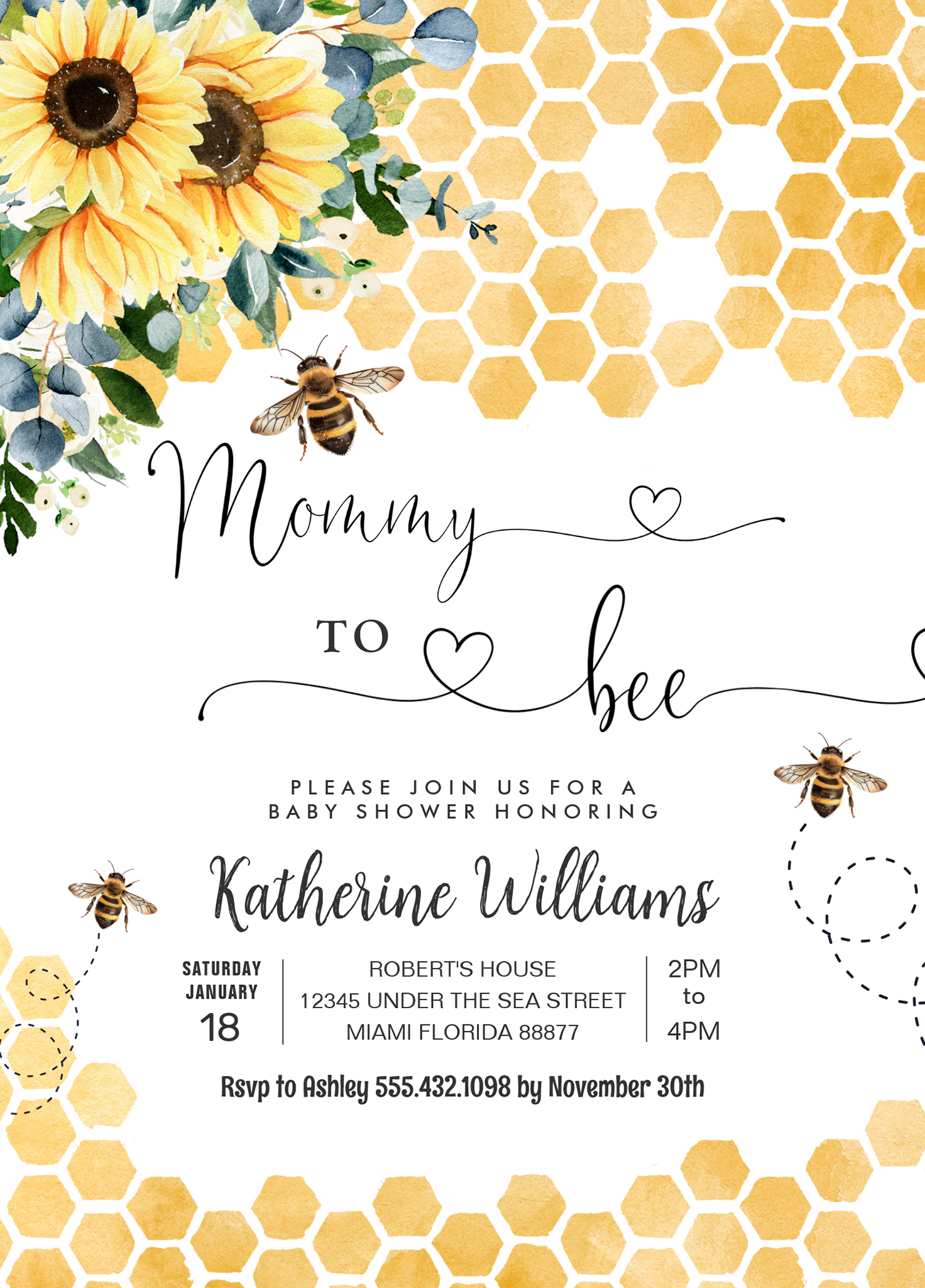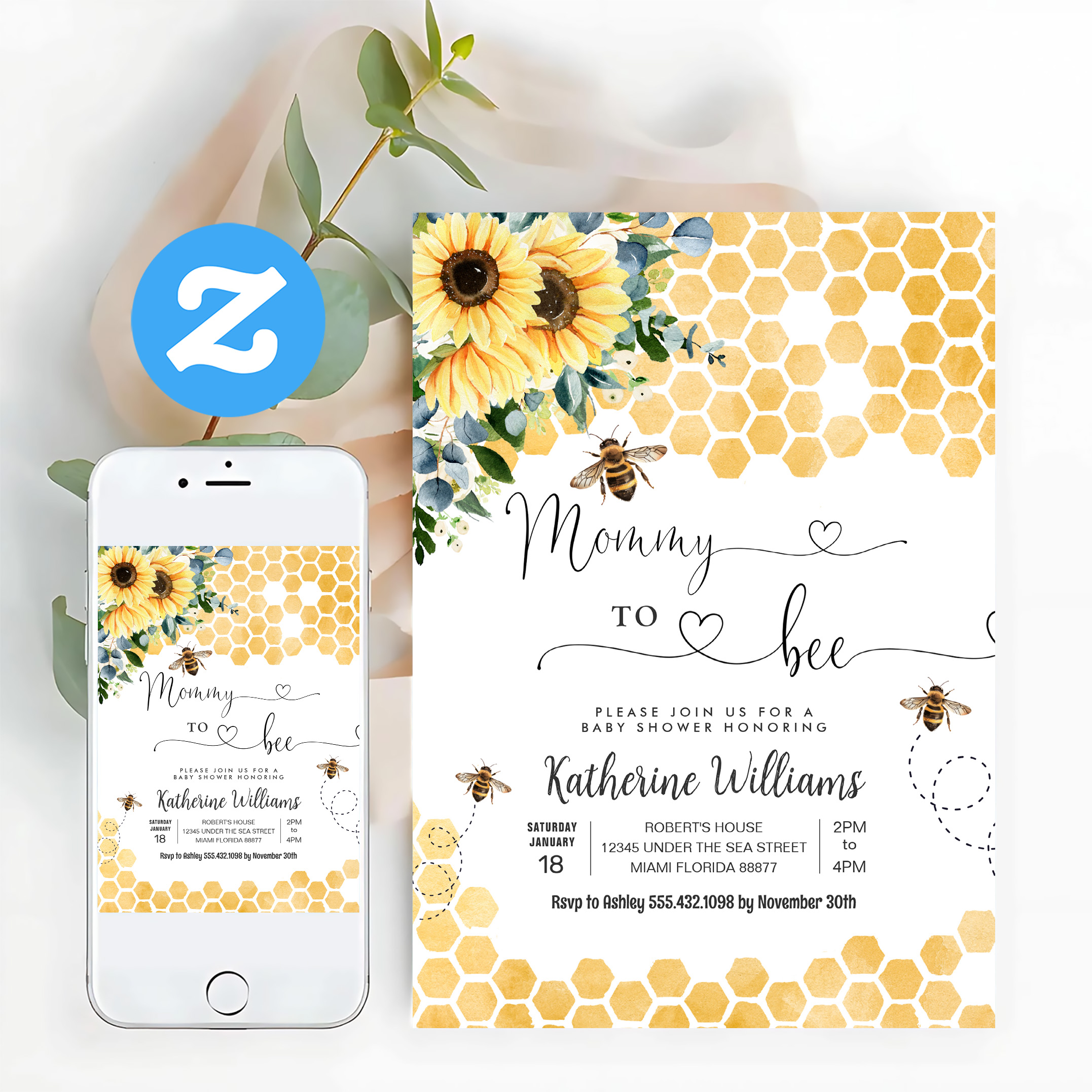Mommy To Bee Honey Bee Baby Shower Invitation