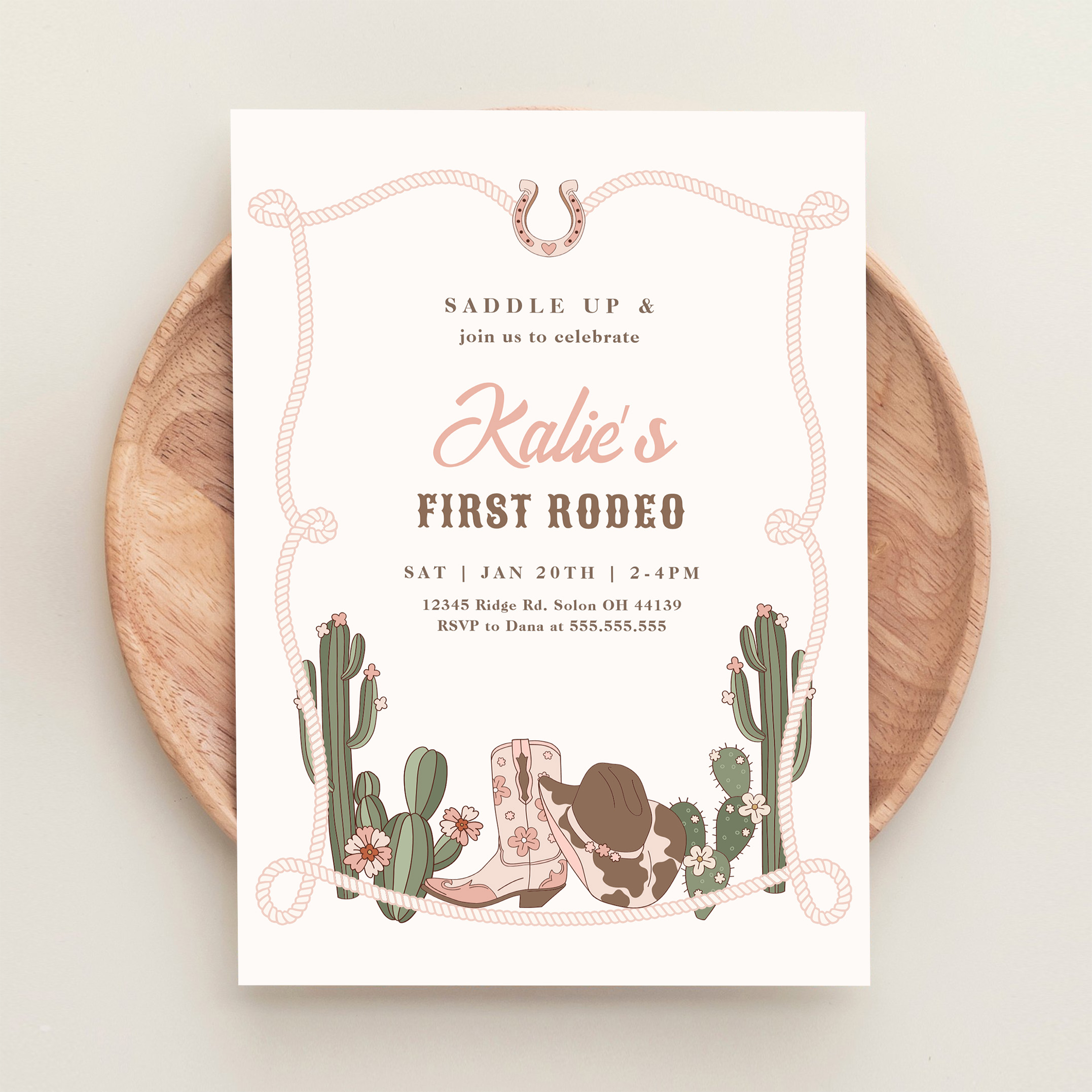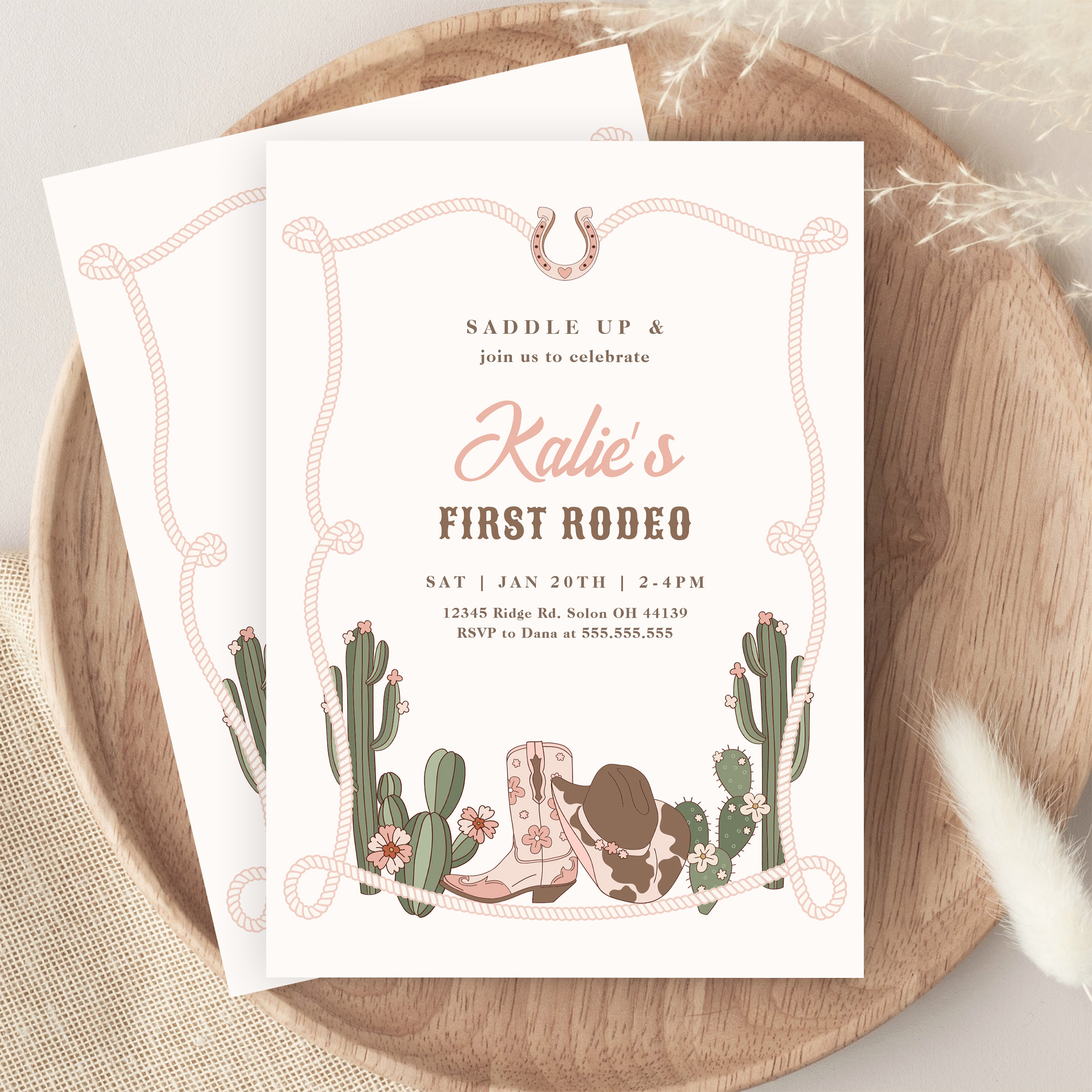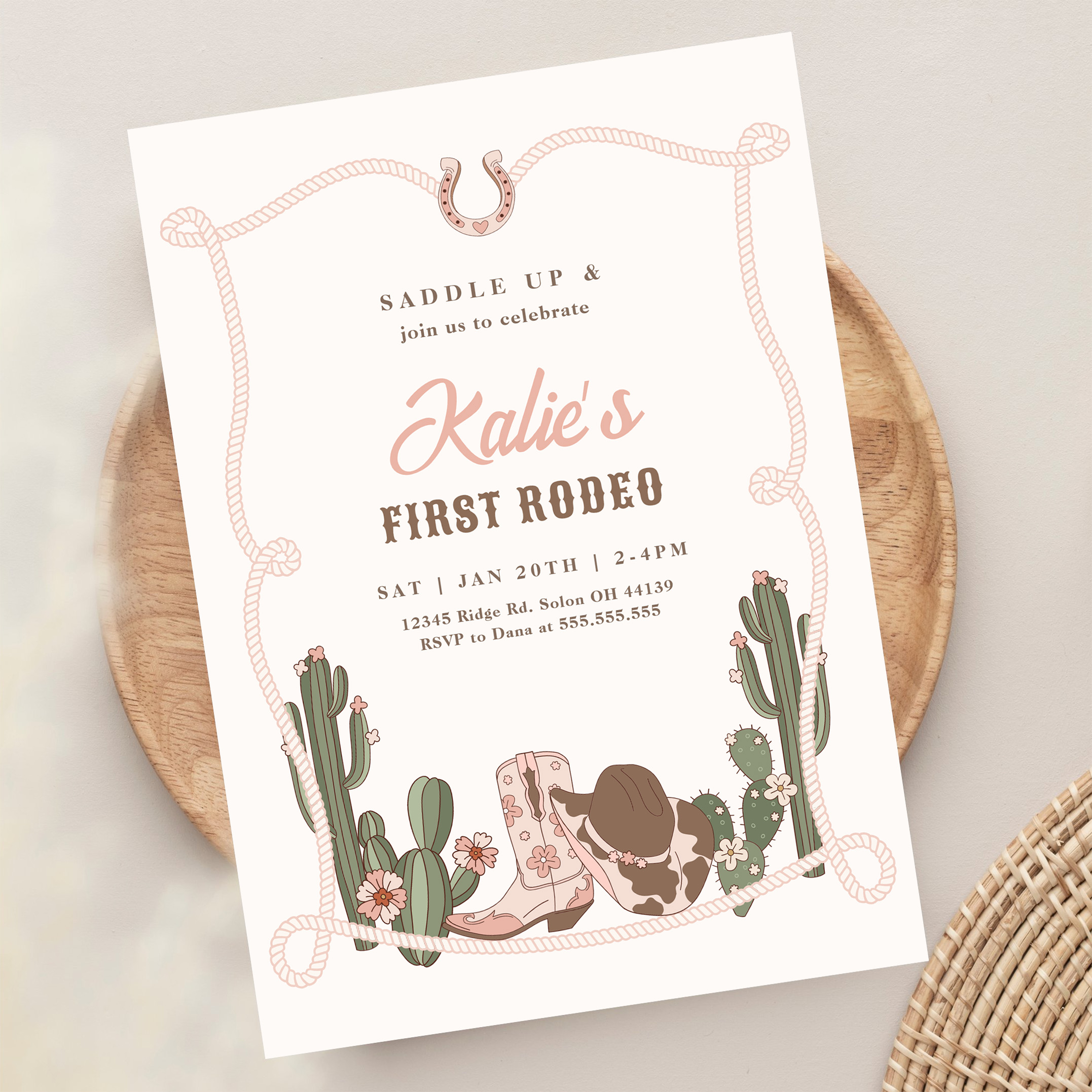 My First Rodeo Western Cowgirl 1st Rodeo Birthday Invitation