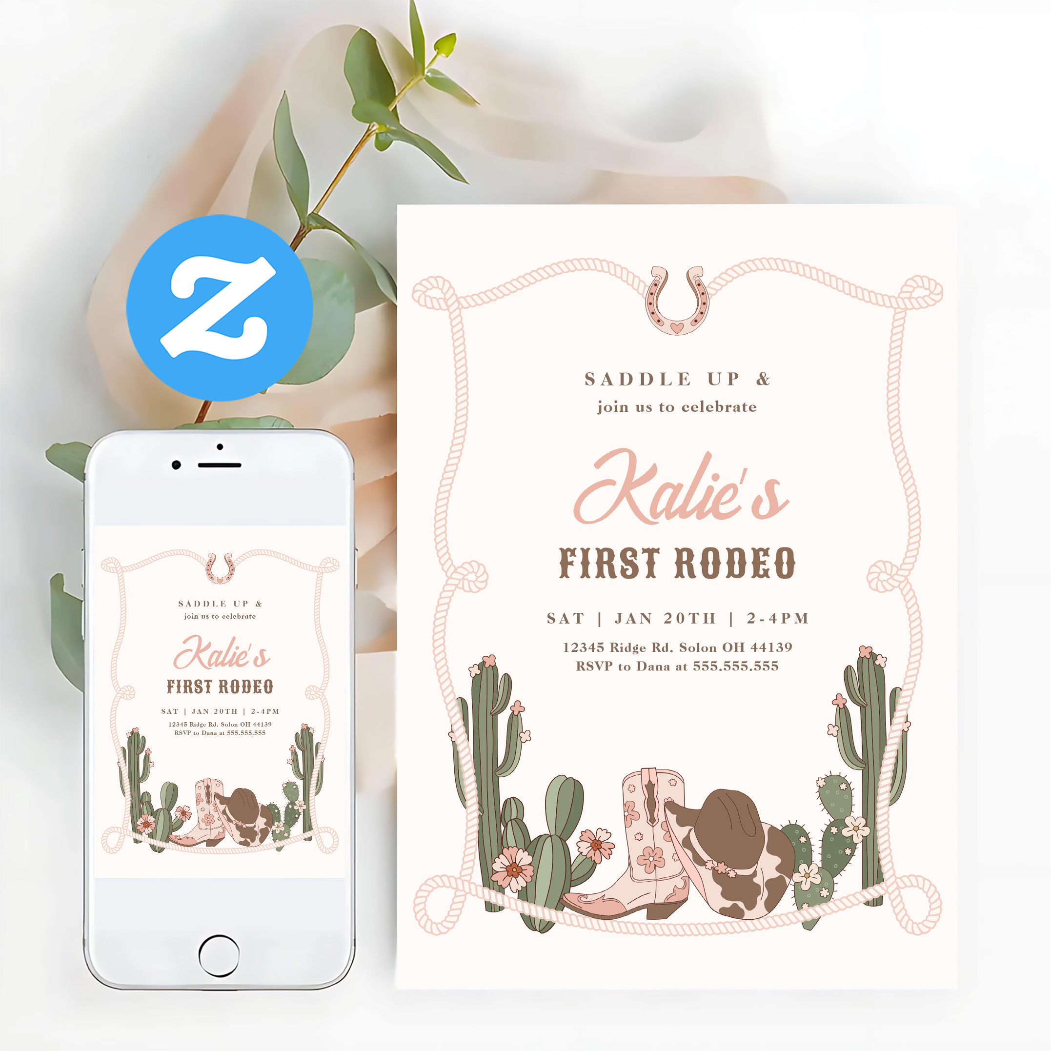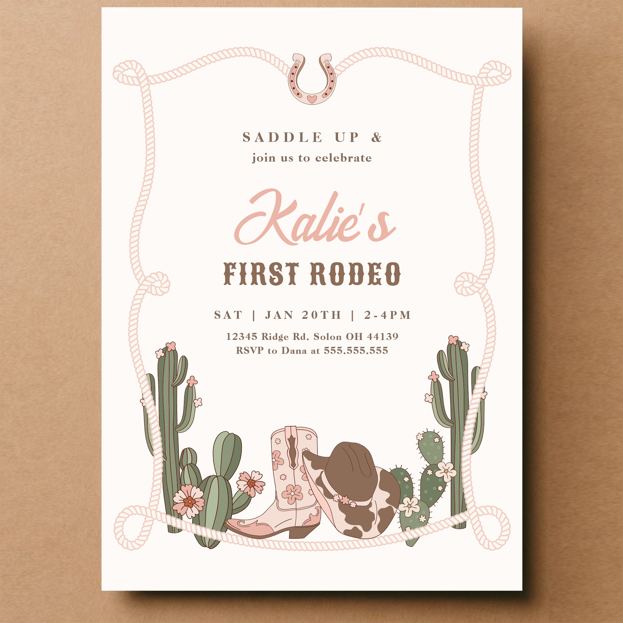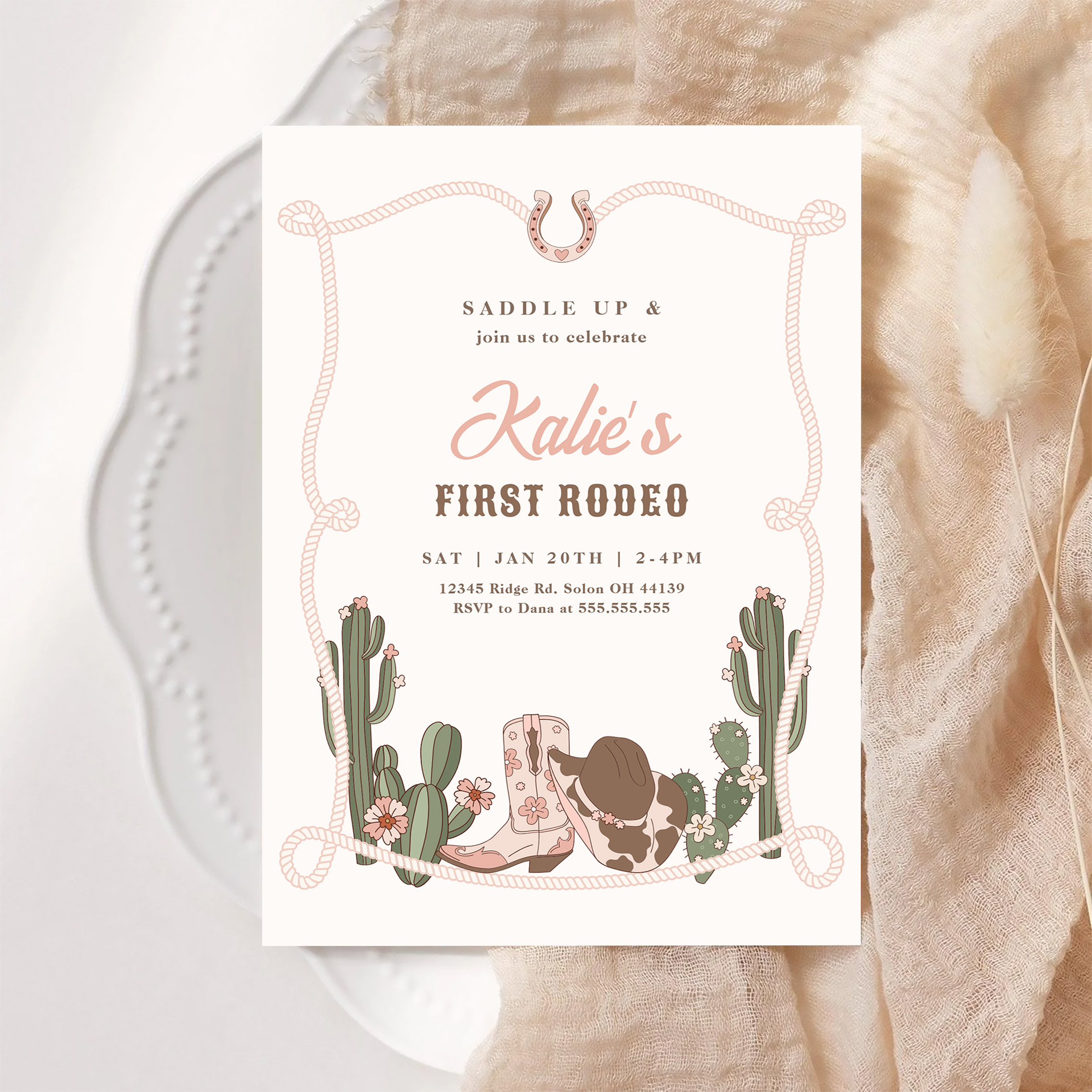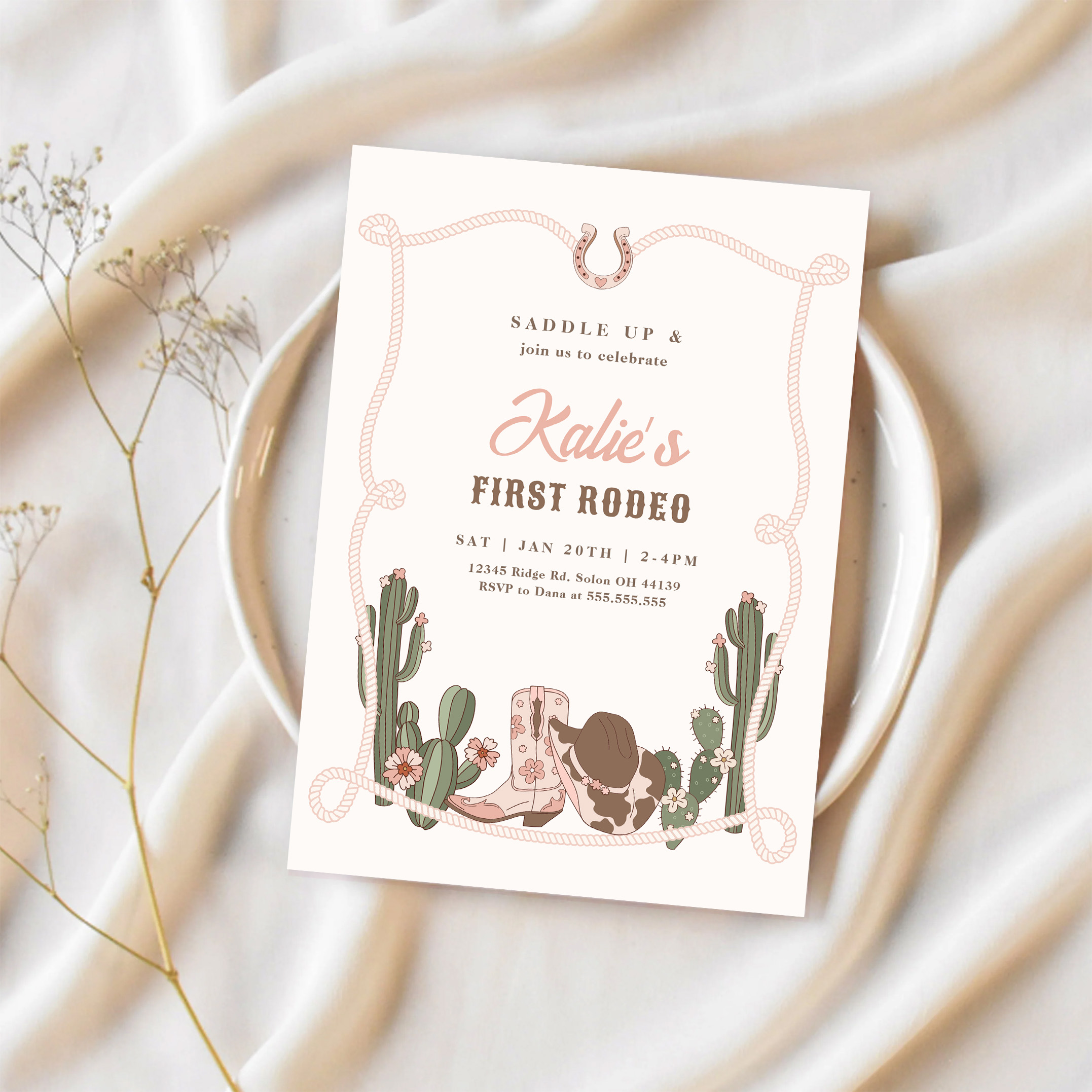 My First Rodeo Western Cowgirl 1st Rodeo Birthday Invitation