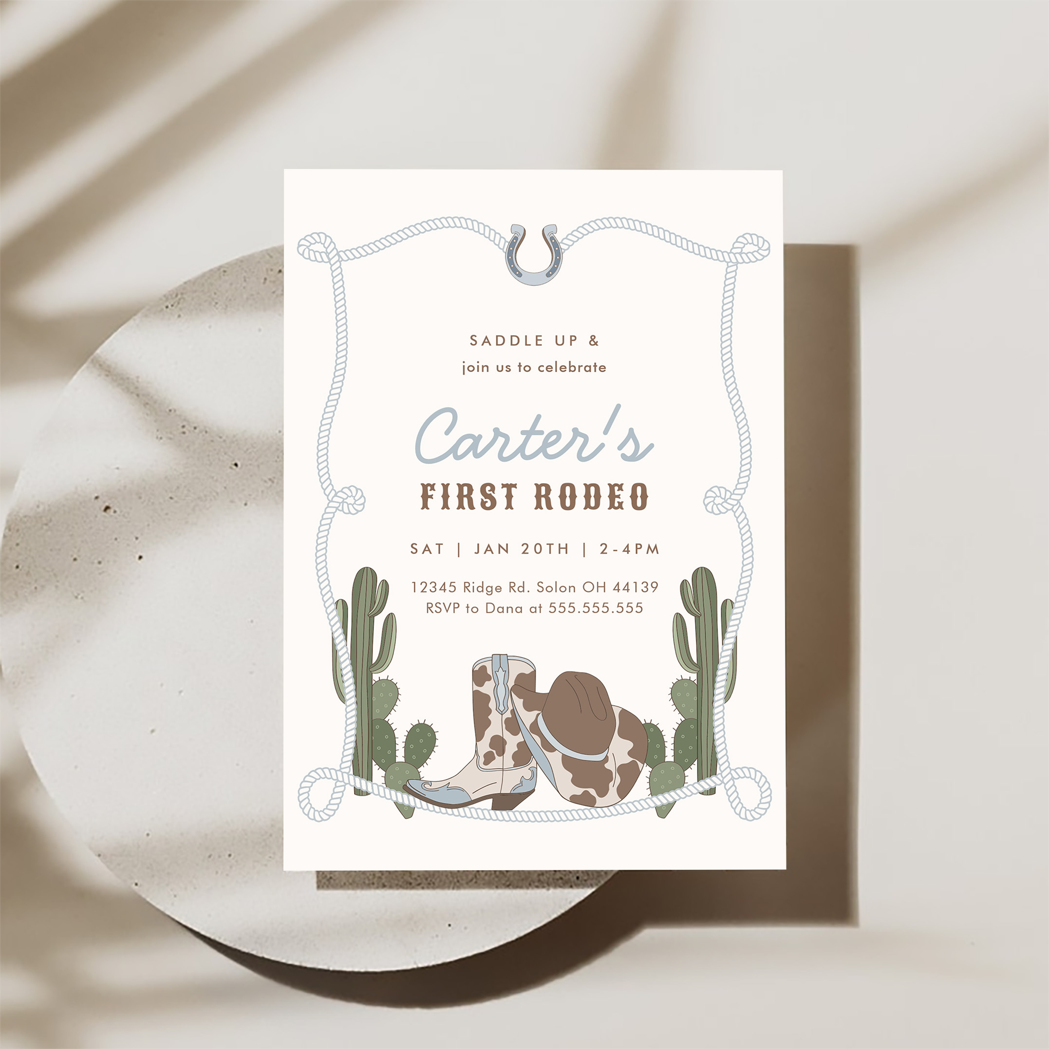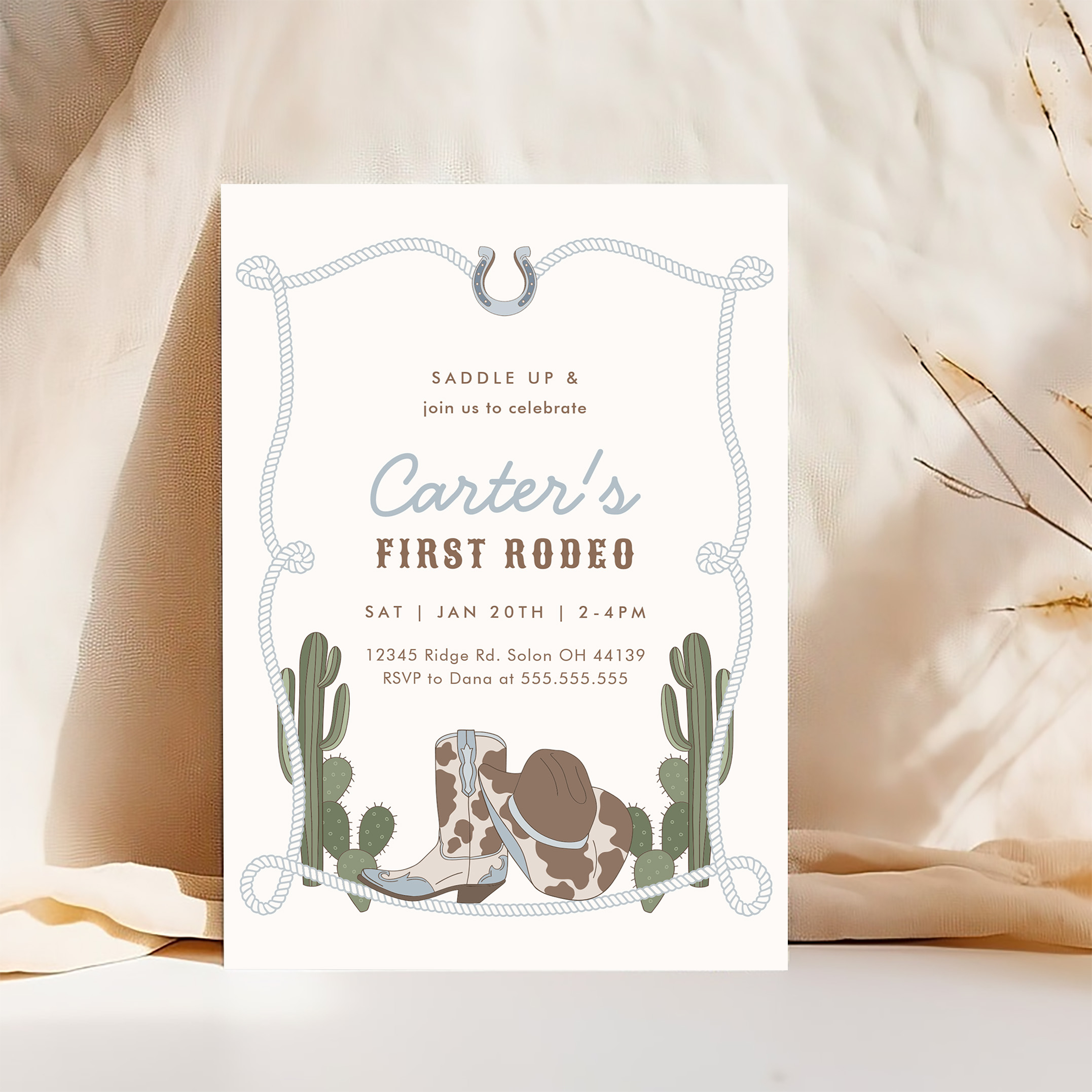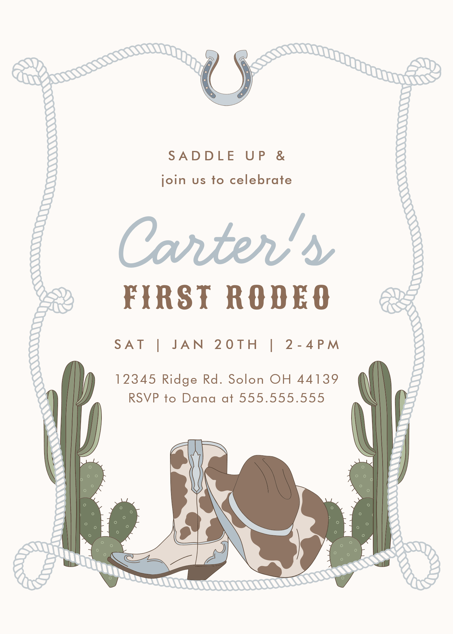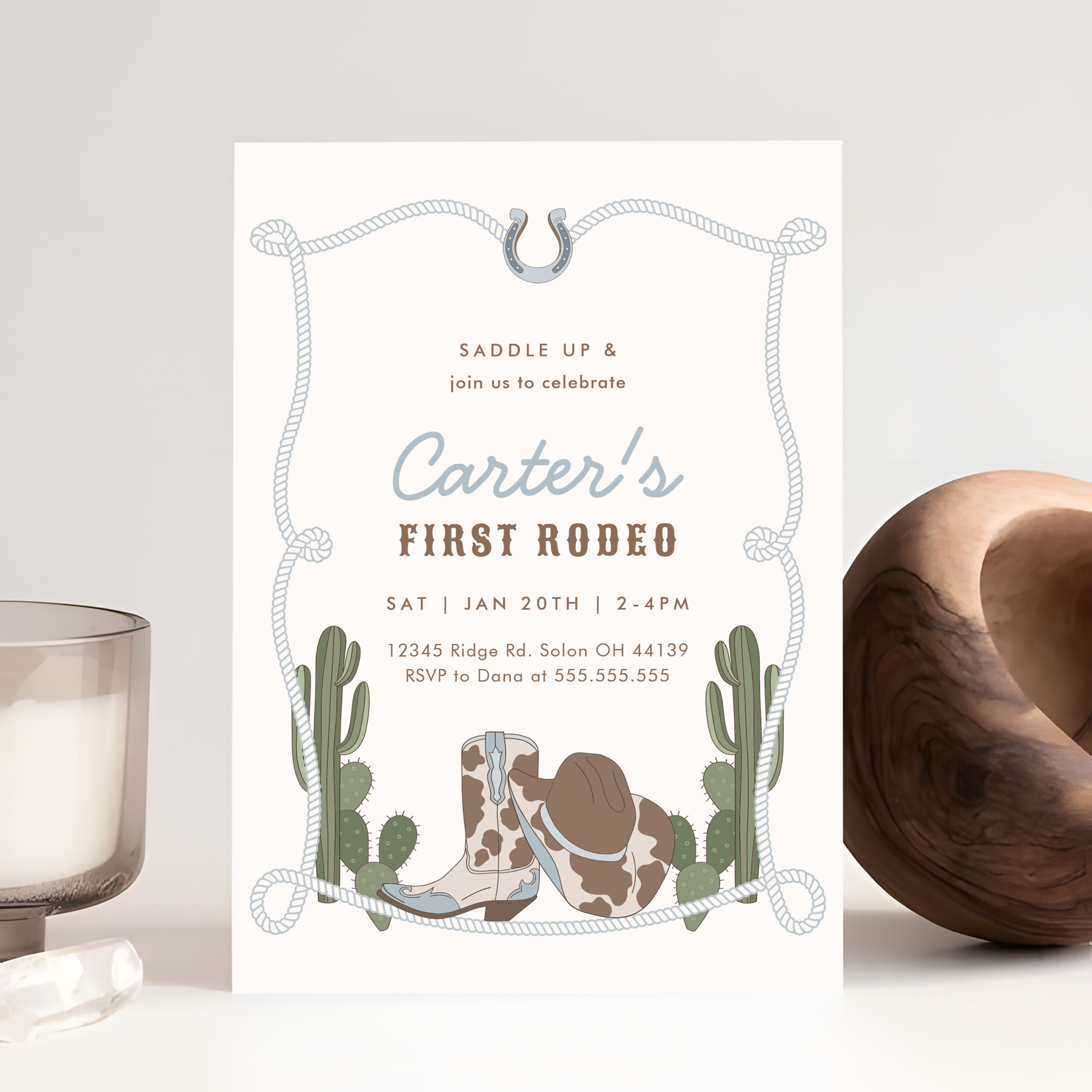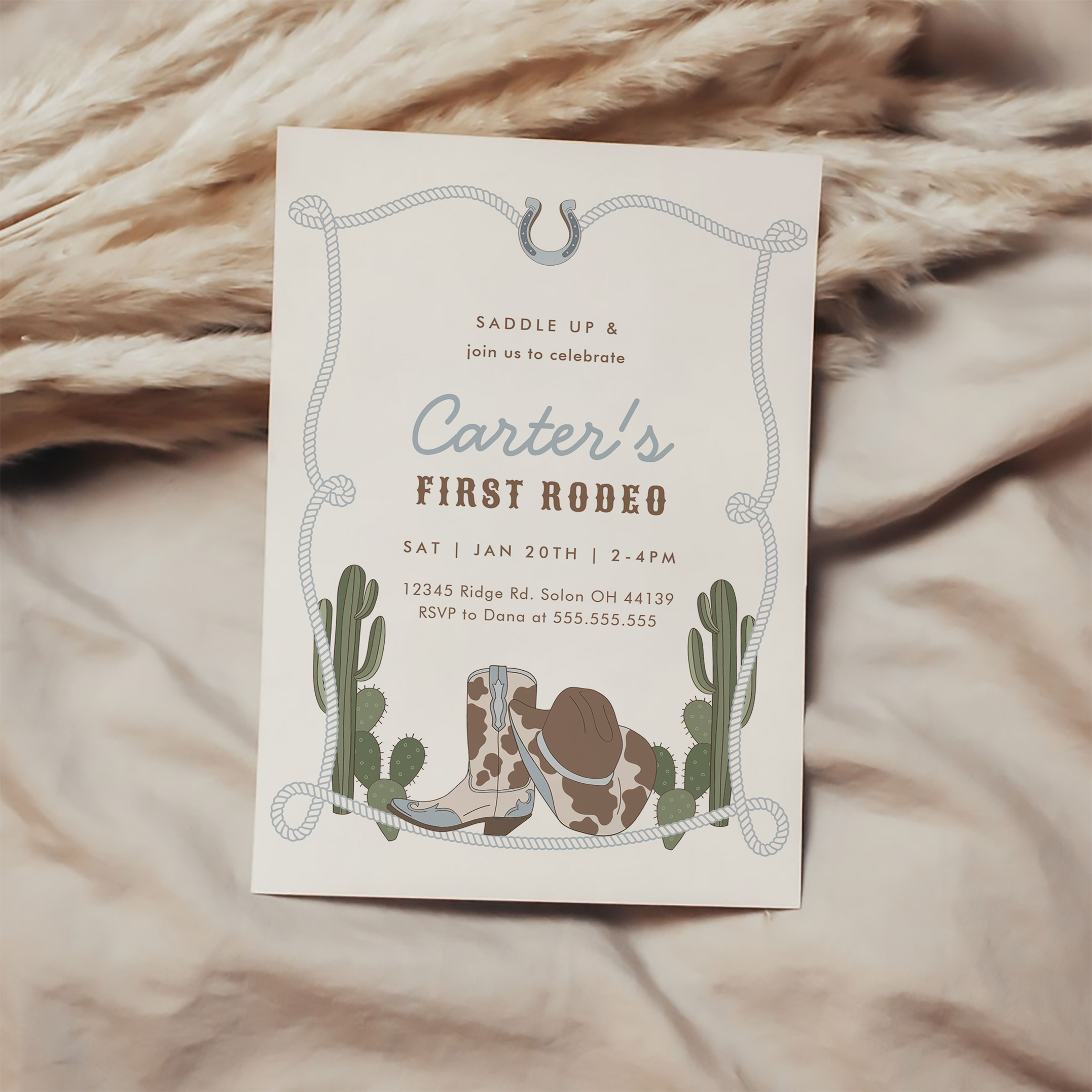 My First Rodeo Wild West Cowboy 1St Rodeo Birthday Invitation