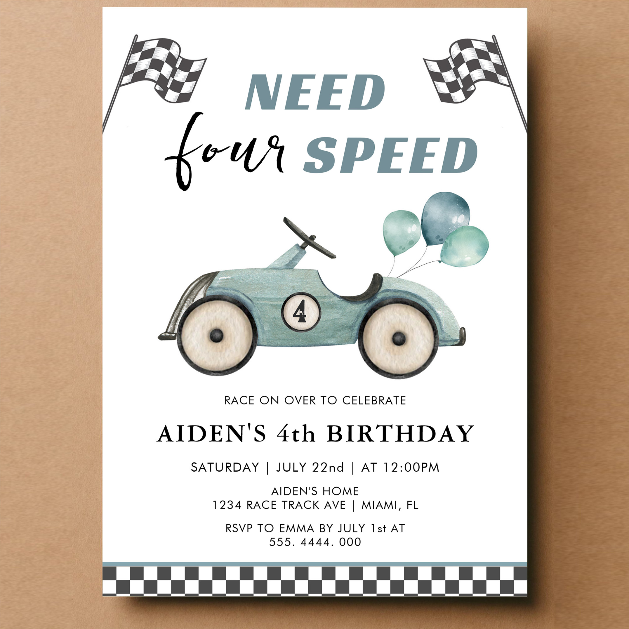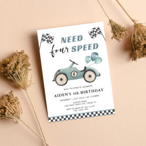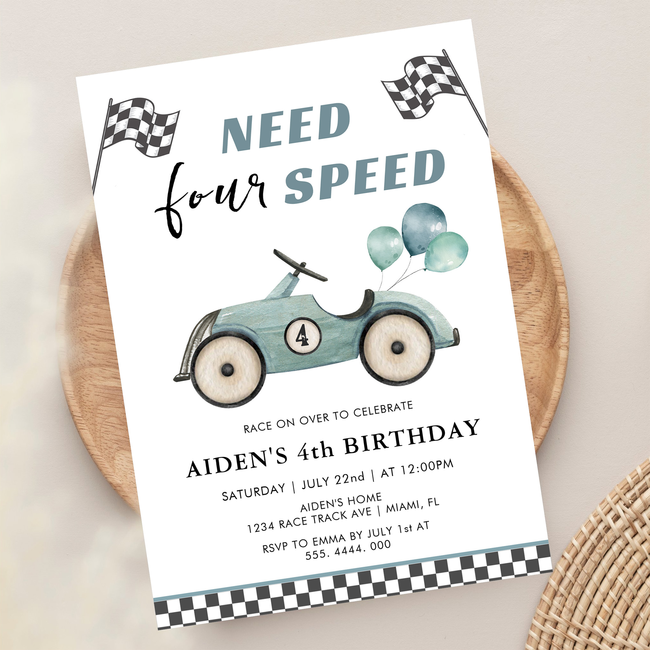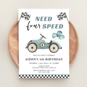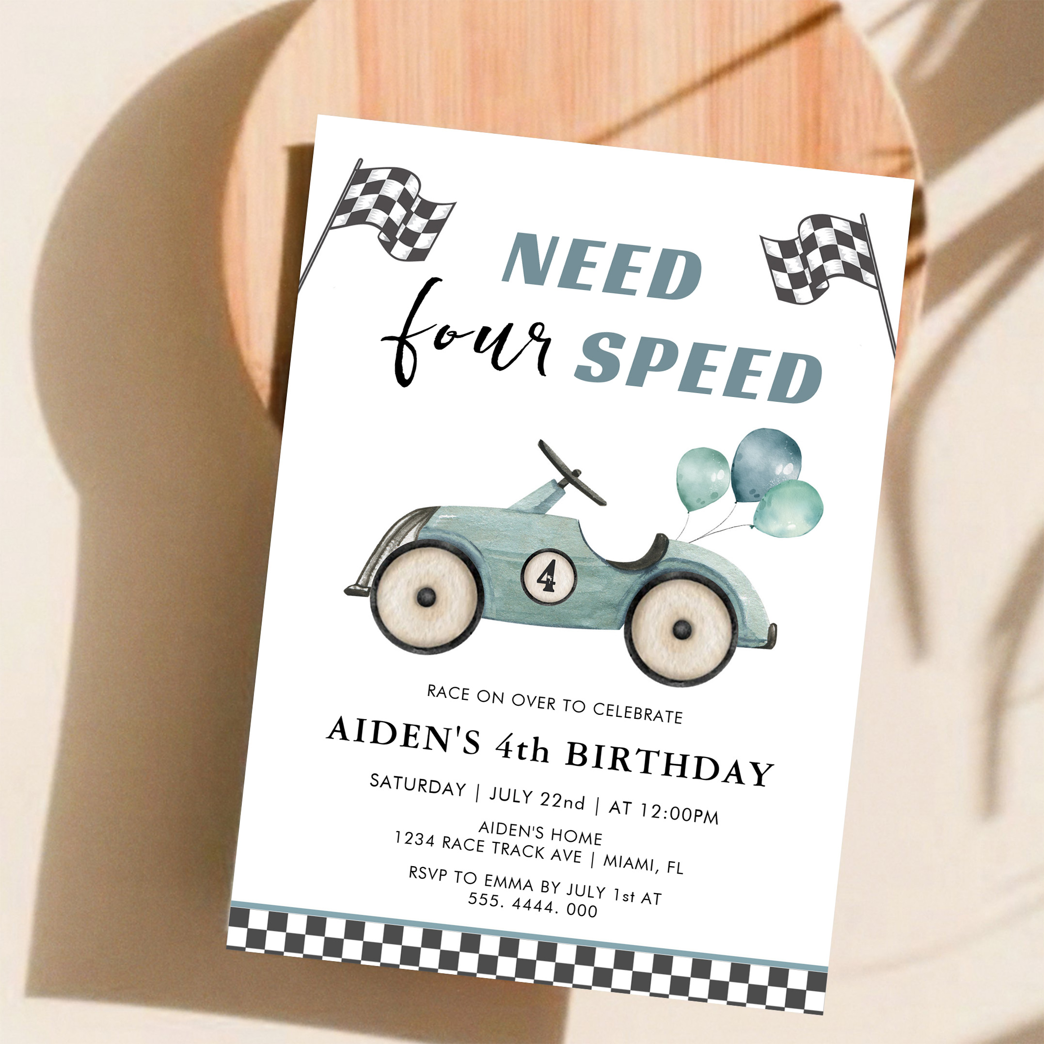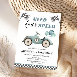 Need Four Speed Race Car 4th Birthday Invitation - Related products