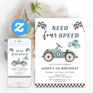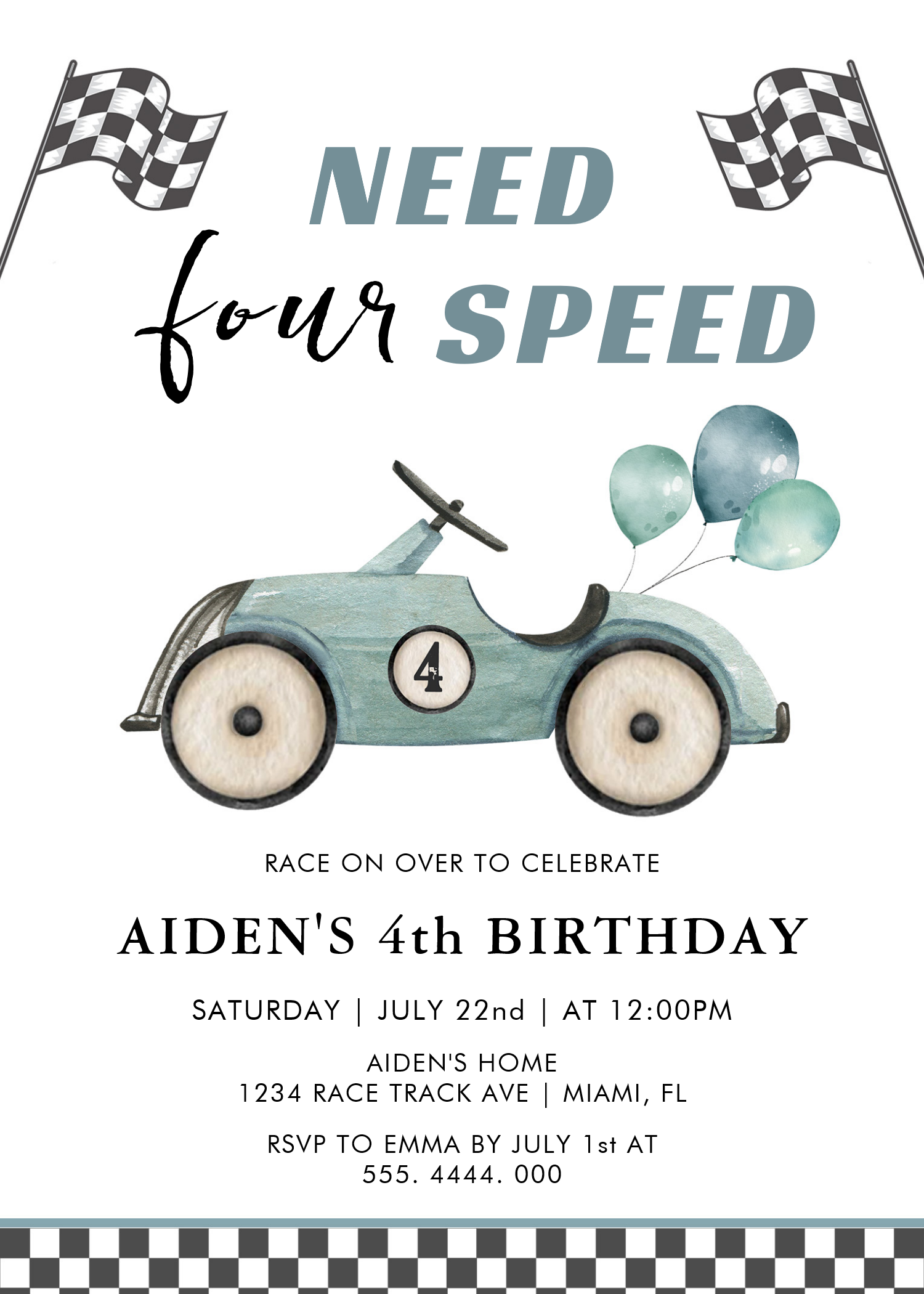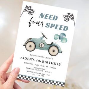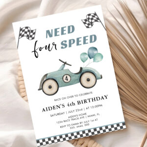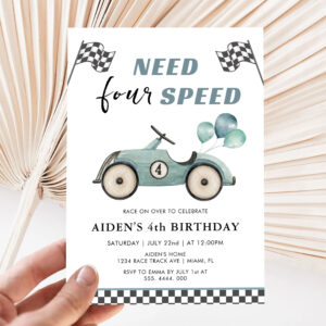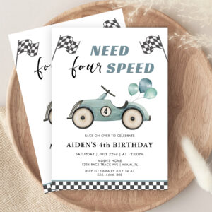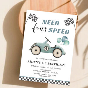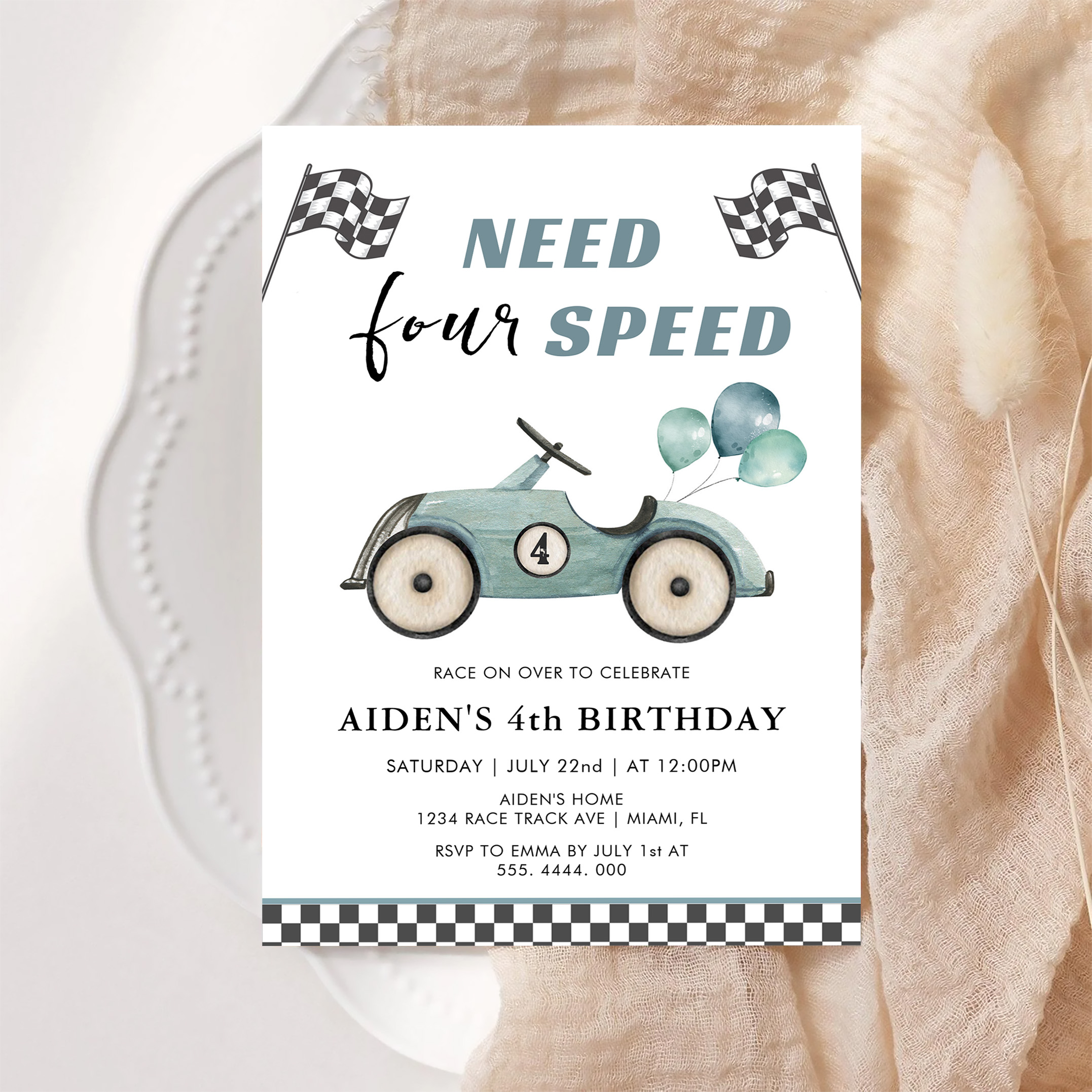 Need Four Speed Race Car 4th Birthday Invitation - Related products