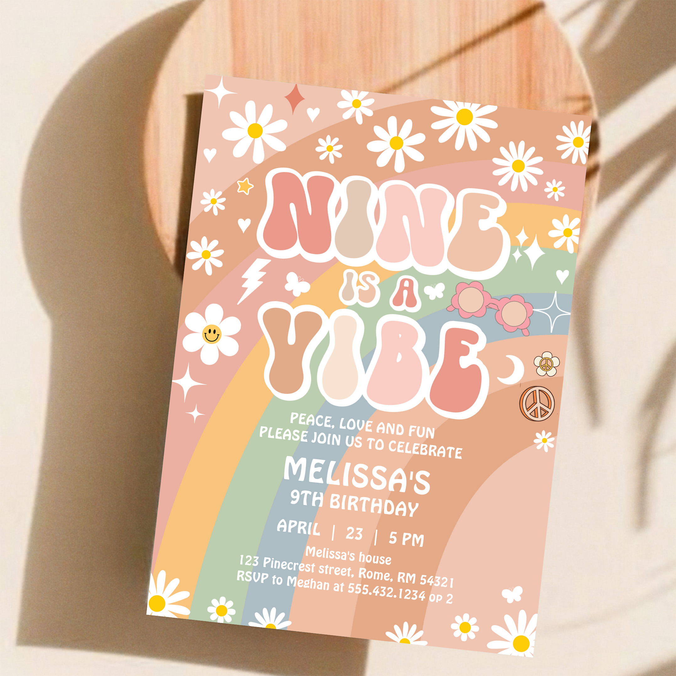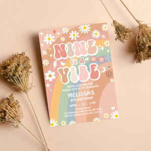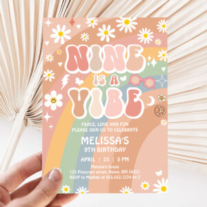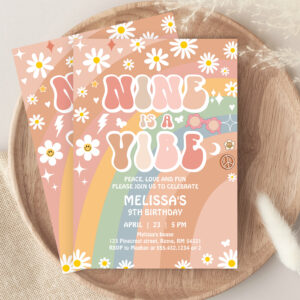 Nine Is A Vibe Groovy Retro 70S 9th Birthday Invitation - Related products