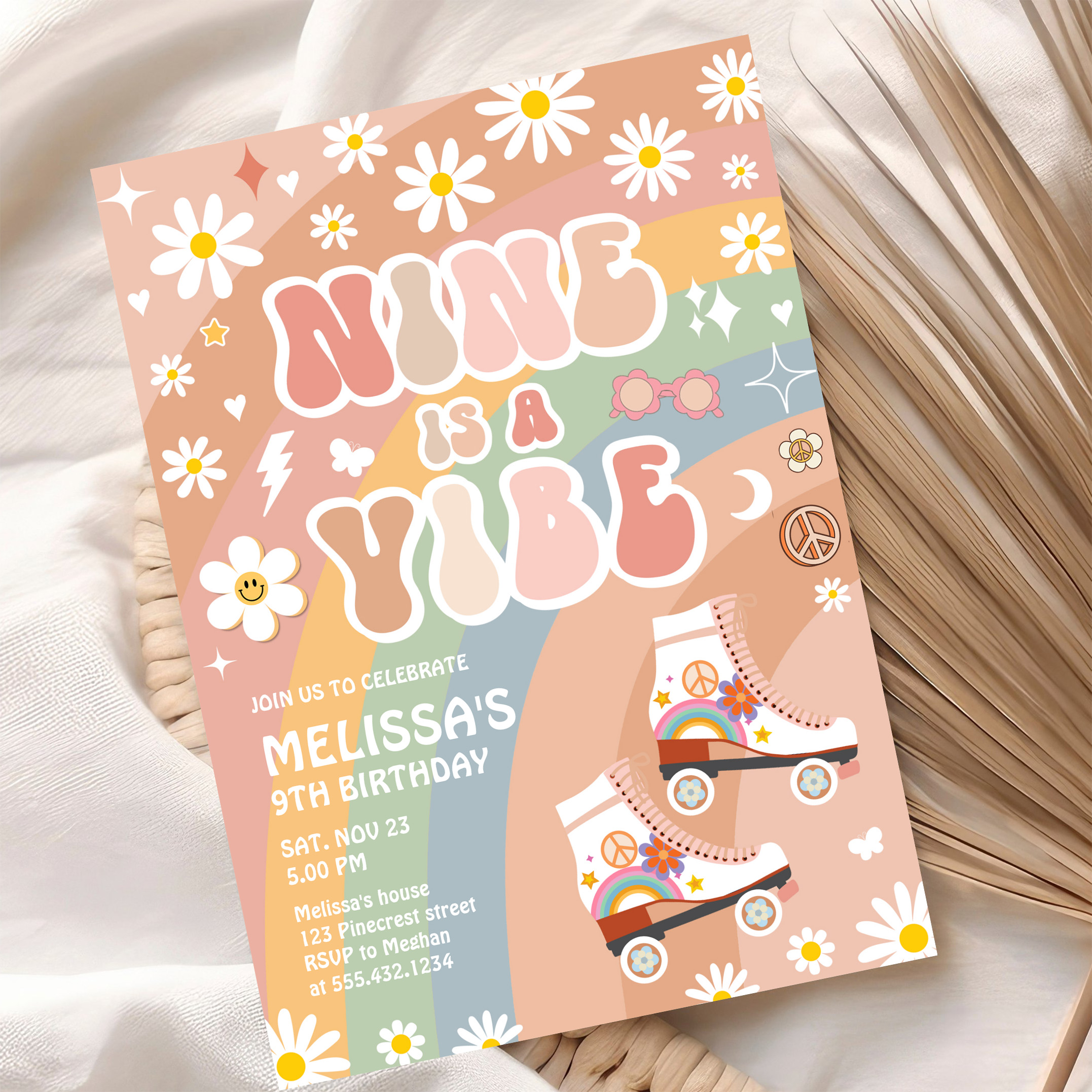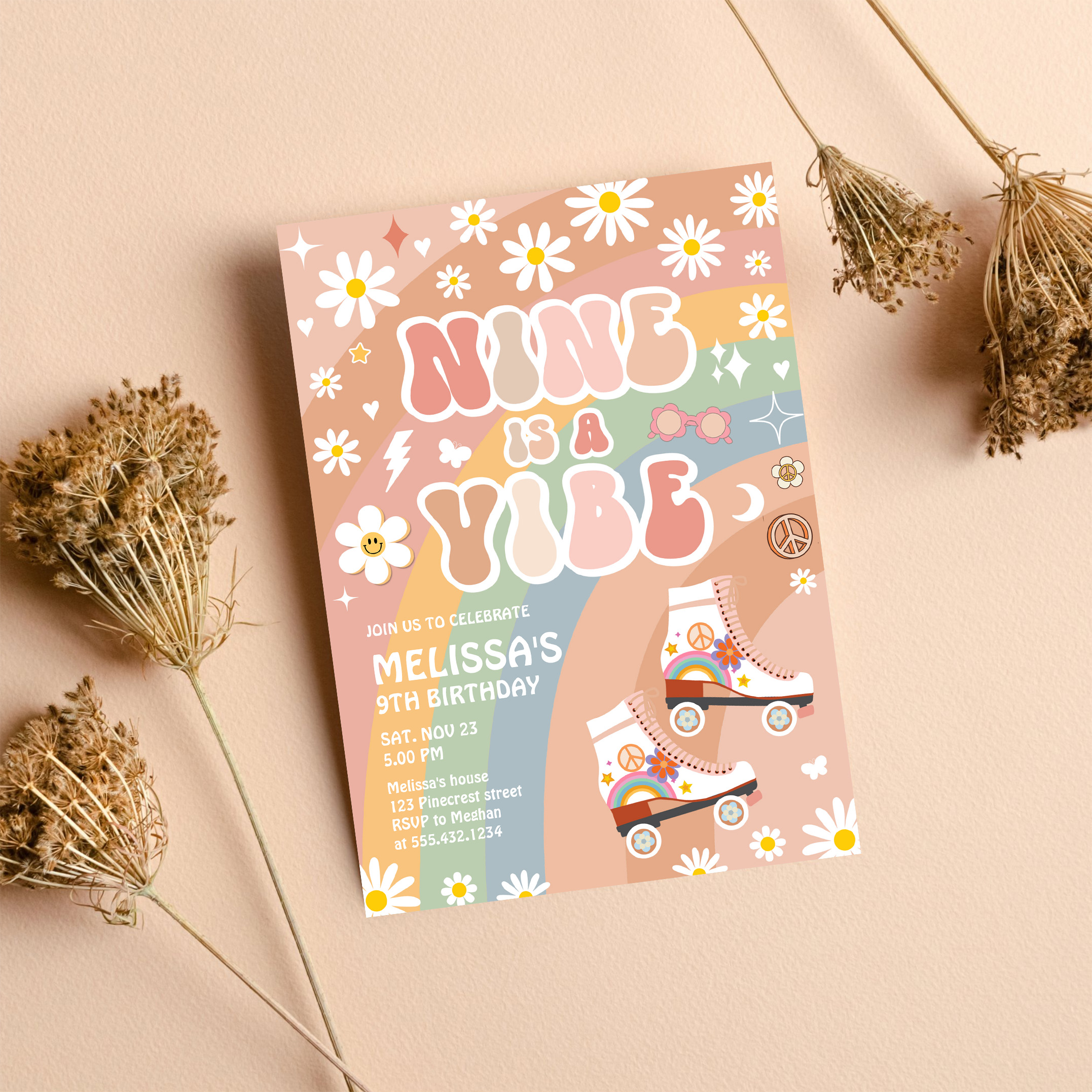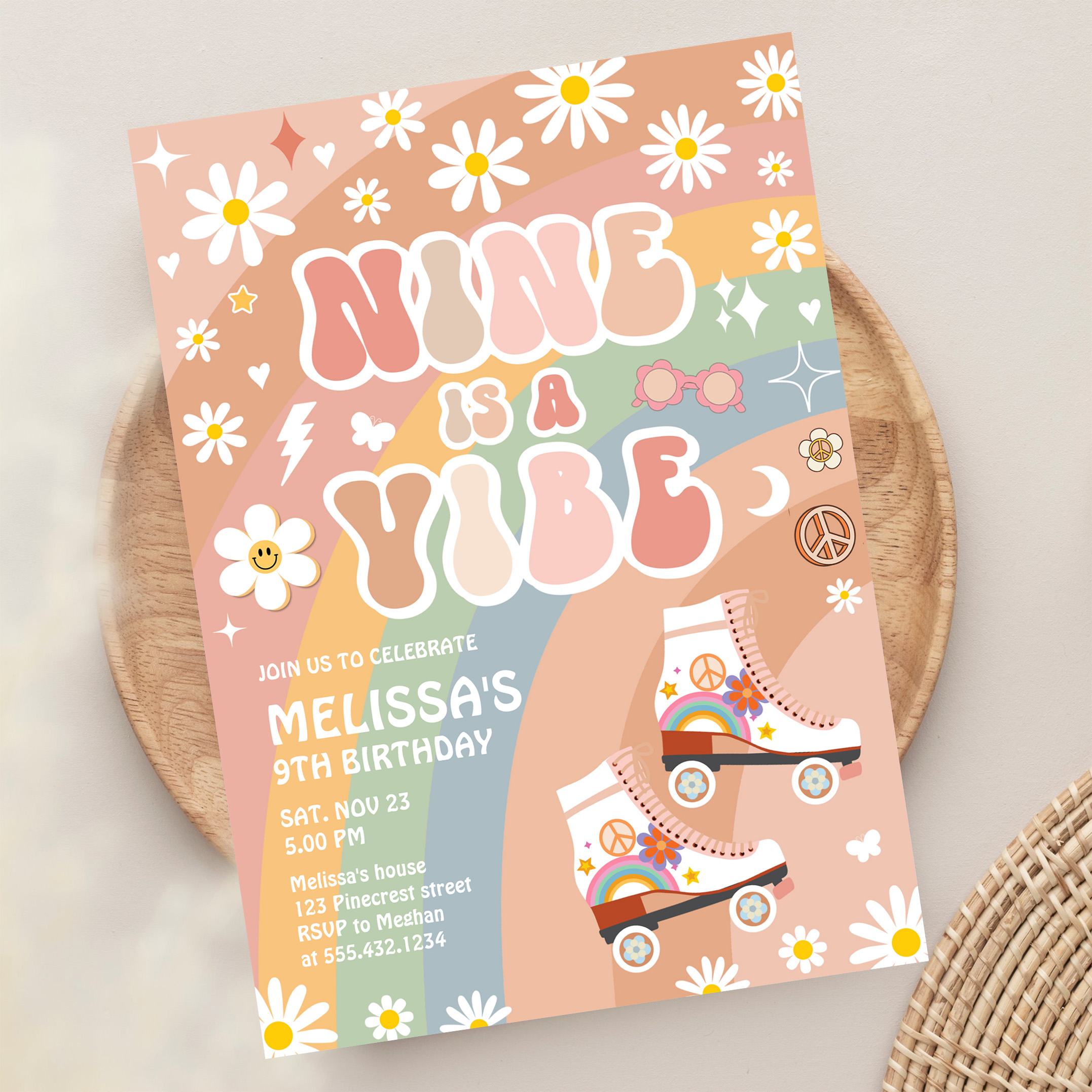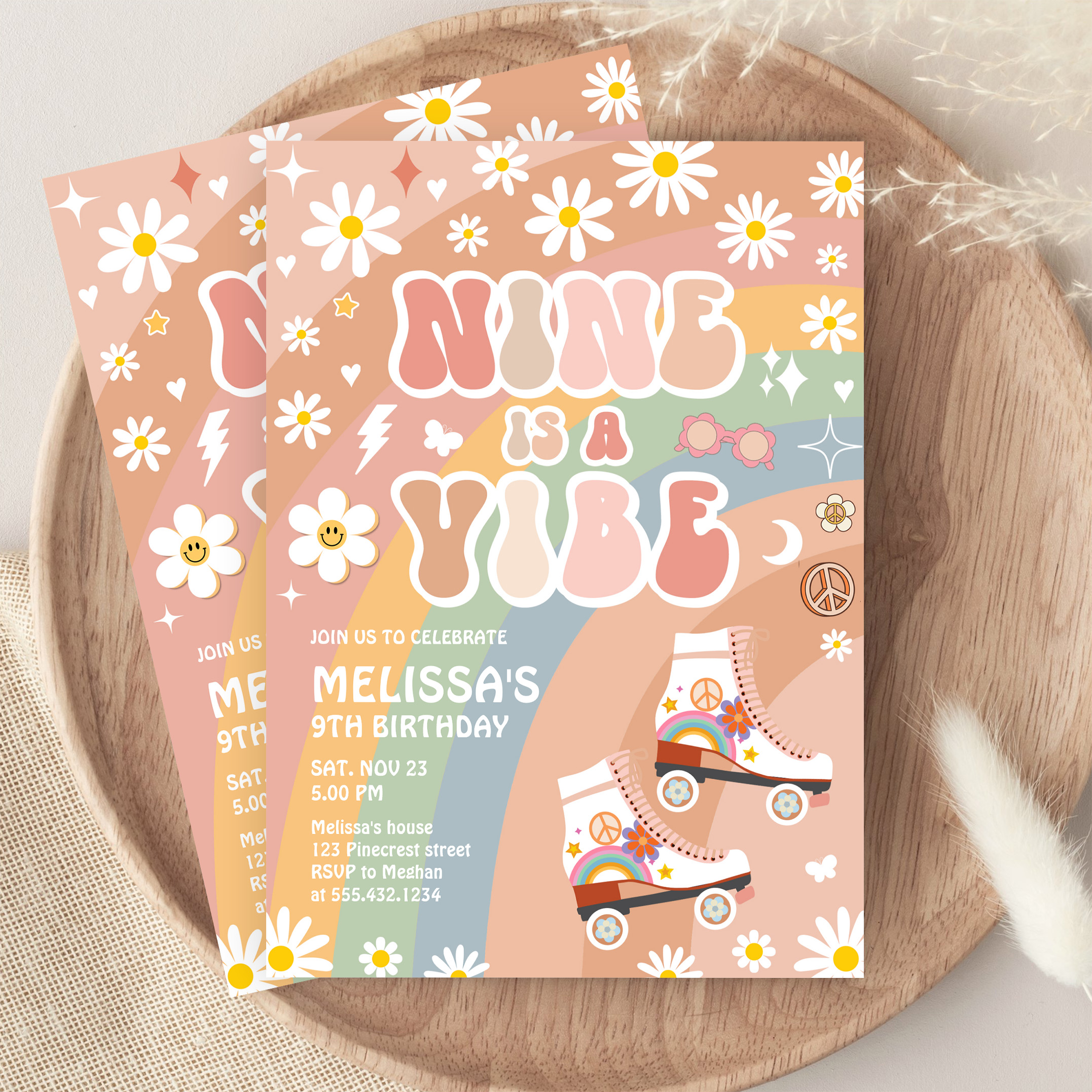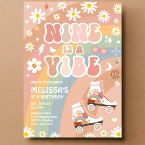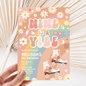Nine Is A Vibe Groovy Roller Skate 9th Birthday Invitation - Related products