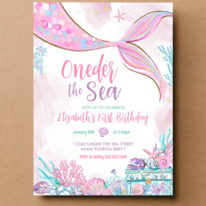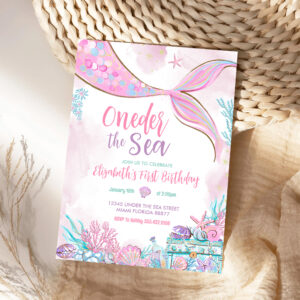 Oneder The Sea Little Mermaid First 1st Birthday Invitation