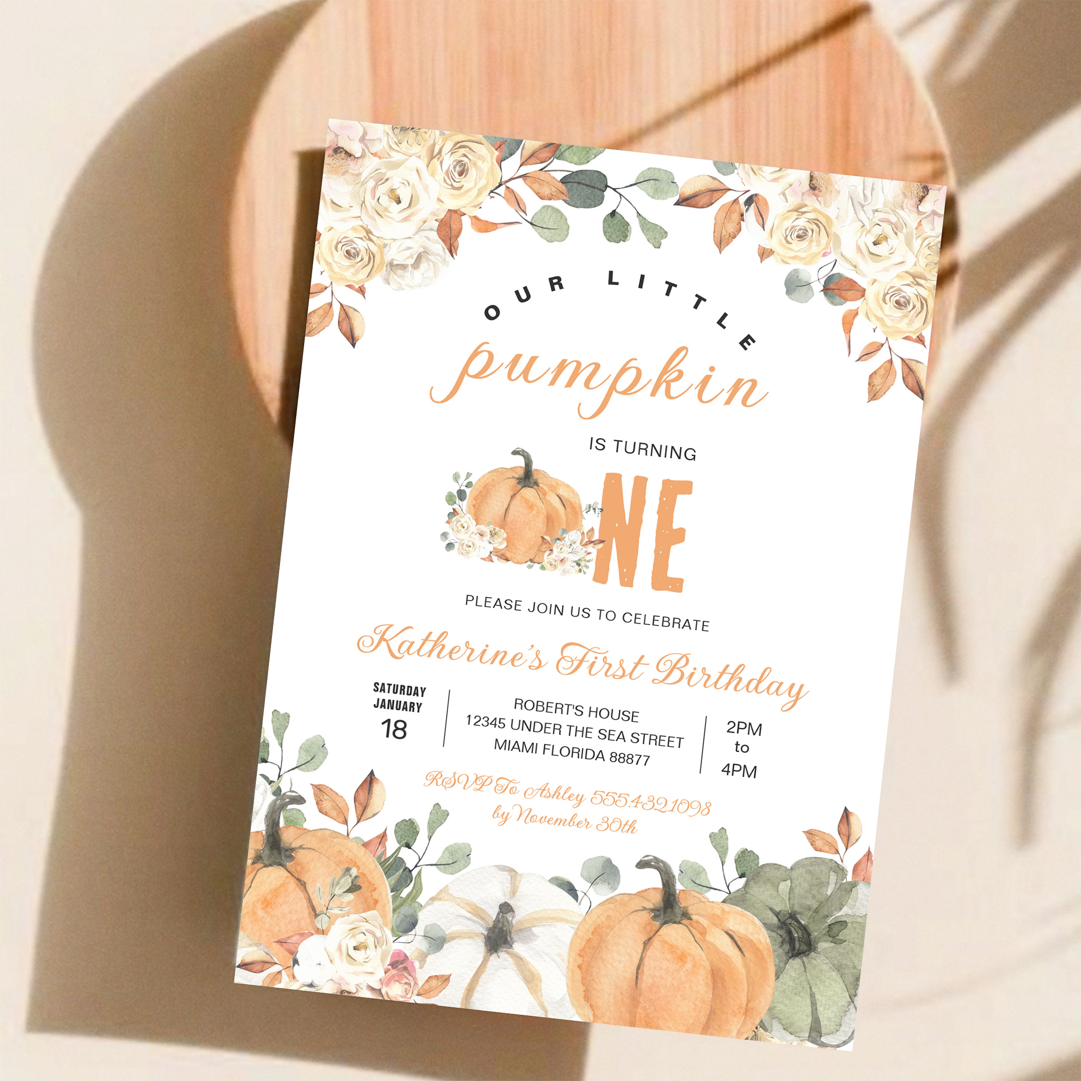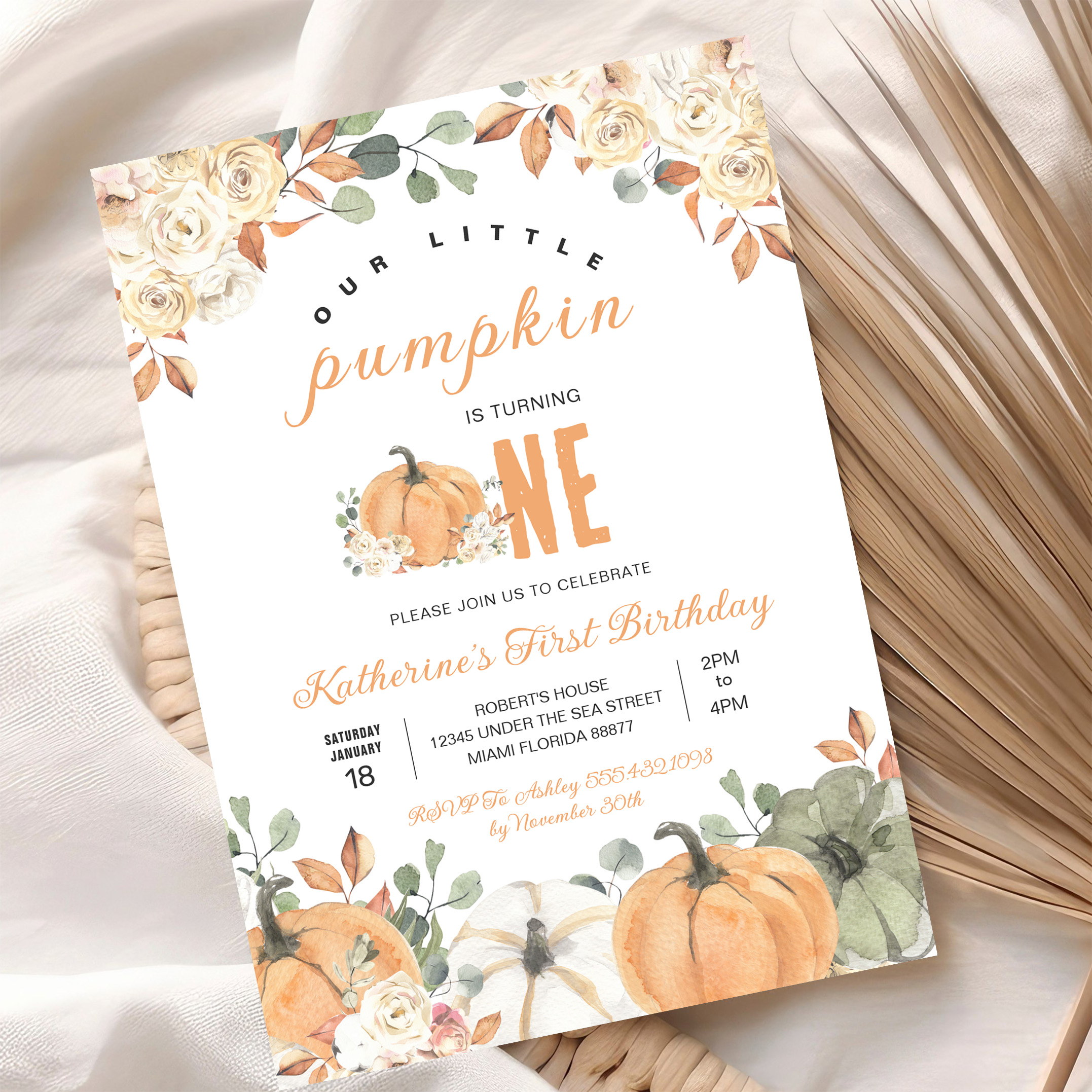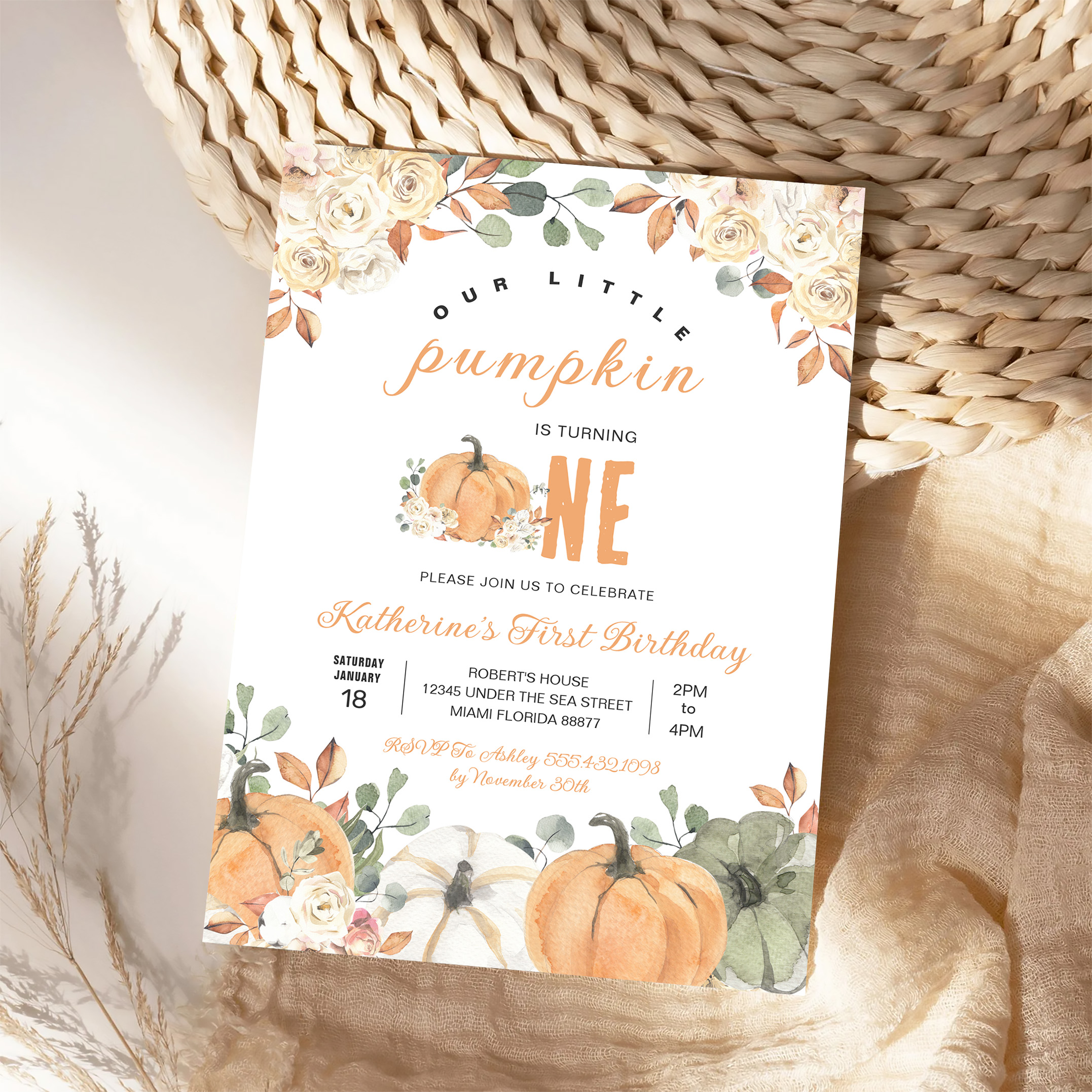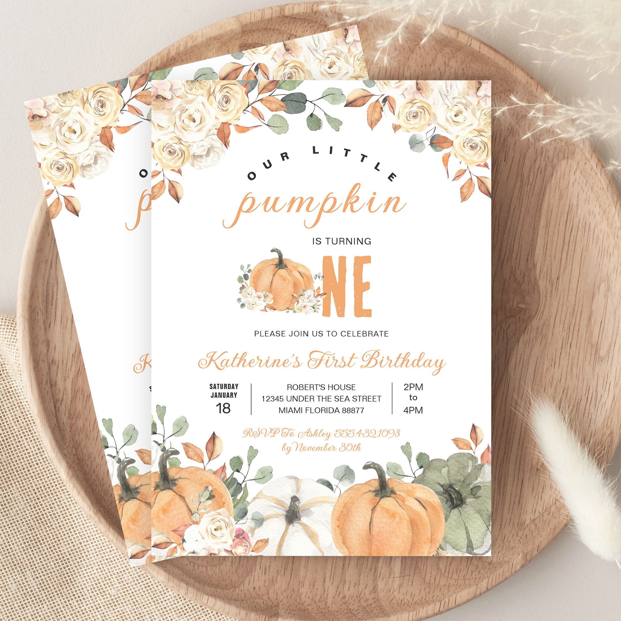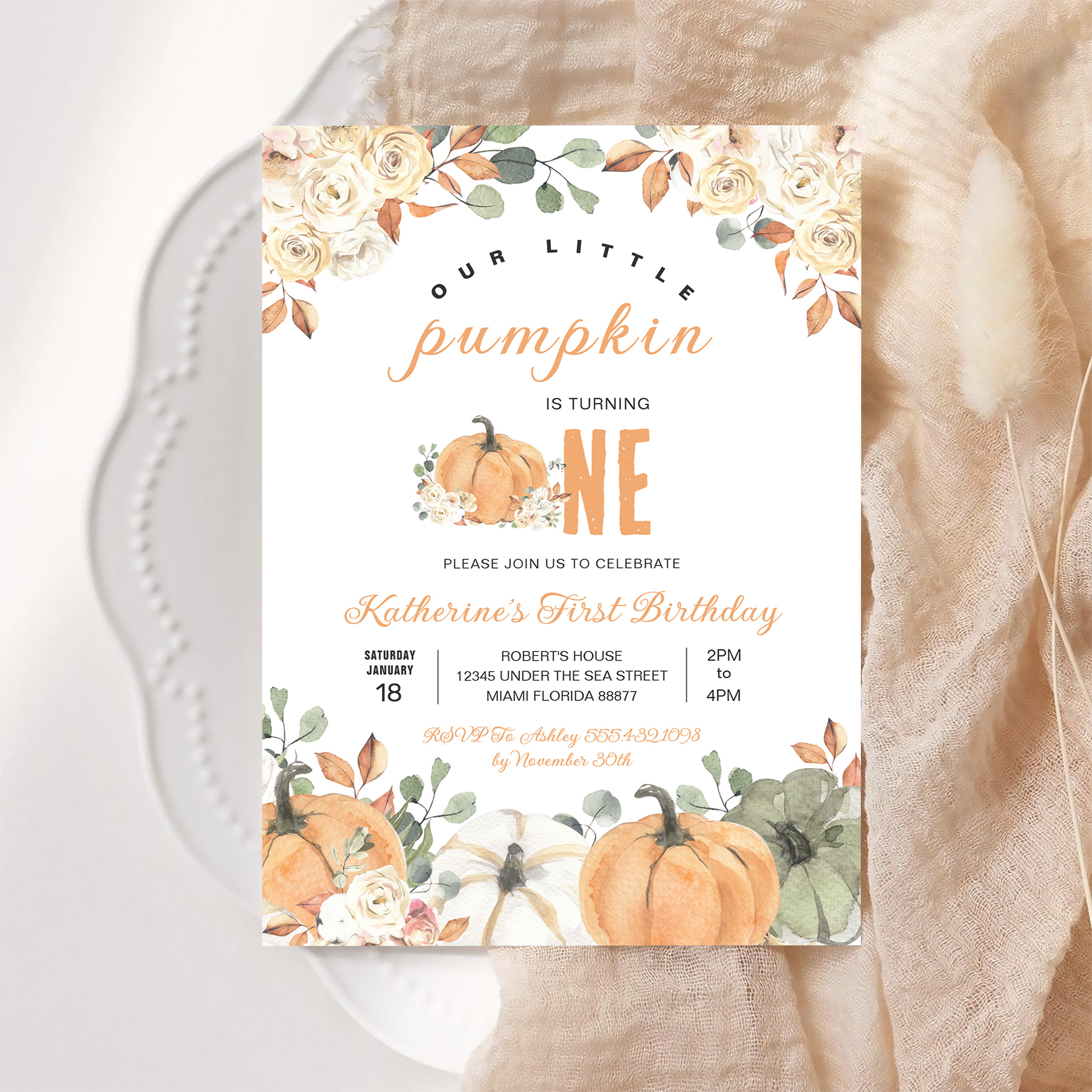 Our Little Pumpkin 1st Birthday Fall Invitation