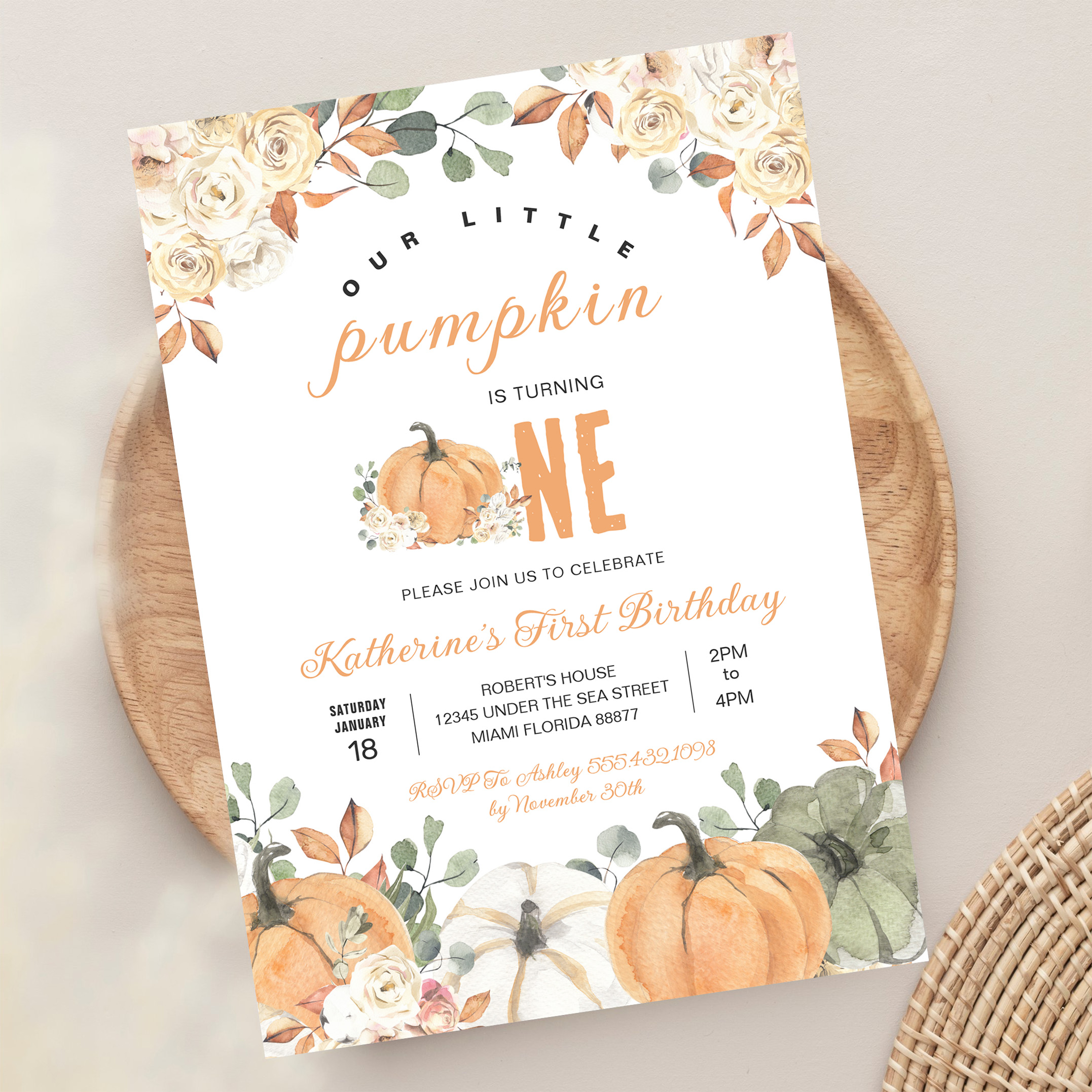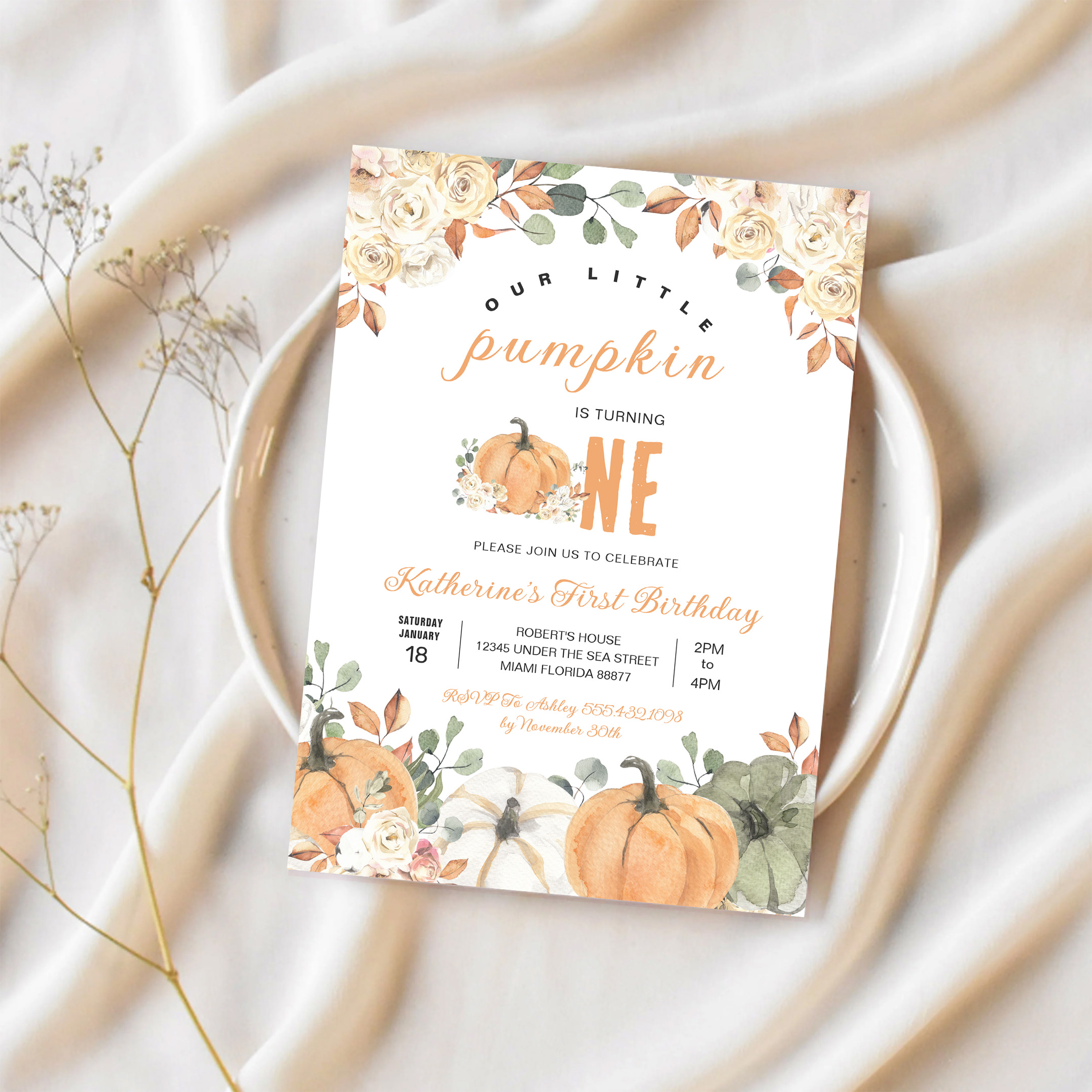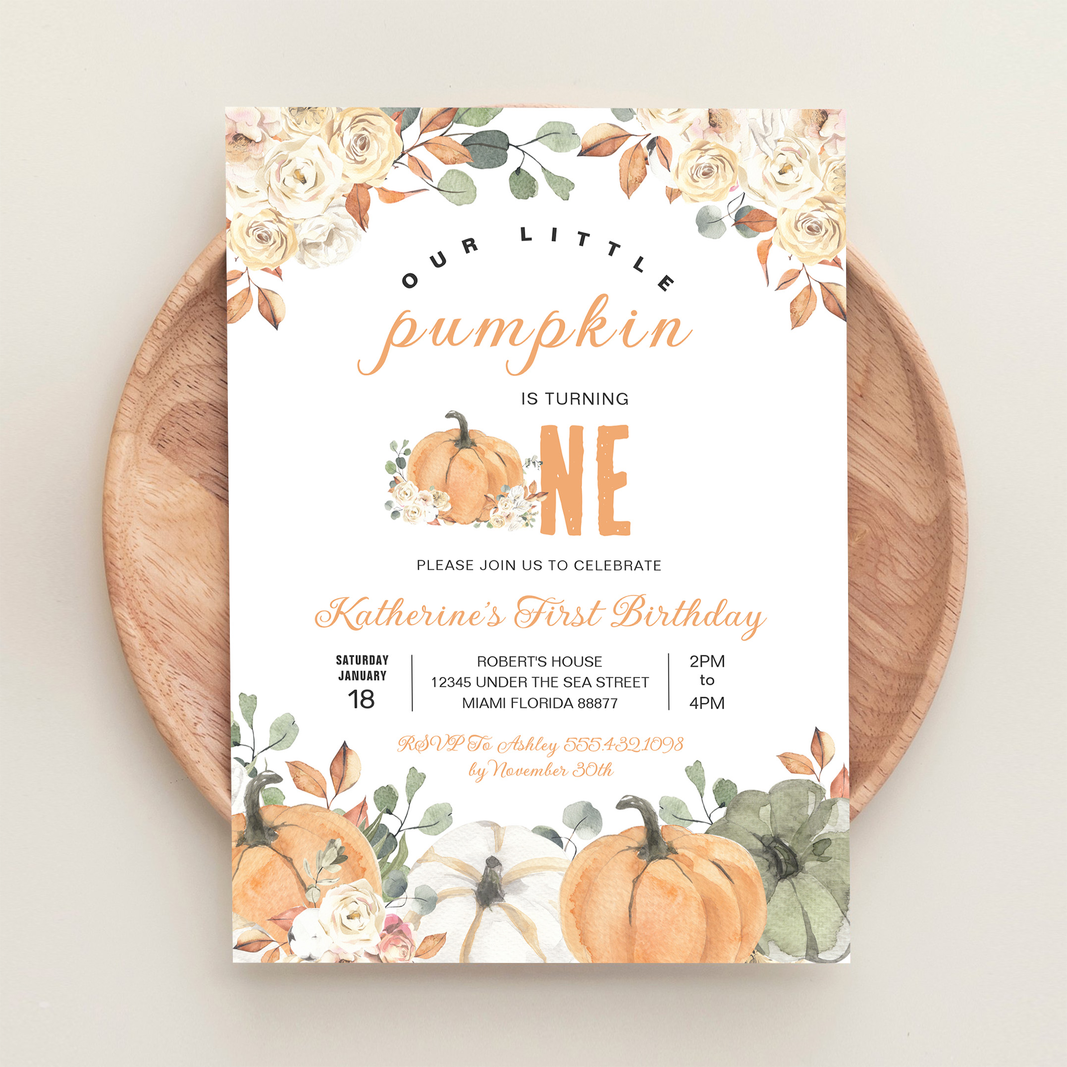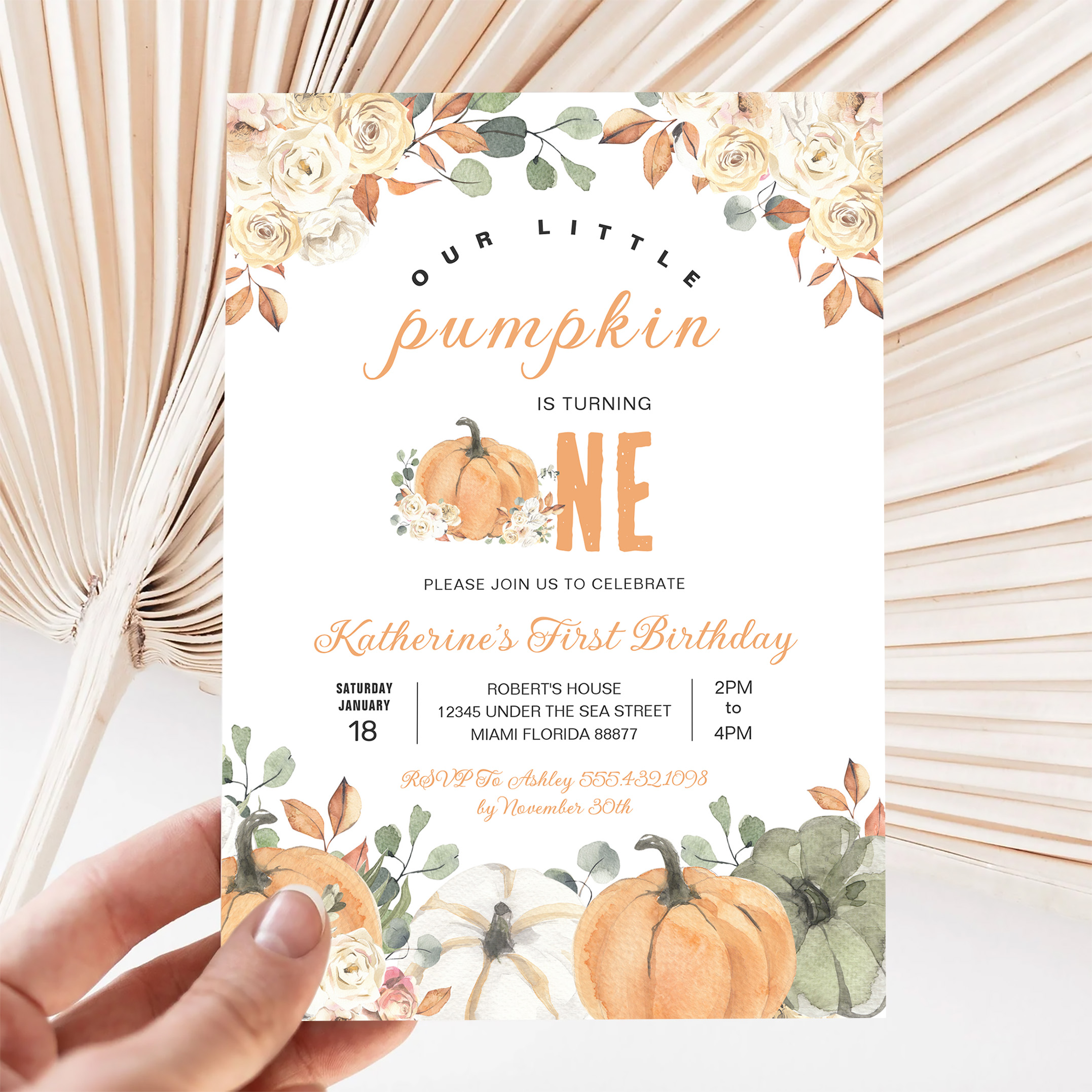 Our Little Pumpkin 1st Birthday Fall Invitation