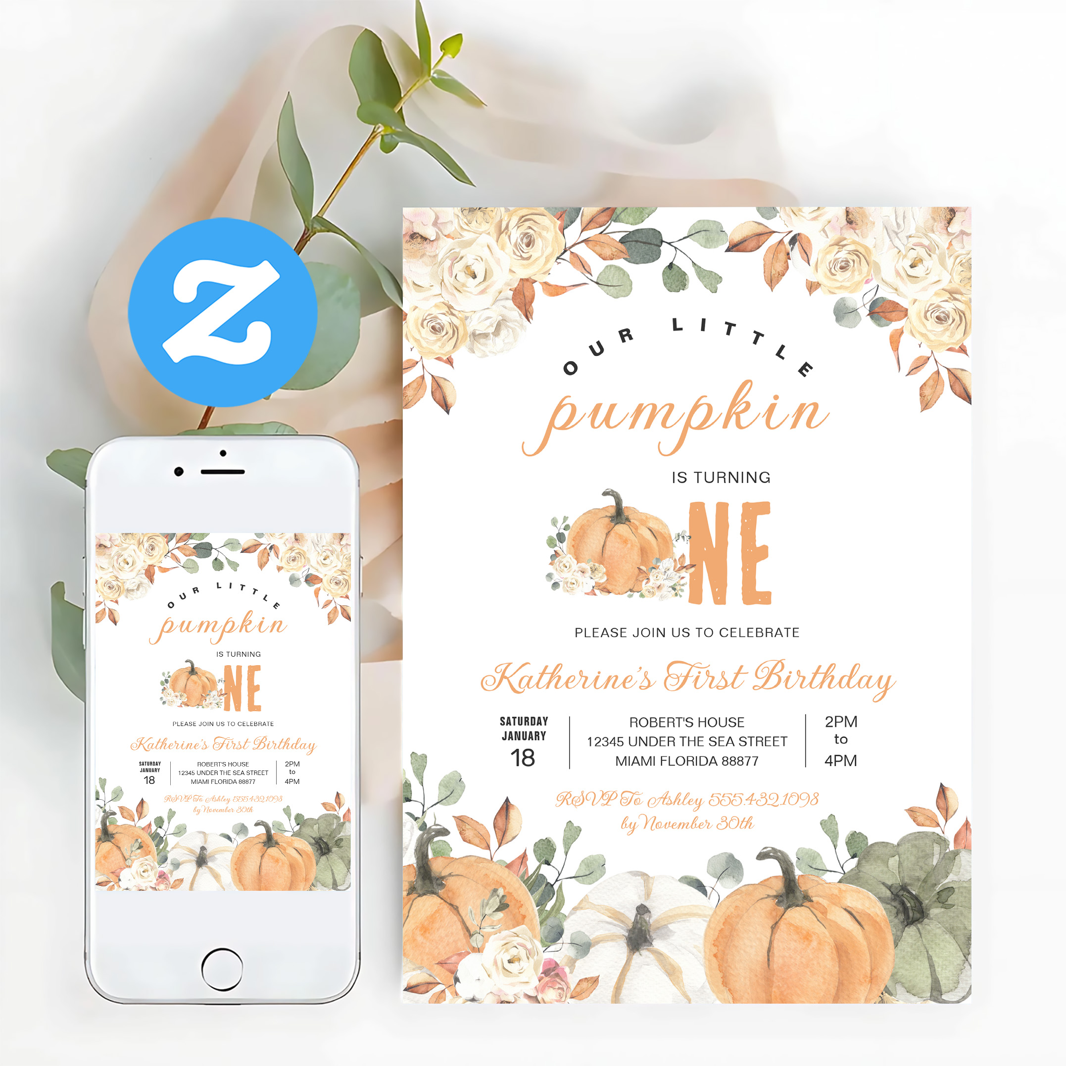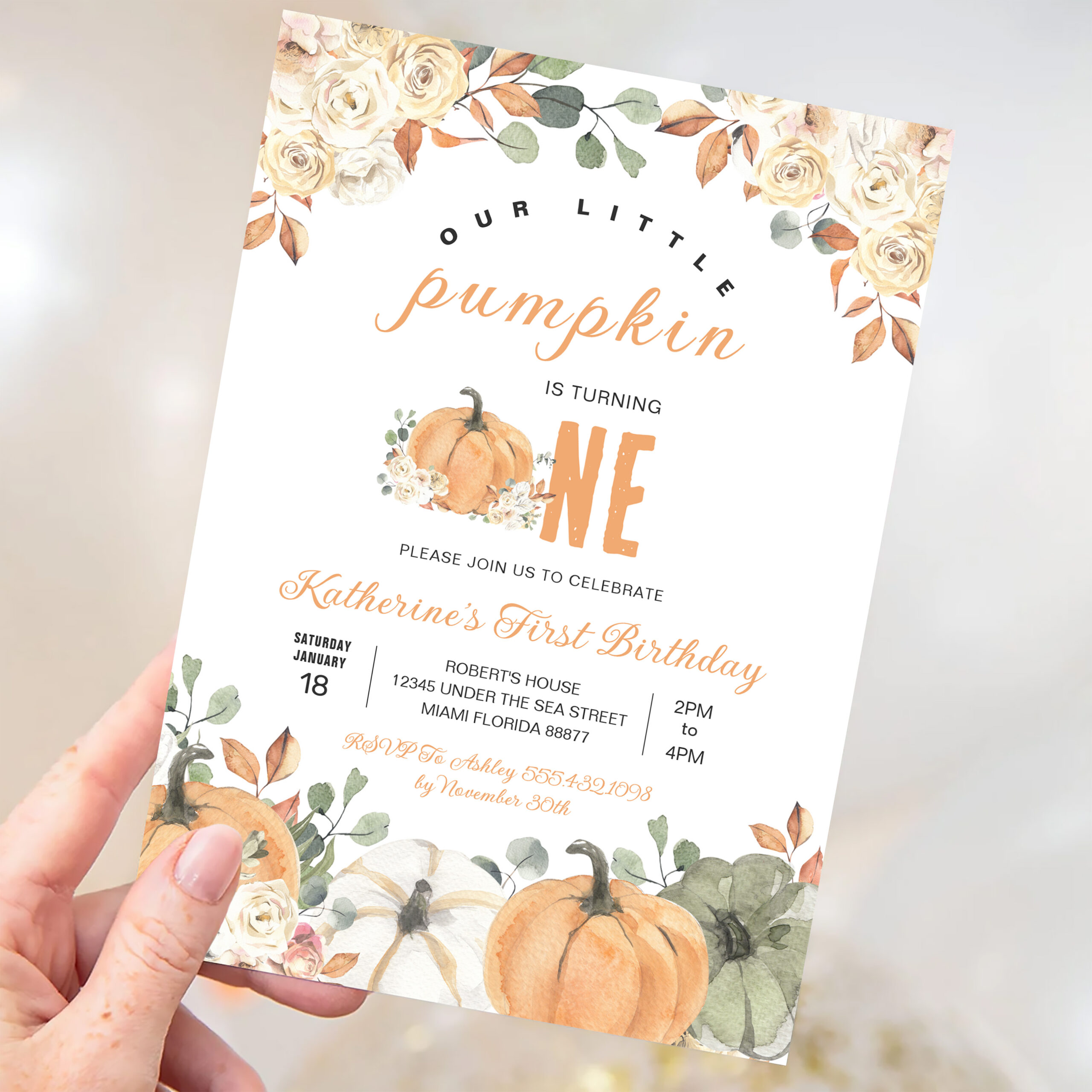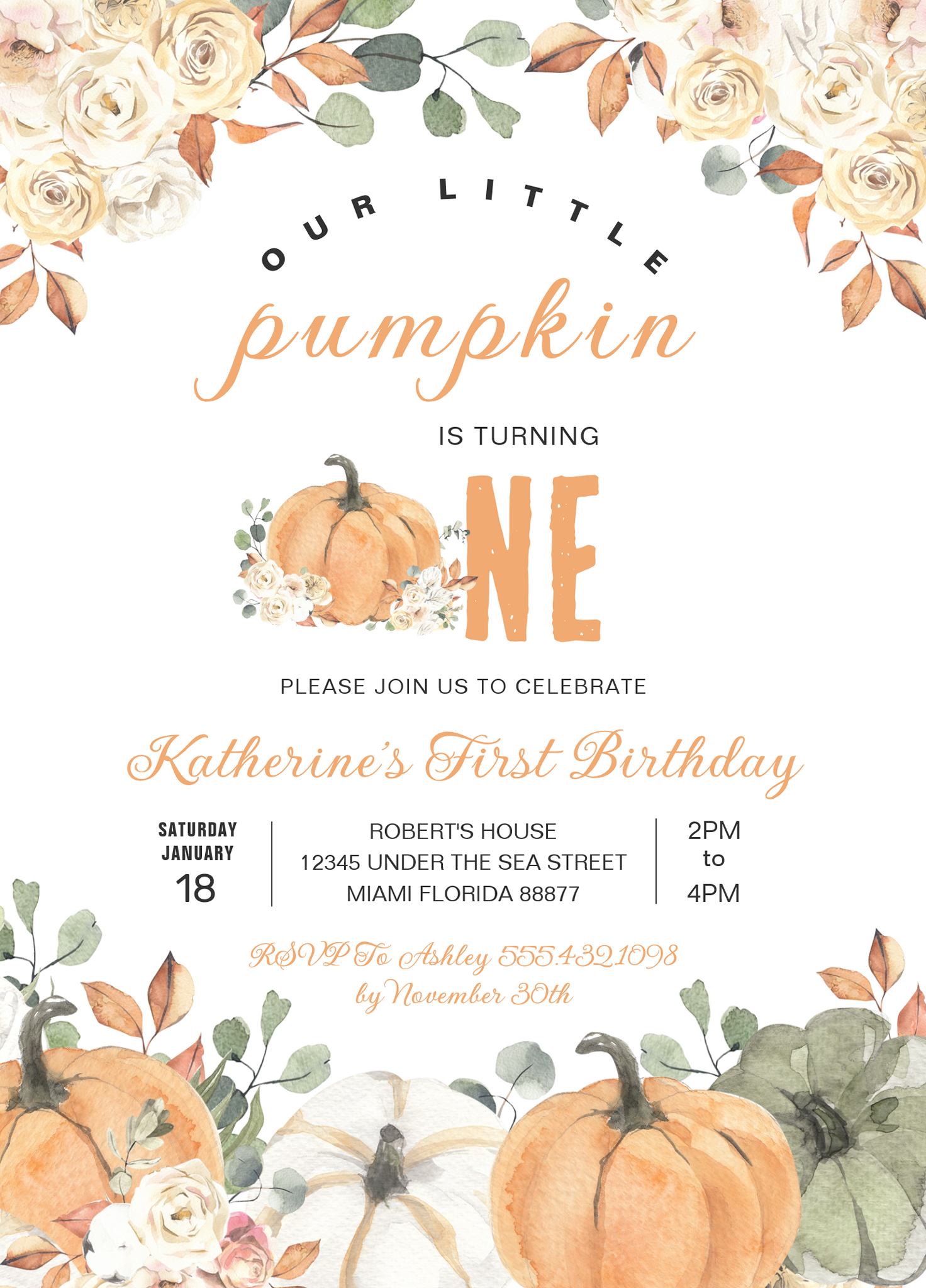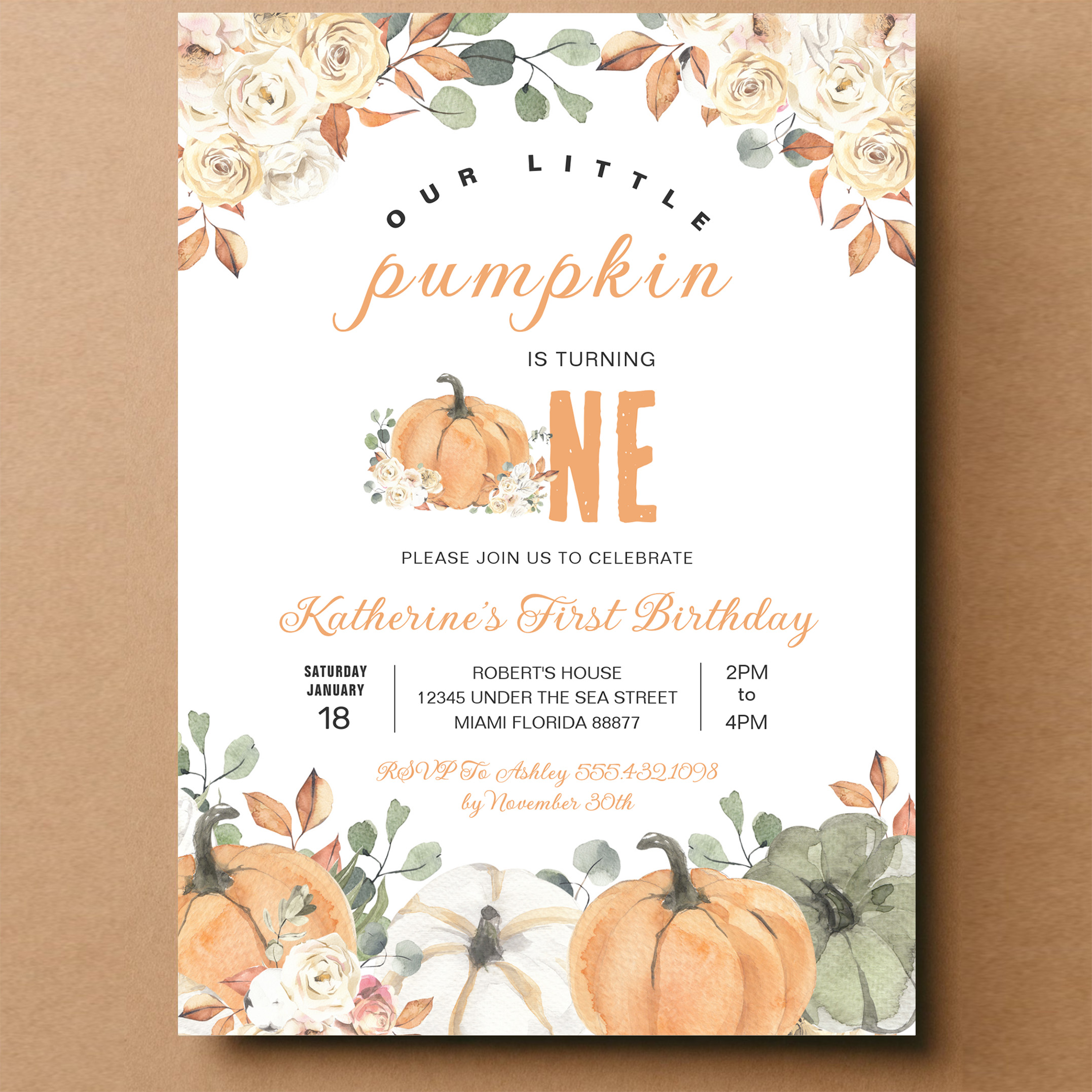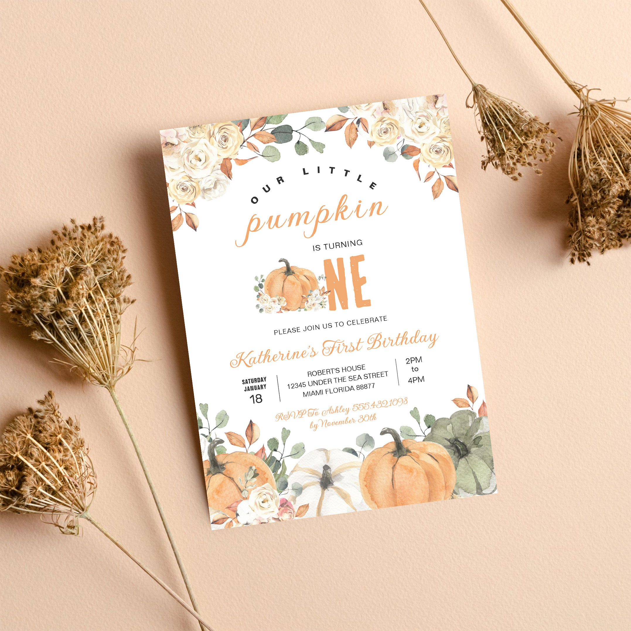 Our Little Pumpkin 1st Birthday Fall Invitation