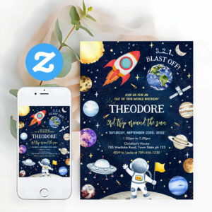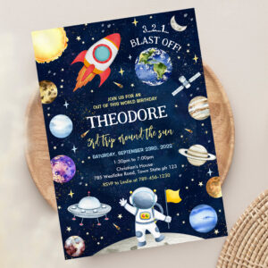 Outer Space Galaxy Planets Rocket Birthday Invitation - Related products