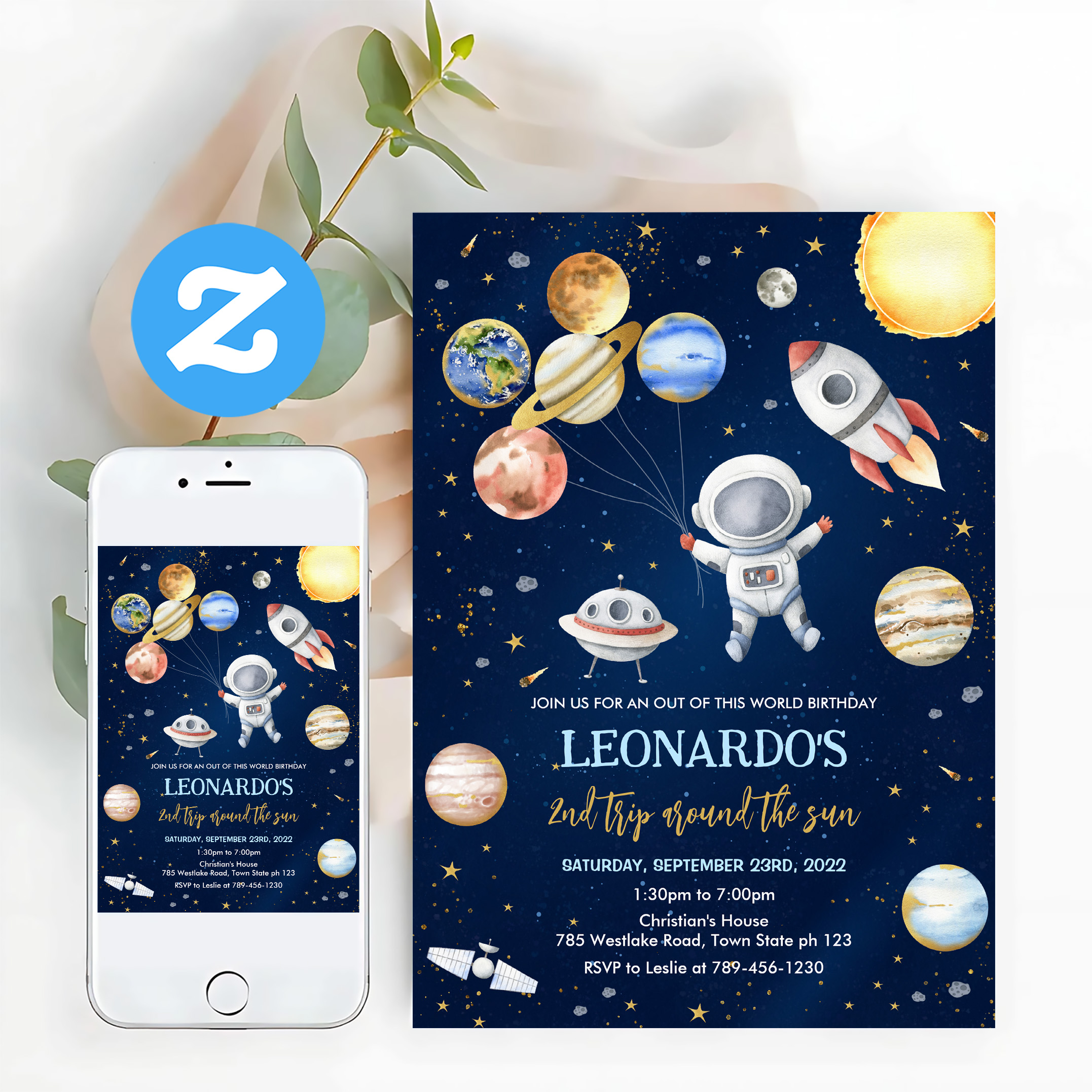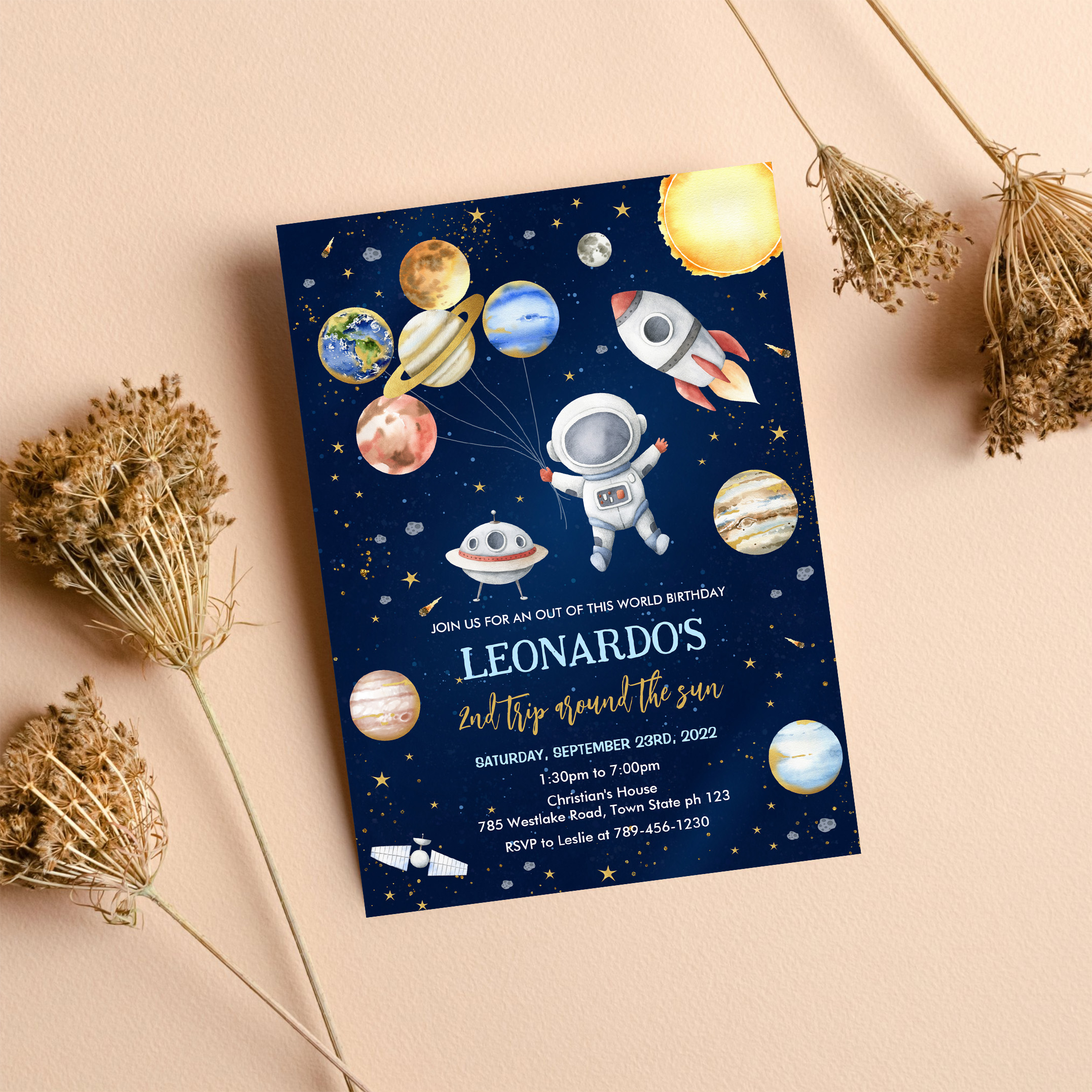 Outer Space Galaxy Planets Rocket Birthday Invitation - Related products