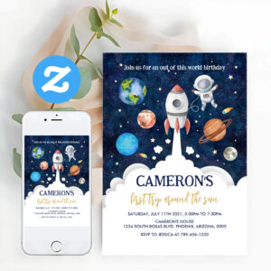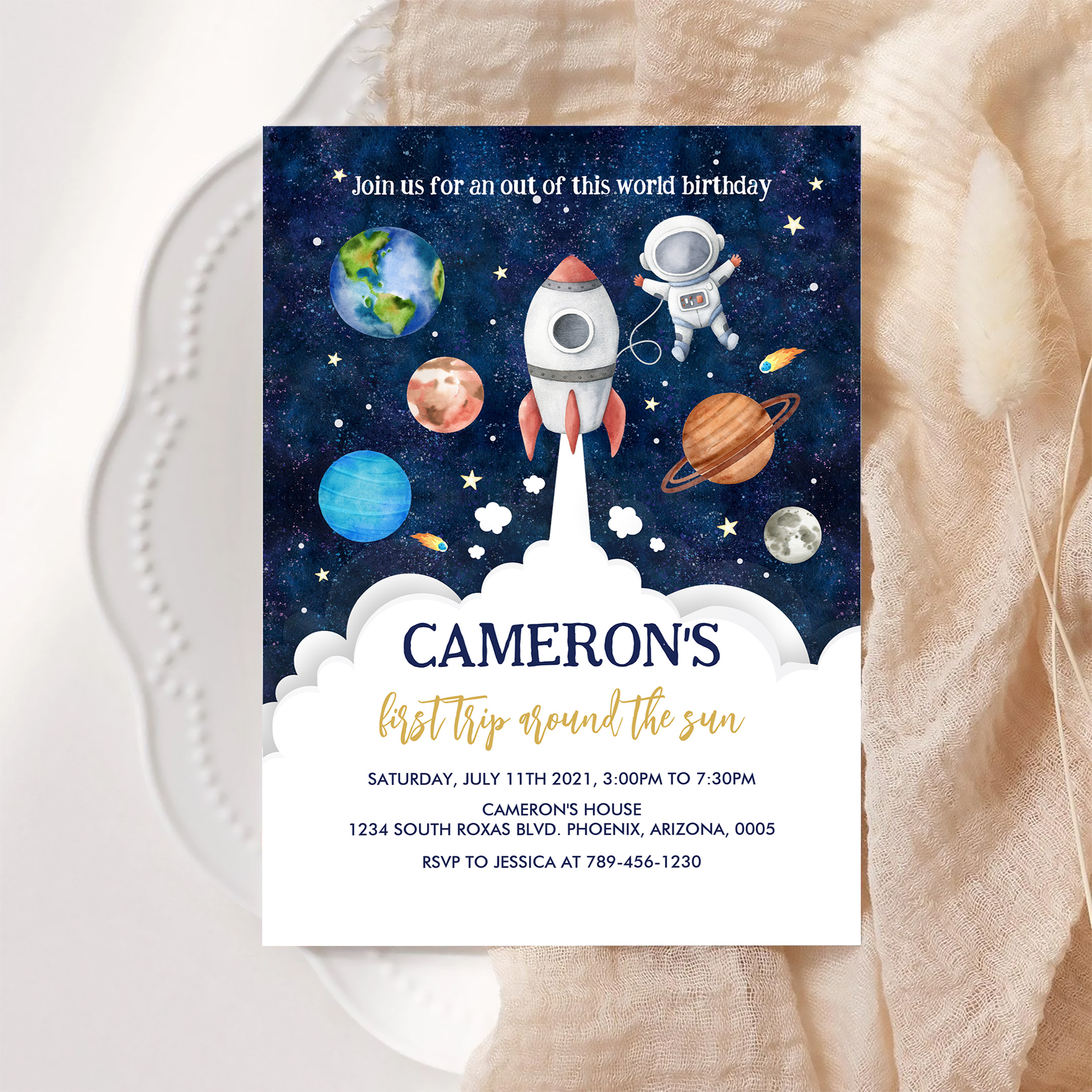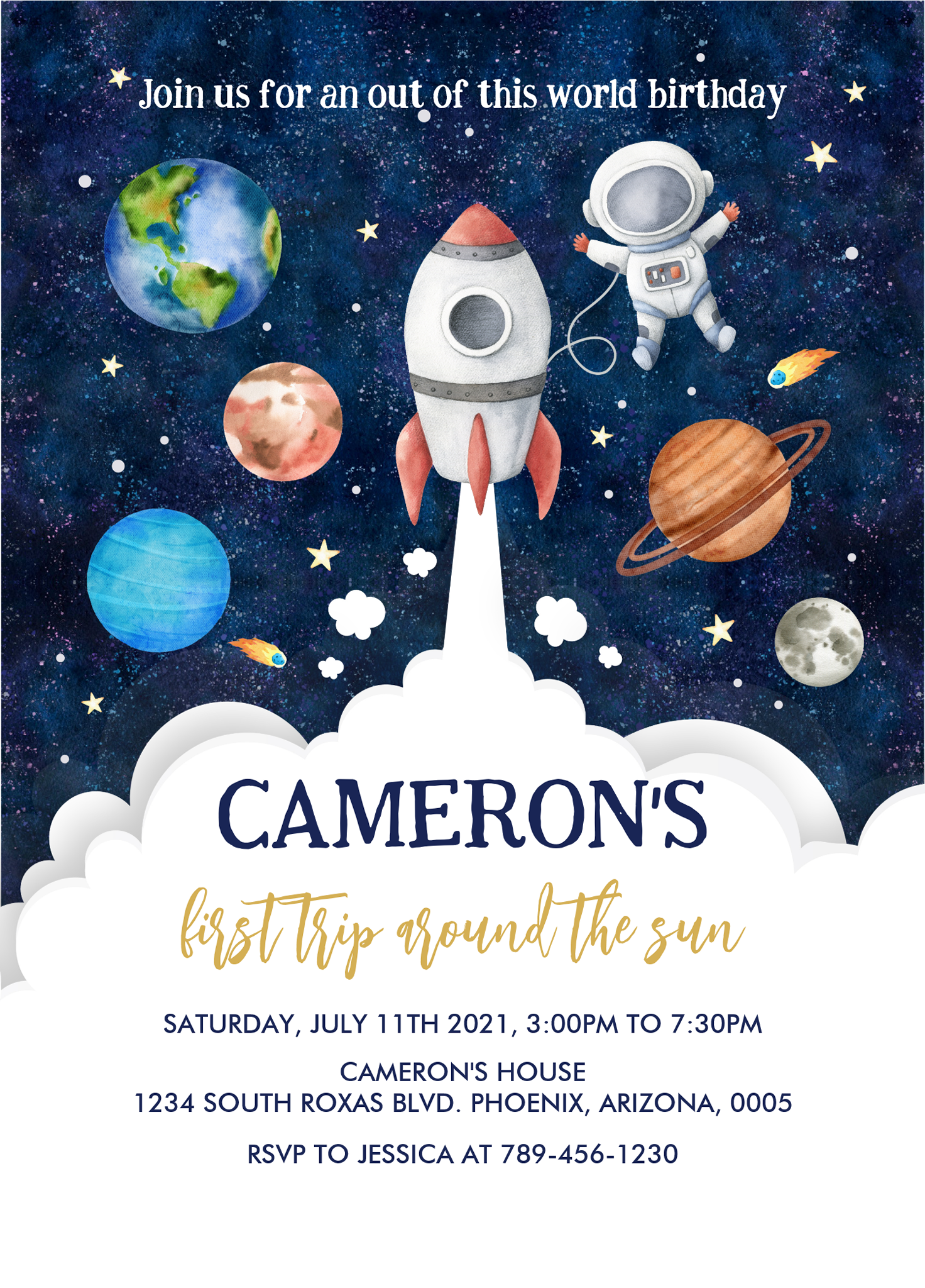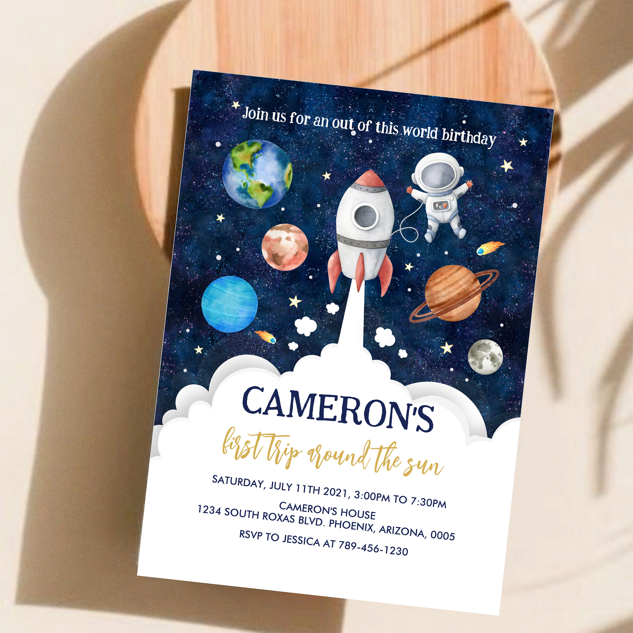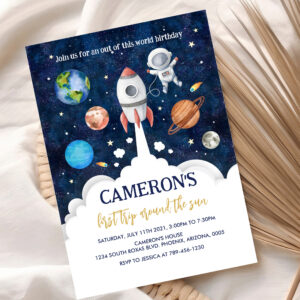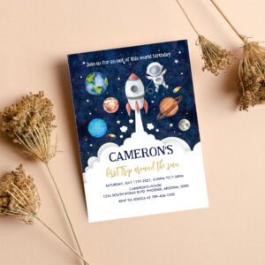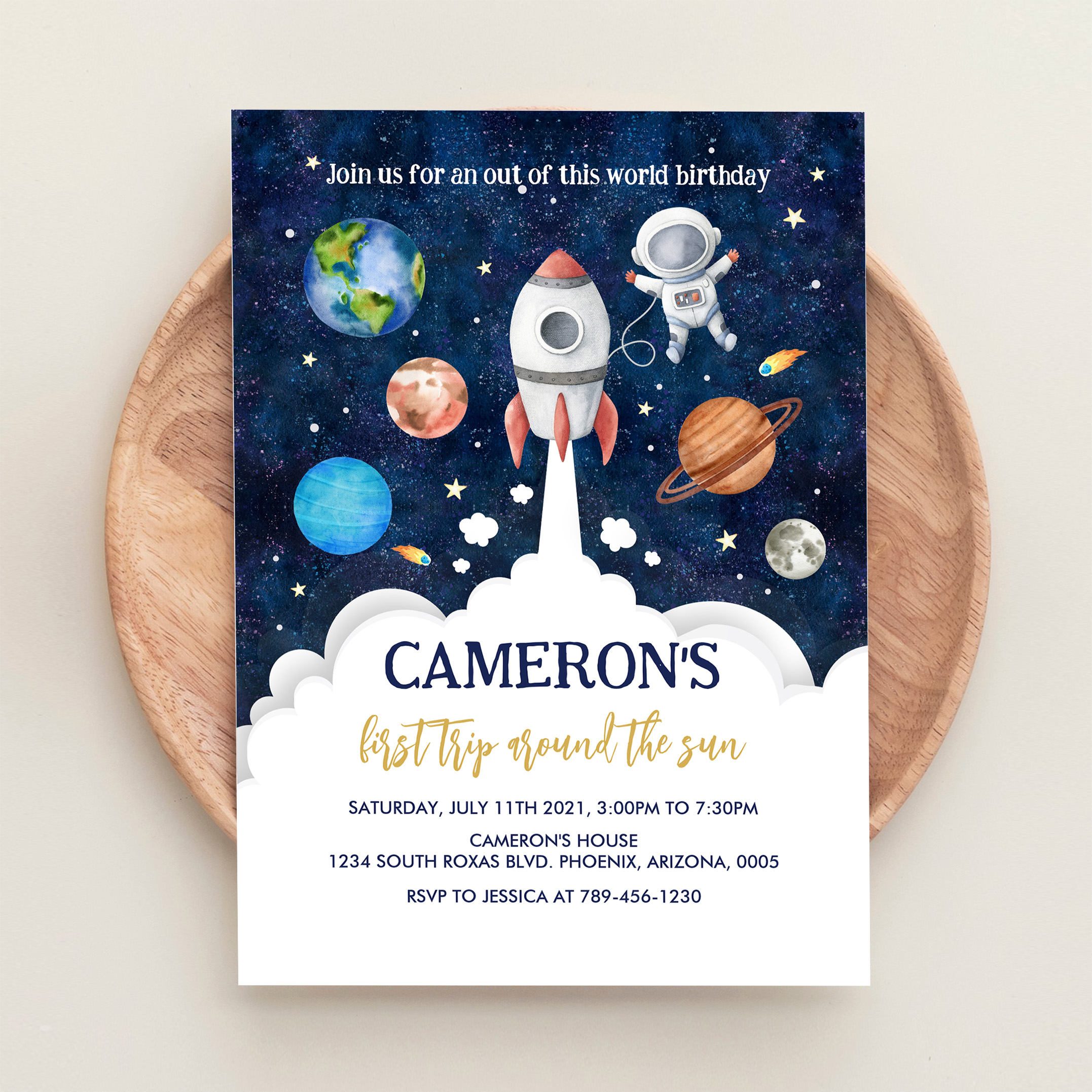 Outer Space Planets Rocket Ship Astronaut Birthday Invitation