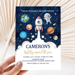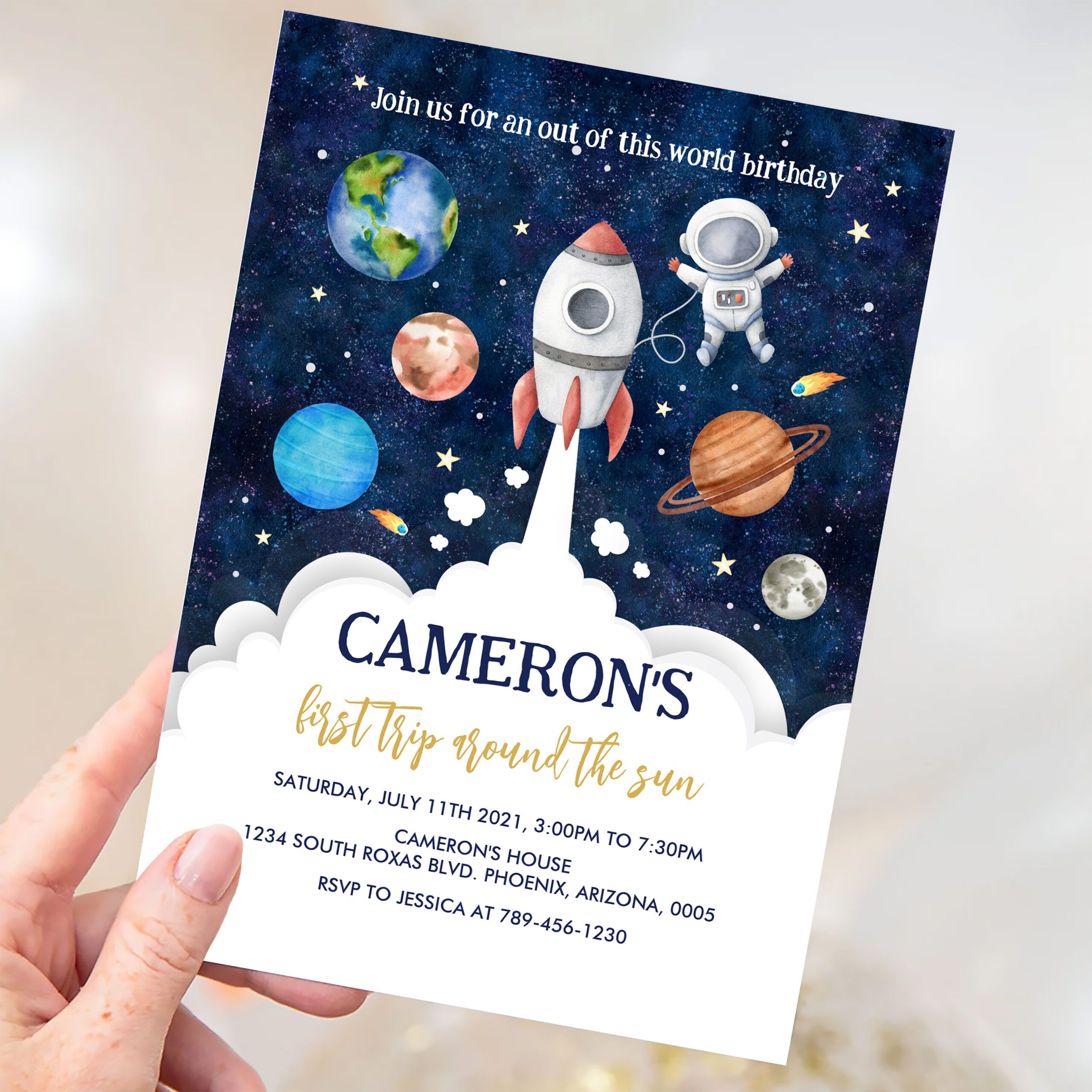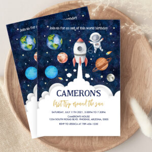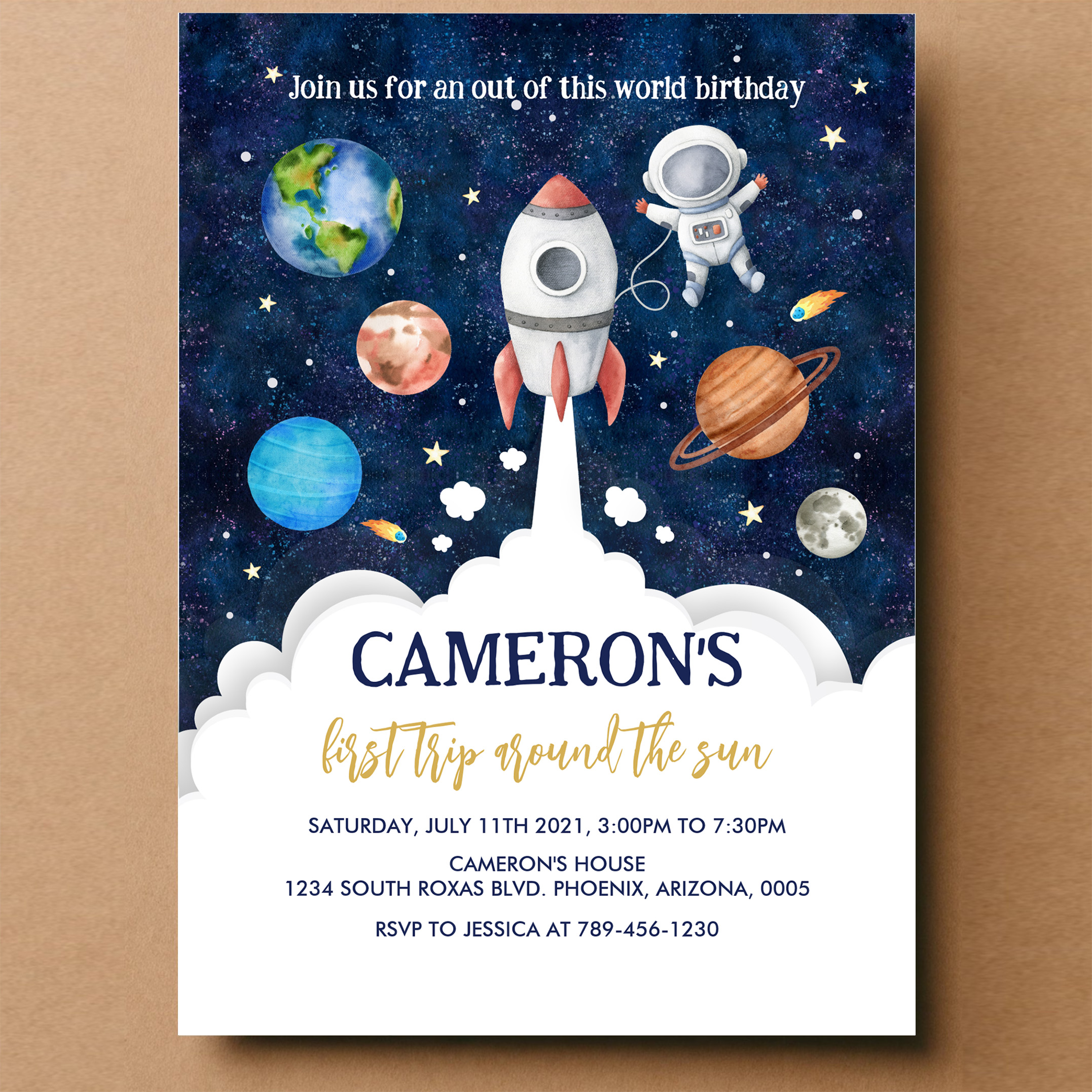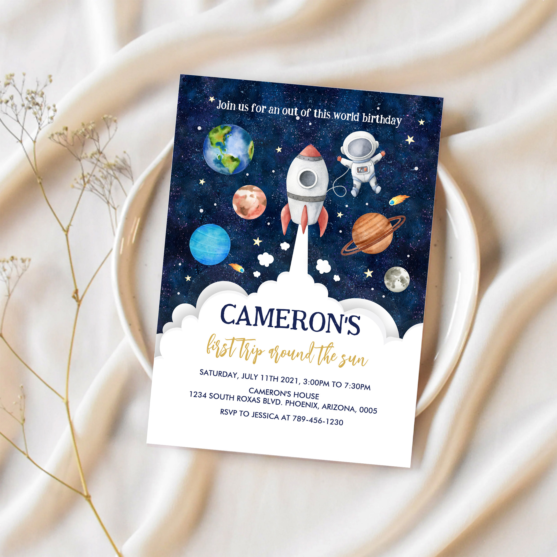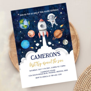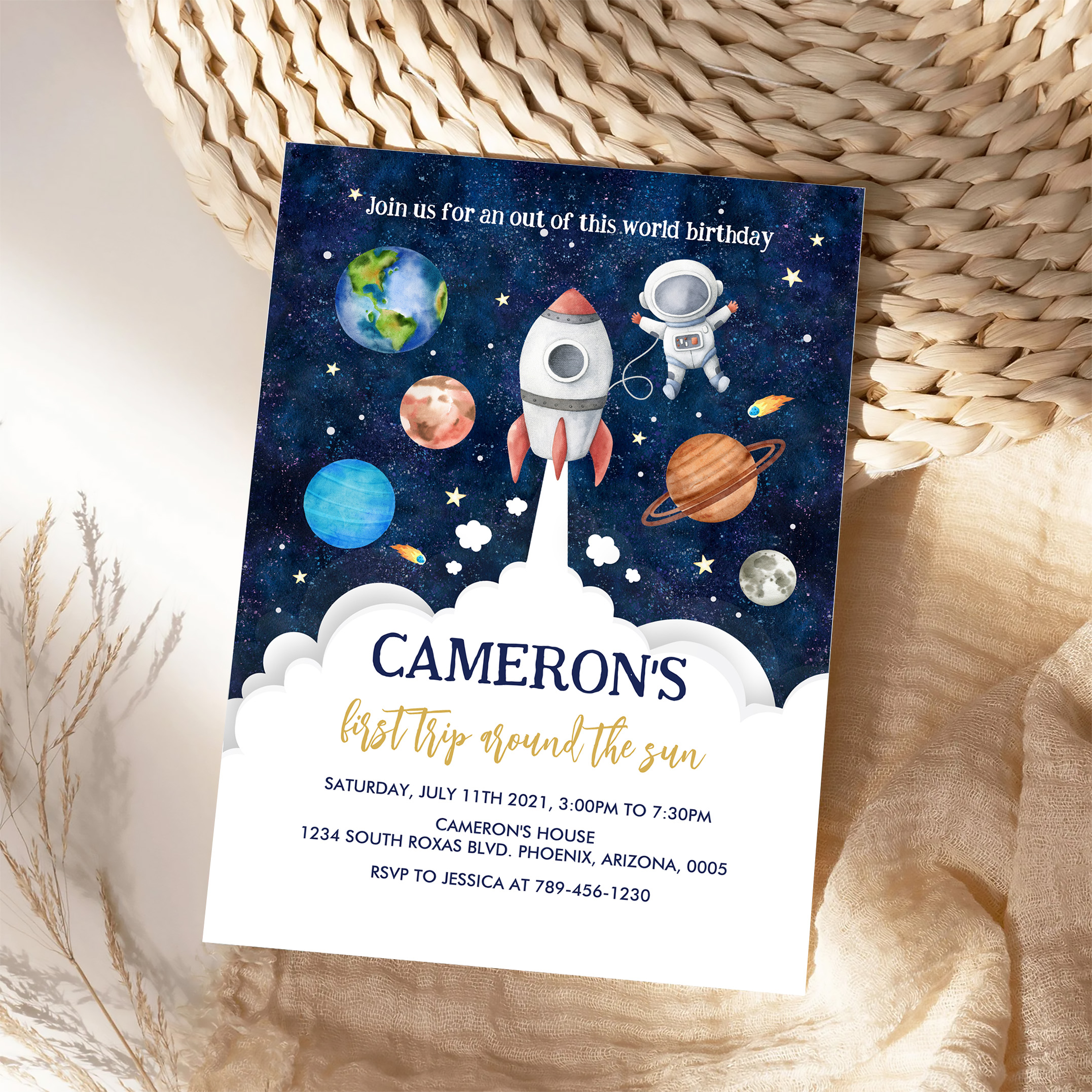 Outer Space Planets Rocket Ship Astronaut Birthday Invitation