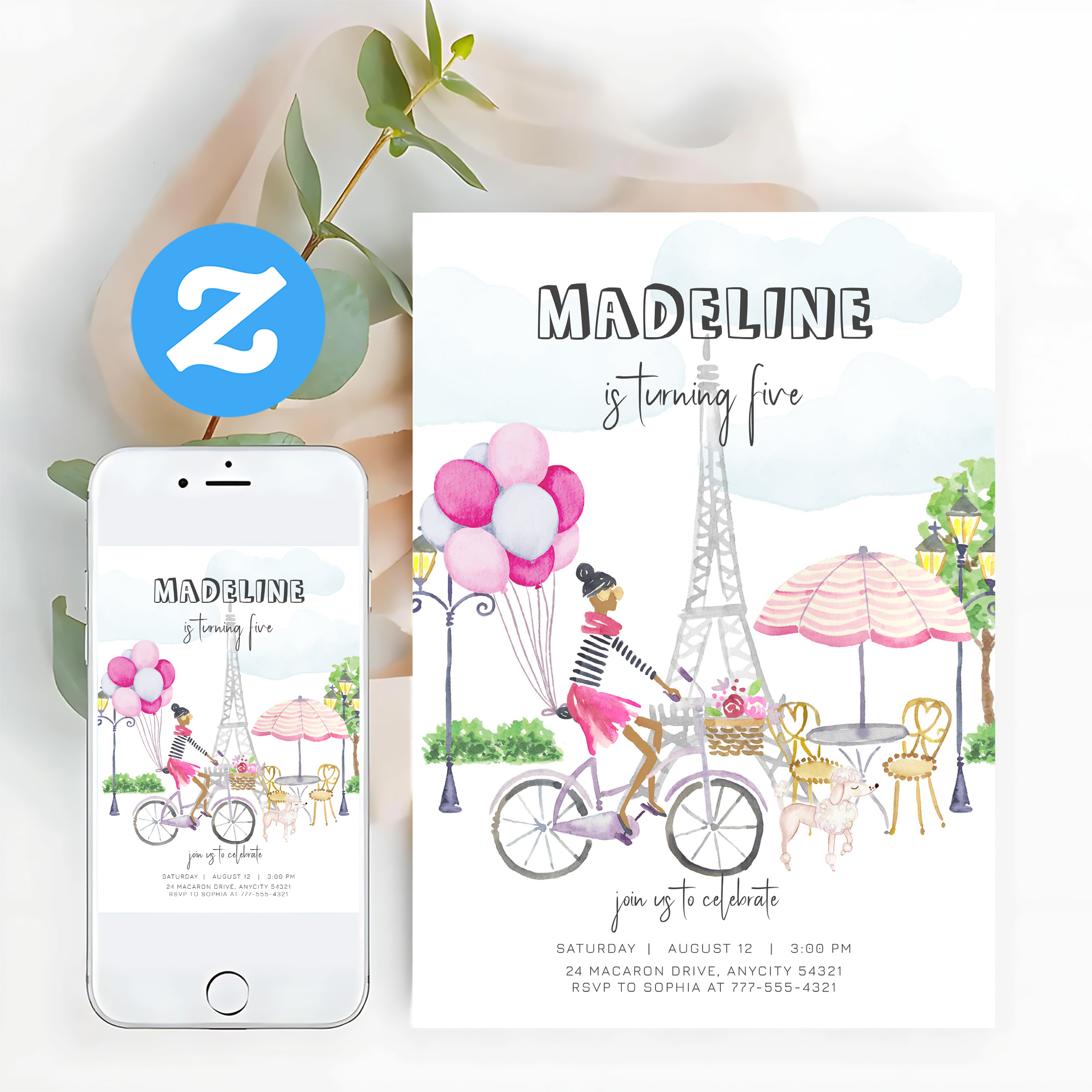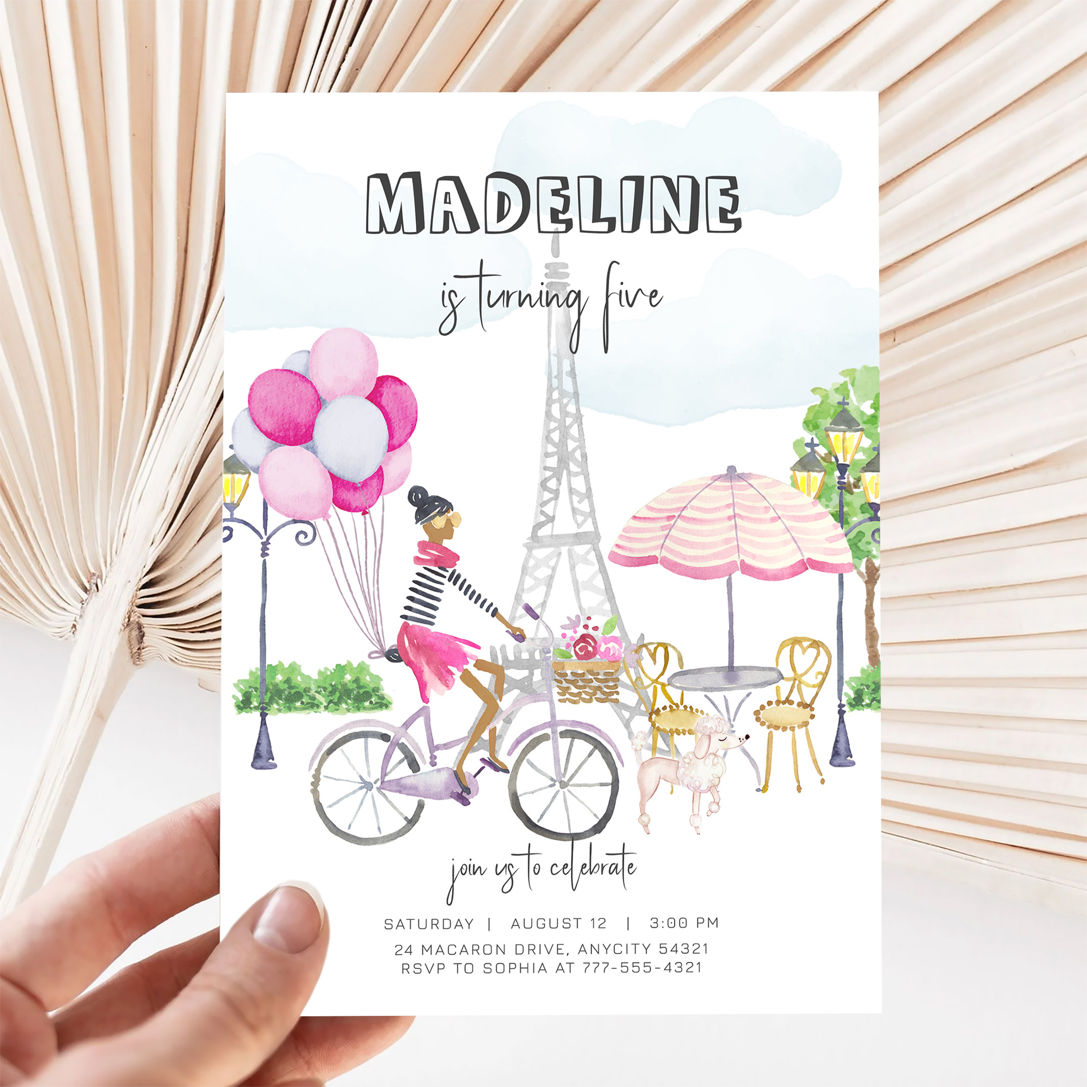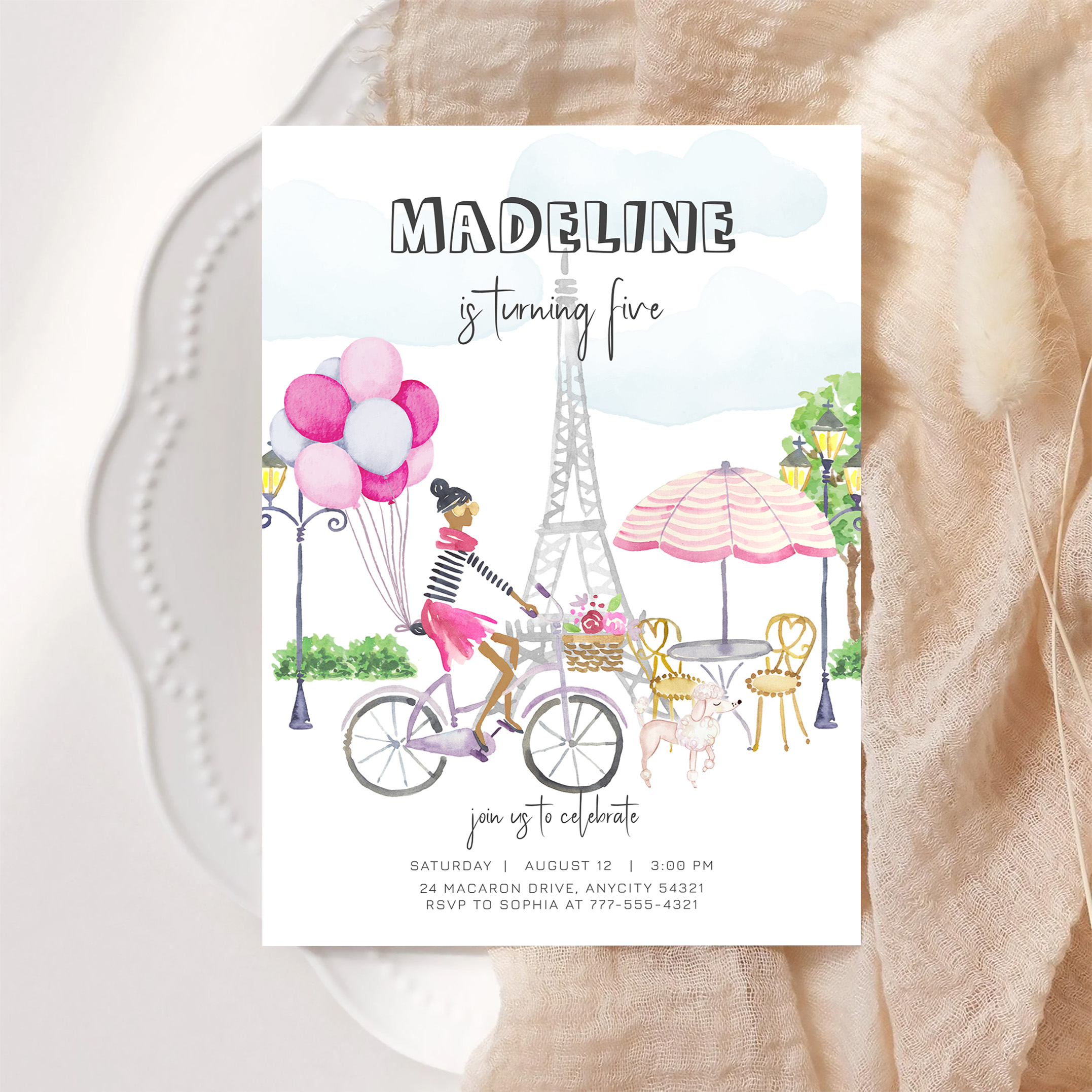Parisian Girl With Cute Paris Scene Birthday Invitation