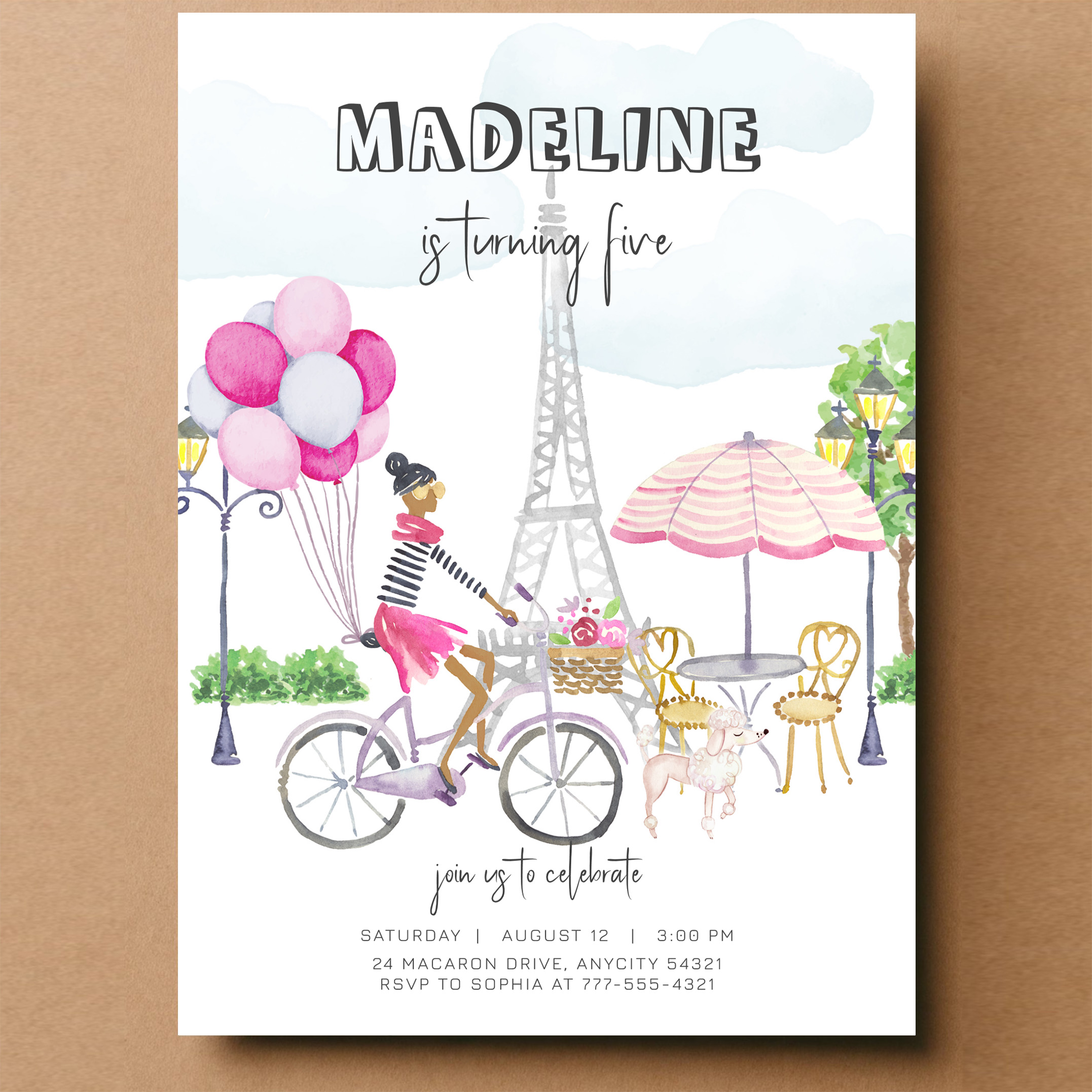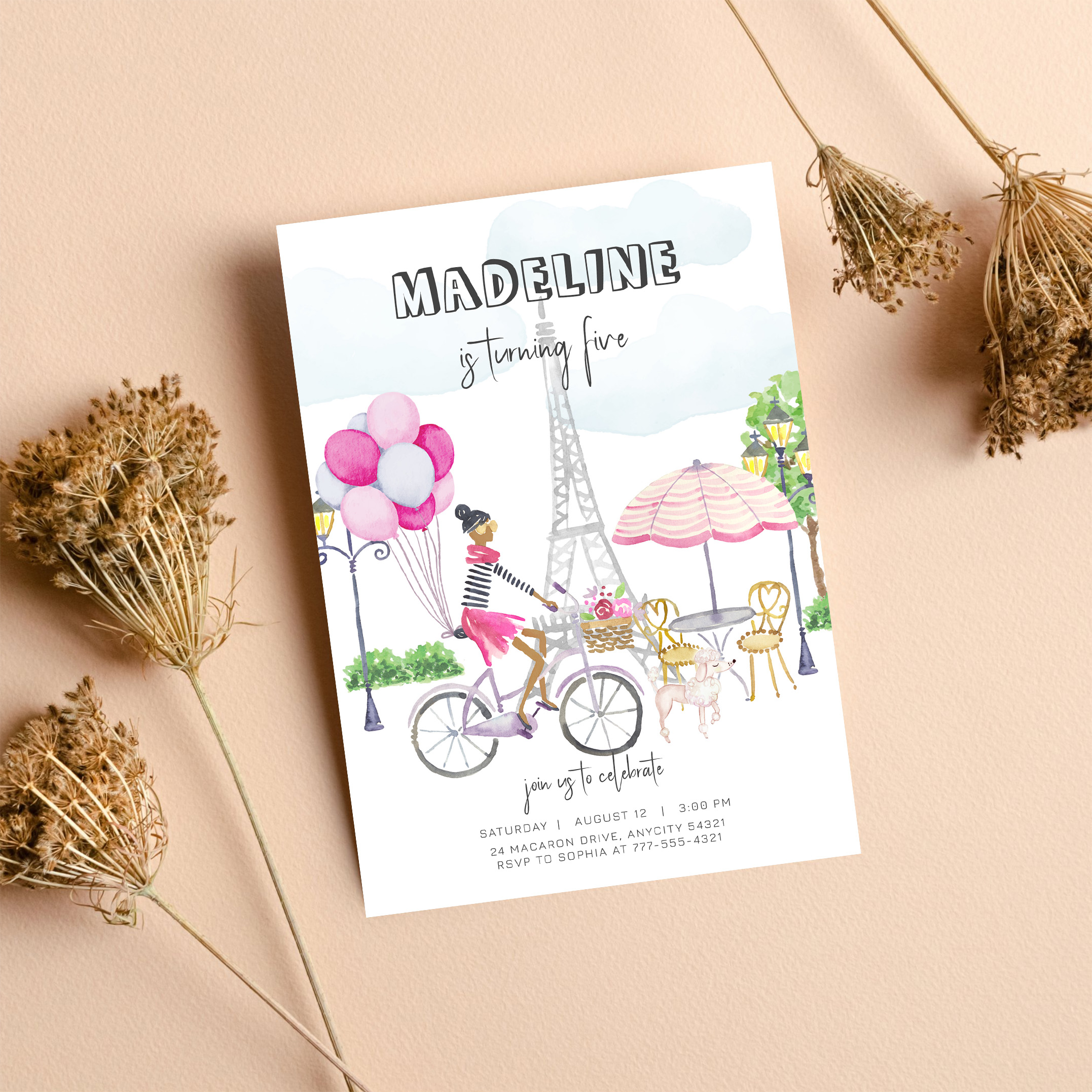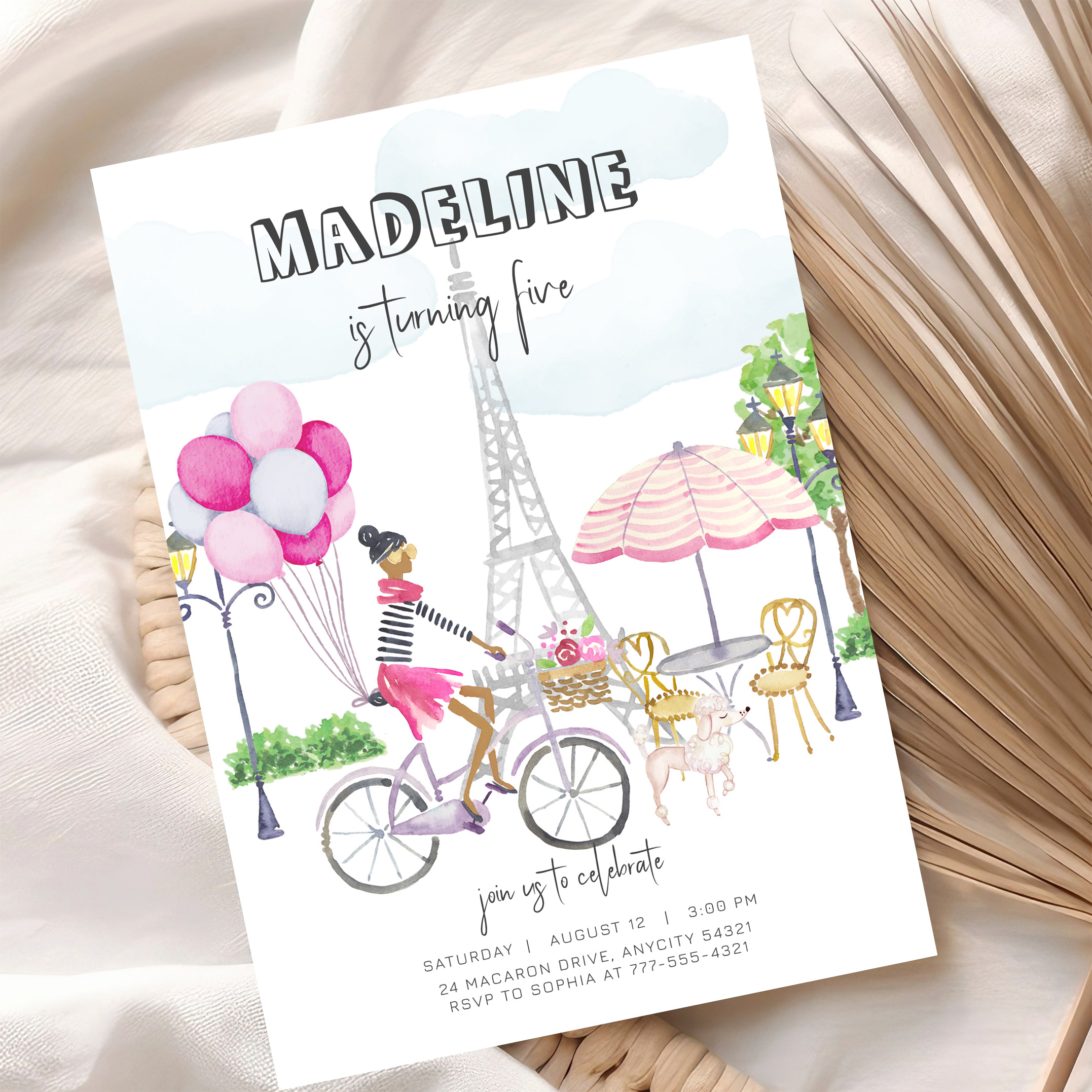 Parisian Girl With Cute Paris Scene Birthday Invitation - Related products