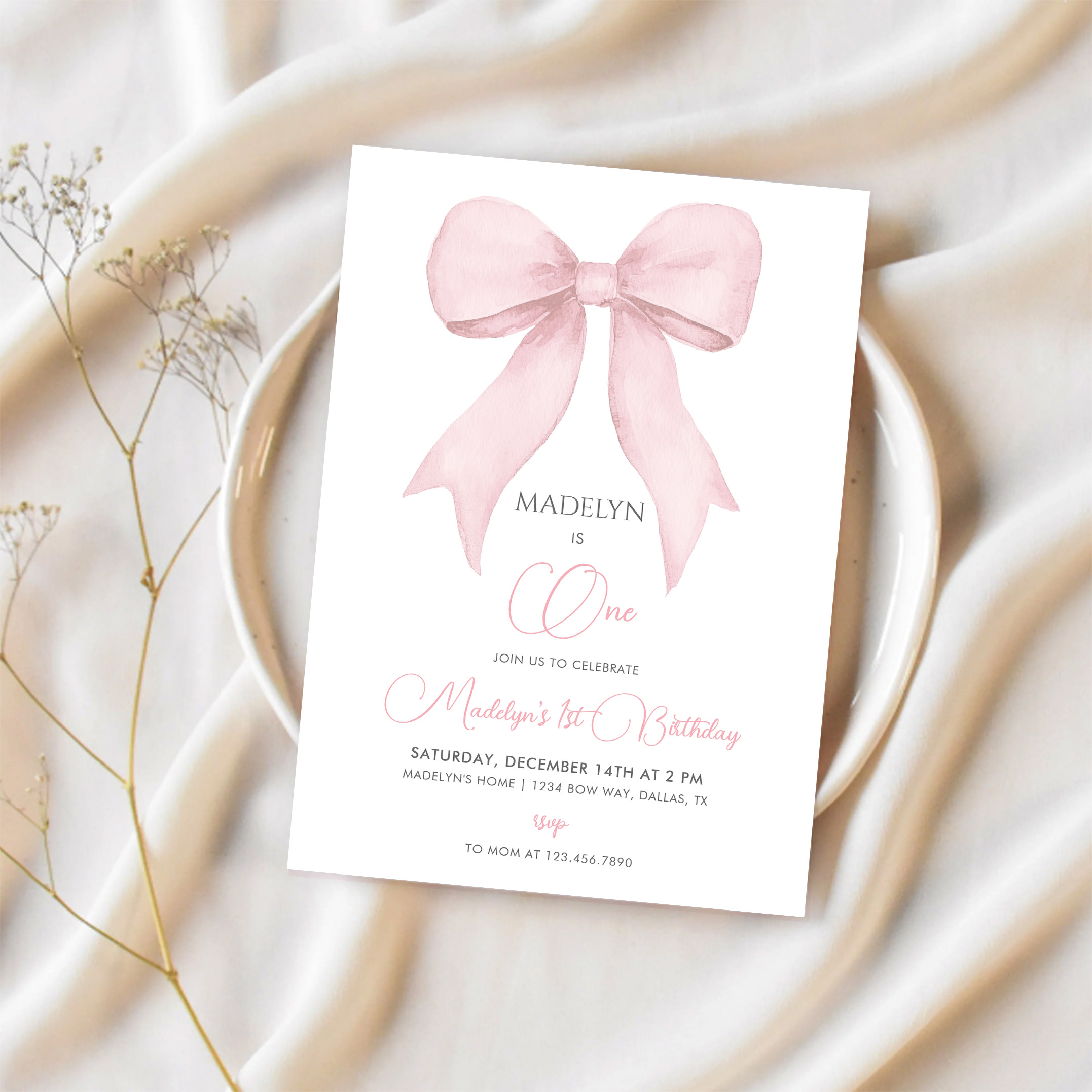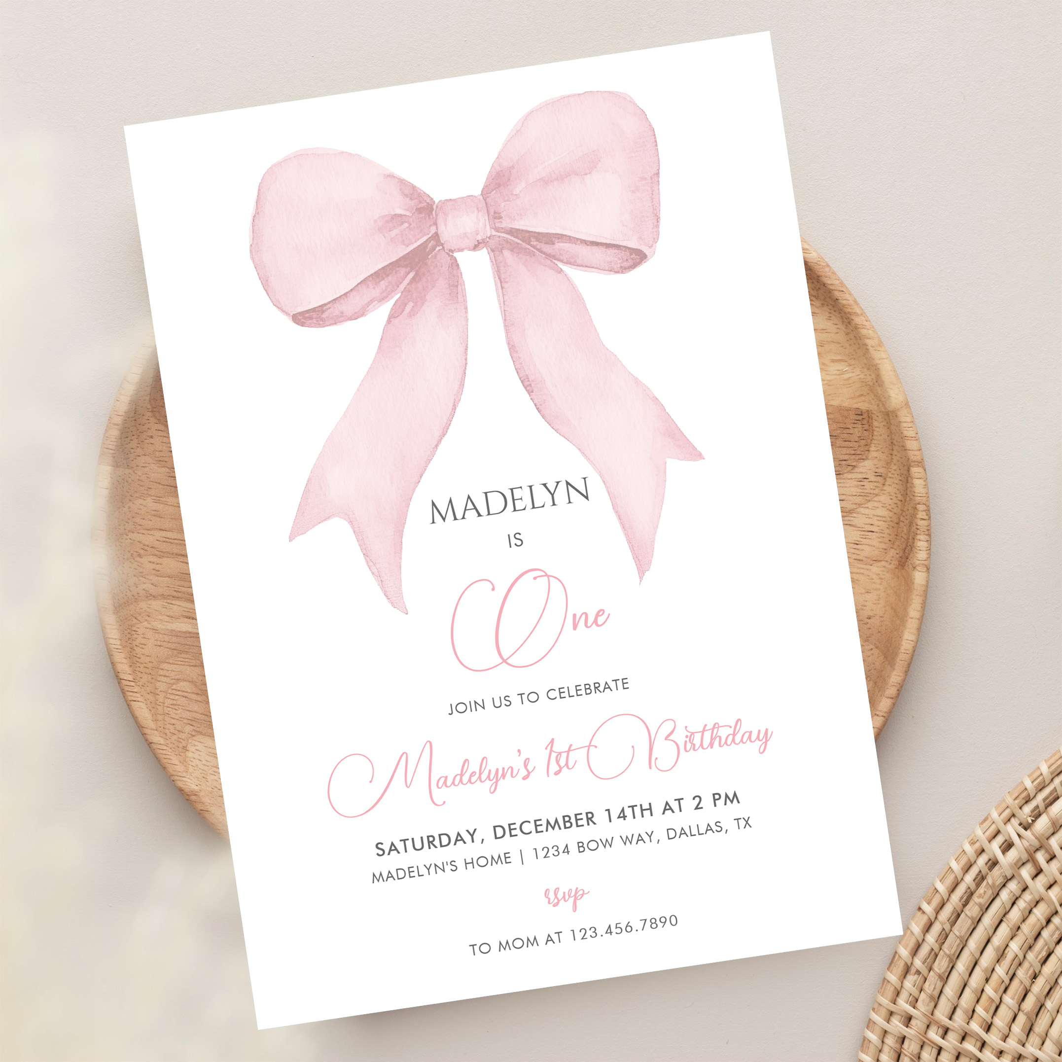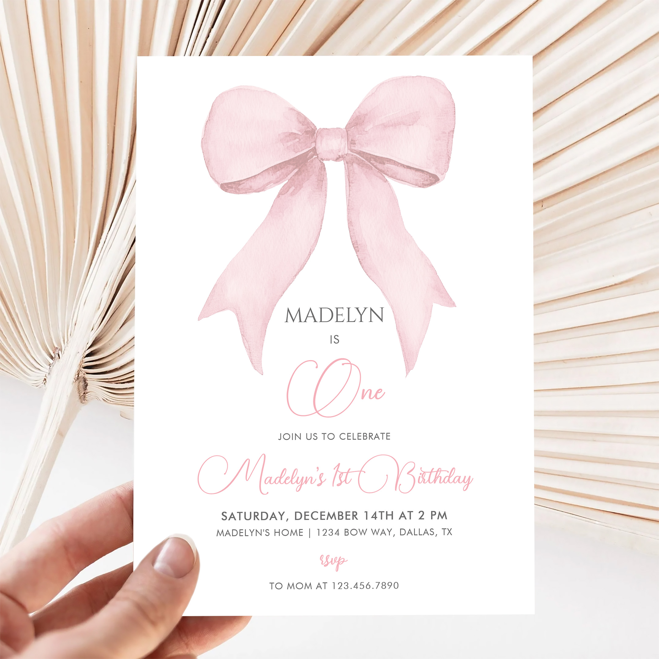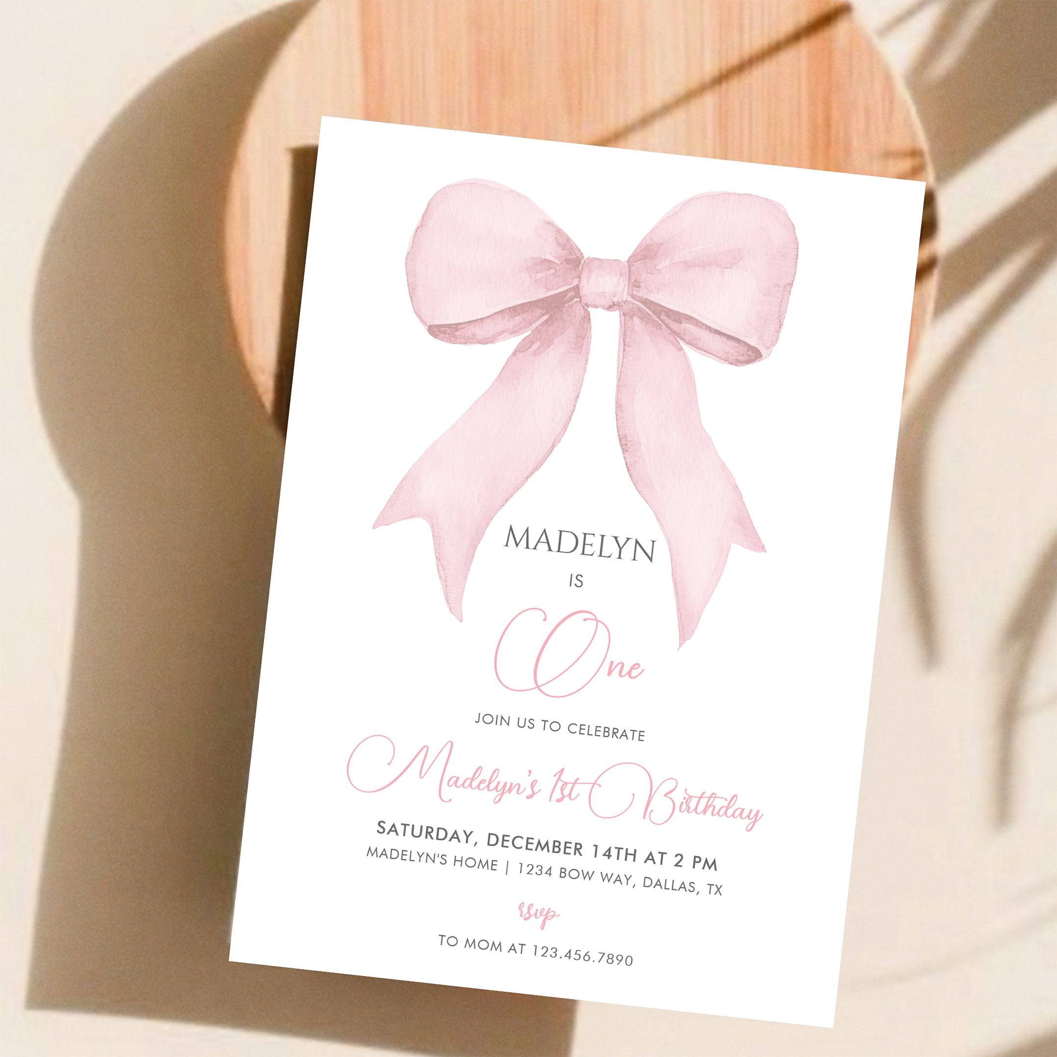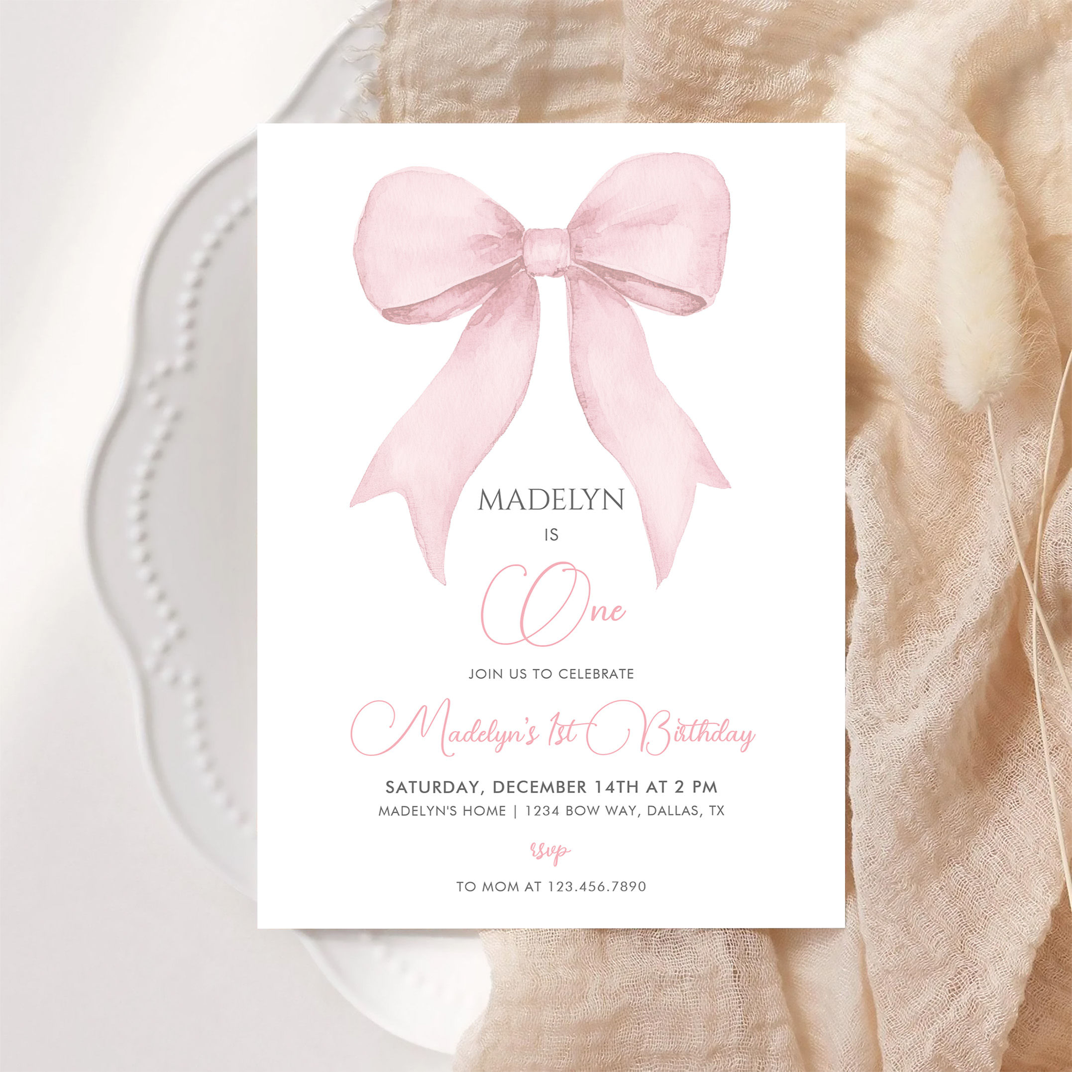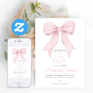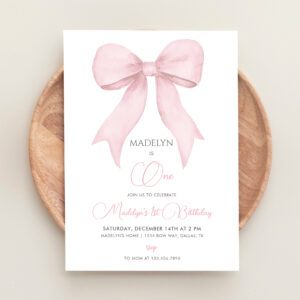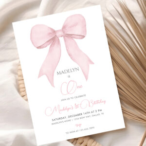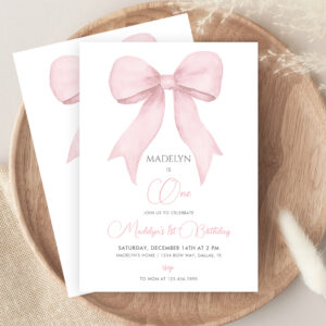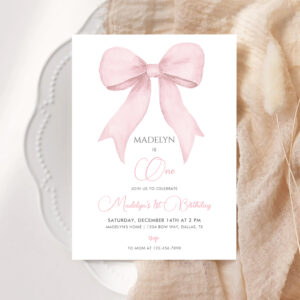 Pink Coquette Pink Bow Girl 1st Birthday Invitation - Related products