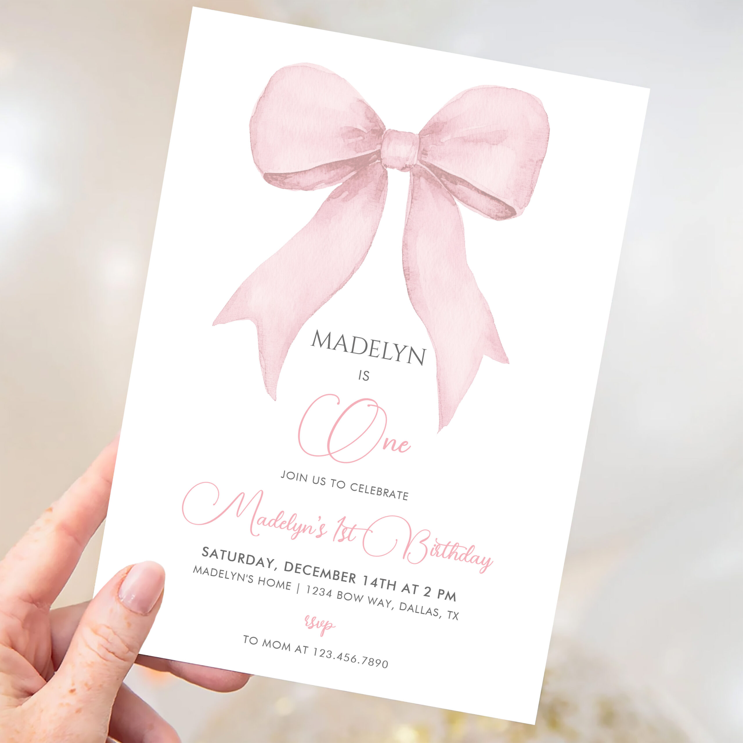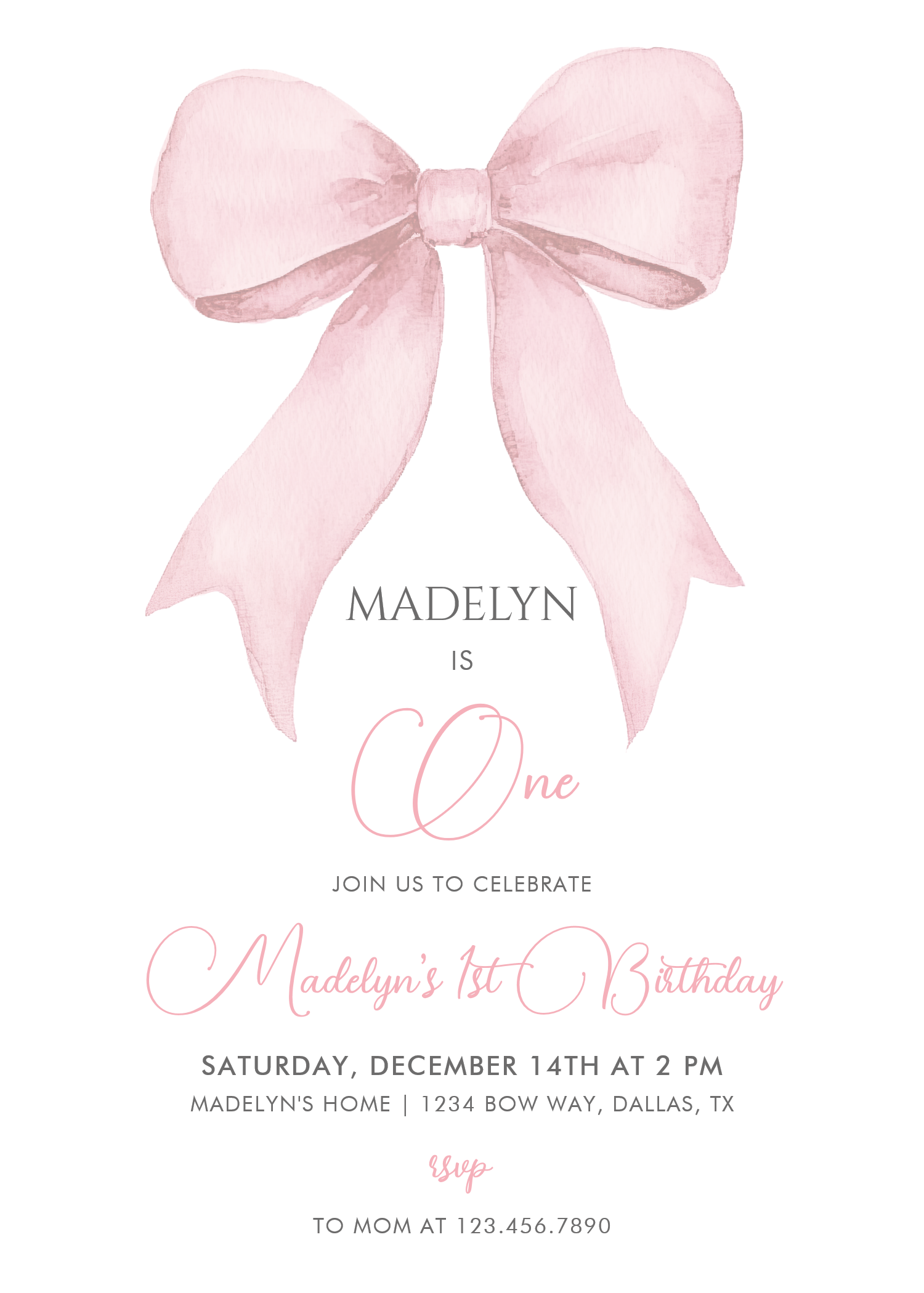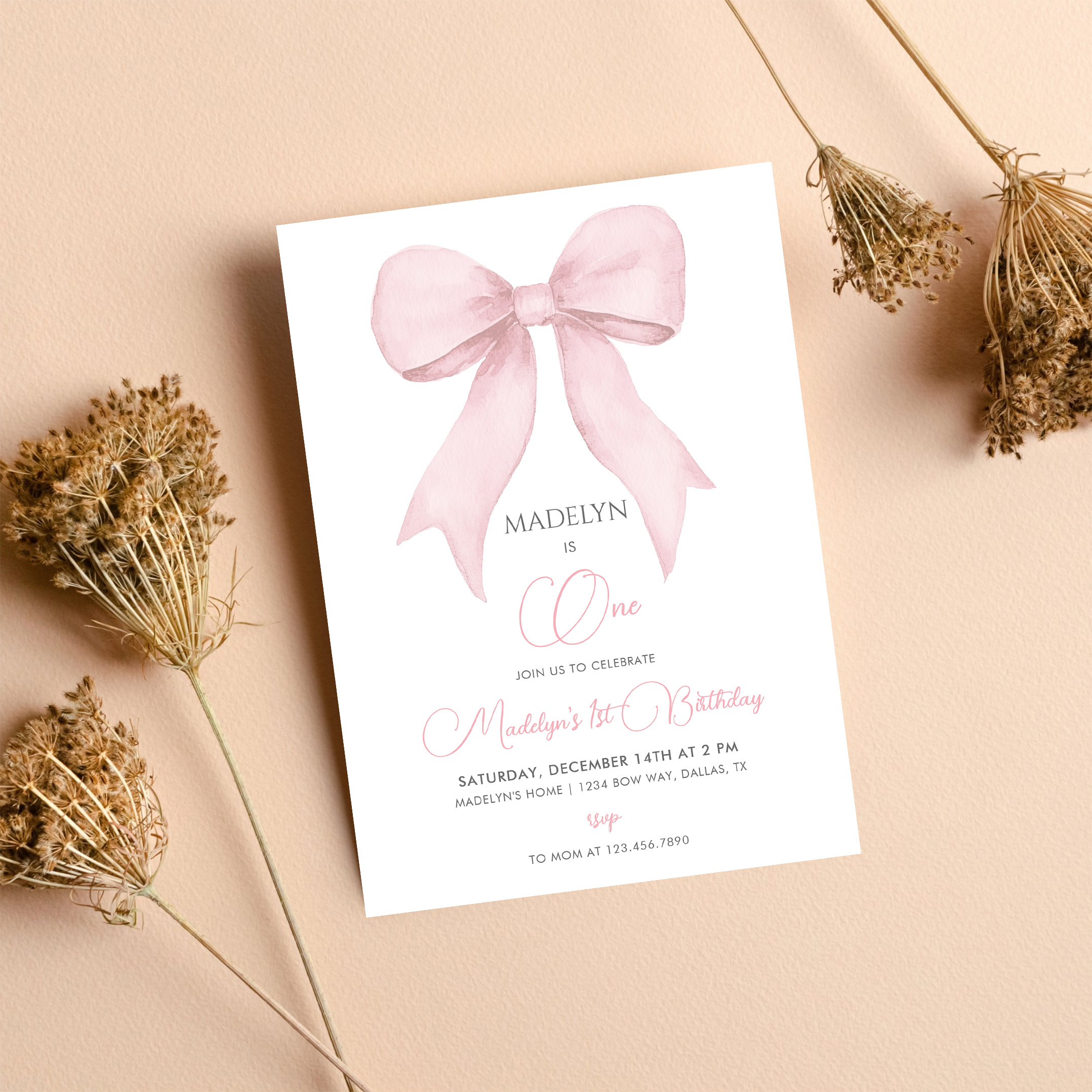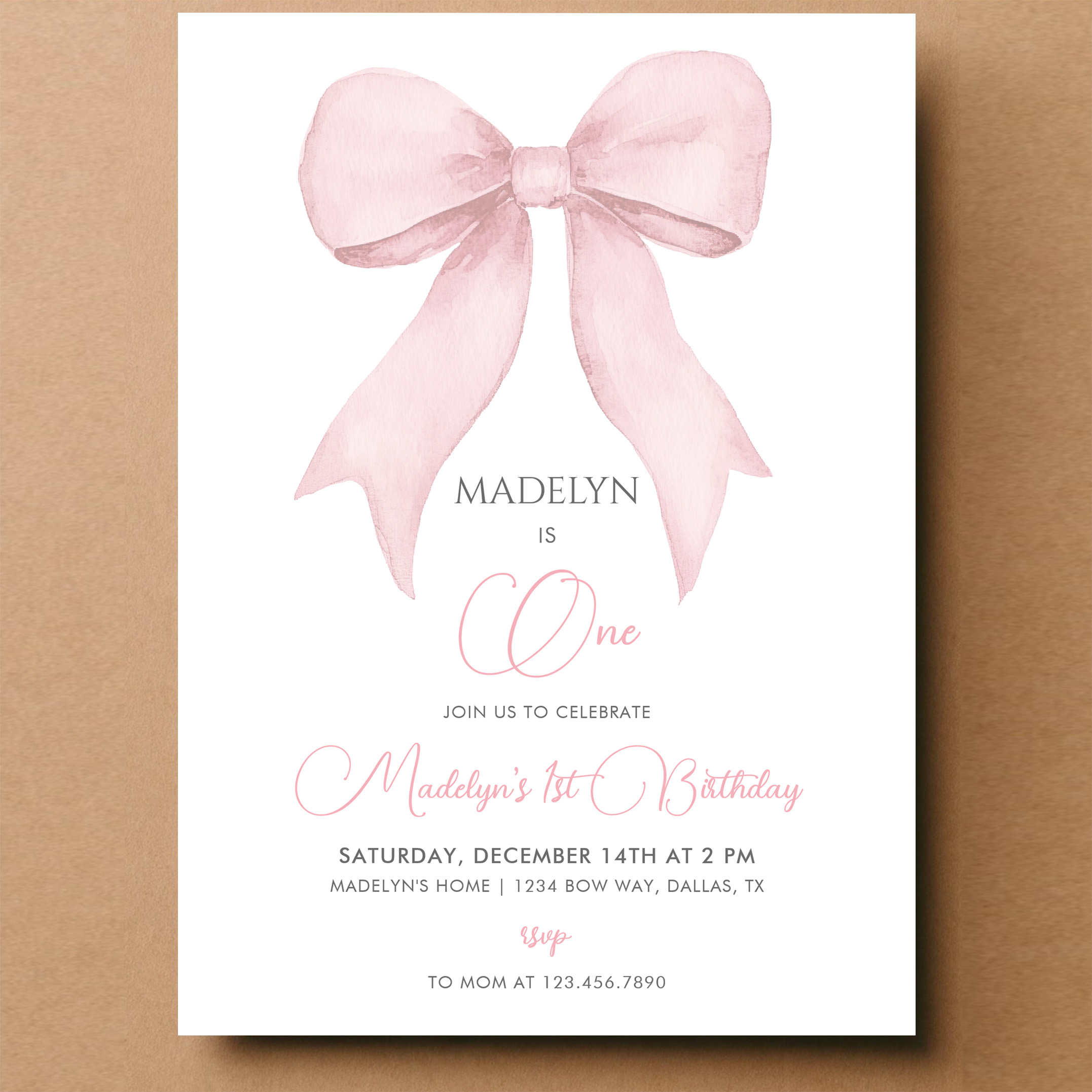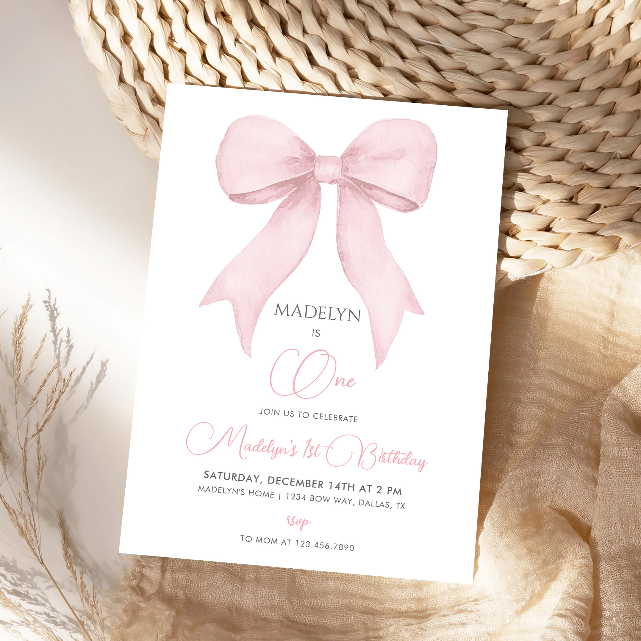 Pink Coquette Pink Bow Girl 1st Birthday Invitation - Related products