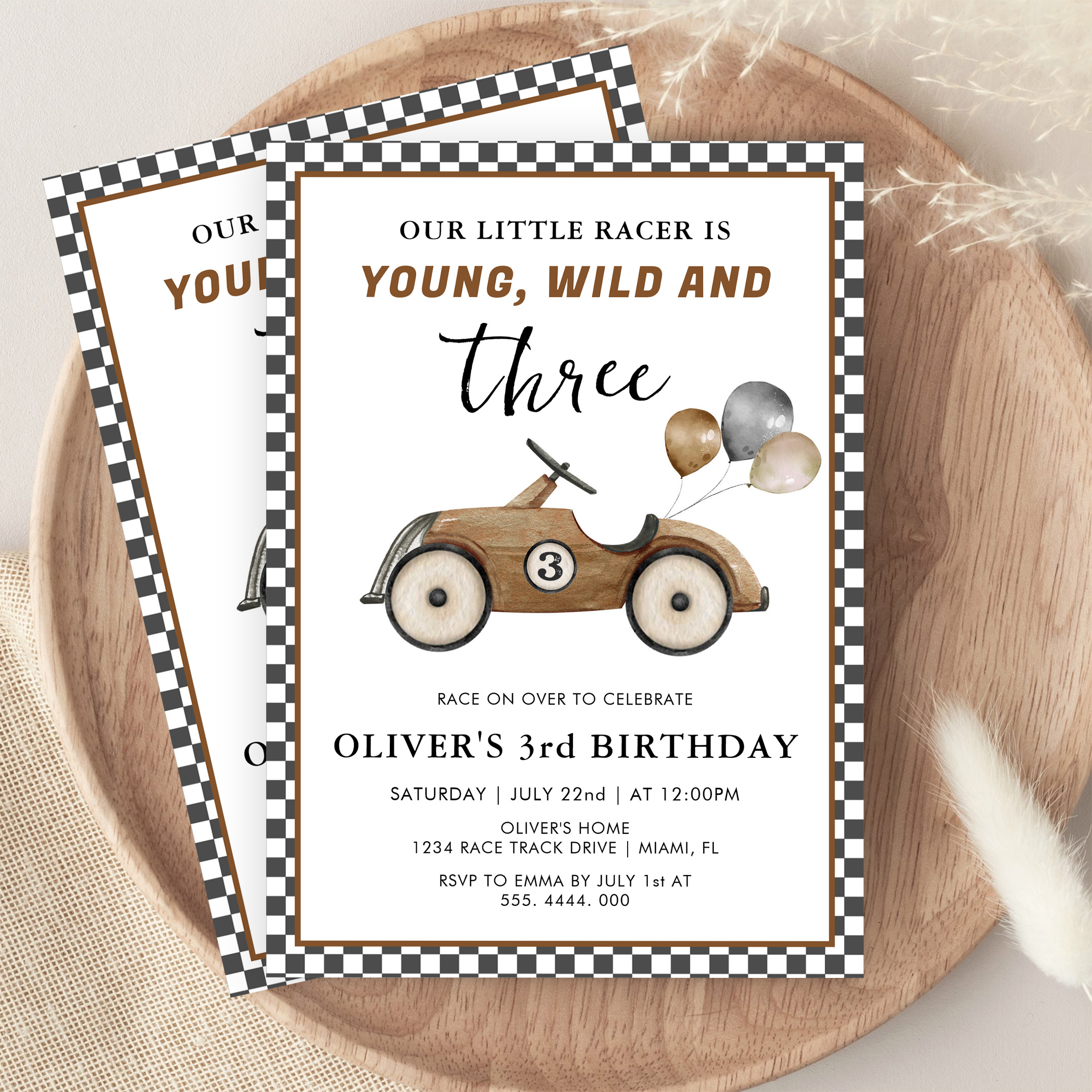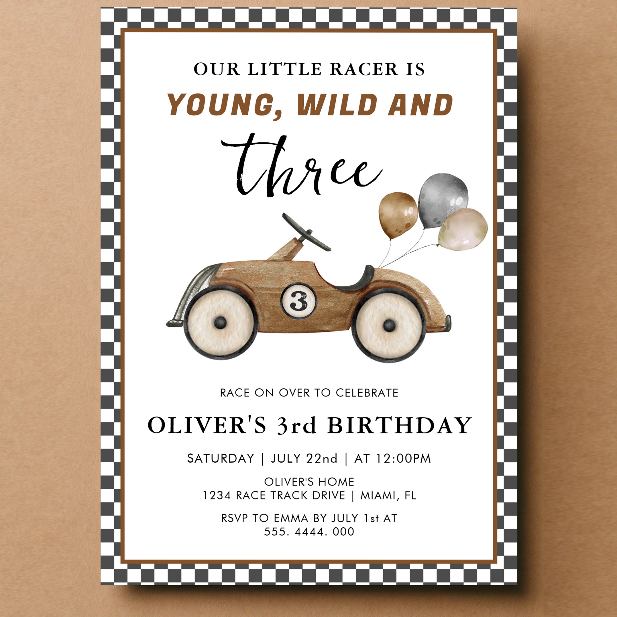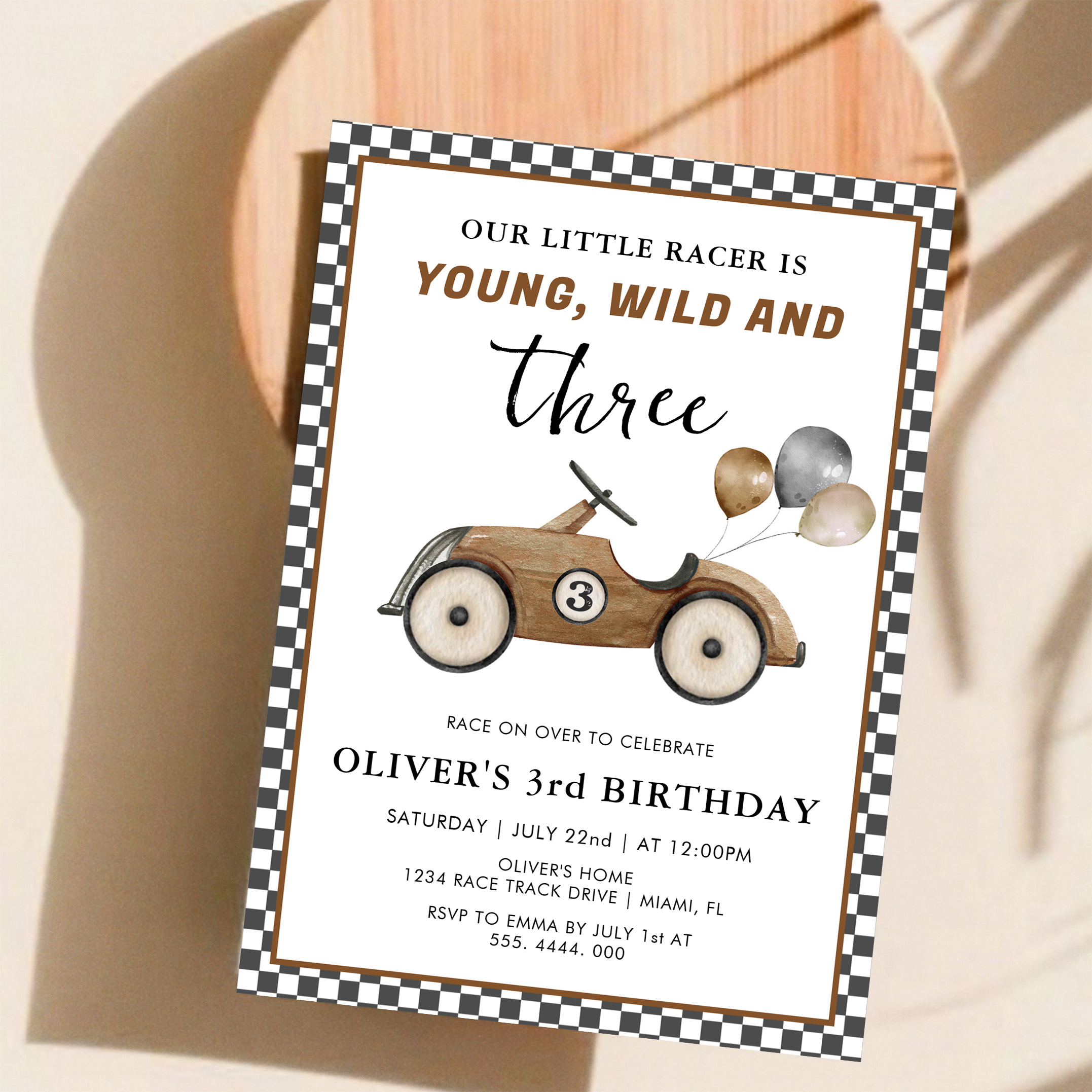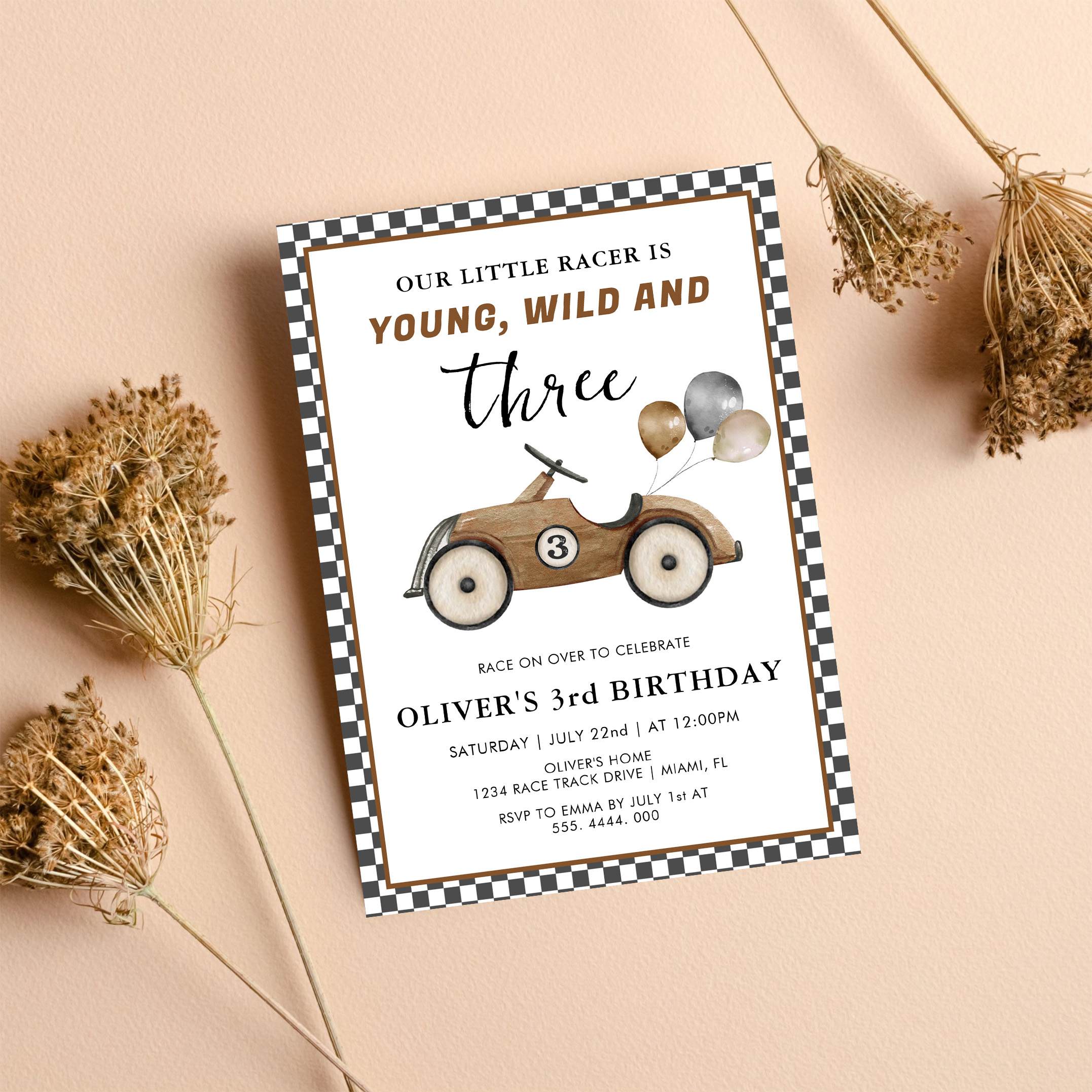Racing Car Young Wild Three Boys Birthday Invitation - Related products