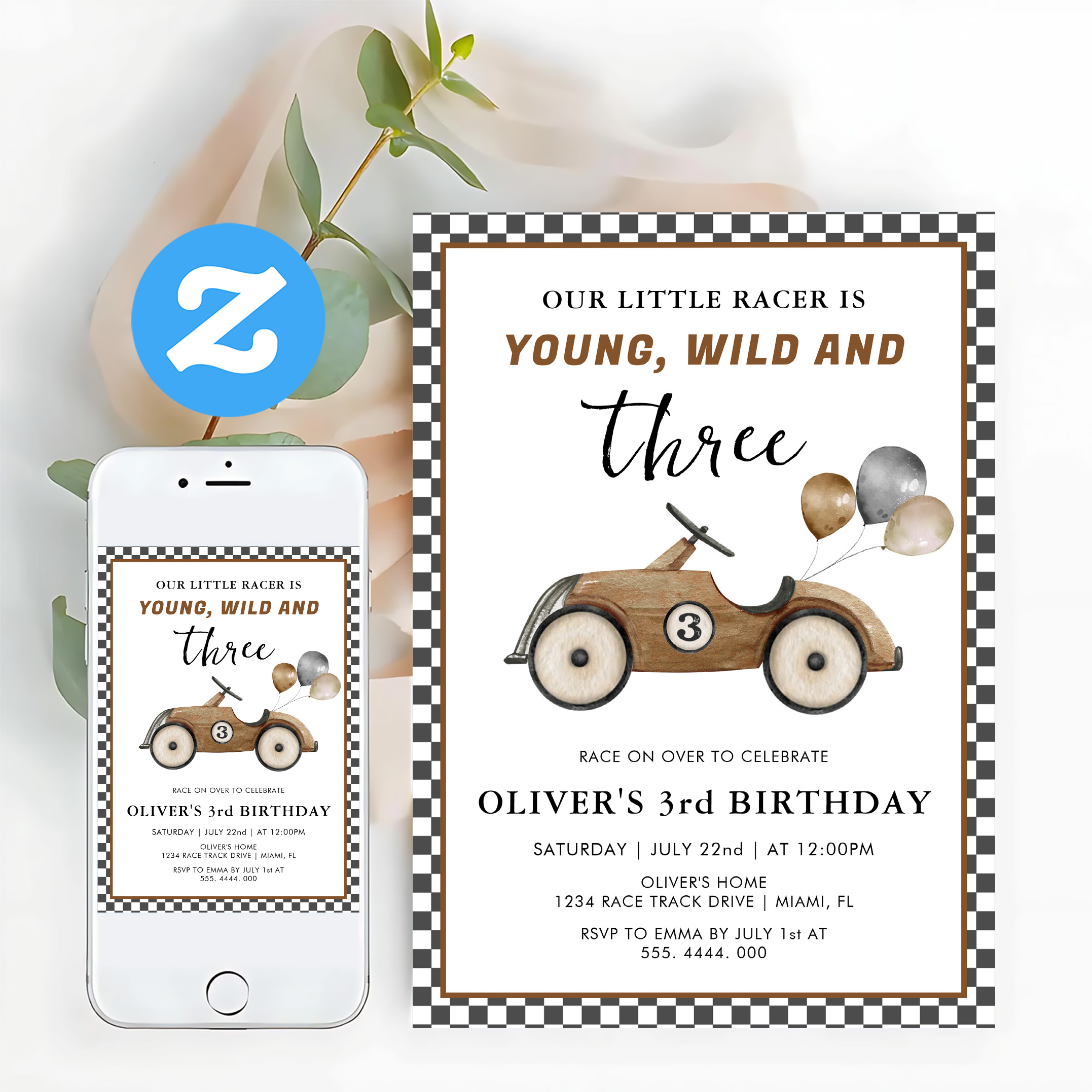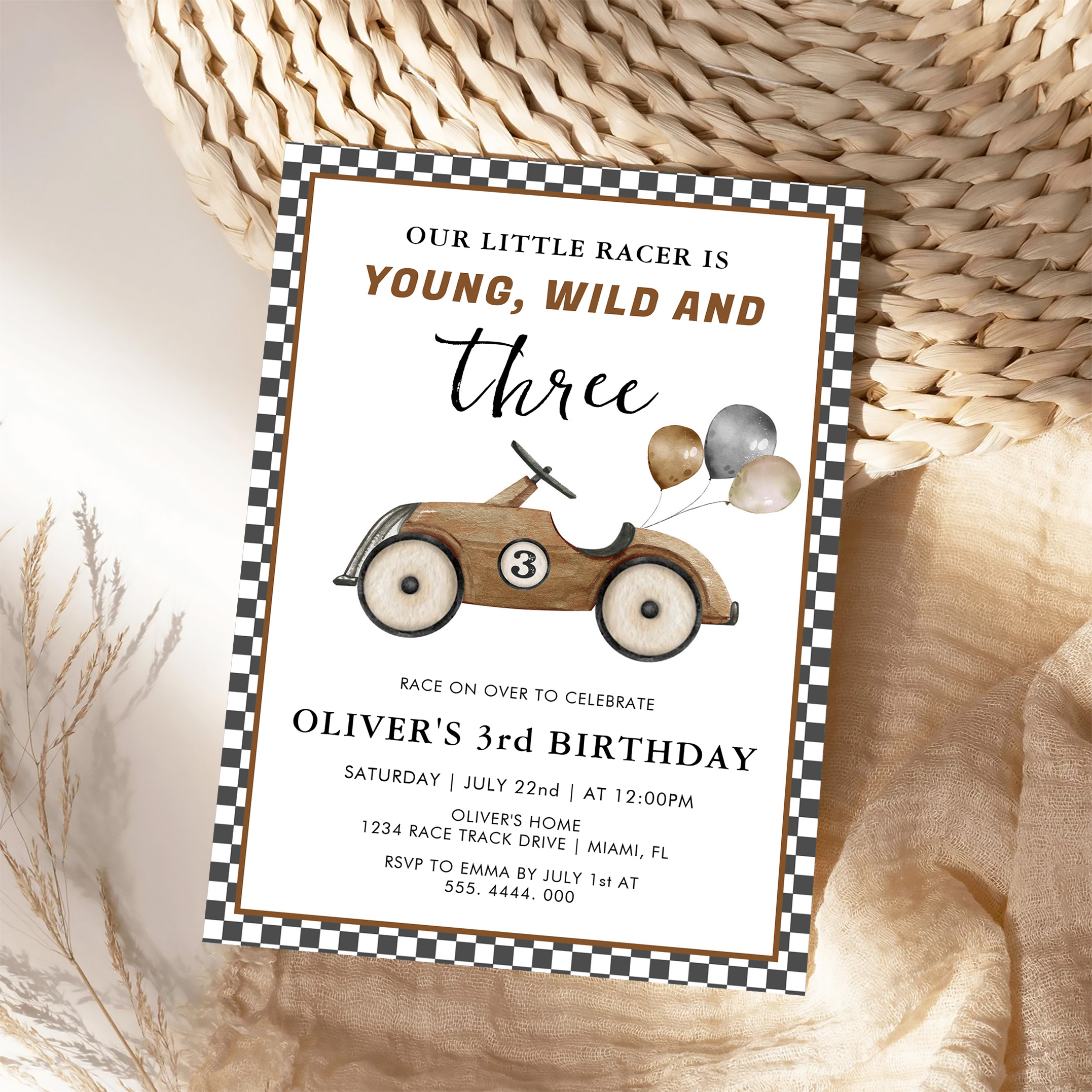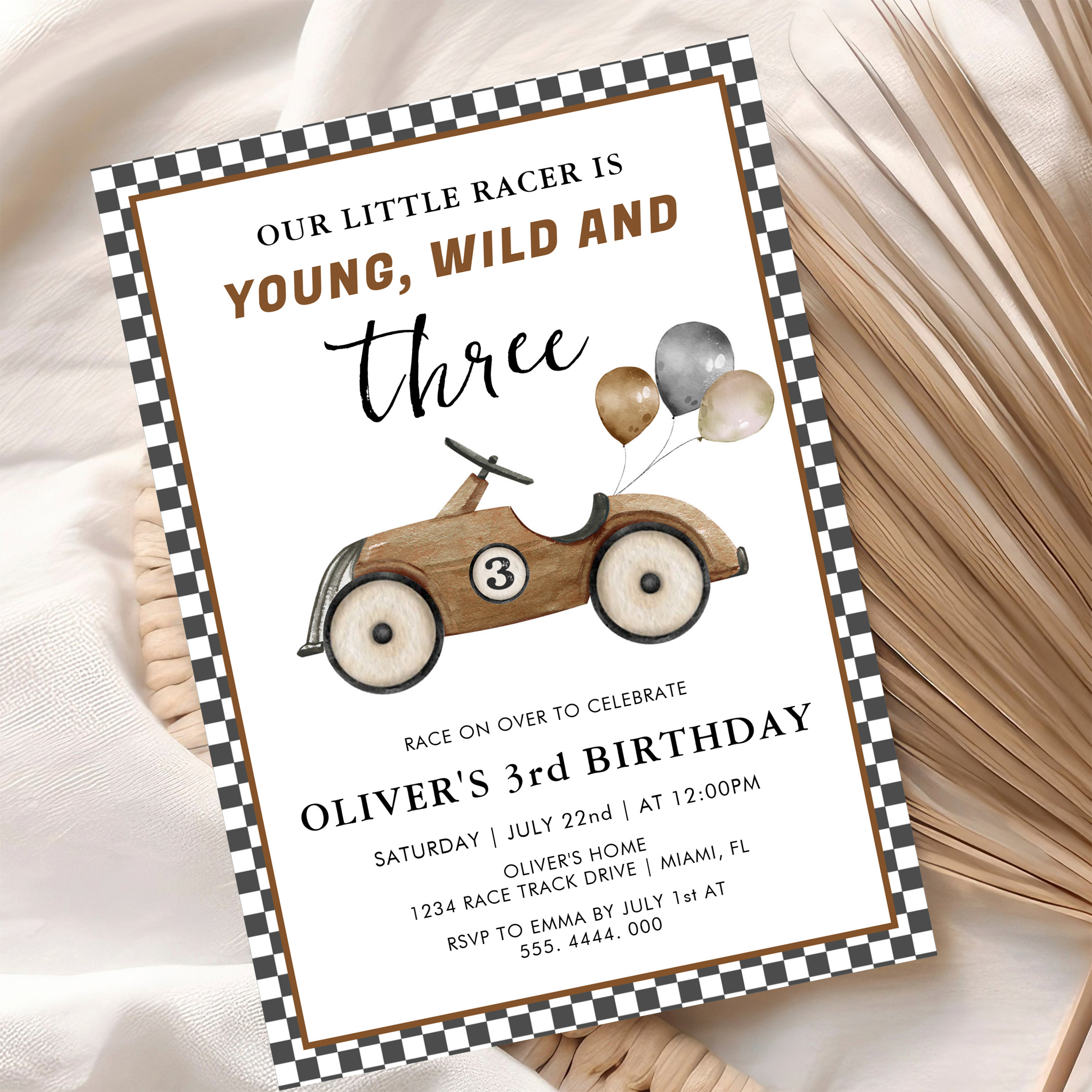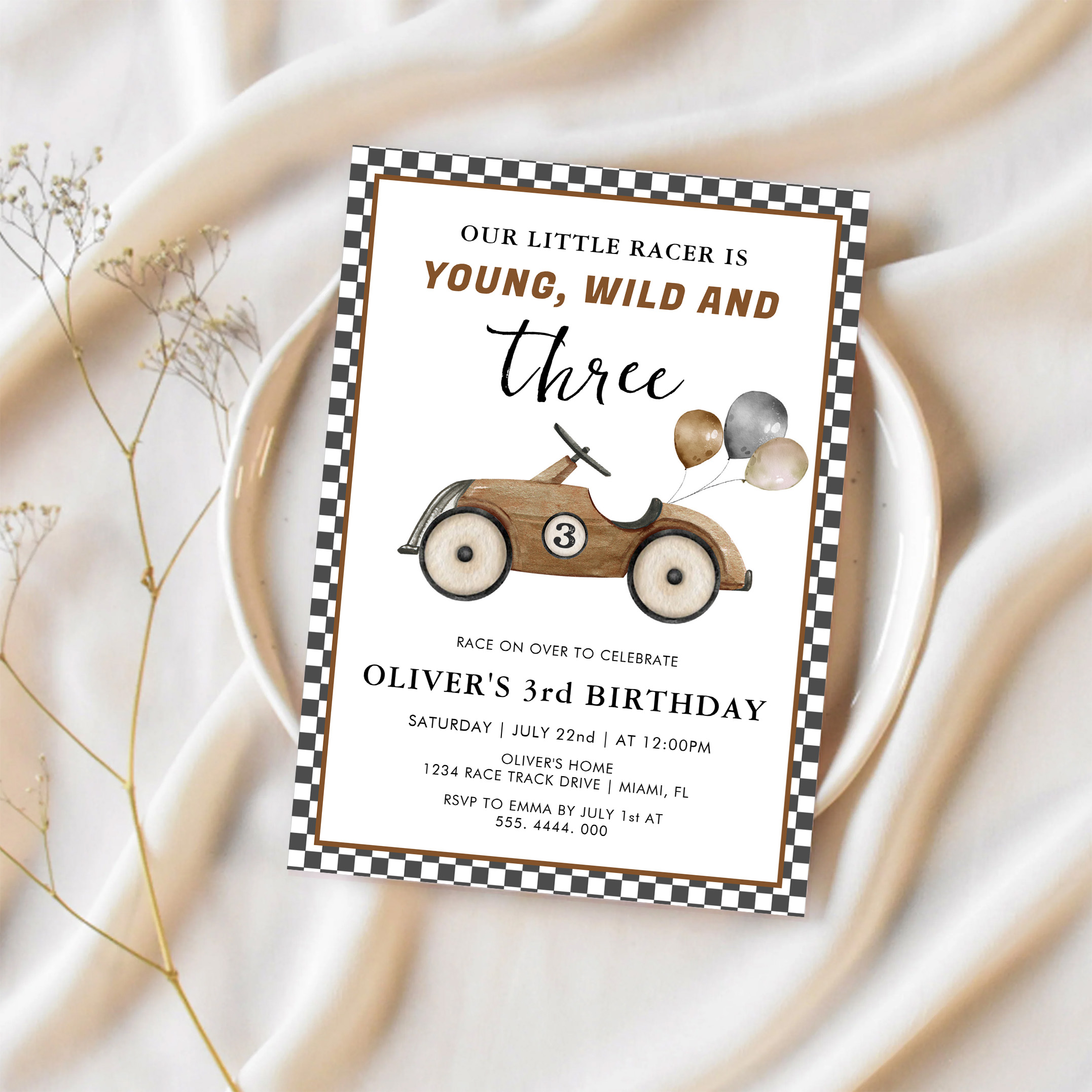 Racing Car Young Wild Three Boys Birthday Invitation - Related products