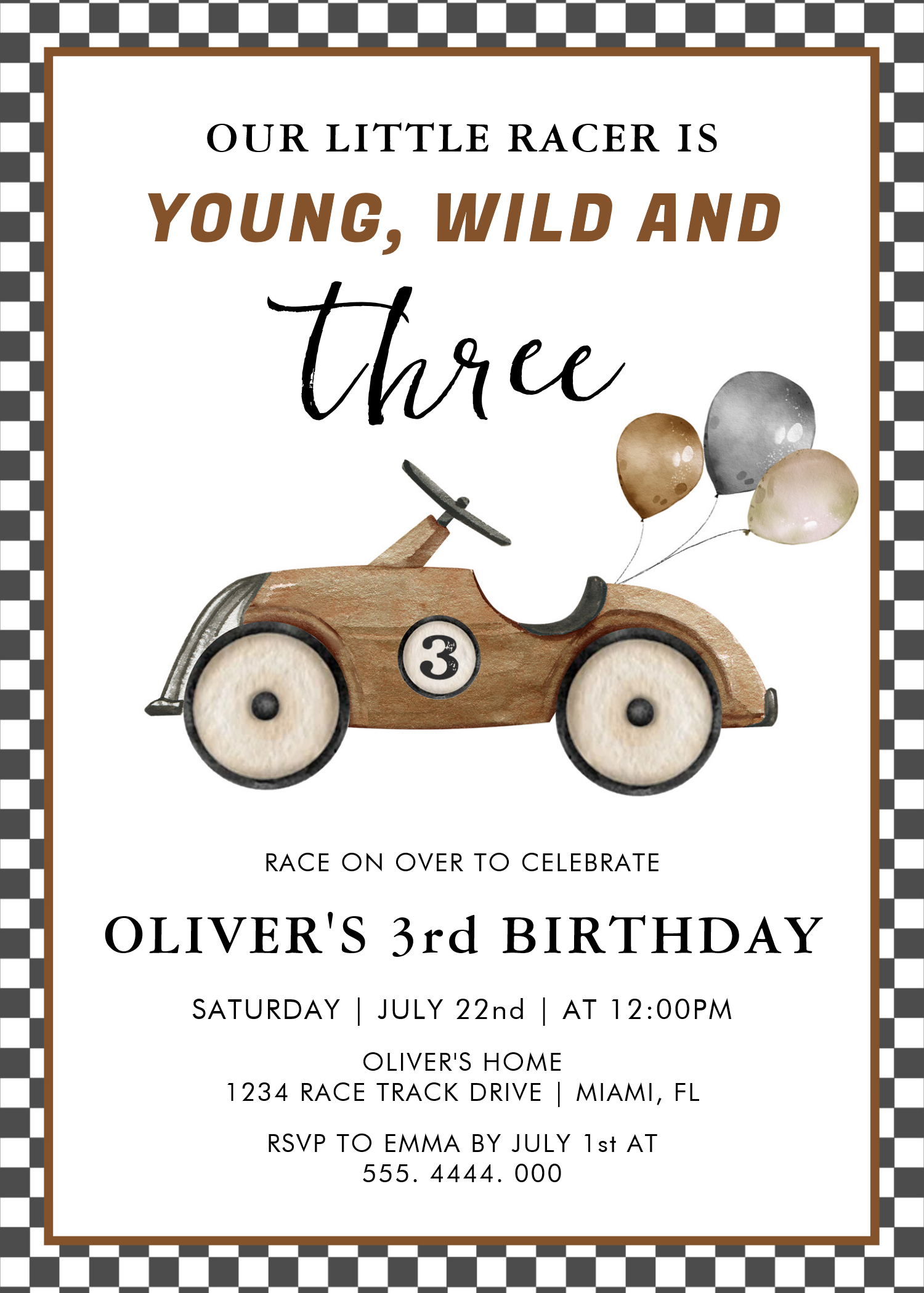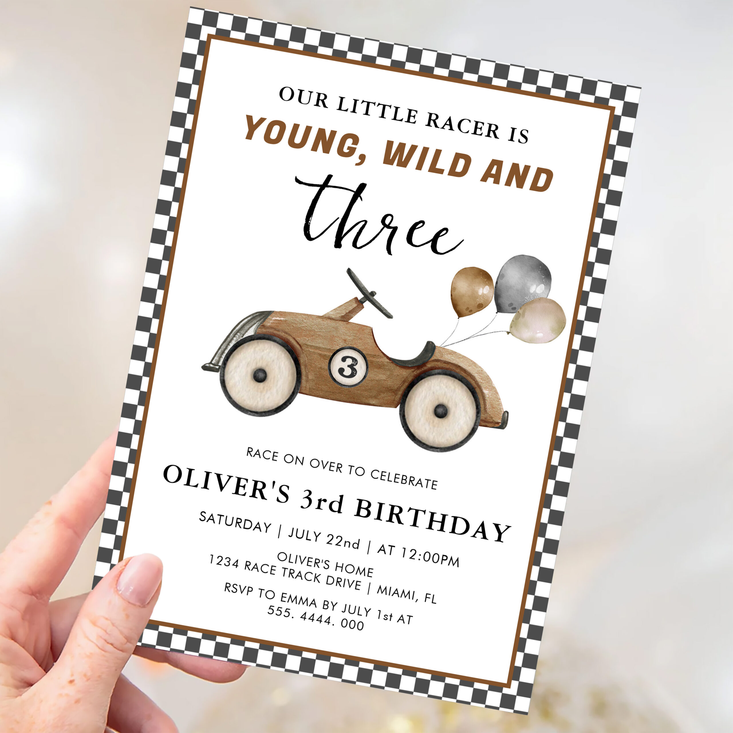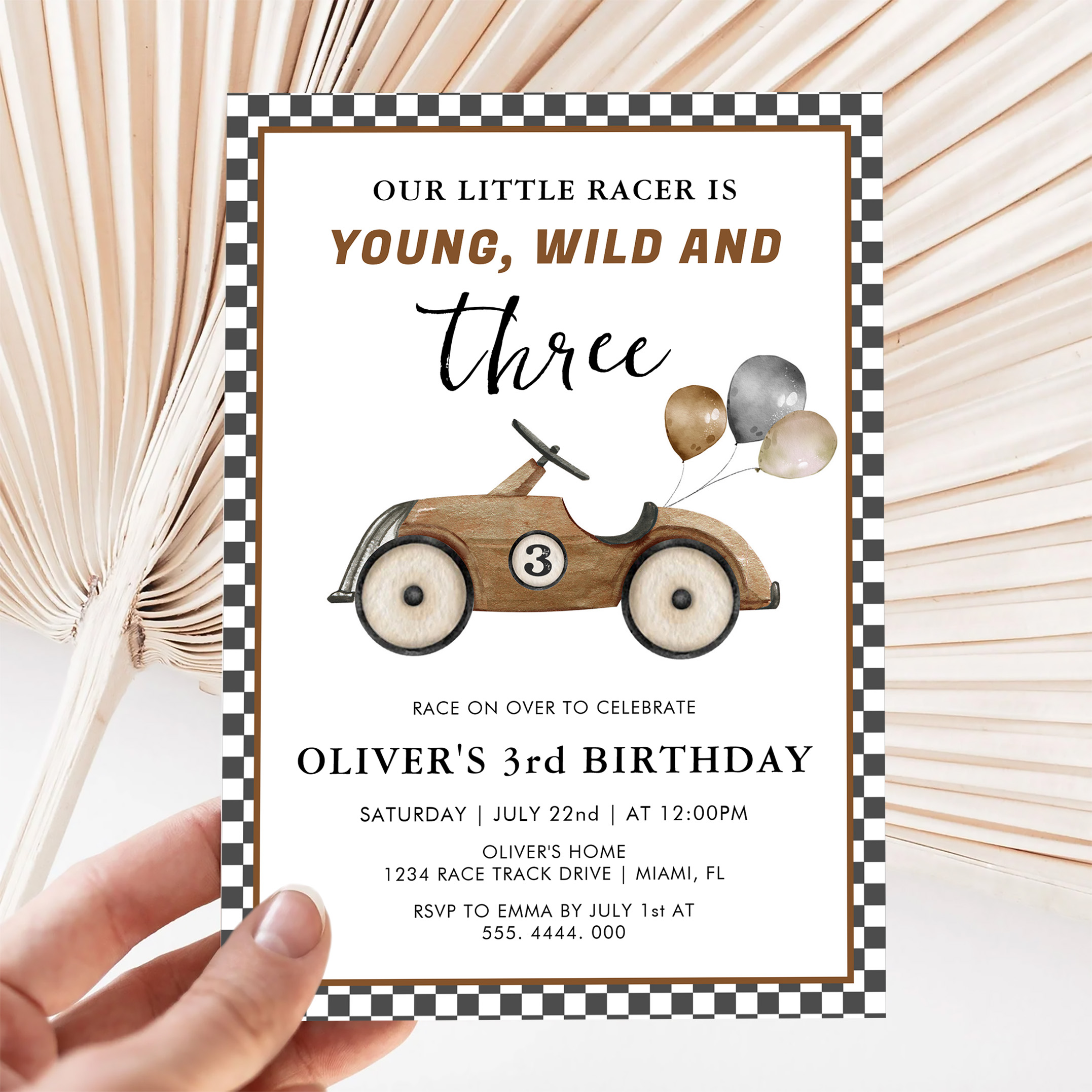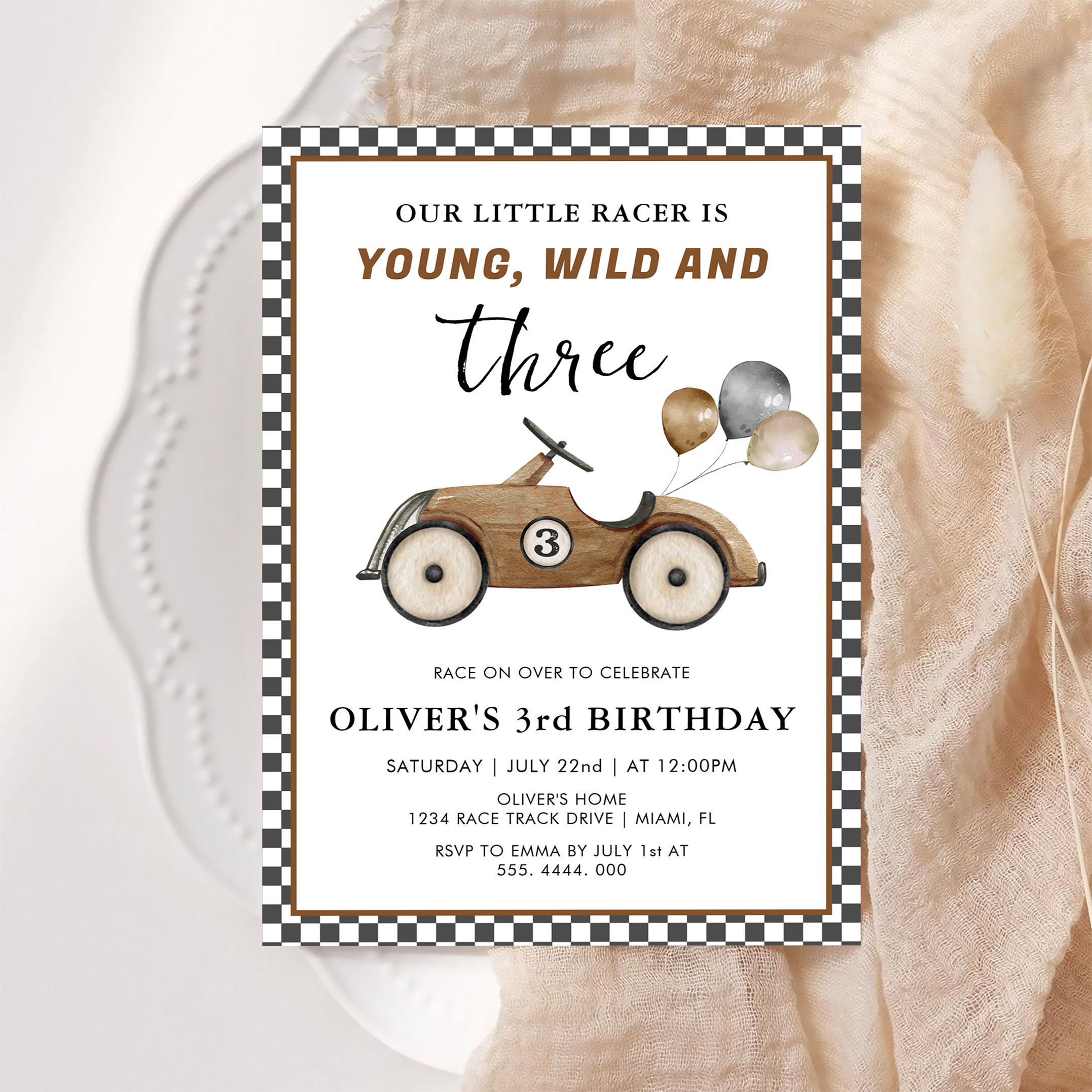 Racing Car Young Wild Three Boys Birthday Invitation - Related products