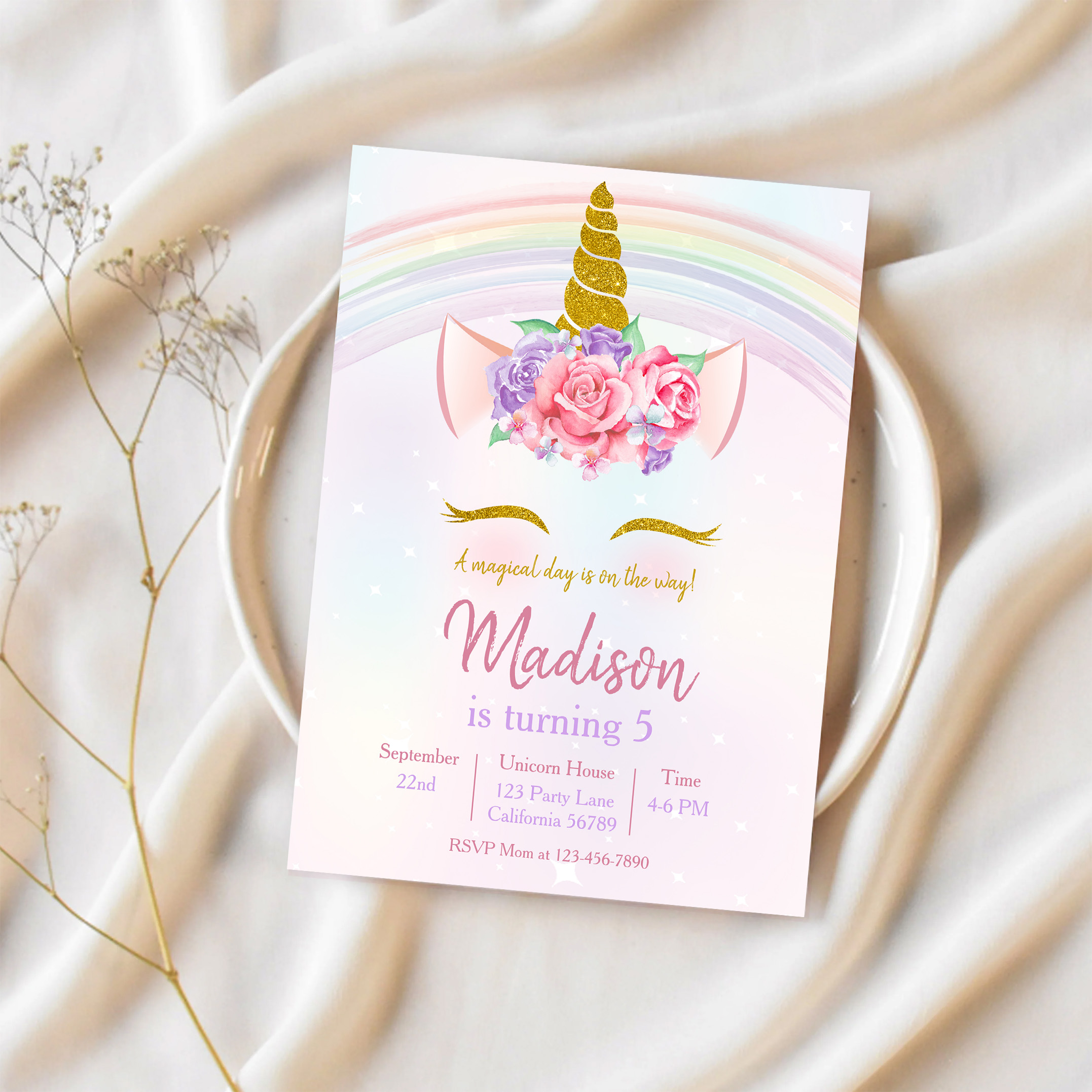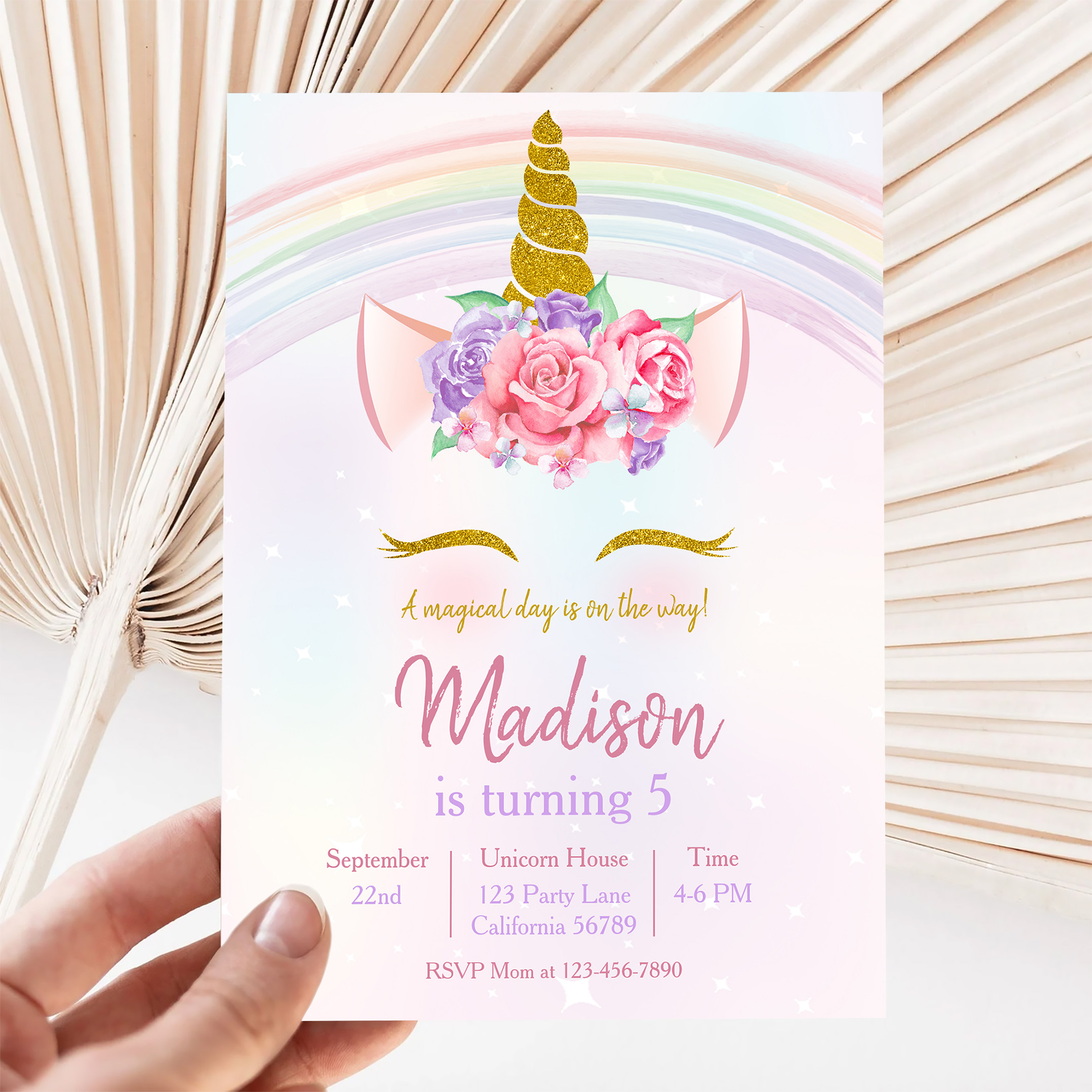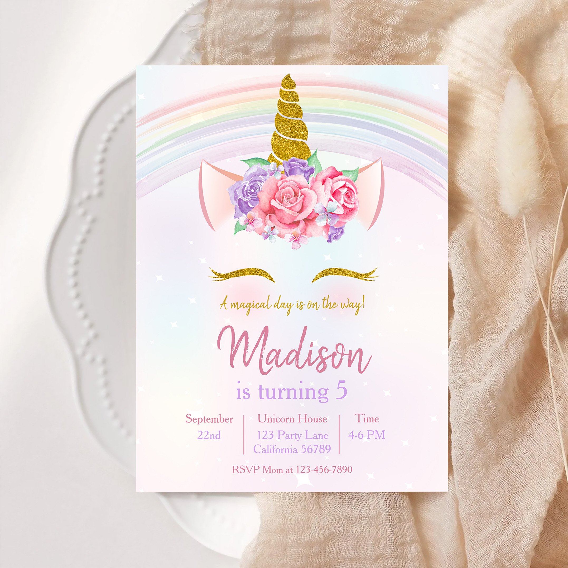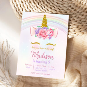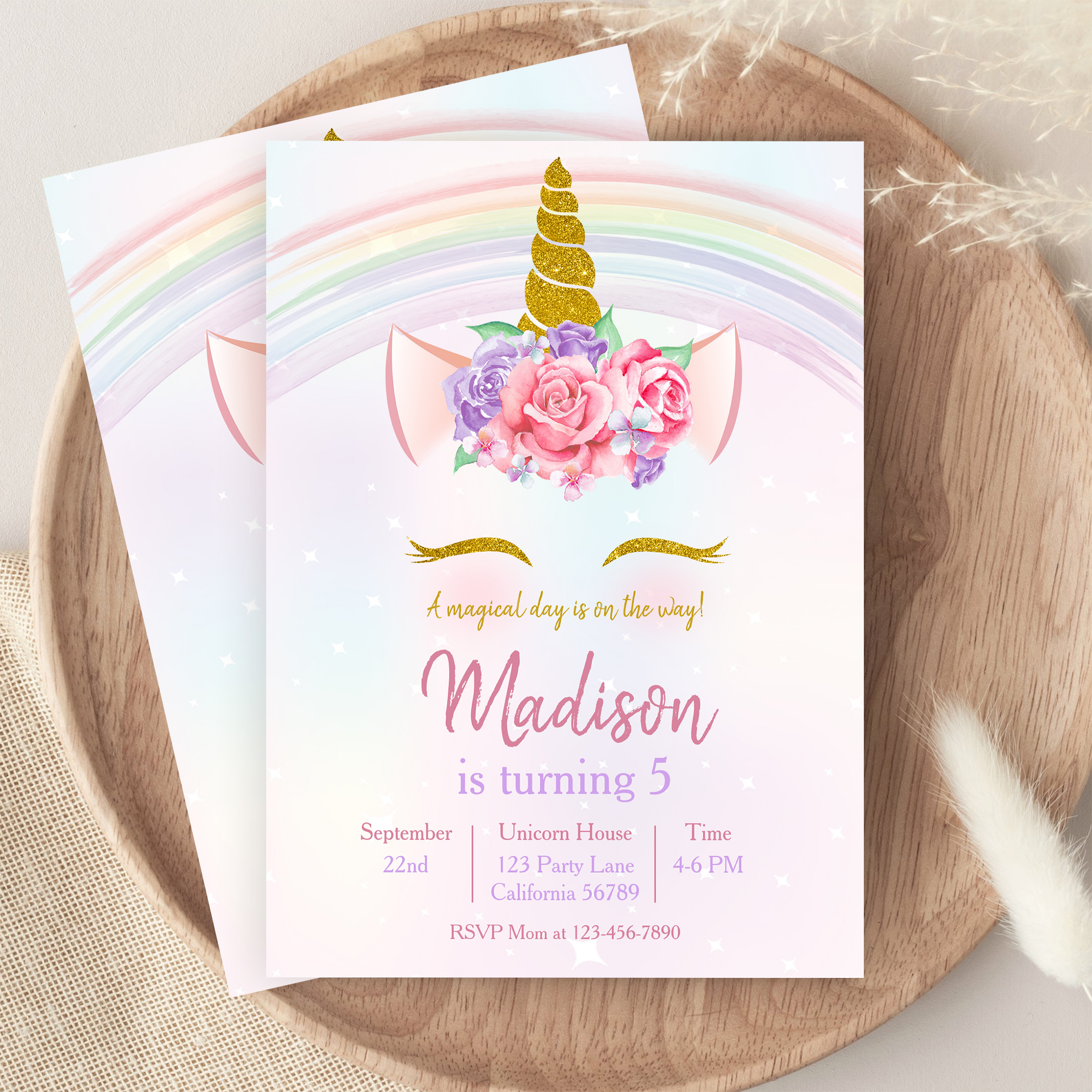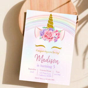 Rainbow Unicorn Party Girl Birthday Invitation - Related products