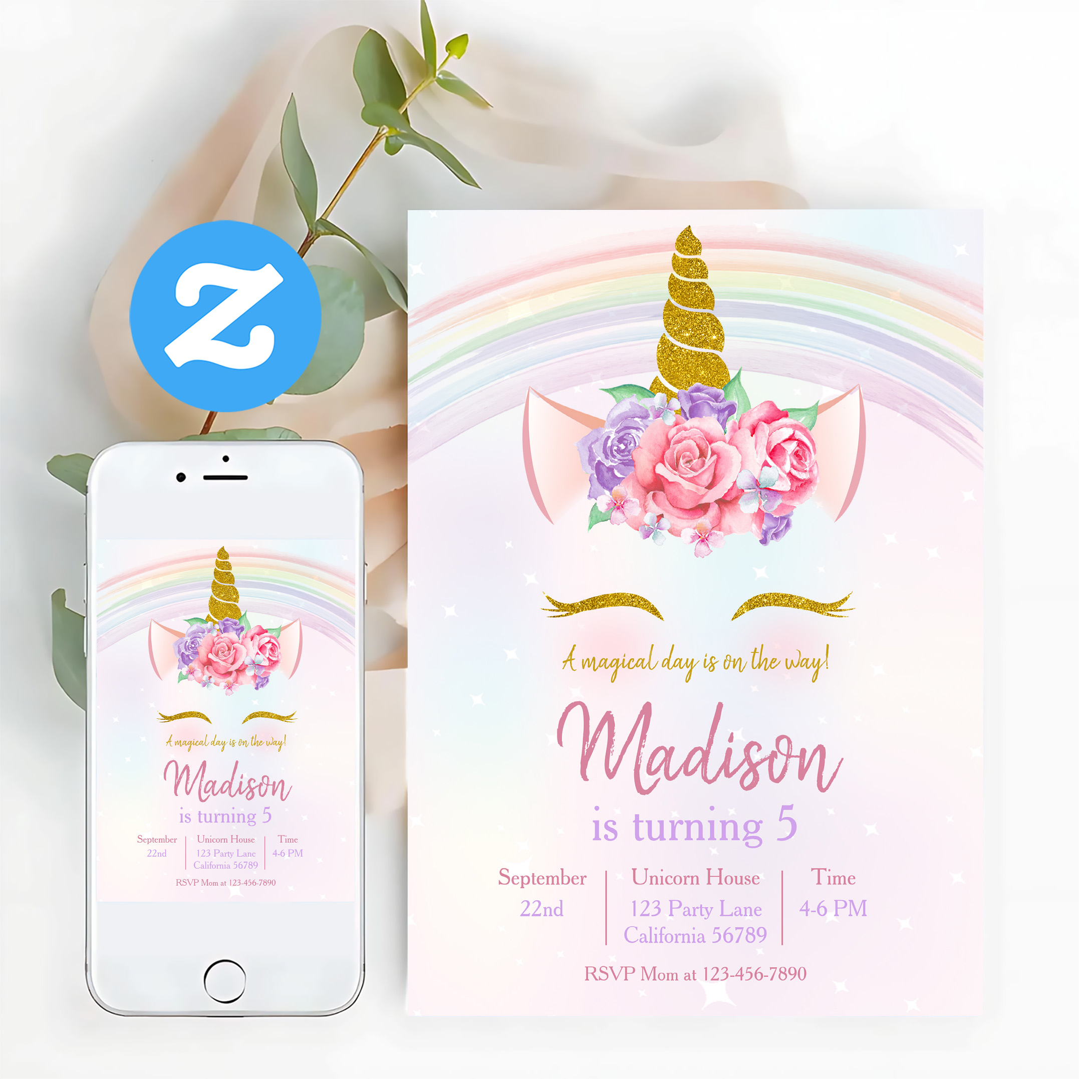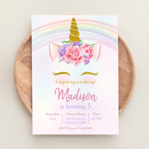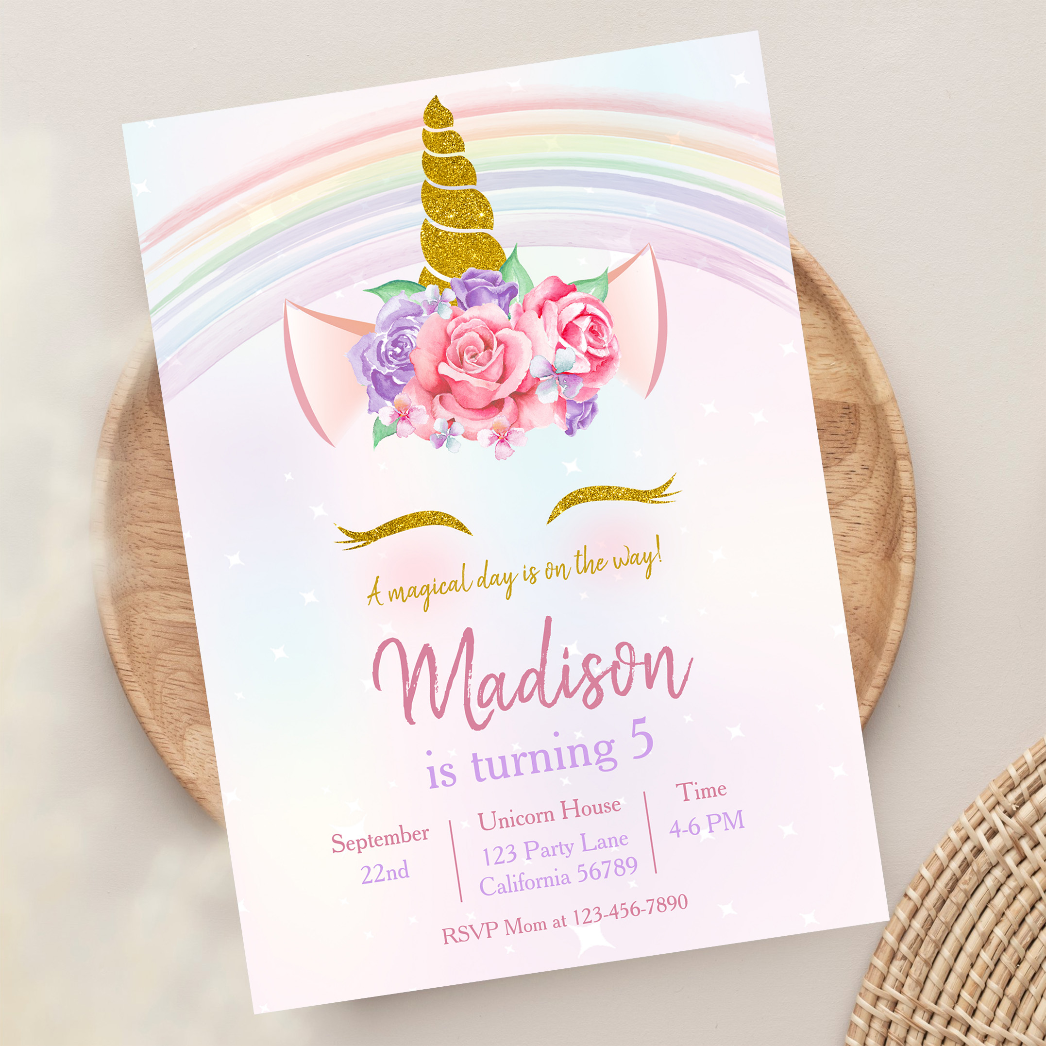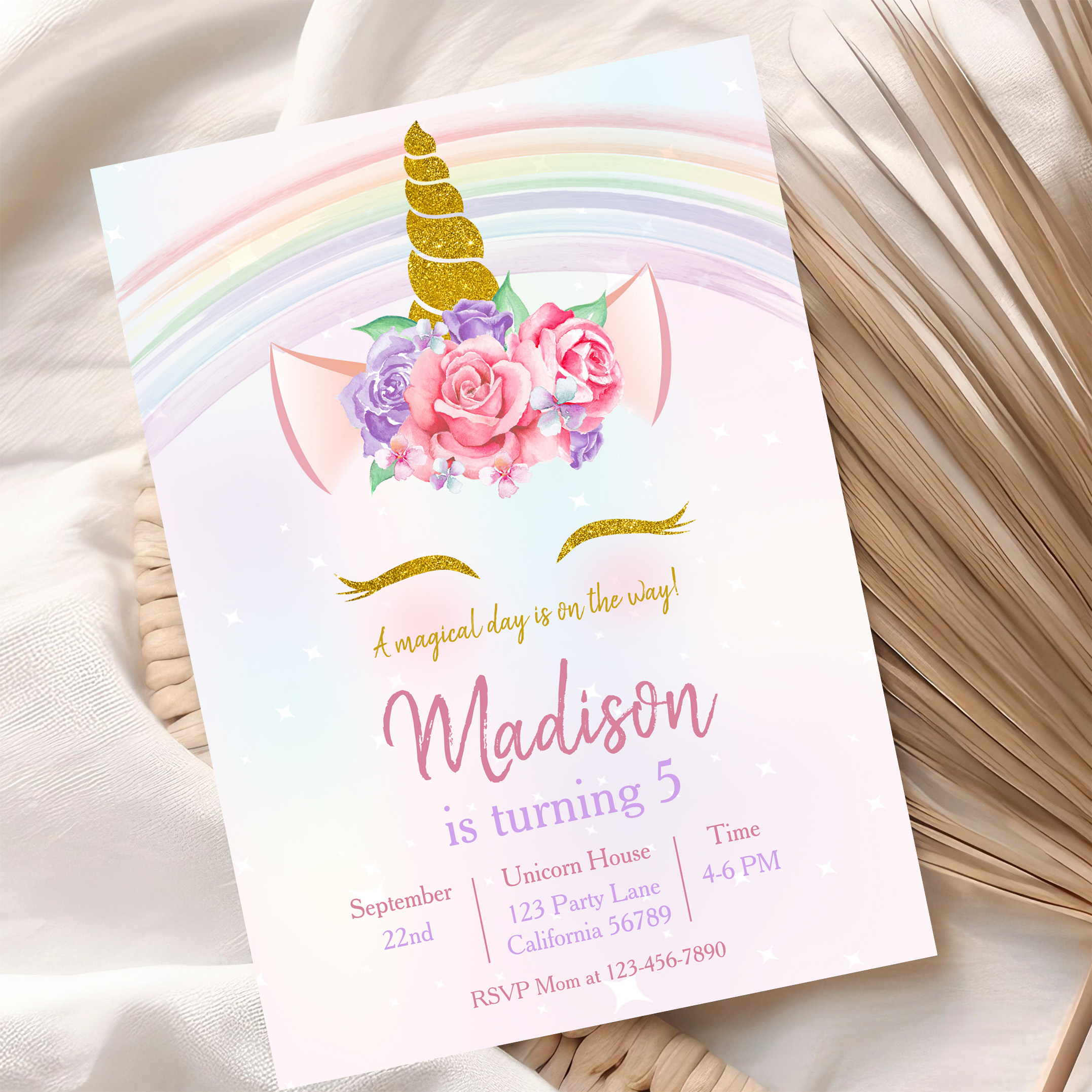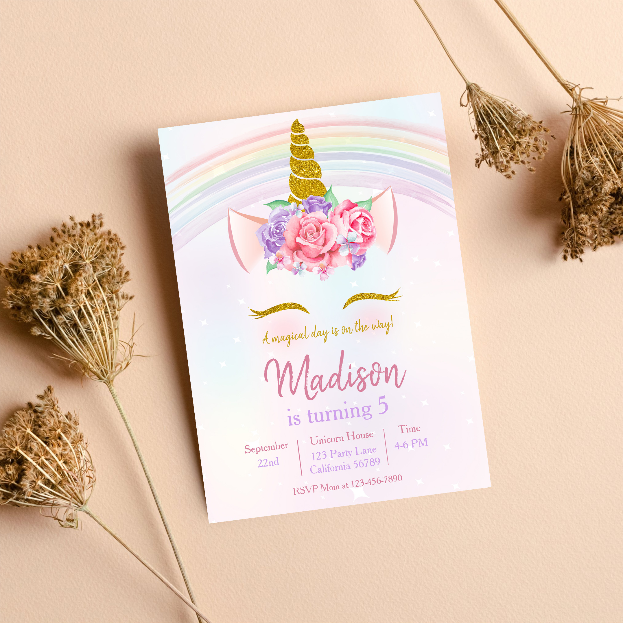 Rainbow Unicorn Party Girl Birthday Invitation - Related products