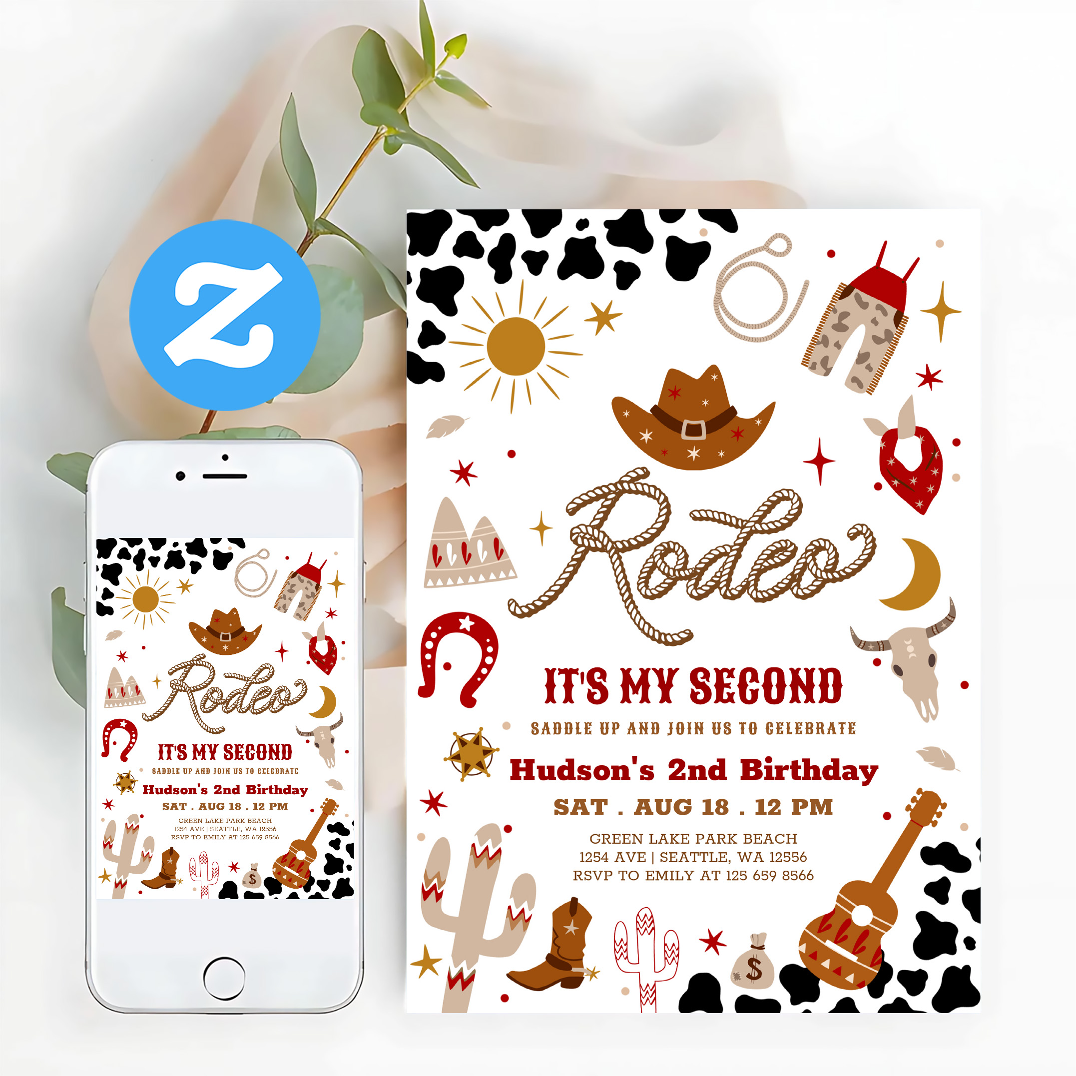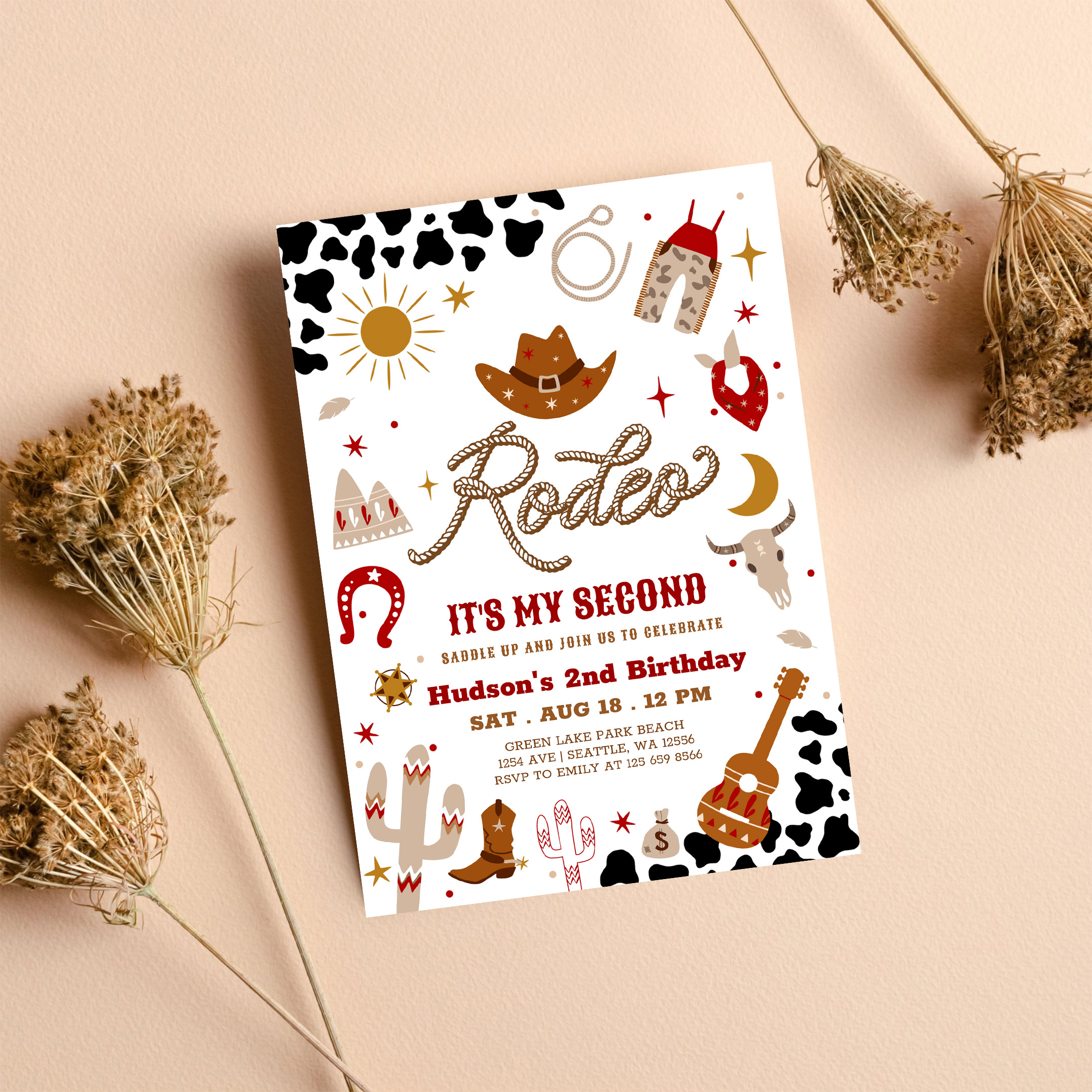 Red Brown Cowboy My 2nd Rodeo Birthday Invitation - Related products