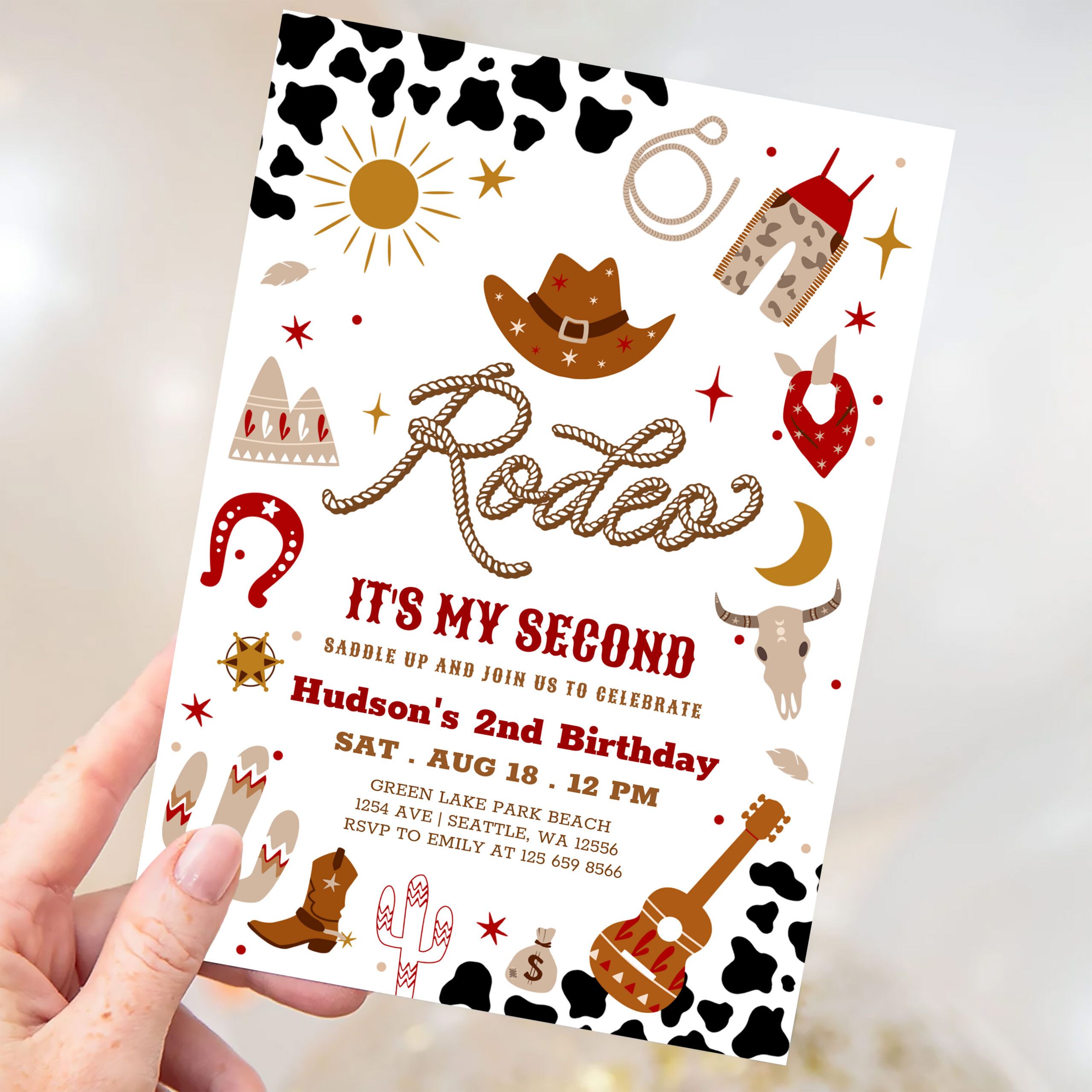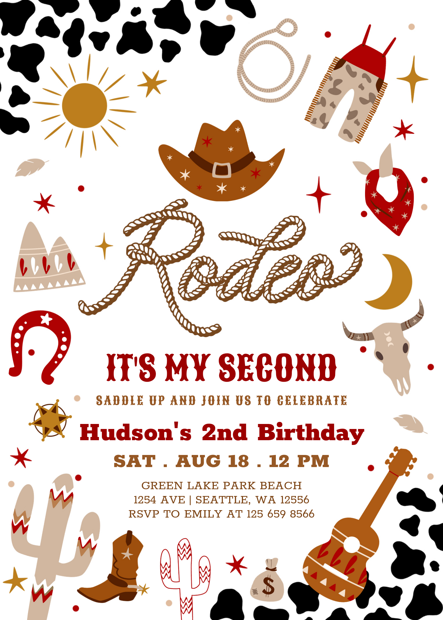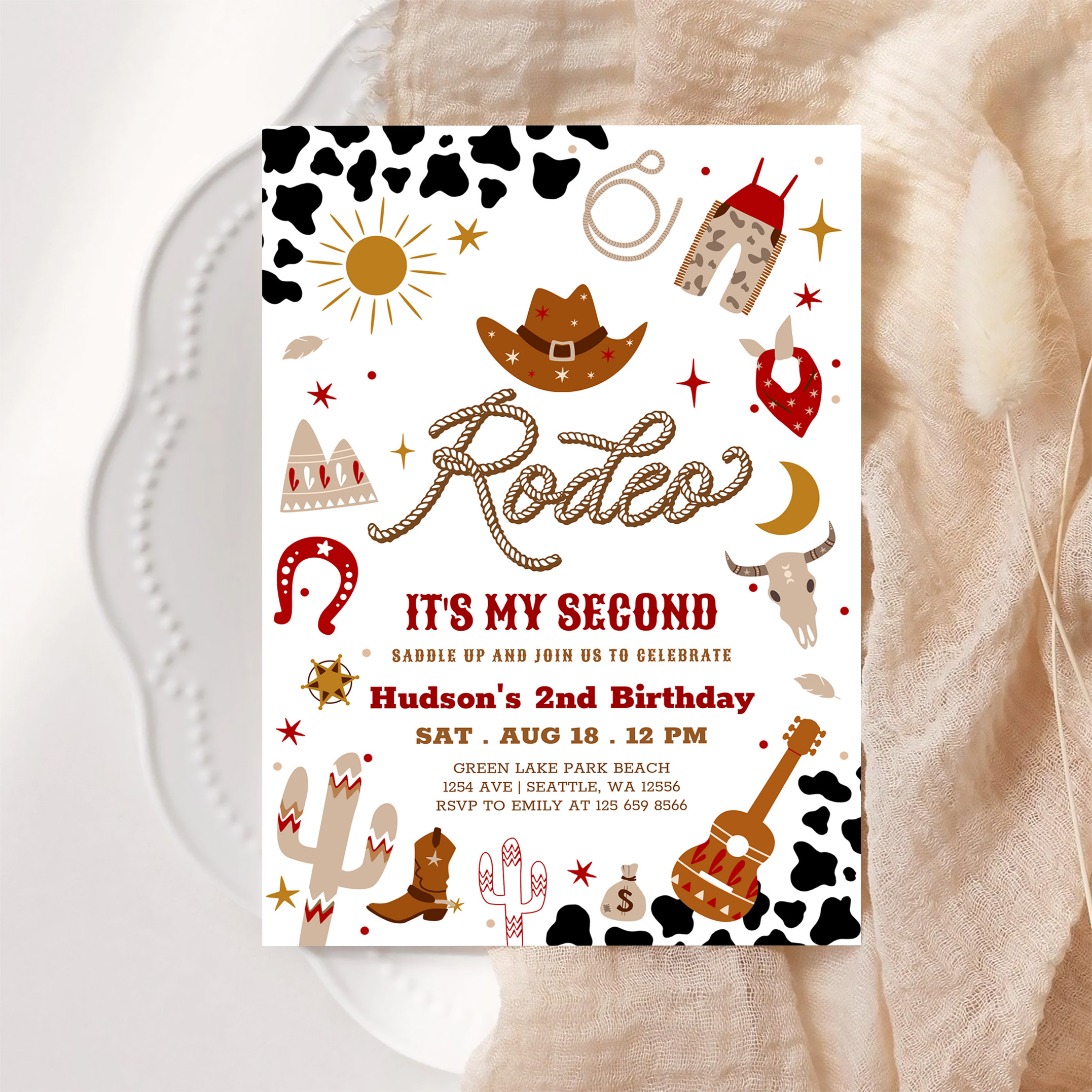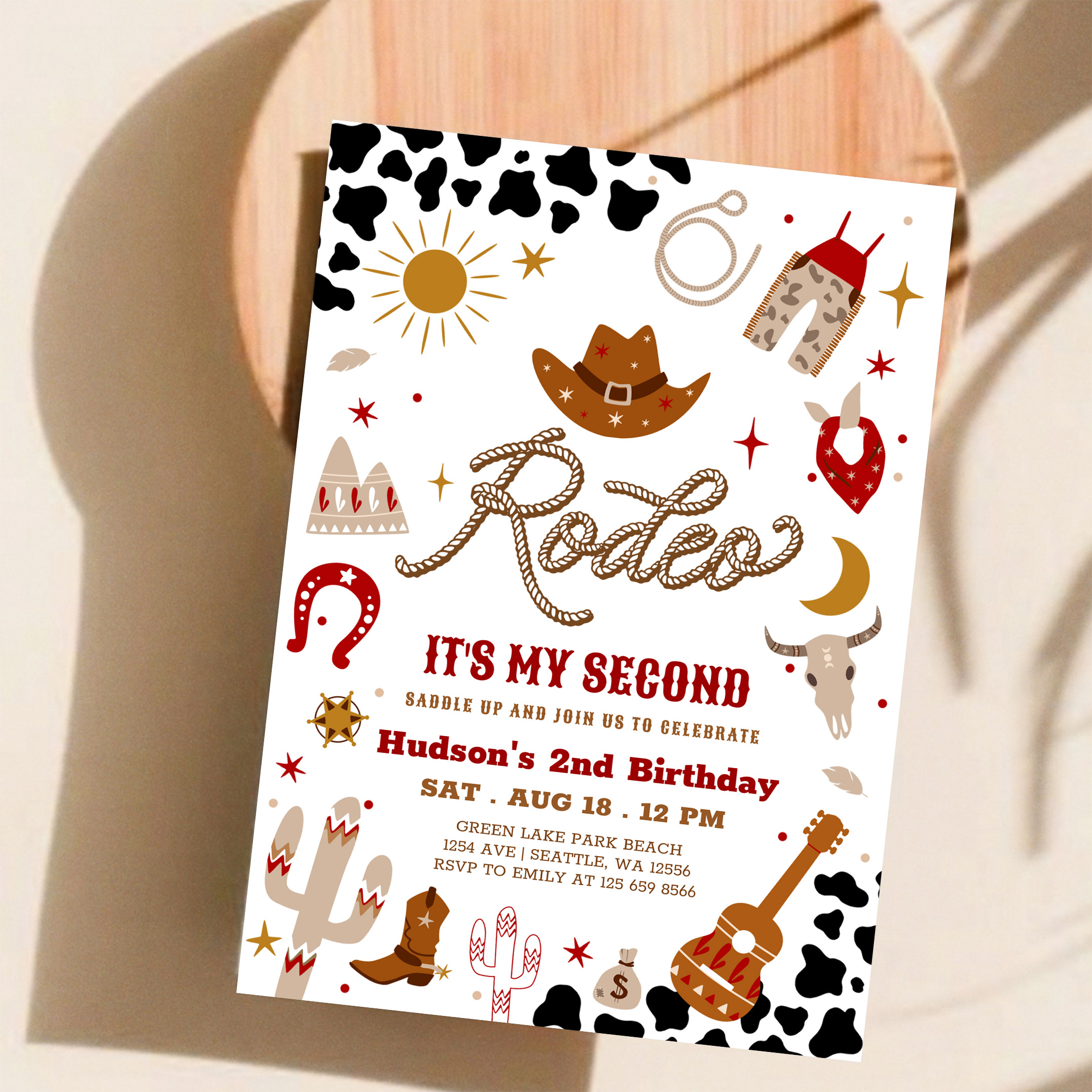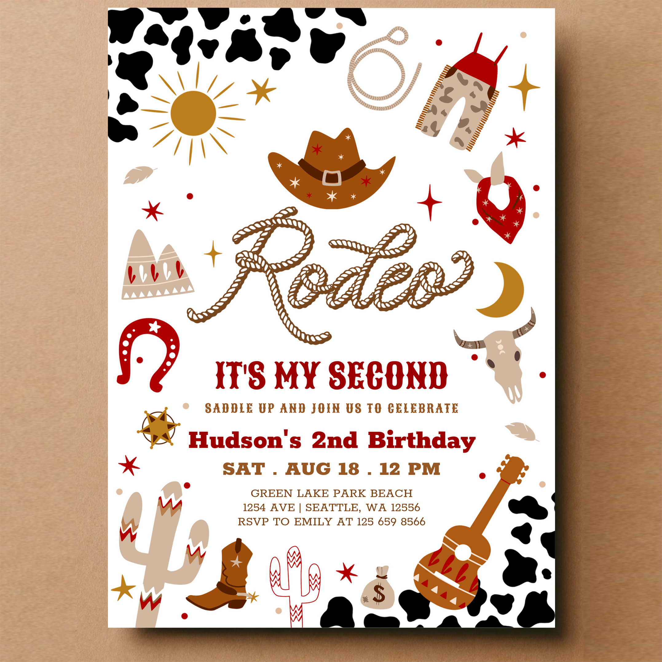 Red Brown Cowboy My 2nd Rodeo Birthday Invitation